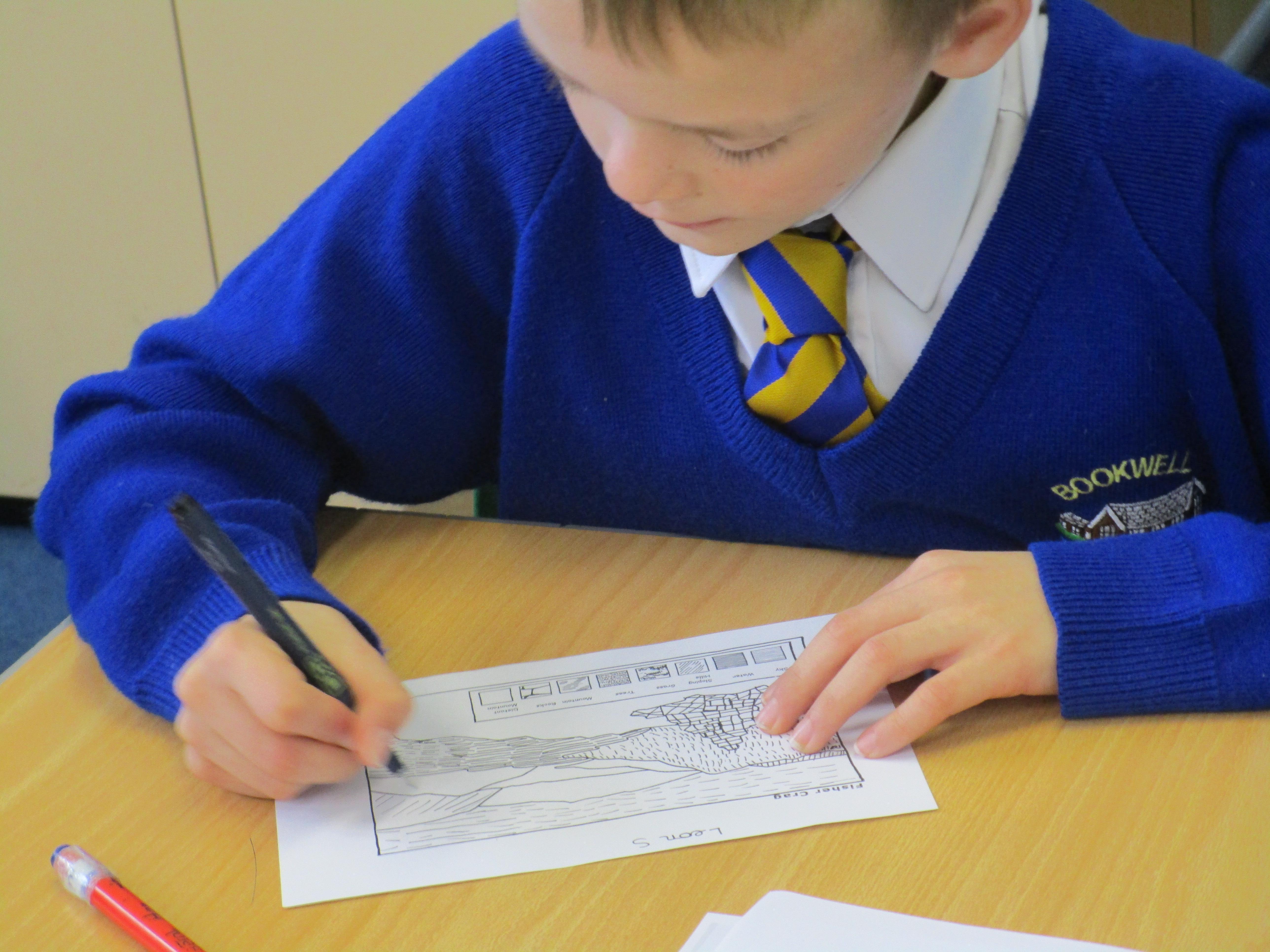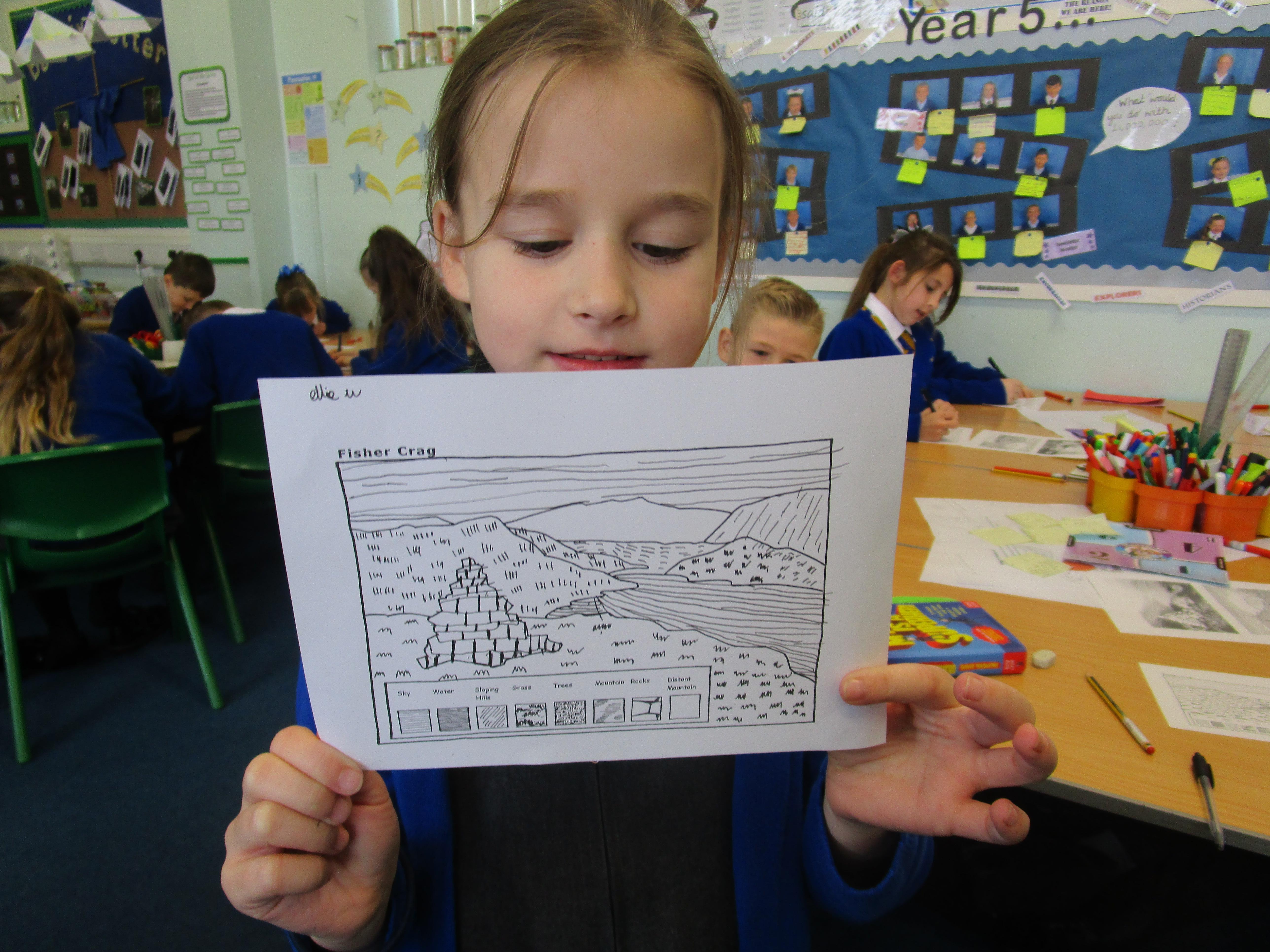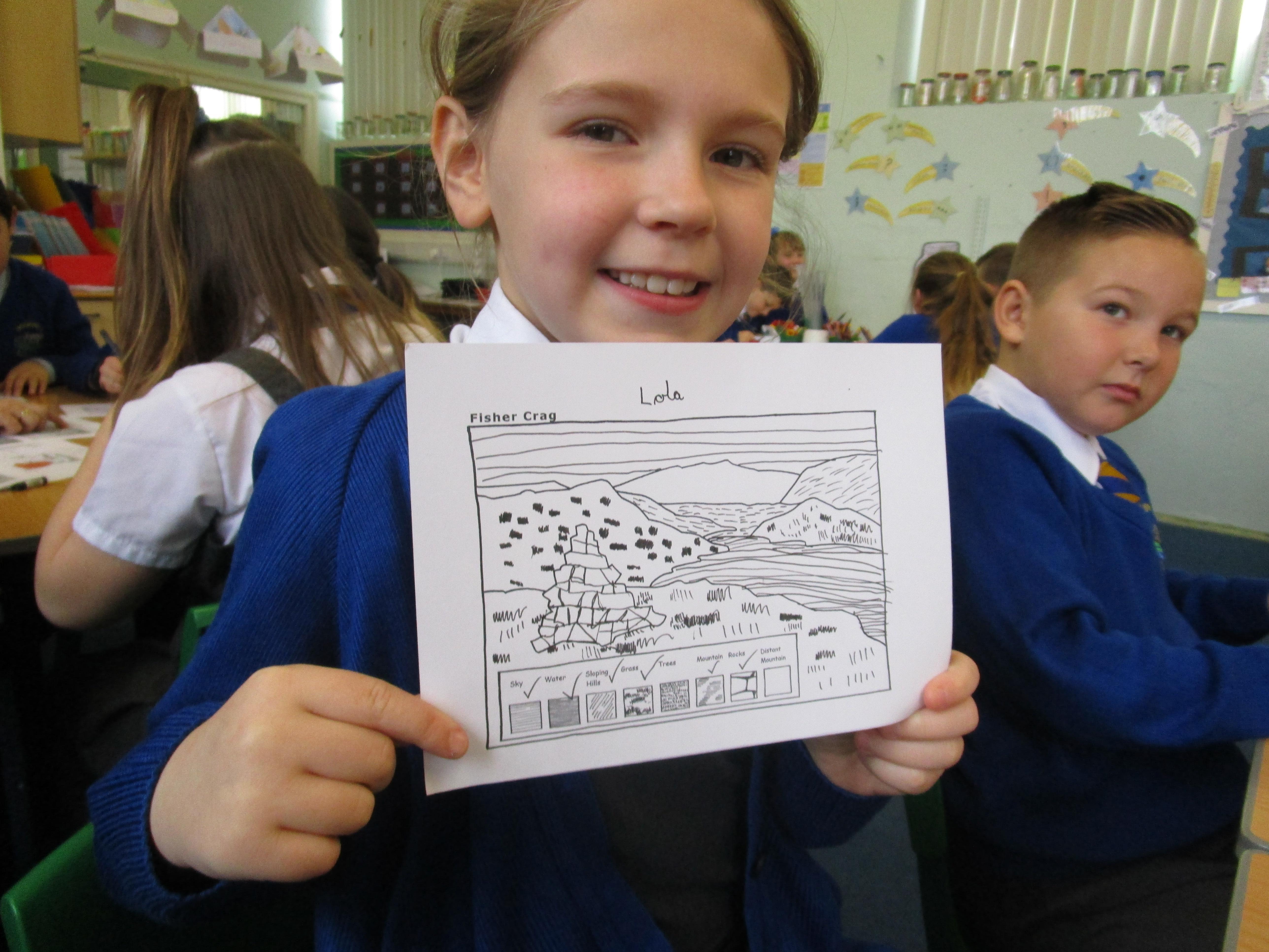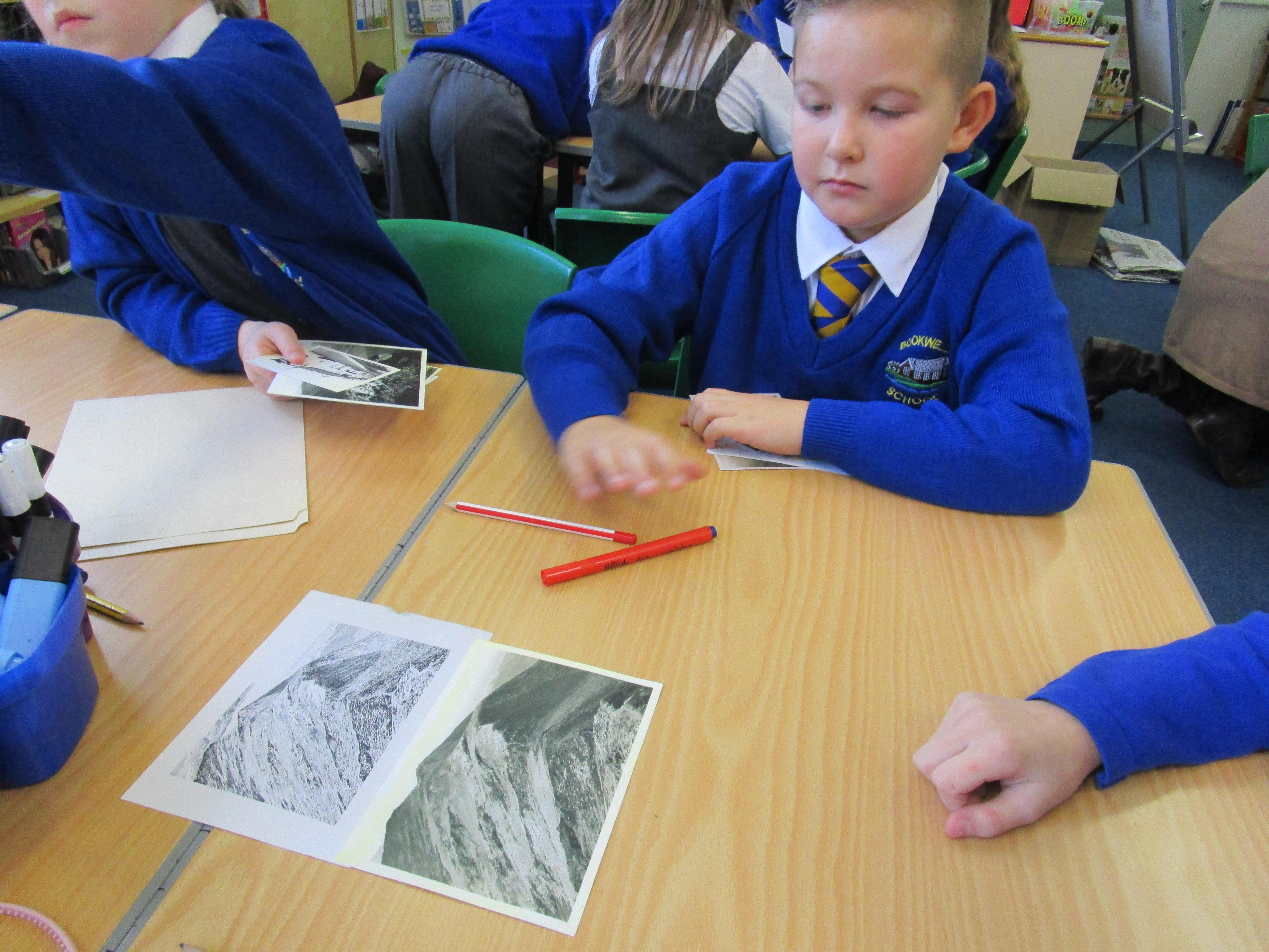 On Monday 28th November Anne and Tanya came in from the library service and introduced us to the guide books Alfred Wainwright wrote about the Lake District. We found out about his life as a child, hs school life and his love of the lakes.  His drawings were amazing (we found out how to draw like him  using ink) and he had the most beautiful handwriting.  We discovered he published his books in black and white to keep the cost of them down so more people would be able to afford them and hopefully adventure out on the Cumbrian fells.