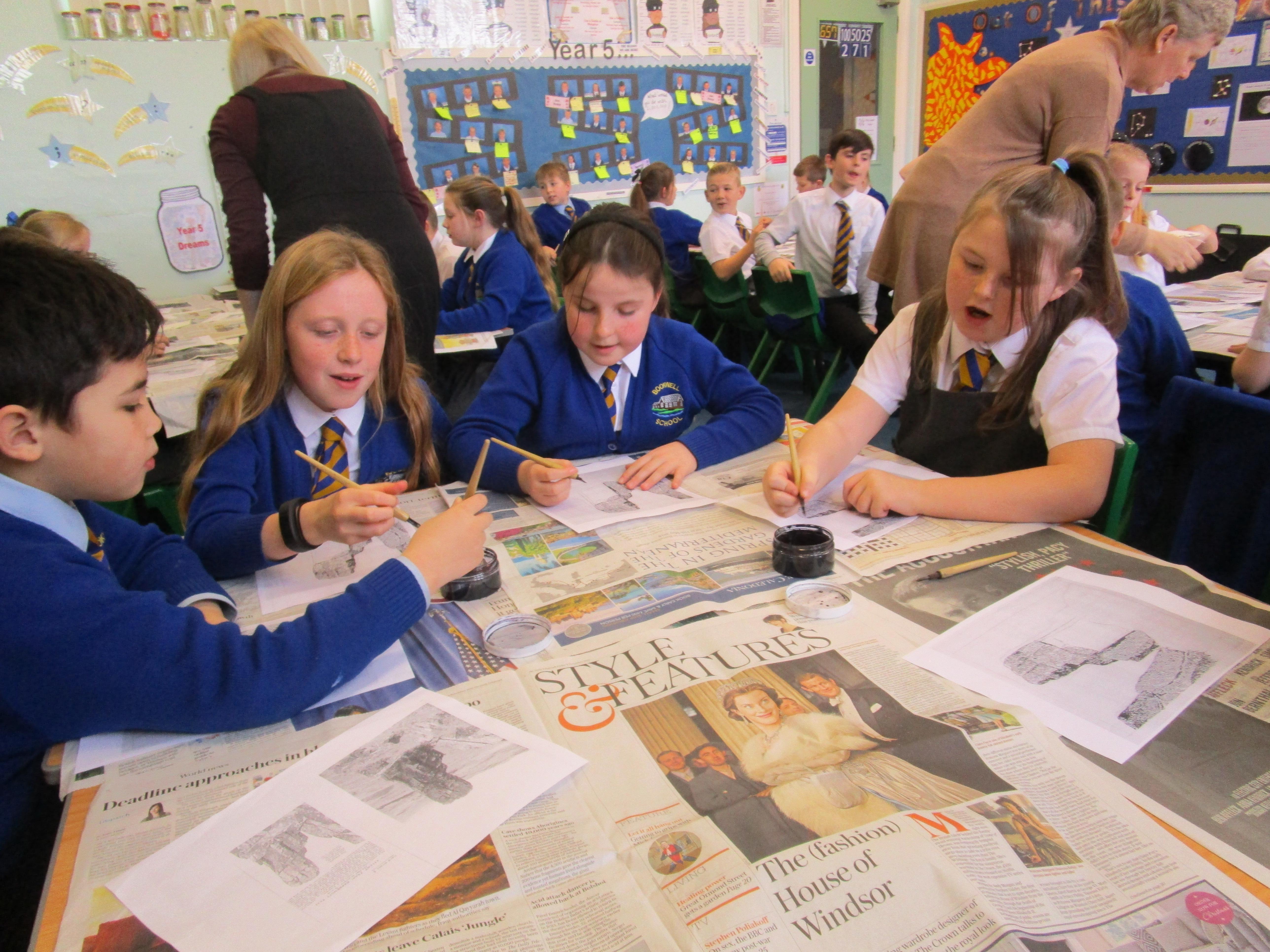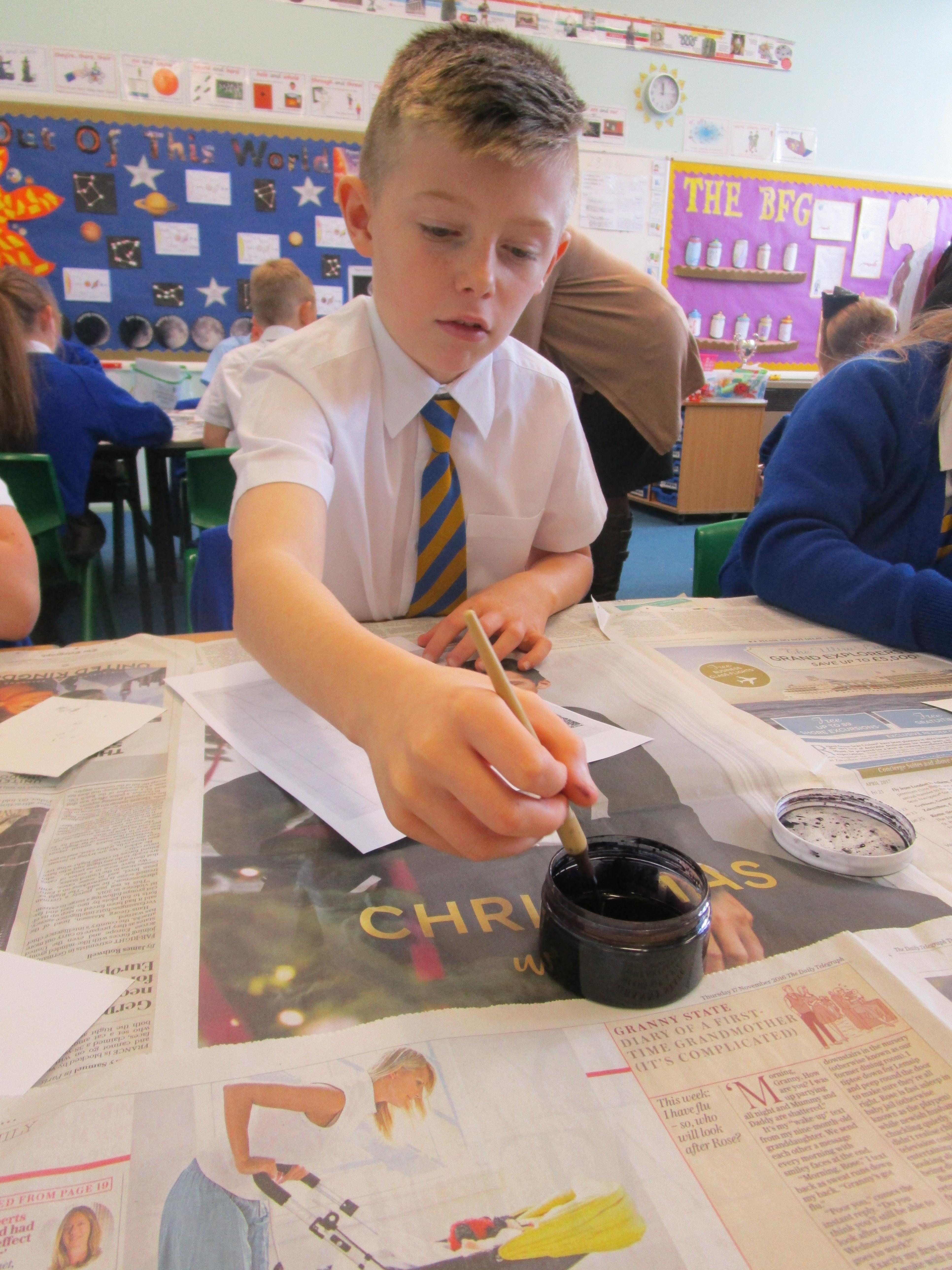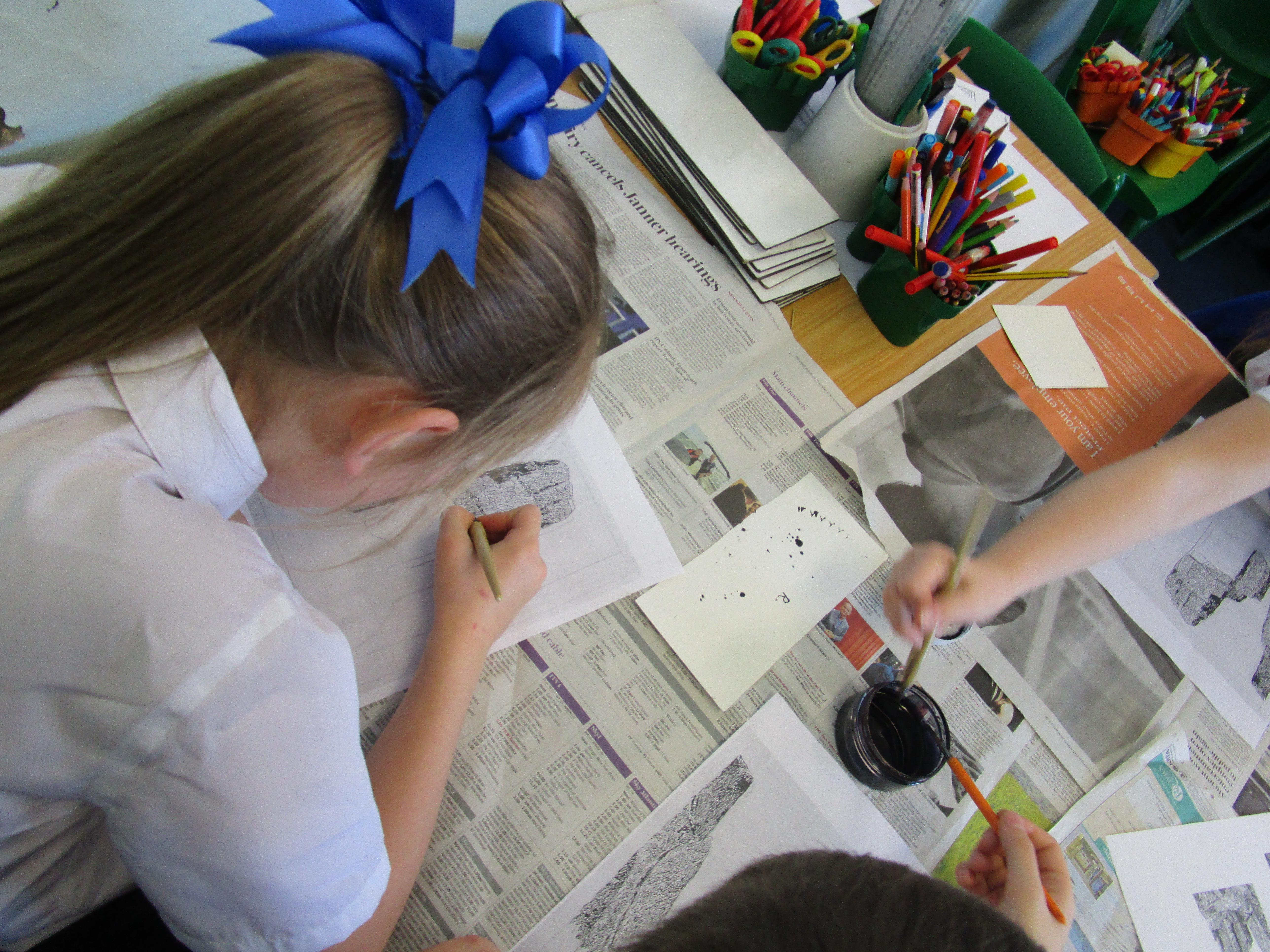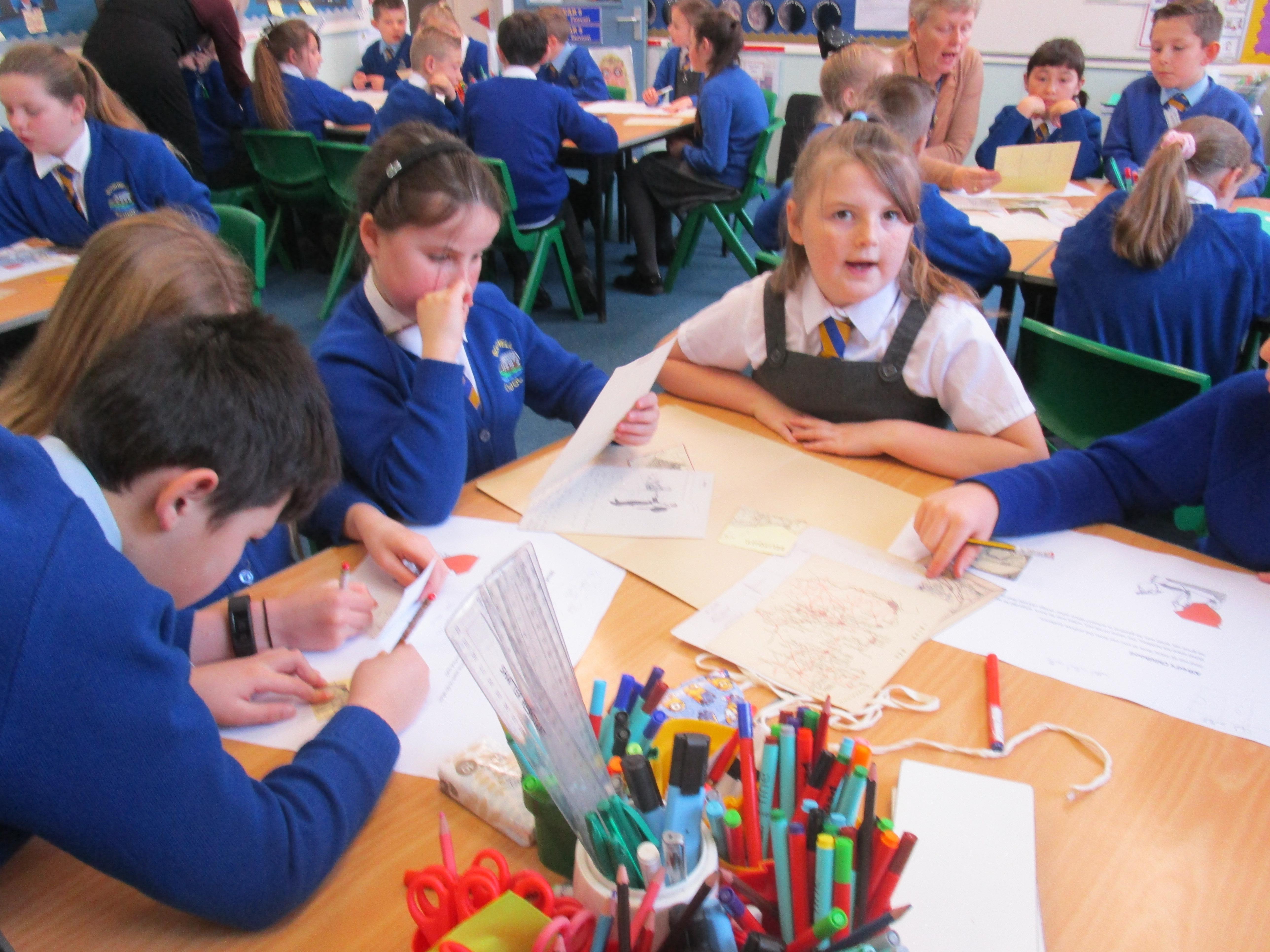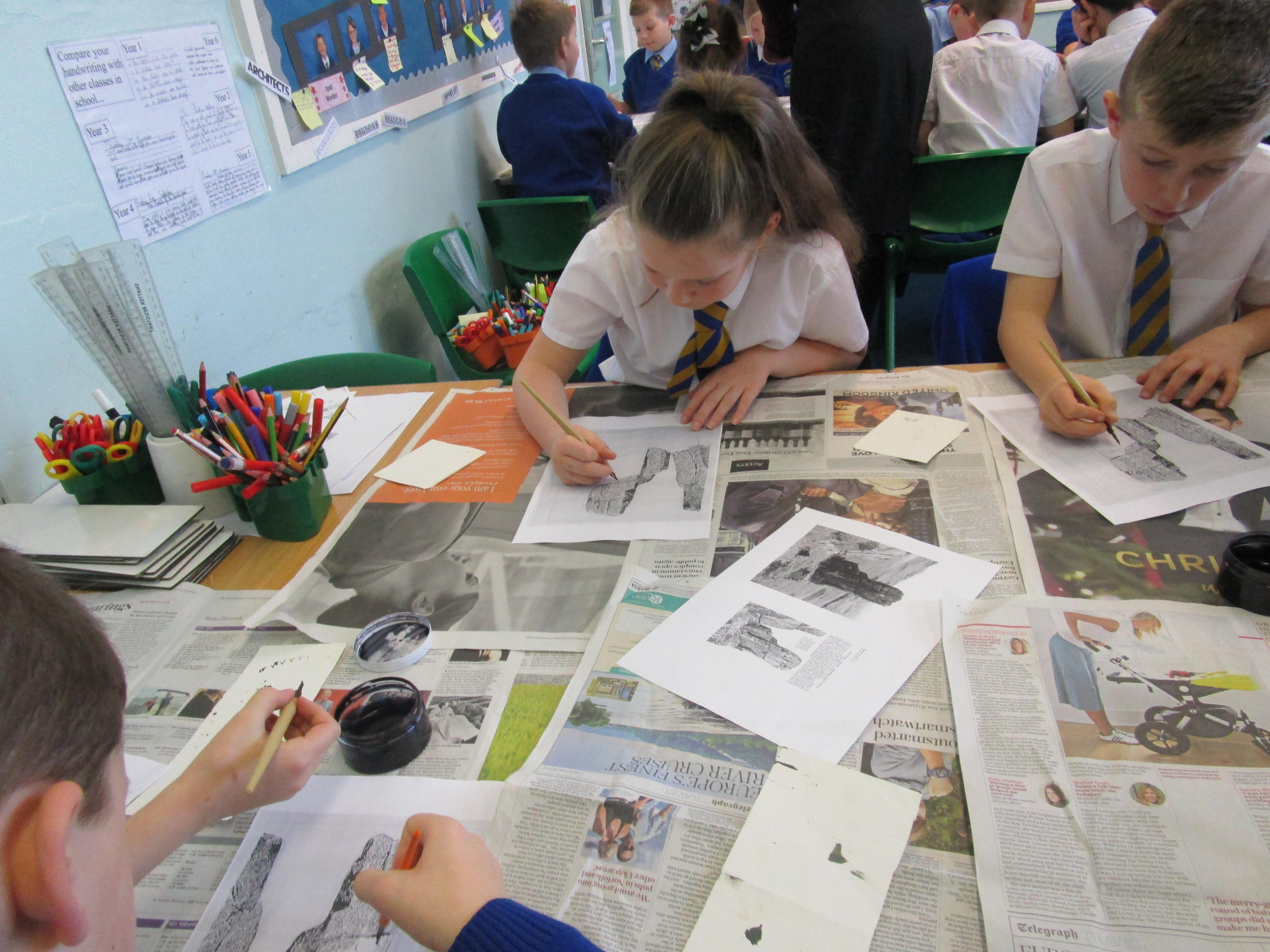 On Monday 28th November Anne and Tanya came in from the library service and introduced us to the guide books Alfred Wainwright wrote about the Lake District. We found out about his life as a child, hs school life and his love of the lakes.  His drawings were amazing (we found out how to draw like him  using ink) and he had the most beautiful handwriting.  We discovered he published his books in black and white to keep the cost of them down so more people would be able to afford them and hopefully adventure out on the Cumbrian fells.