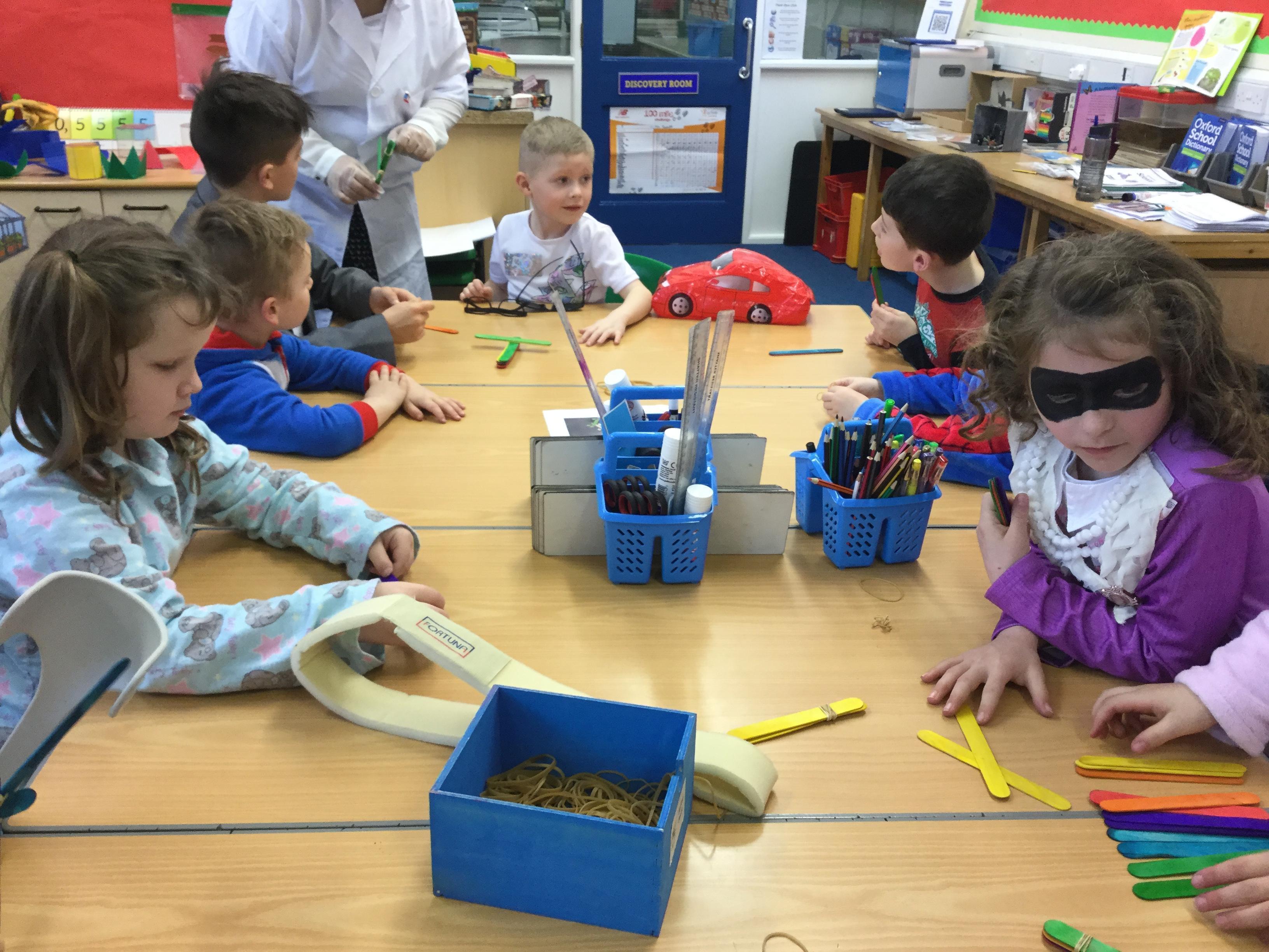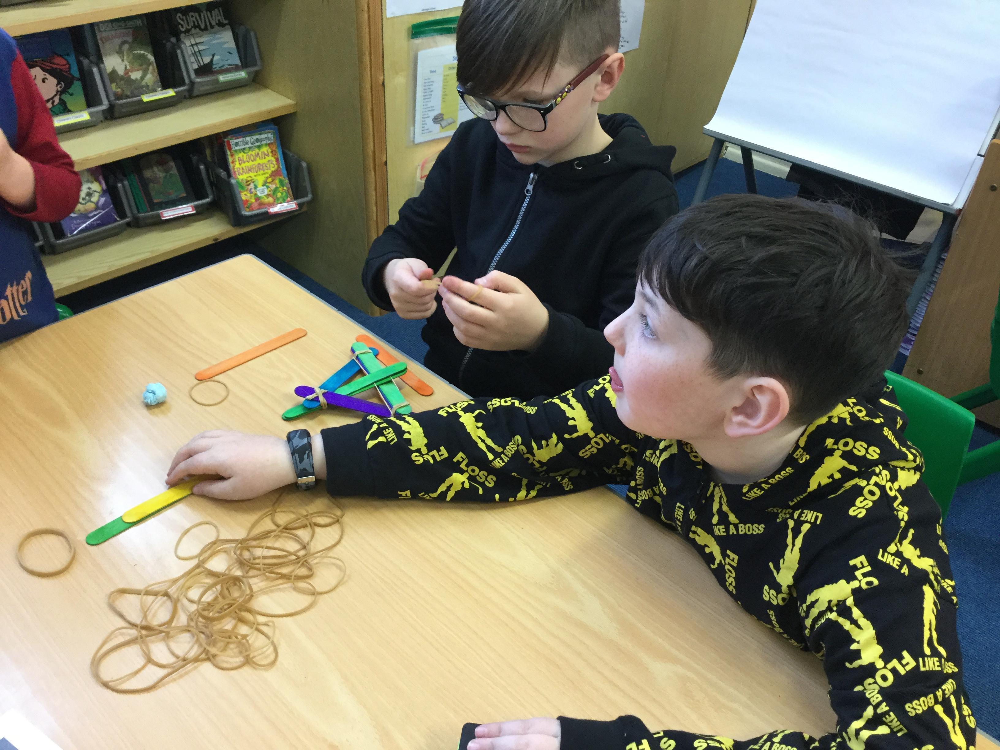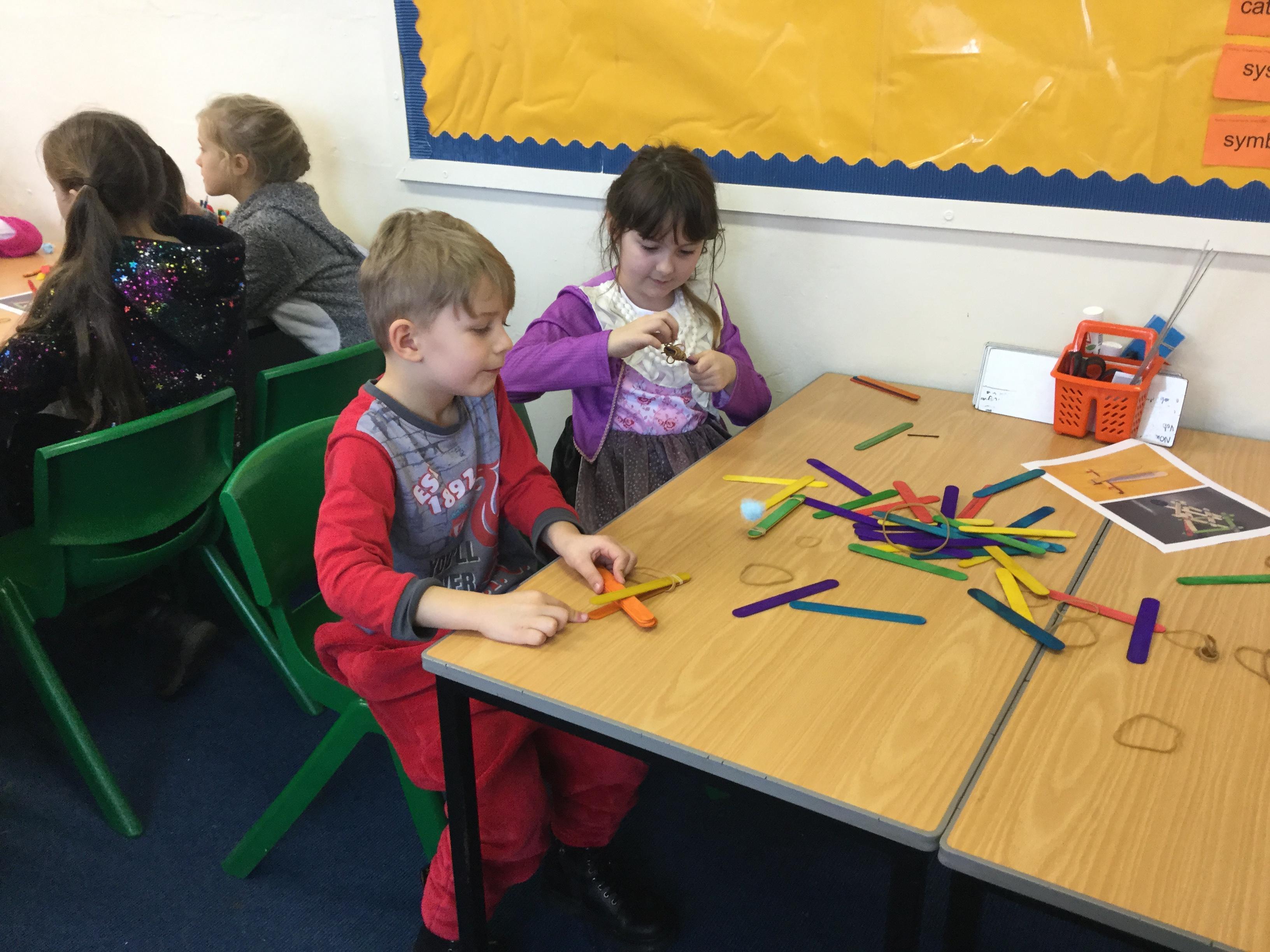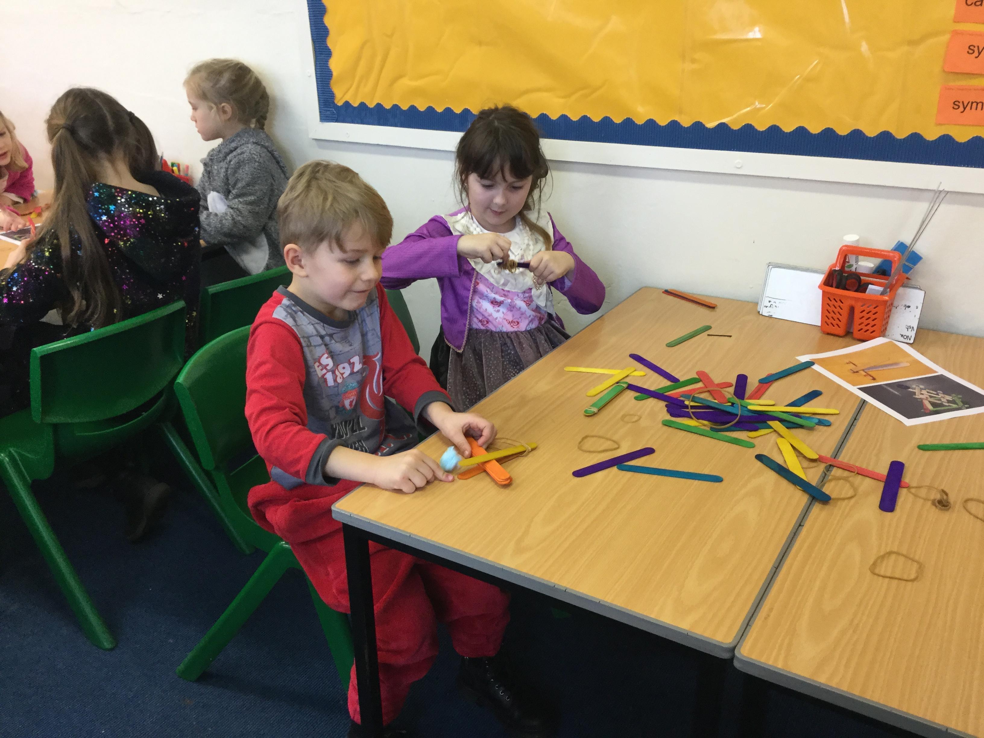 After reading Boogie Bear children were inspired to create a catapult that made a twong and would launch a bear.  Some children made their favourite scene from the story.
