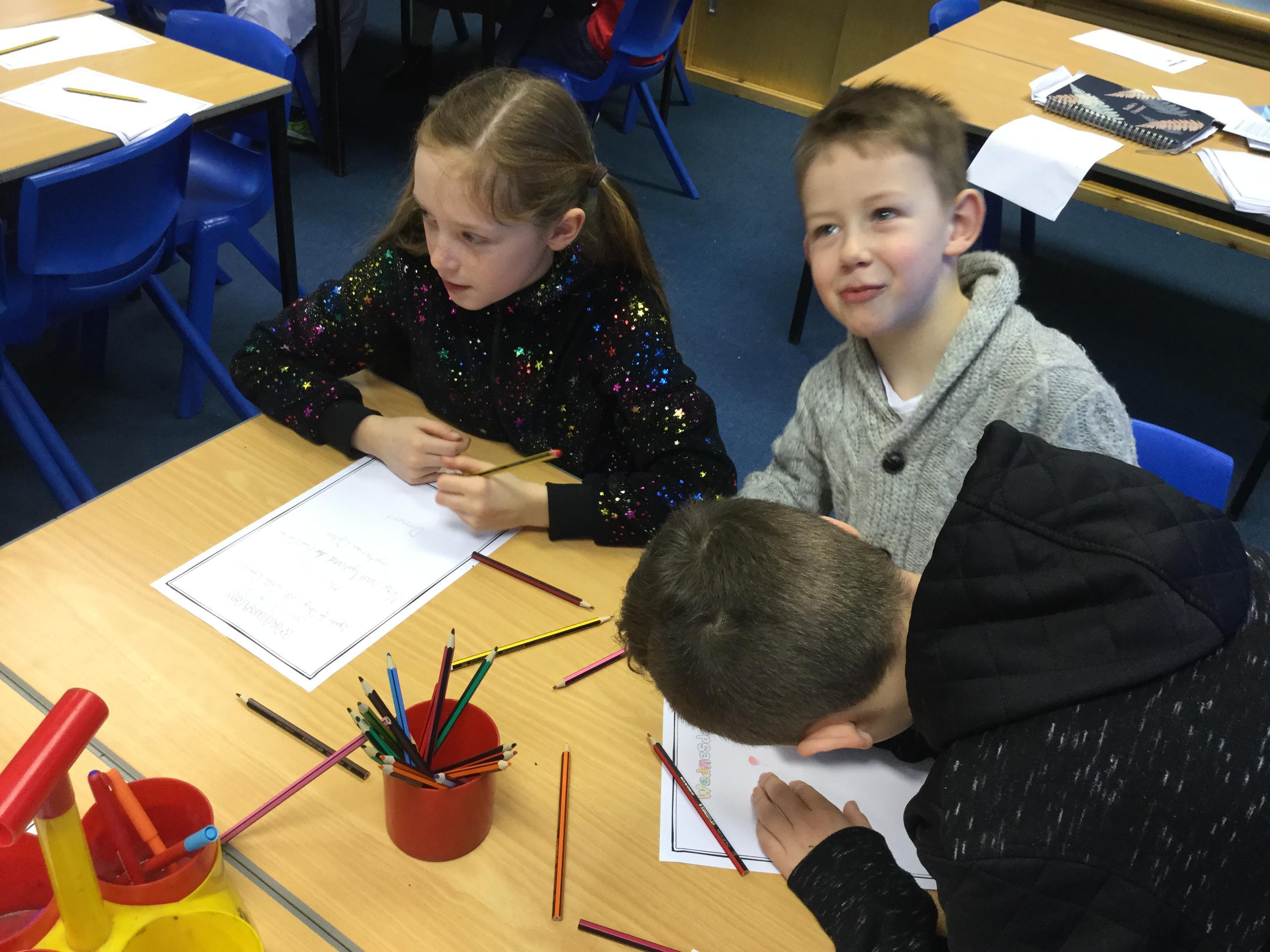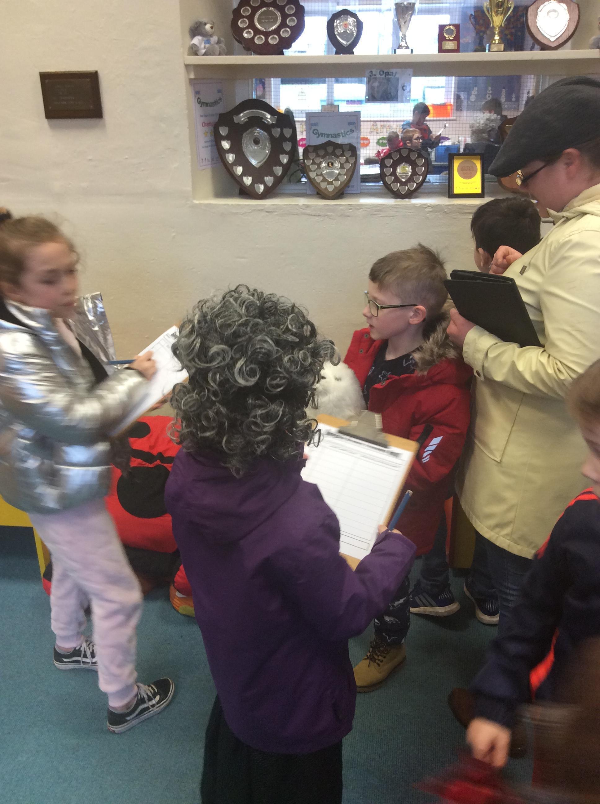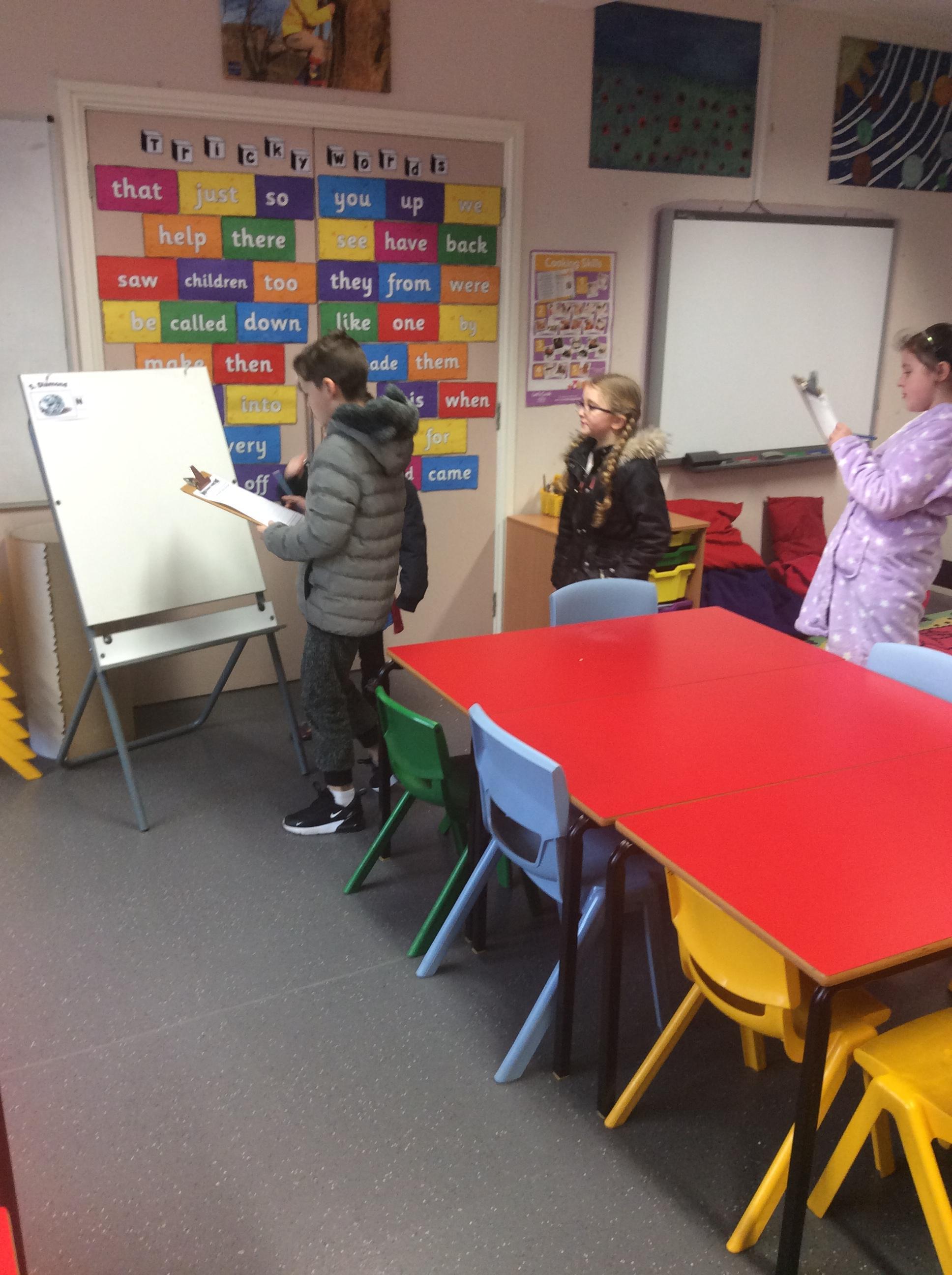 Firstly we read a couple of chapters from the story to give us an insight into the characters and the plot. We then went on a treasure hunt around the school to find jewels. Each jewel had a name and a letter which the children had to record. They also had to record where they round each jewel. The  children then had to unscramble the letters to make the following words:- “Crown jewels”.