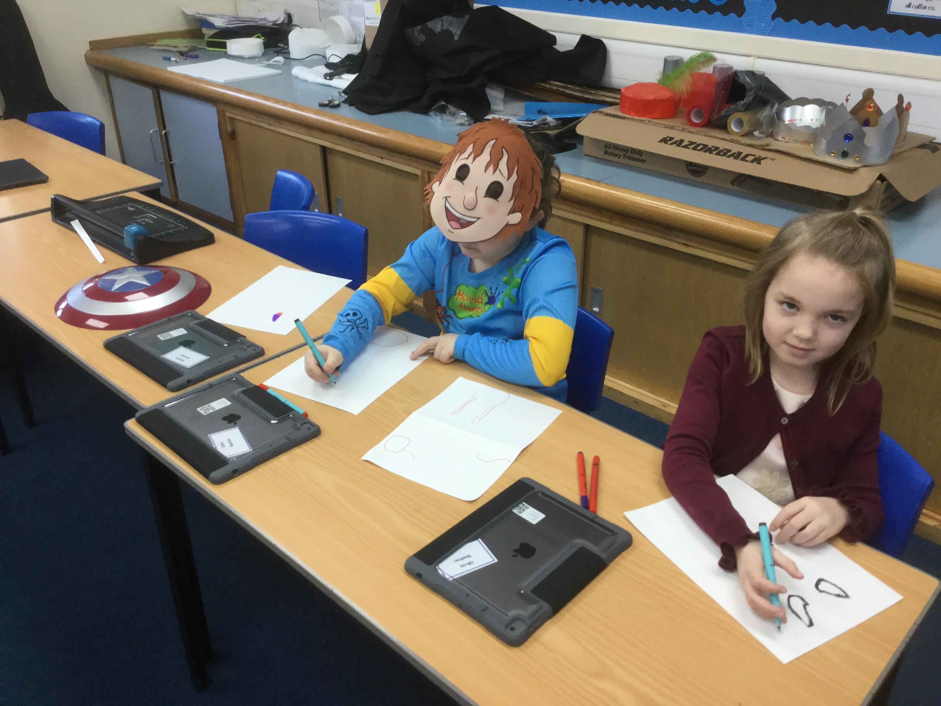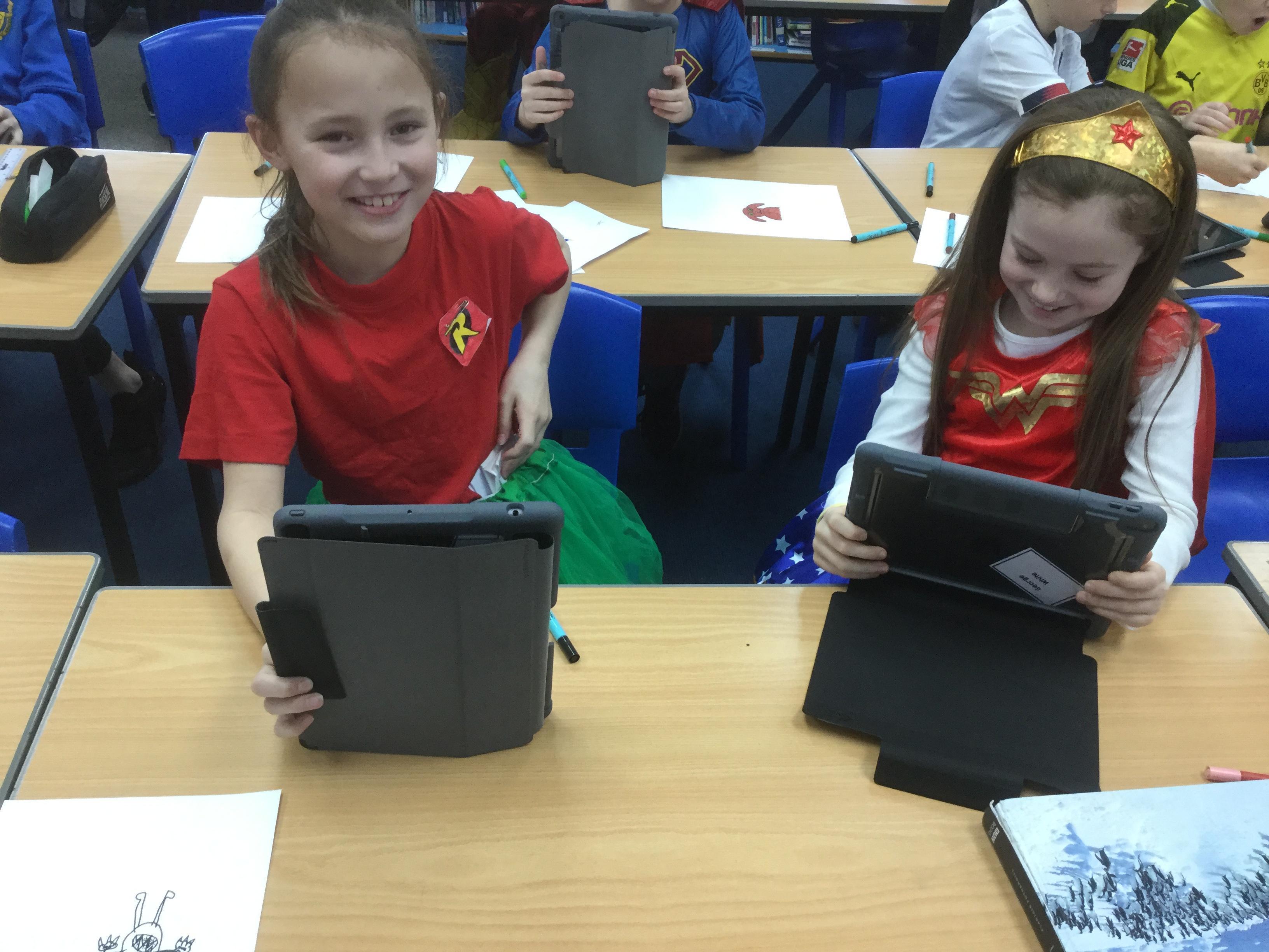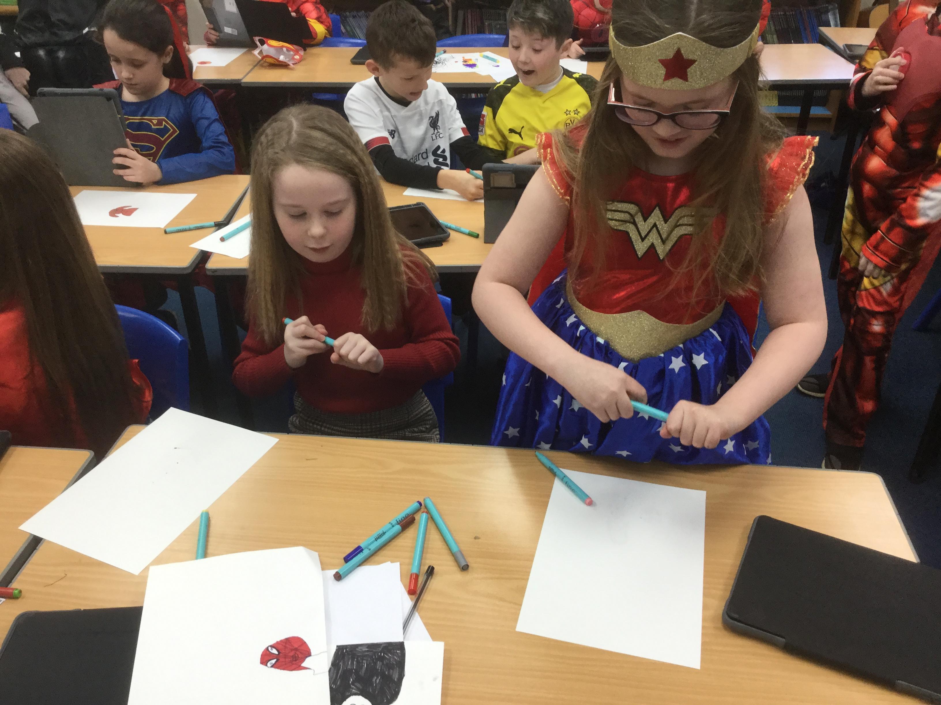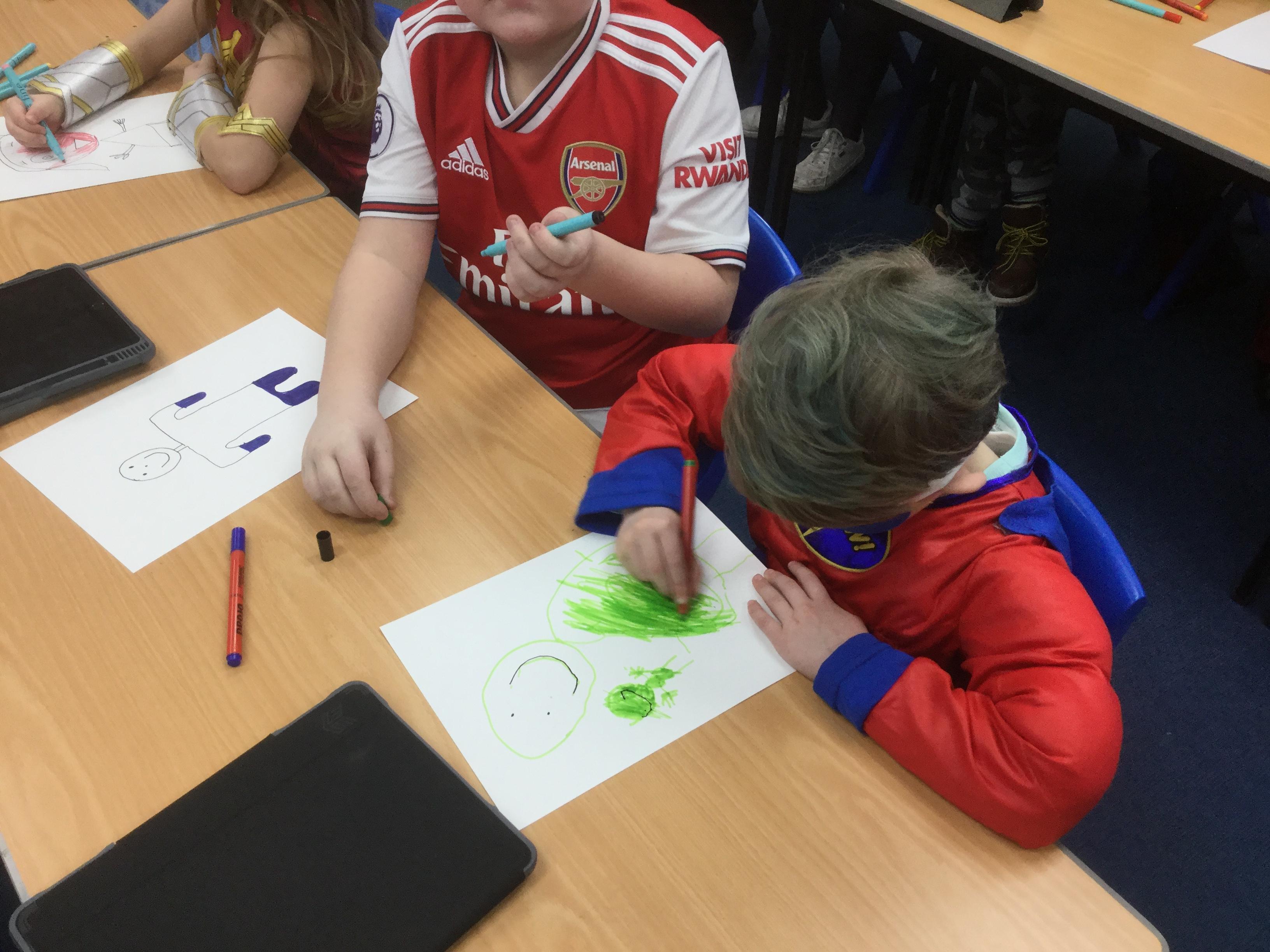 The children who visited Year 6 drew their own comic characters, then brought them to life with an app called ‘Chatterpix’.