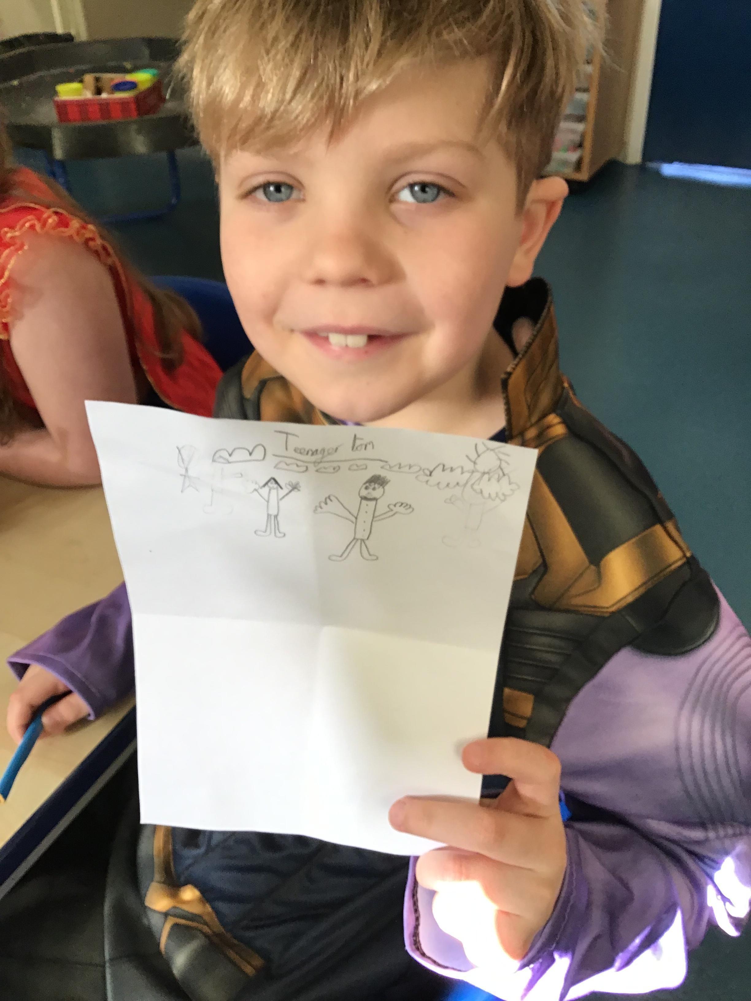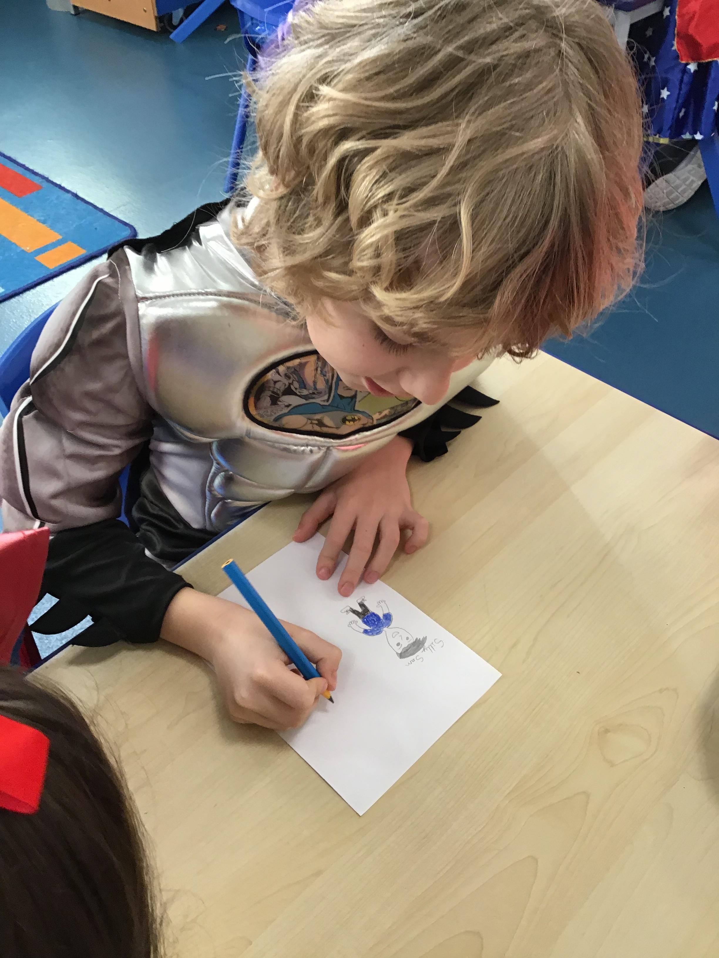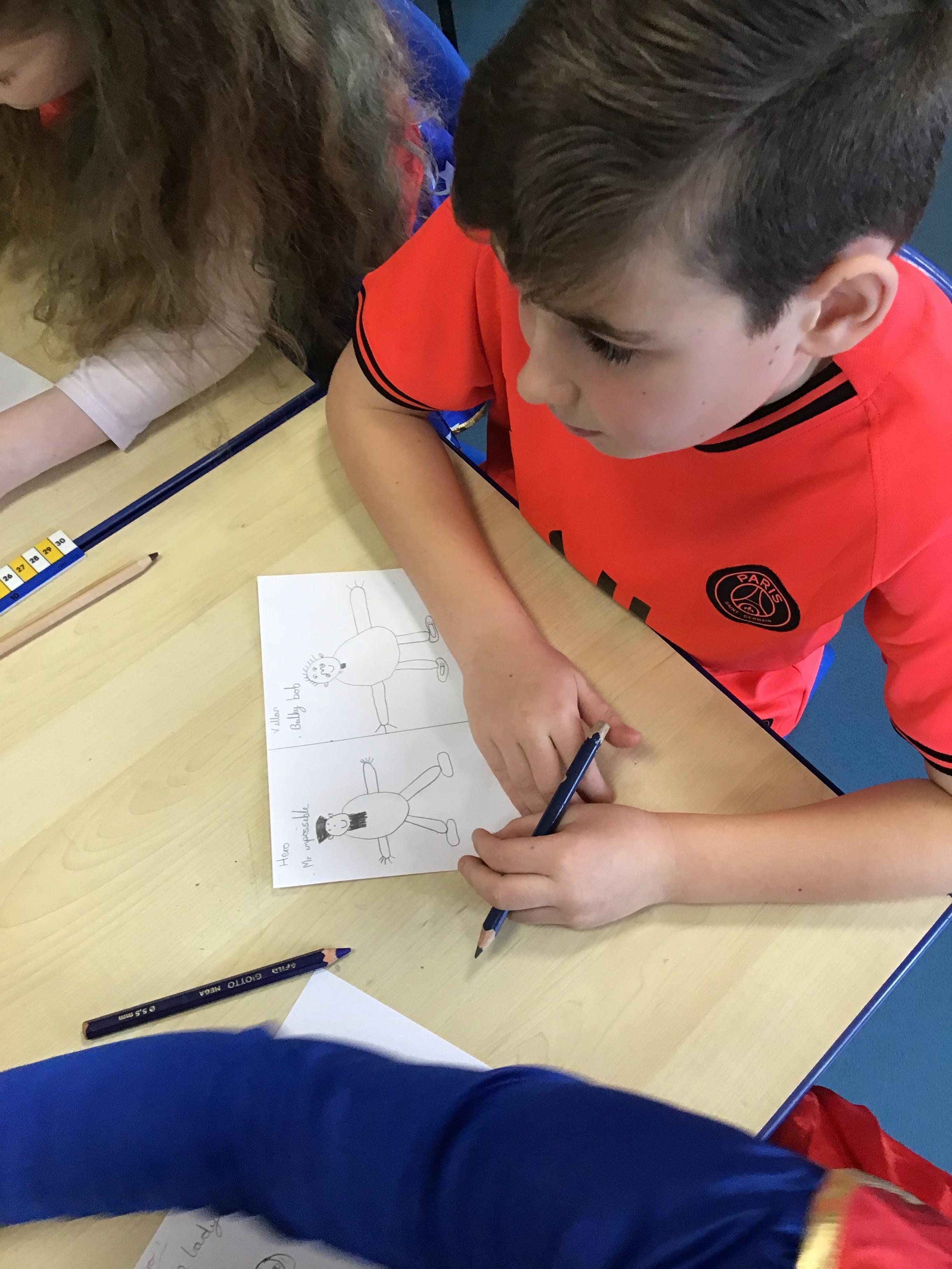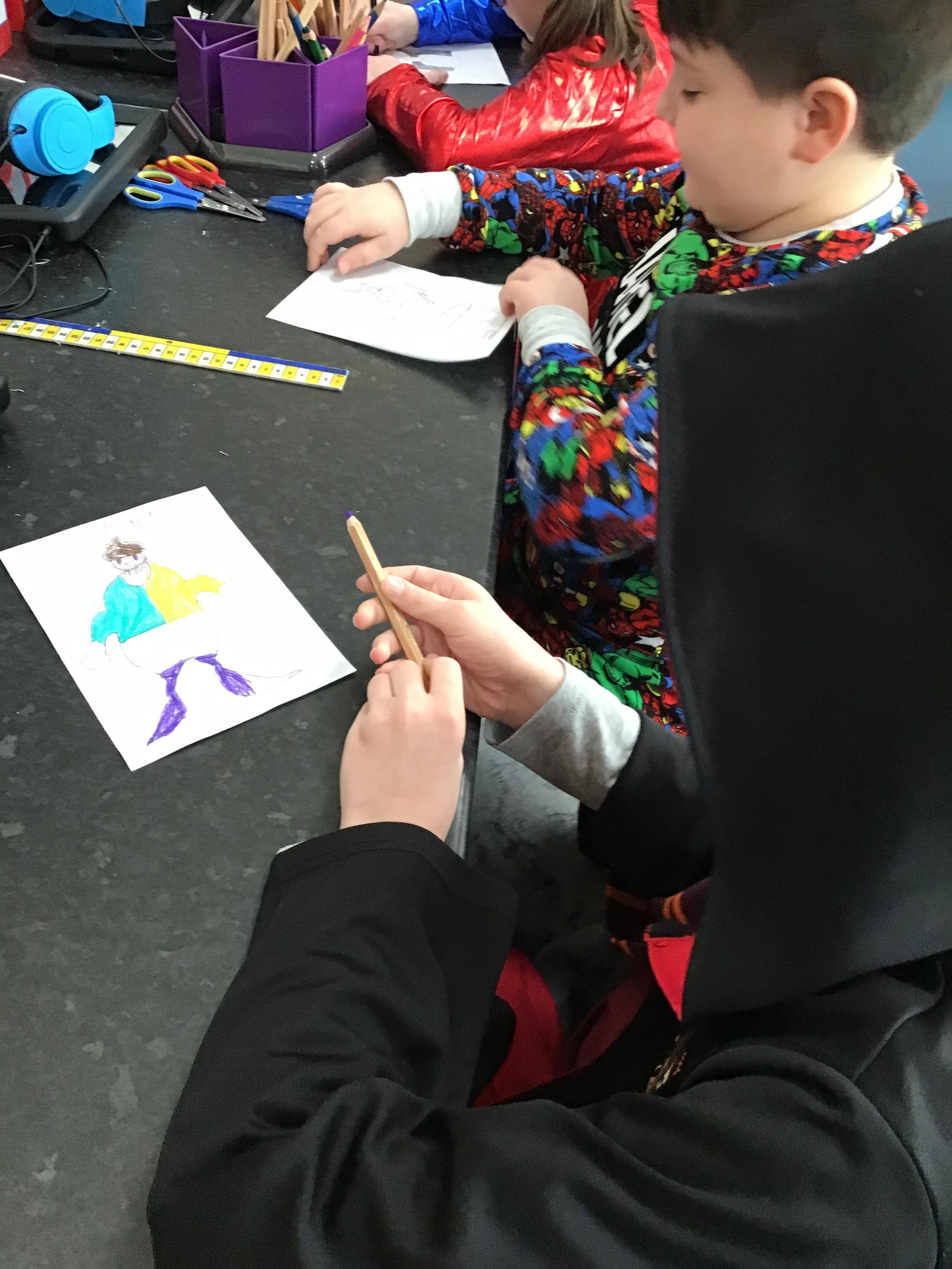 The children who visited Year 6 drew their own comic characters, then brought them to life with an app called ‘Chatterpix’.