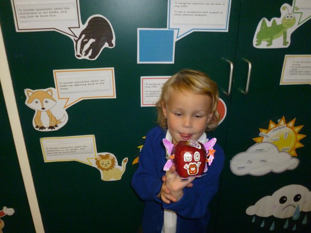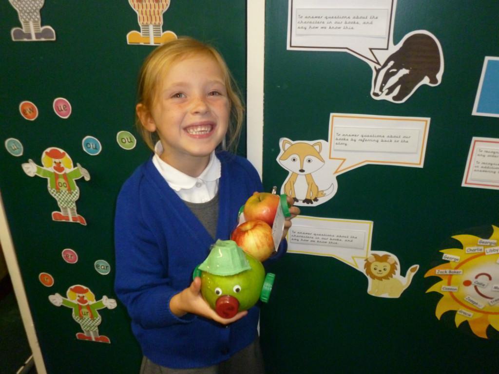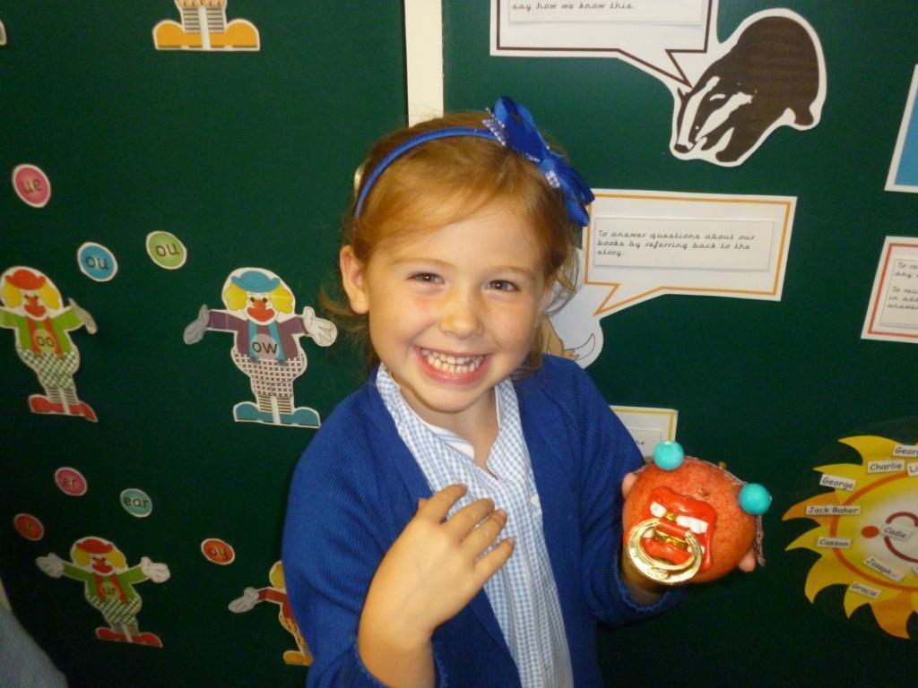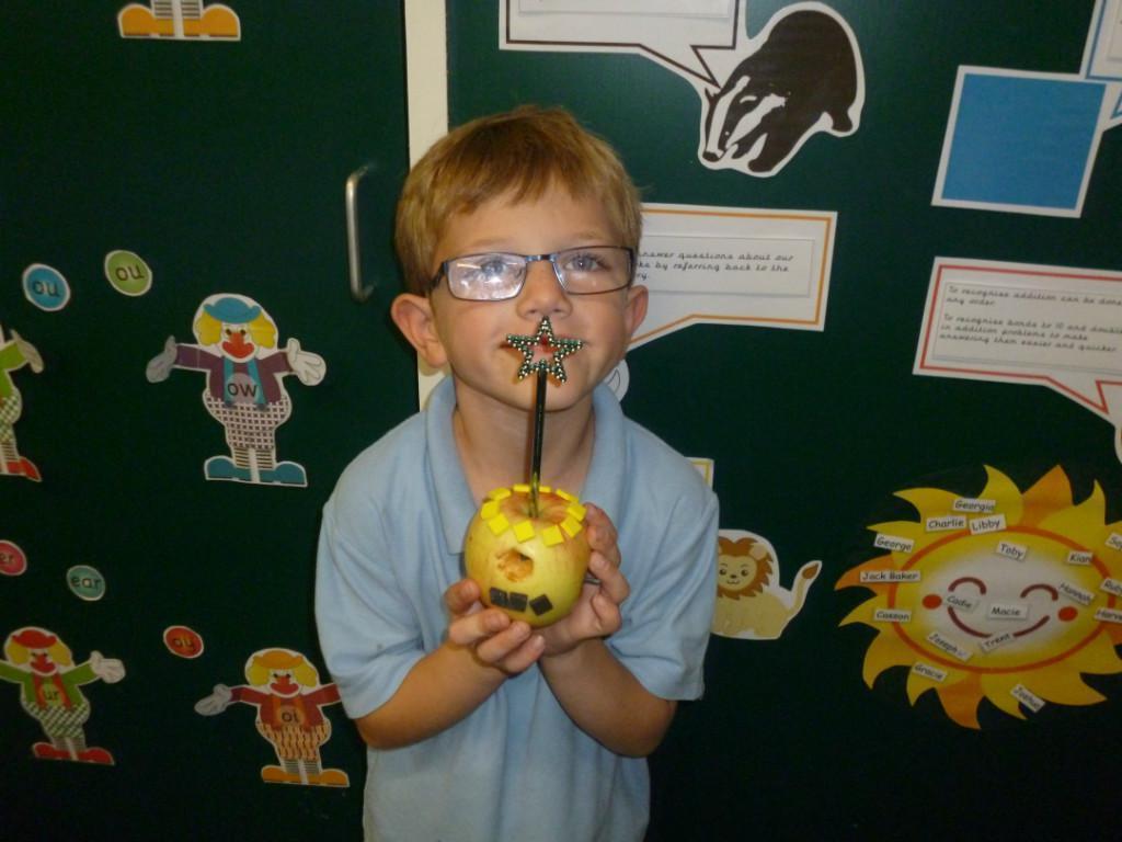 Some of the children brought in entries for the Crab Fair 'Design an Apple' competition.  The theme this year was the Crab Fair itself, so we had designs like gurners, pipe smokers and greasy poles.  The children had obviously worked really hard on their designs and were justly proud of them. Well done boys and girls!