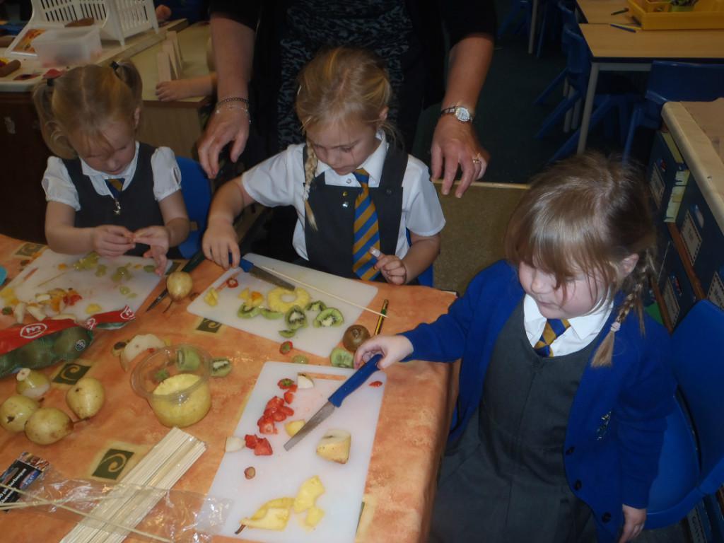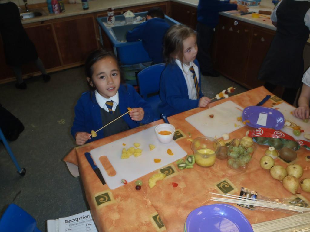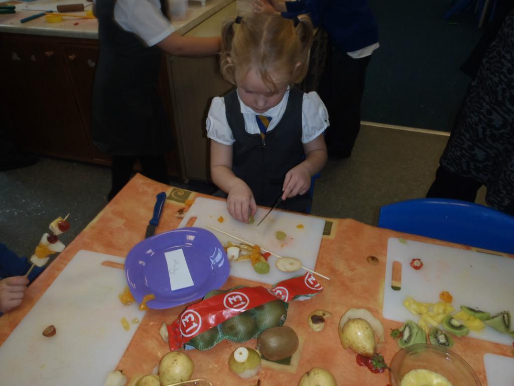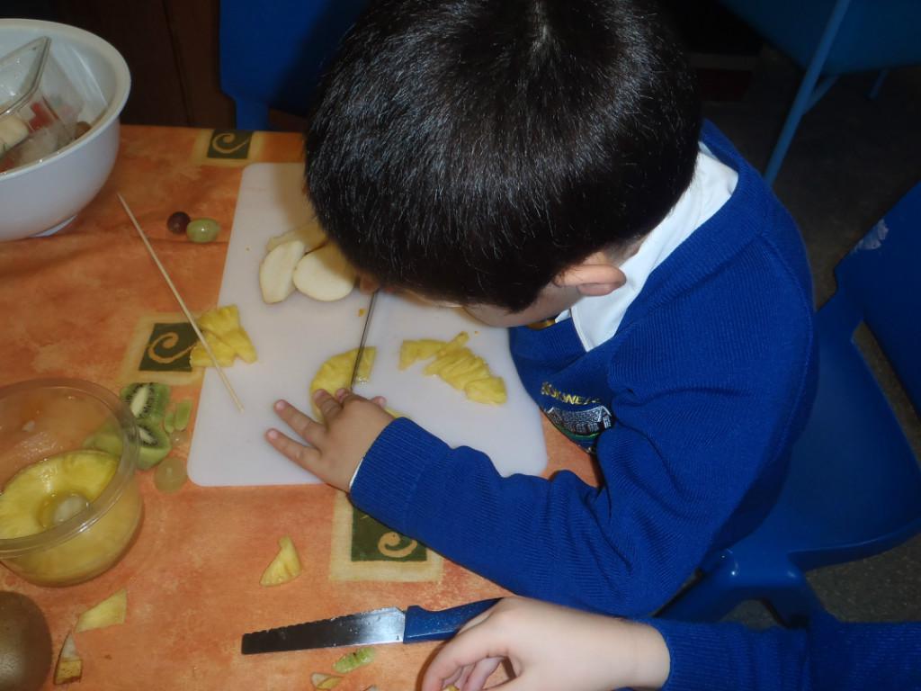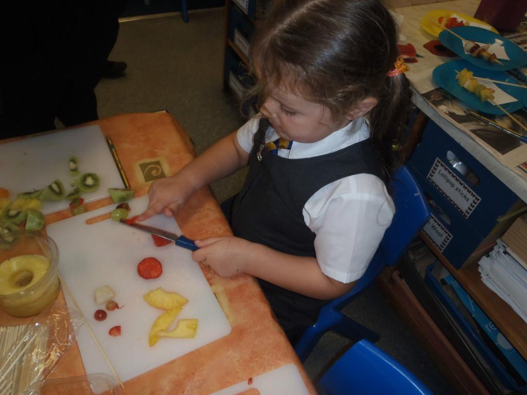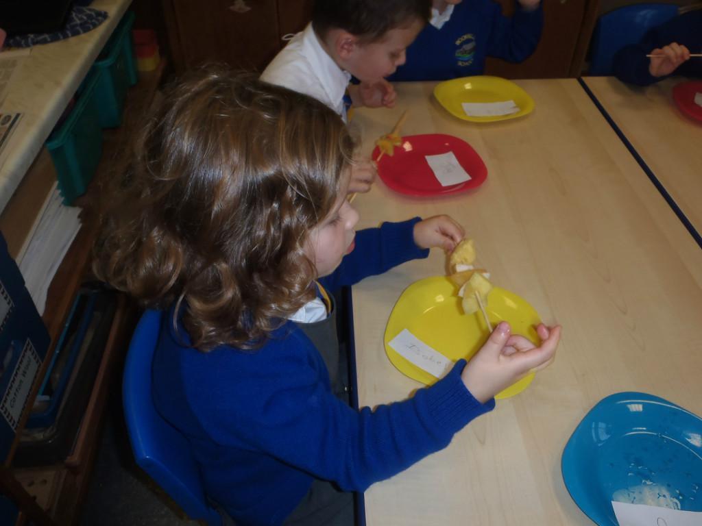 We made fruit kebabs this week. Some of us decided to make repeating patterns with our fruit. We really enjoyed eating them at the end of the day. Yum! Yum!