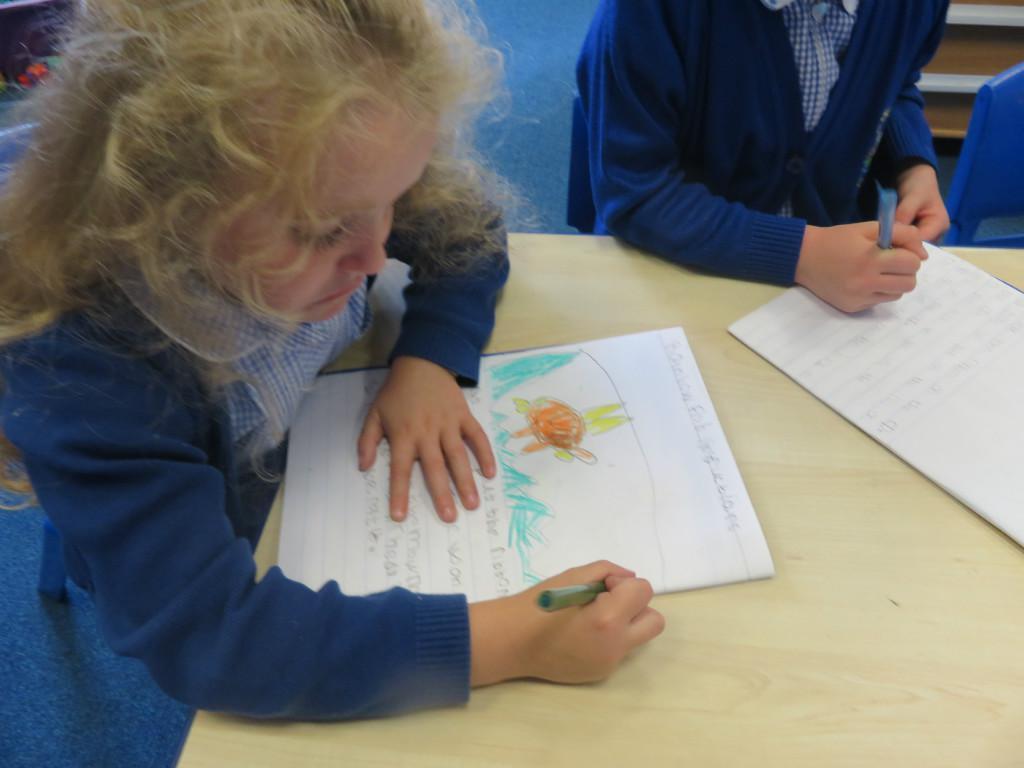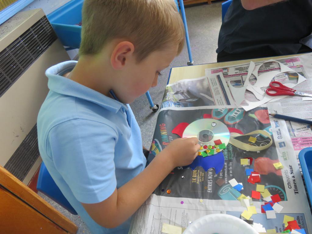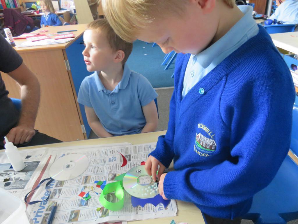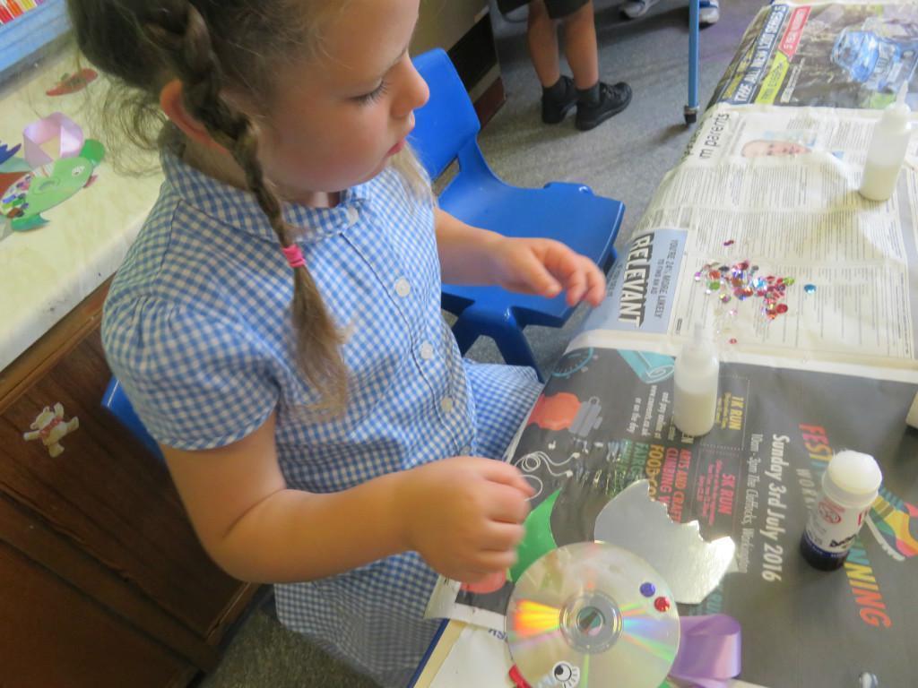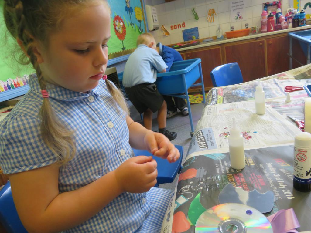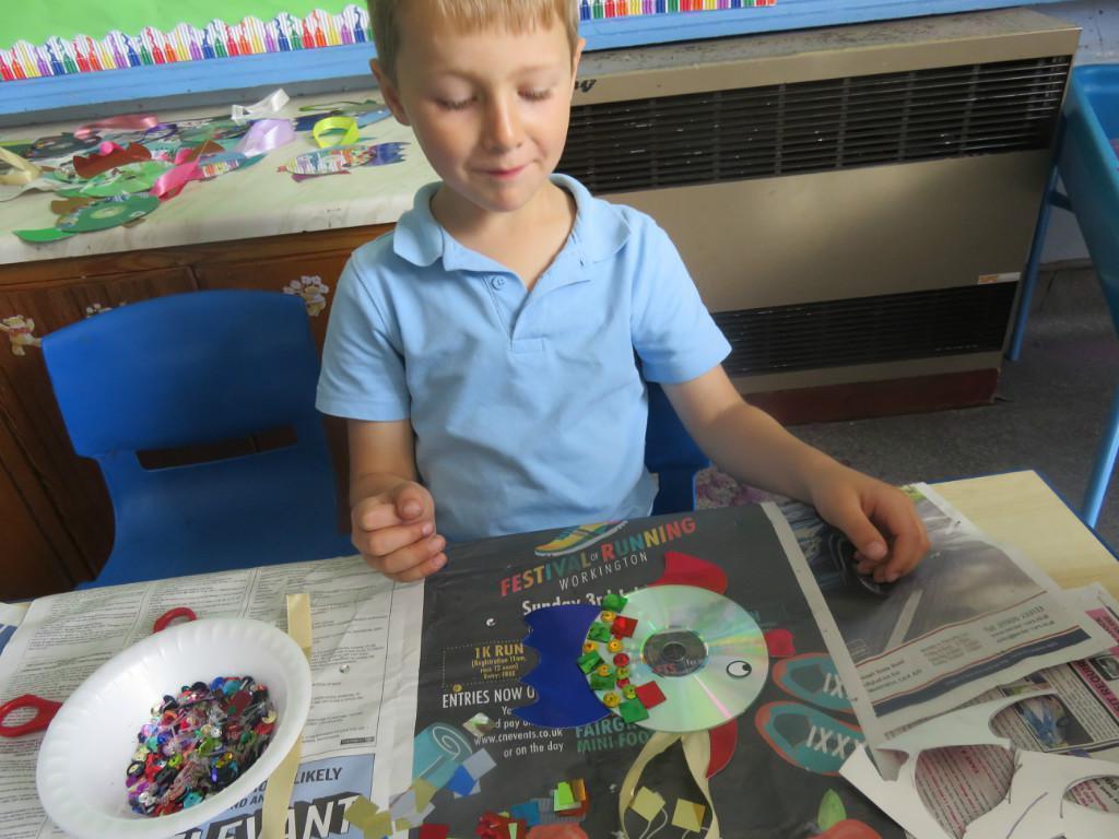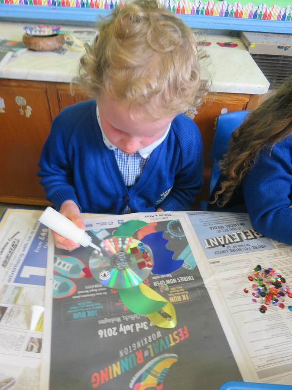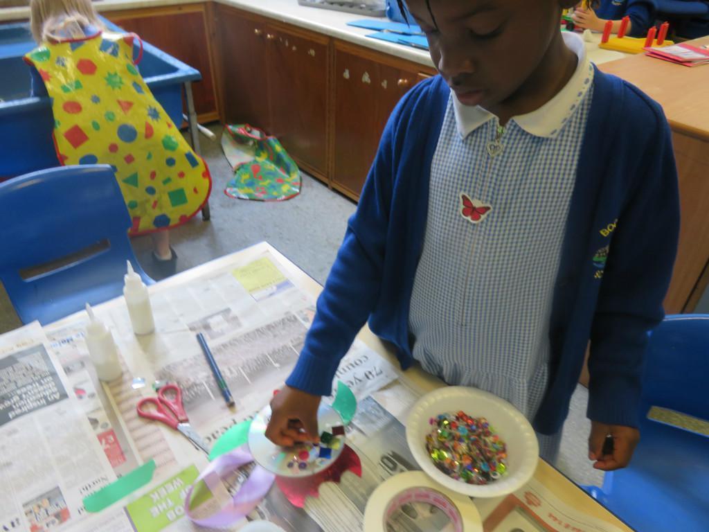 We have been really busy in class this week. We made rainbow fish using a cd, ribbon and lots of gems. We then had to do some instruction writing in our very special books. We tried really hard.