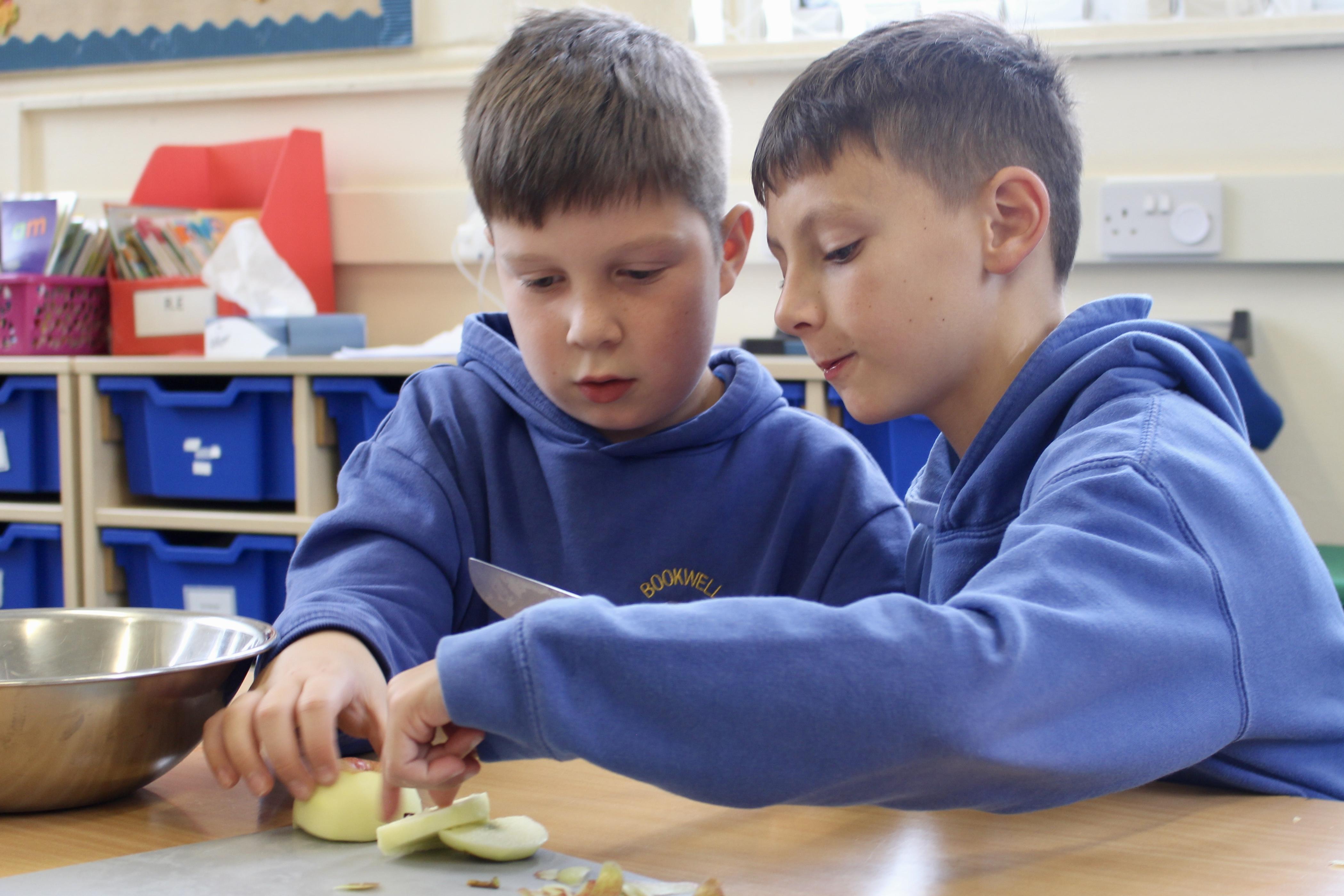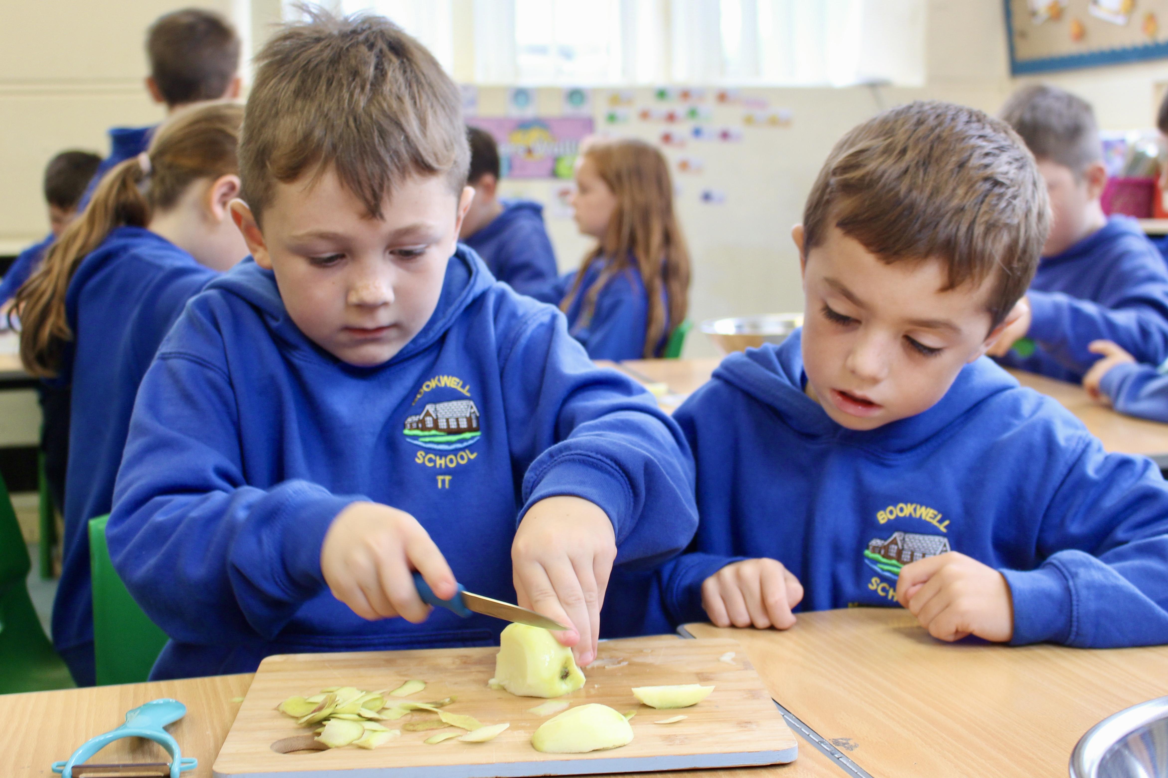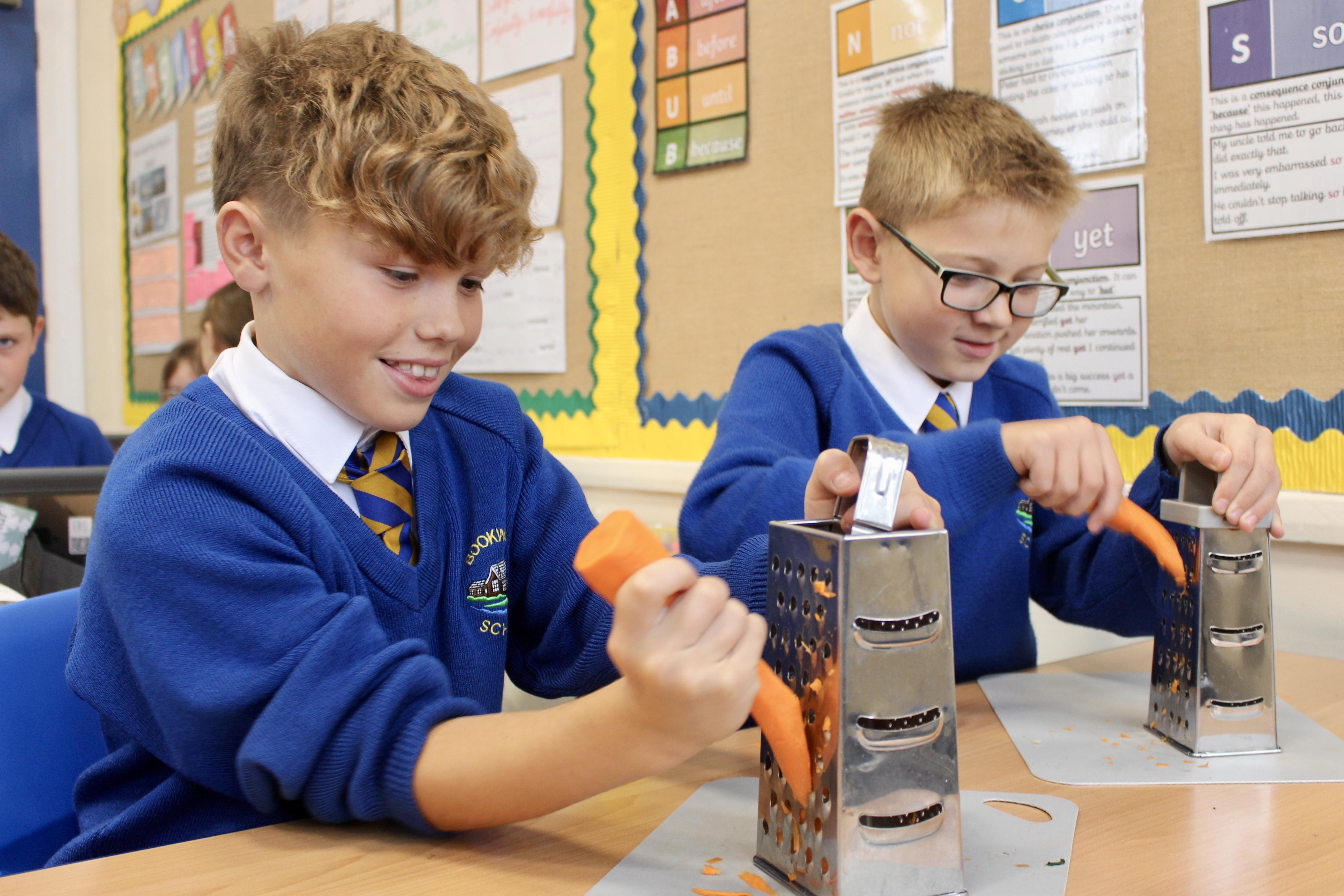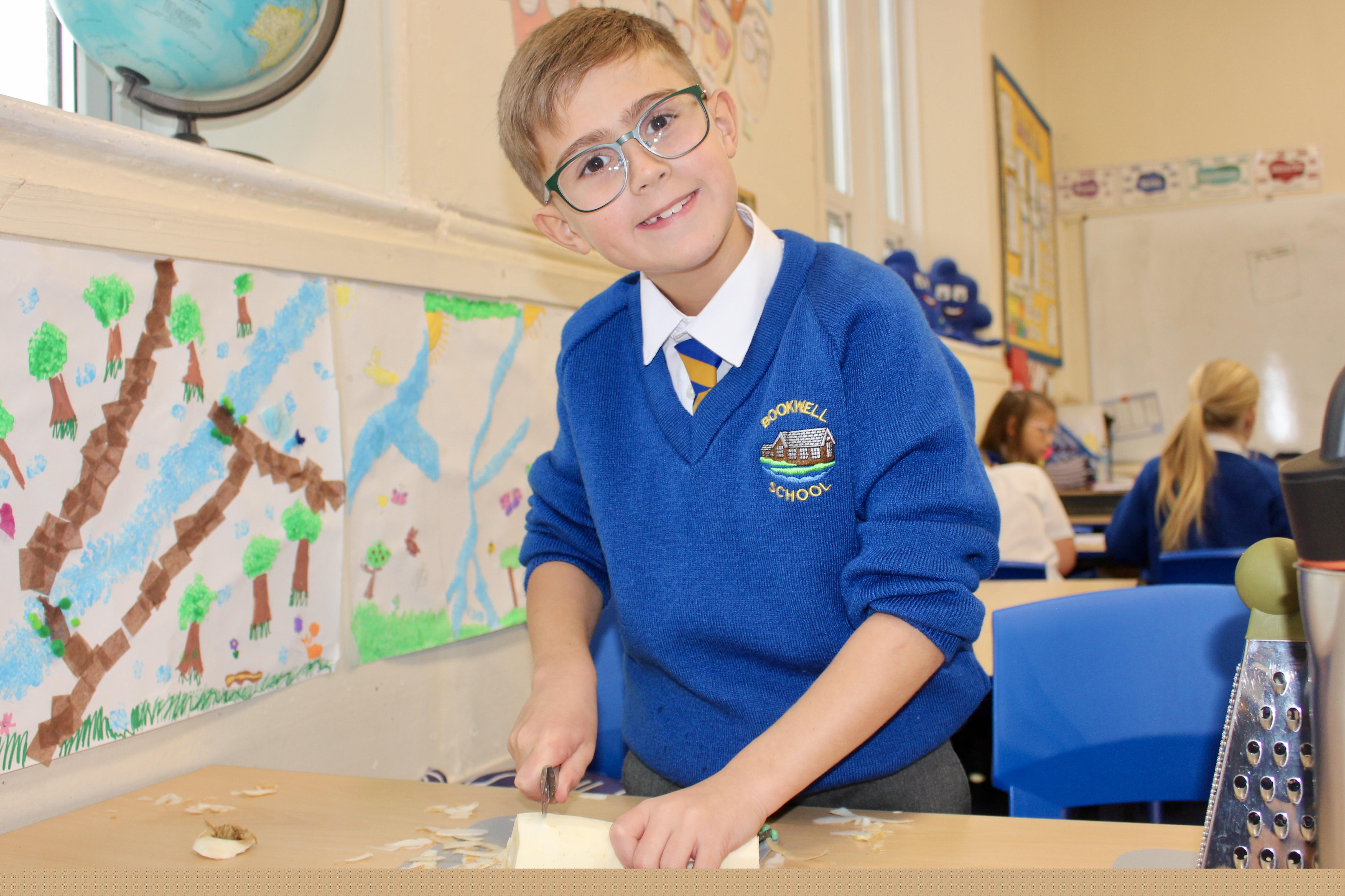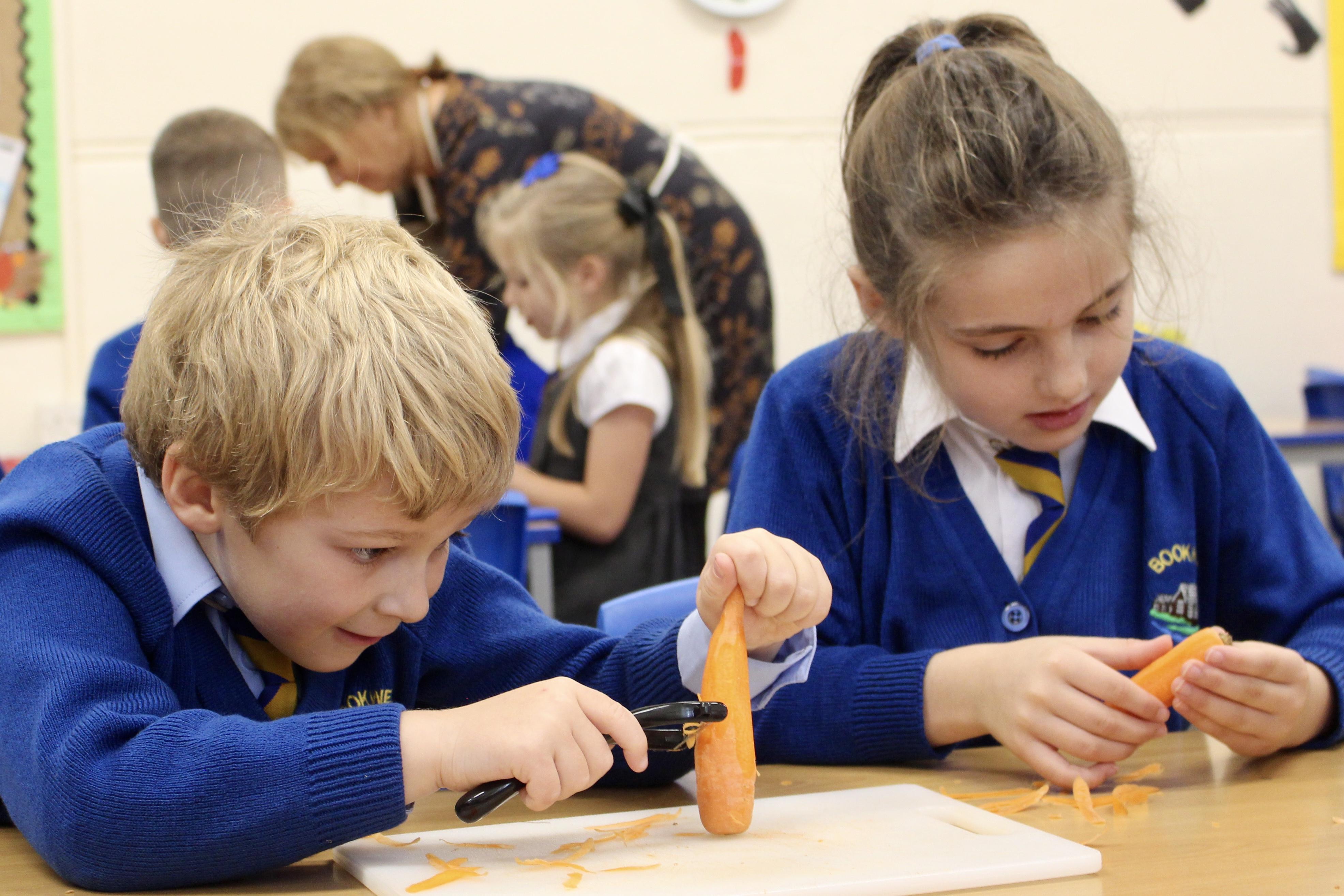 Mrs Carver used to be a school governor and was also the kitchen manager for many years. Unfortunately, a couple of years ago she became ill and was unable to carry on in her role as governor. Mrs Carver always supported the school and was so enthusiastic about the children, making sure they got the best experience at this age. To remember all the work she did for Bookwell, we now have a cookery day. From vegetable soup to apple crumble, we had an amazing day making our seasonal dishes.