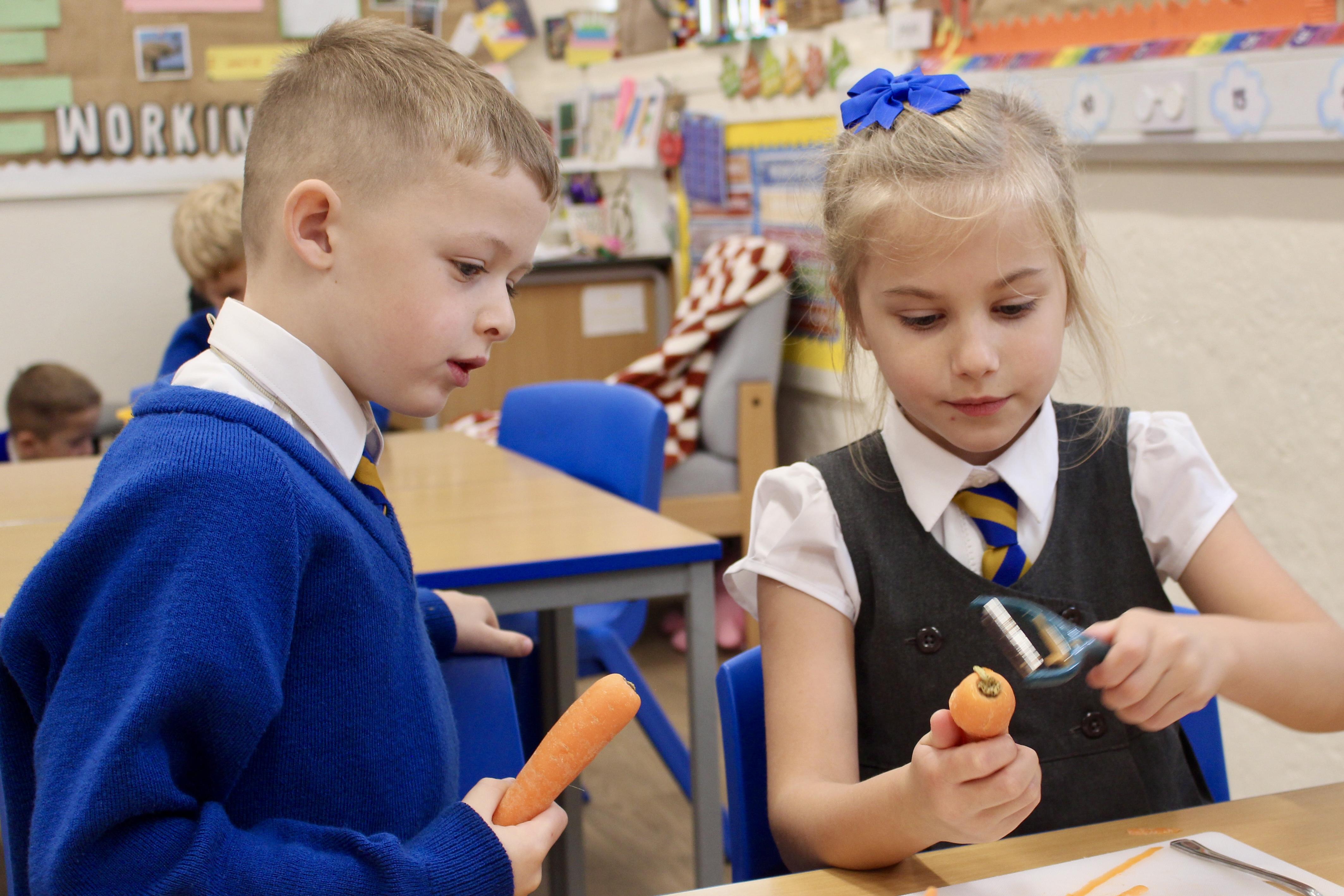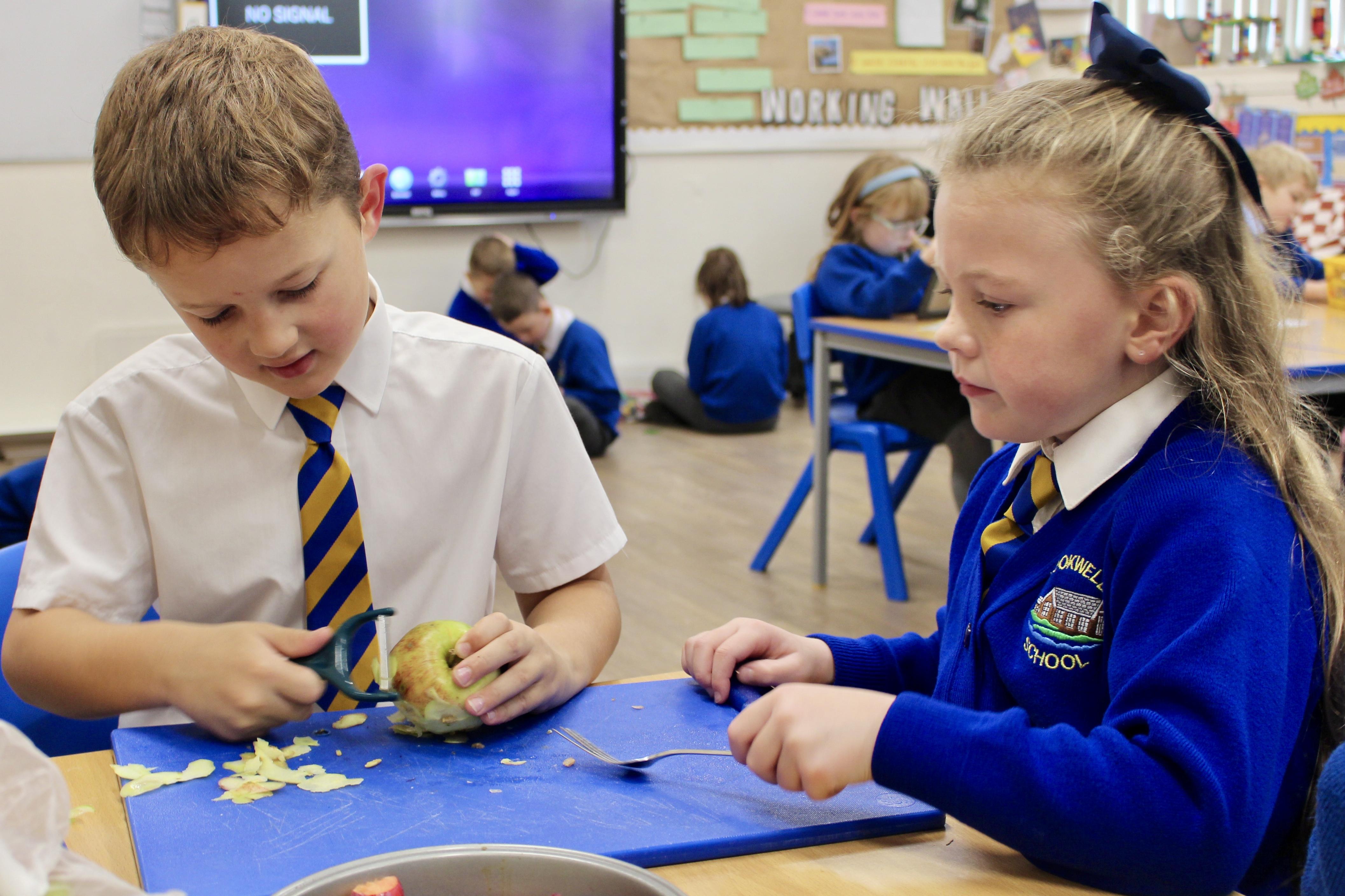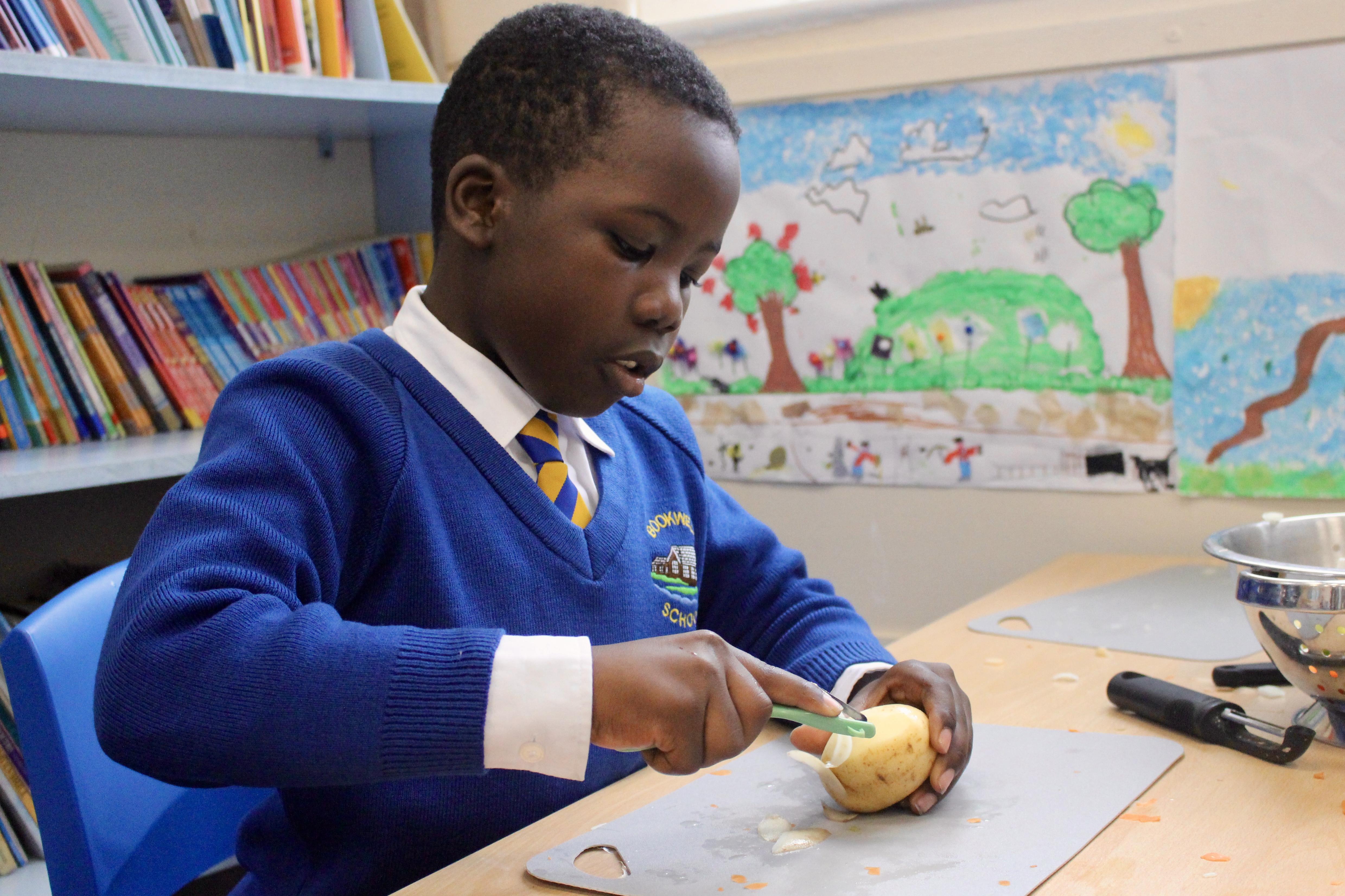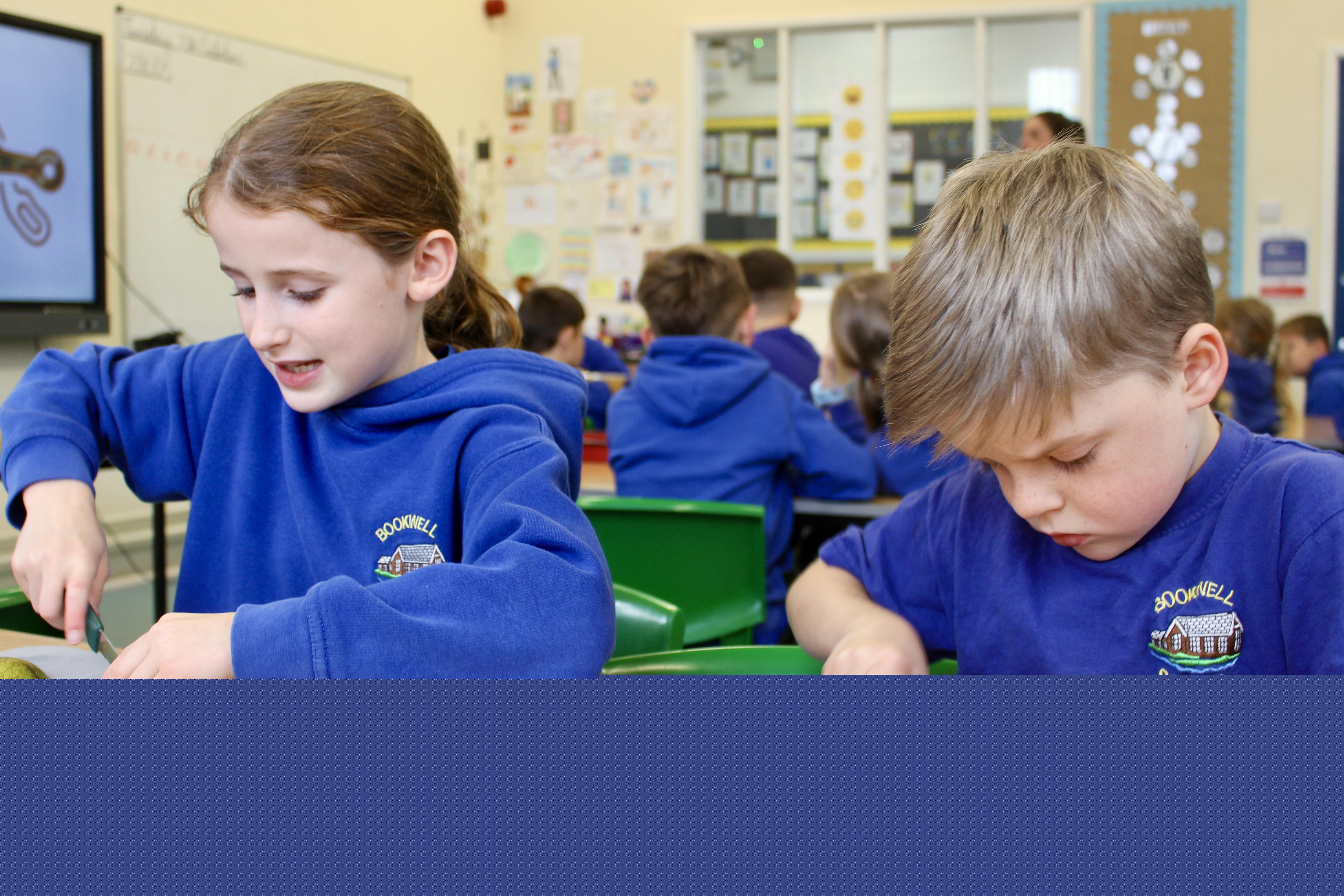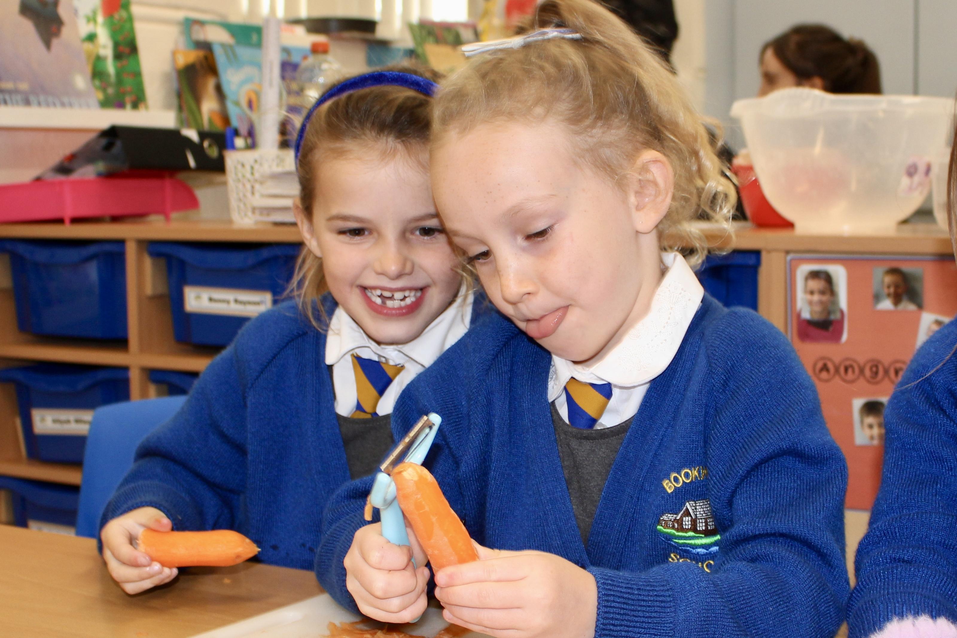 Mrs Carver used to be a school governor and was also the kitchen manager for many years. Unfortunately, a couple of years ago she became ill and was unable to carry on in her role as governor. Mrs Carver always supported the school and was so enthusiastic about the children, making sure they got the best experience at this age. To remember all the work she did for Bookwell, we now have a cookery day. From vegetable soup to apple crumble, we had an amazing day making our seasonal dishes.
