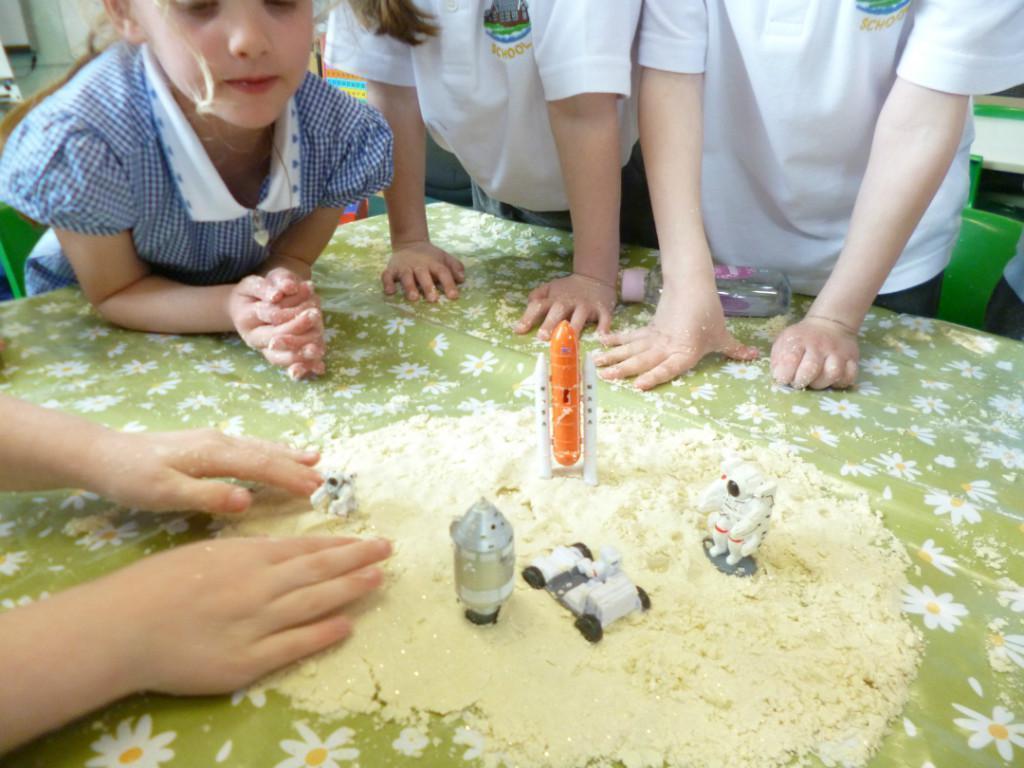 This week the children have been learning about how to write instructions. To tie in with our space topic the children have been learning how to make Moon sand. After we made the Moon sand the children then had to write the instructions for how to make it. It was very messy and they even recreated the first Moon landing with some practical resources.
