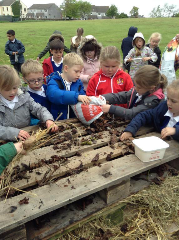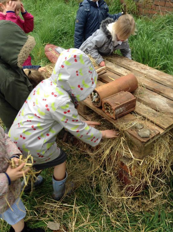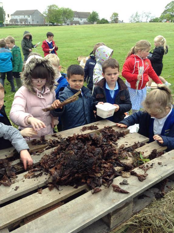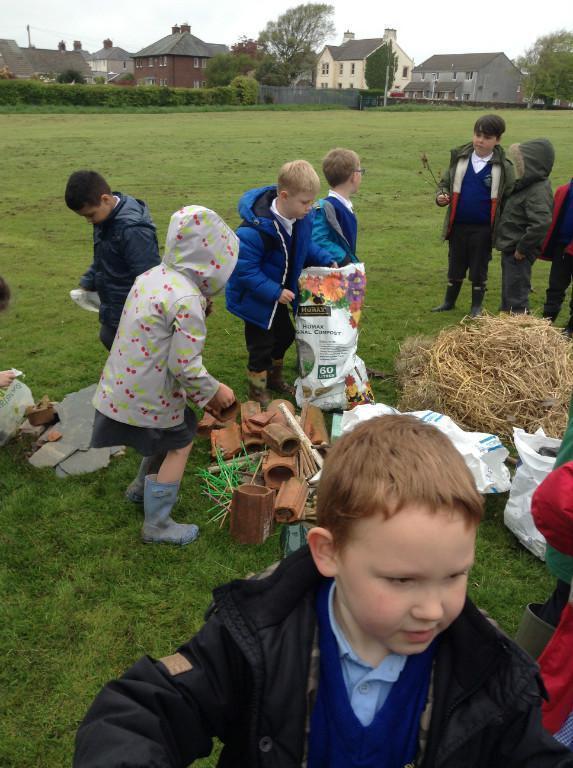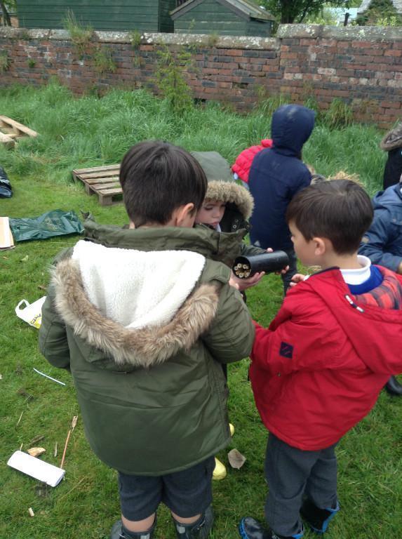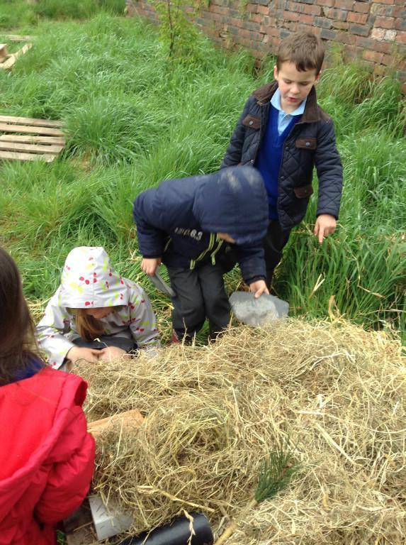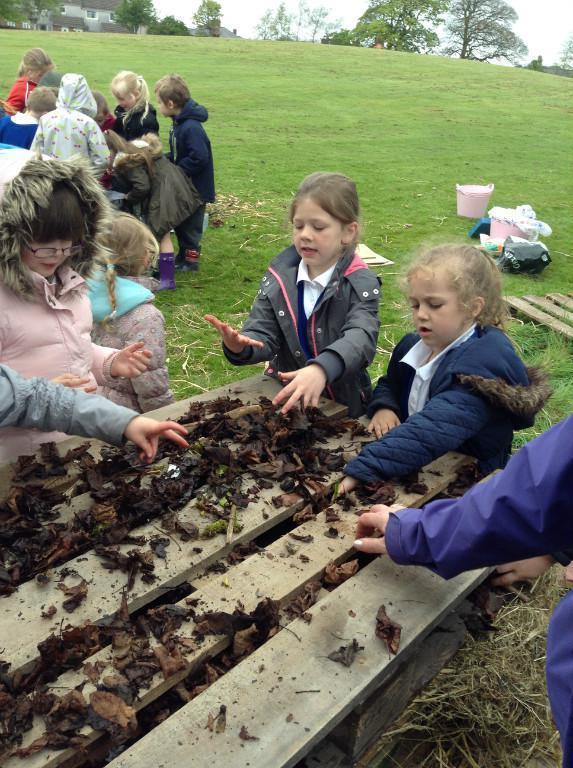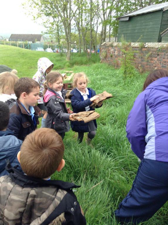 Despite the rotten weather we ventured out to build our 'Minibeast Mansion'. The children sorted all of the materials into piles, then we began layering up the different habitats. Everyone really enjoyed it, and the minibeasts started moving in while we were working! It's still not quite finished, but I'll post more photos as we go.