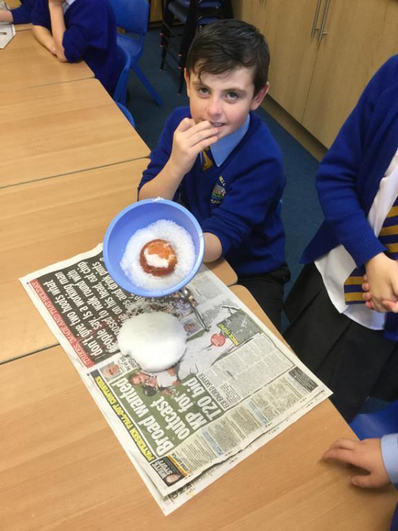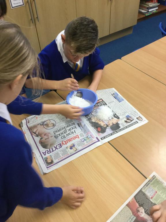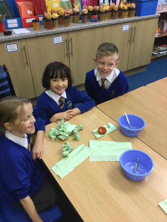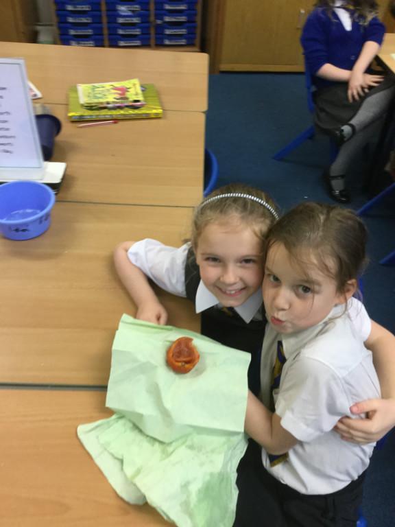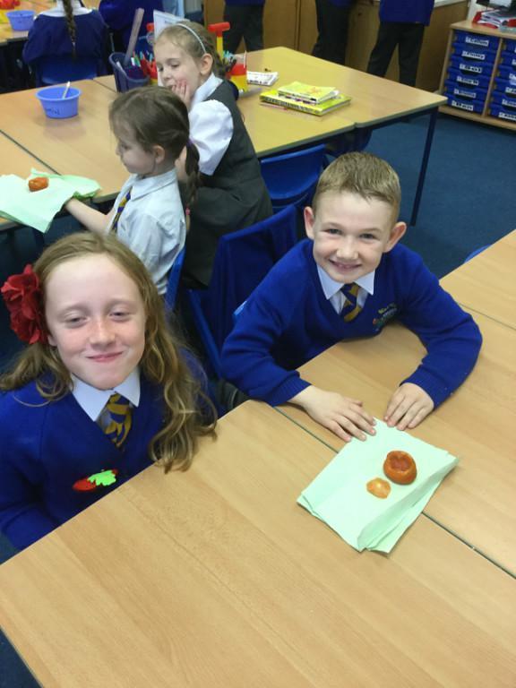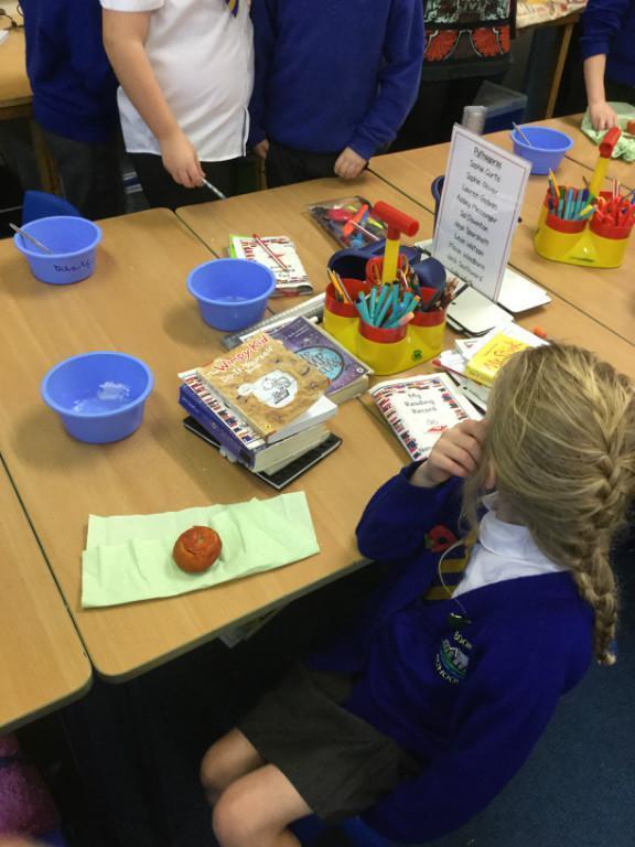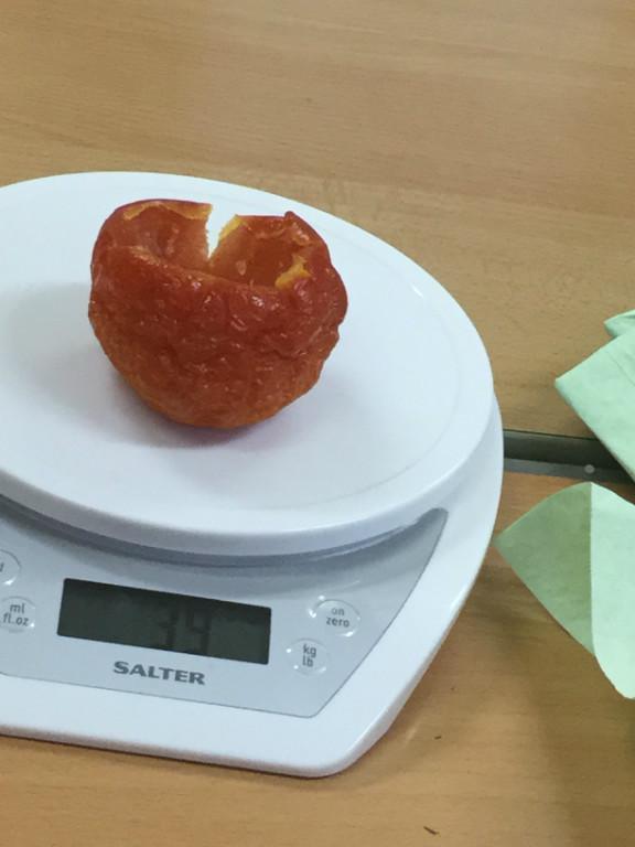 Well our tomatoes were ready to look at this week. The salt around them had gone very hard, and there was some free liquid in the bottom of some dishes. Only one tomato had gone a bit 'whiffy', the rest seemed to have mummified quite well. I declare our mummification experiment a success!