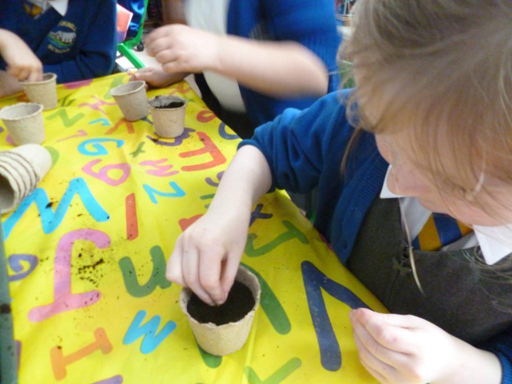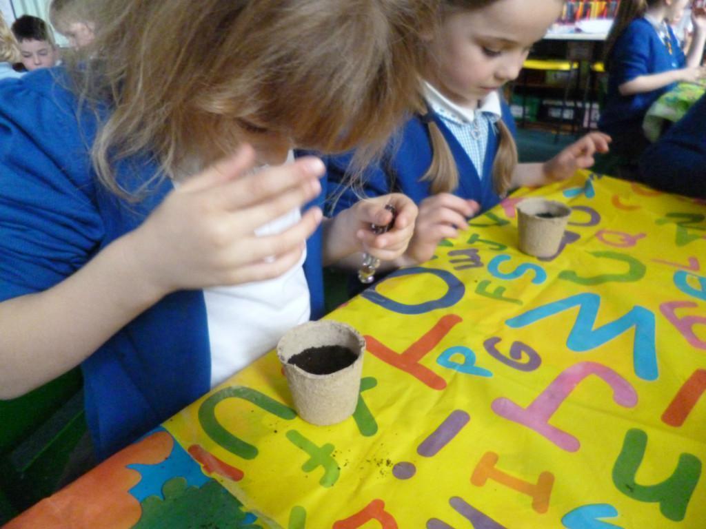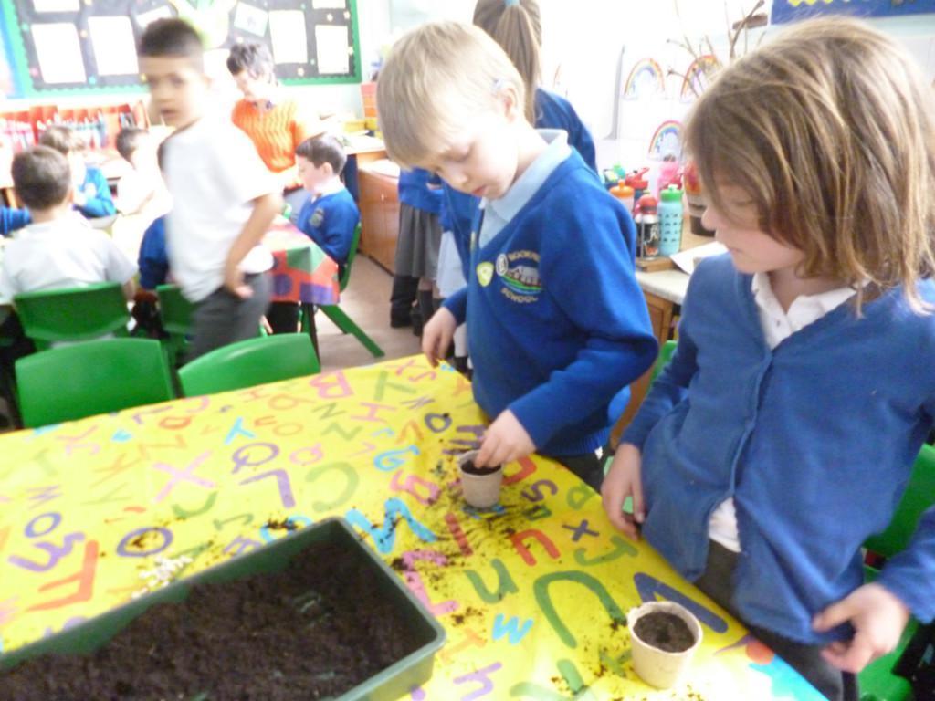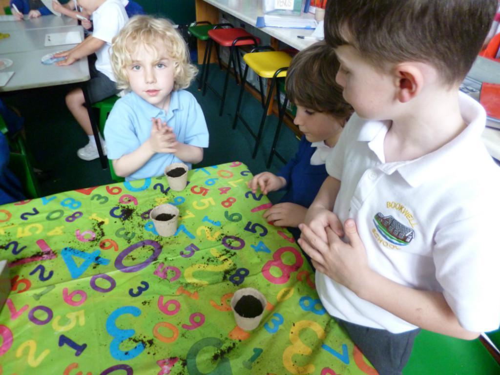 The children have been planting seeds today. They have also been learning about the conditions plants need to grow.