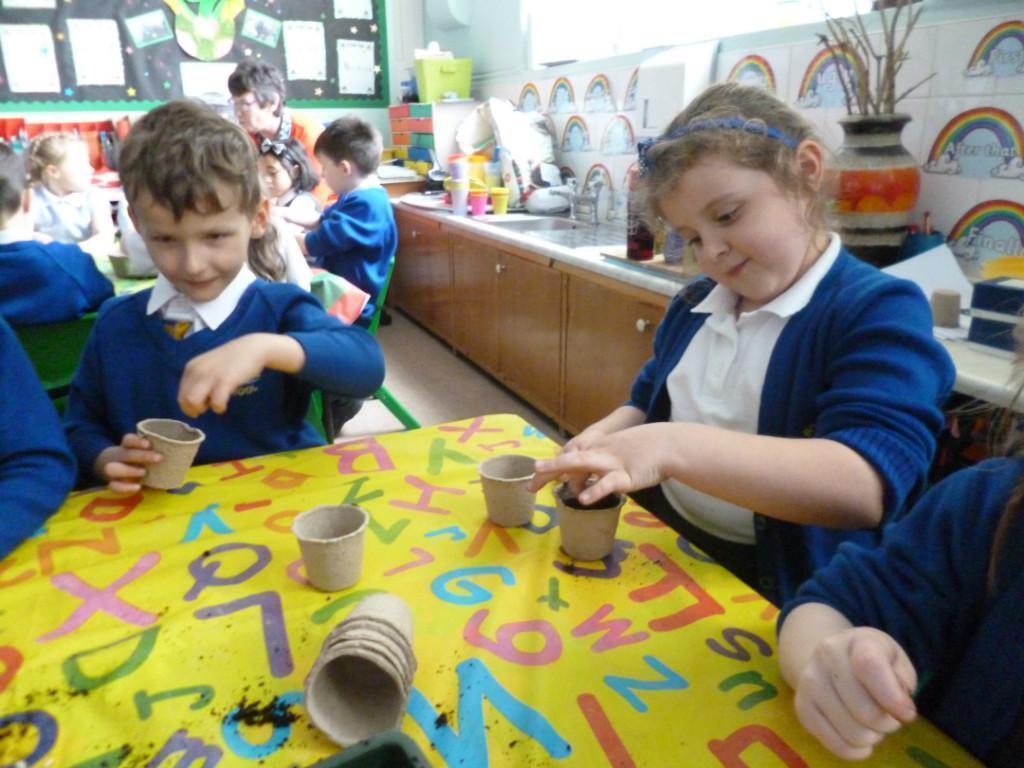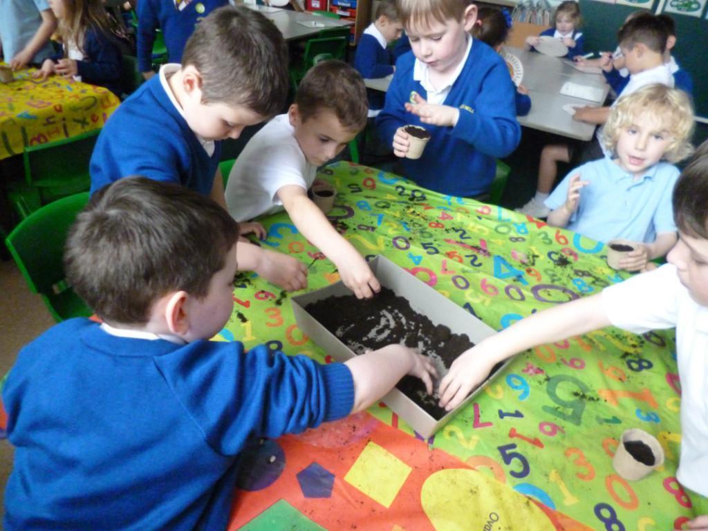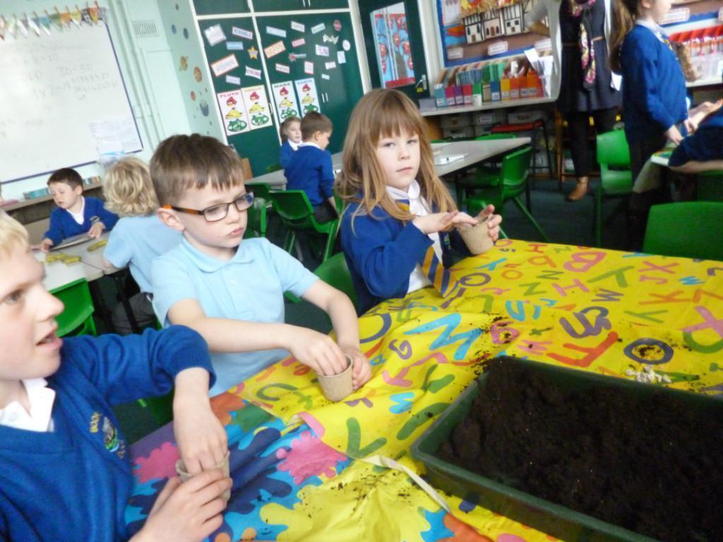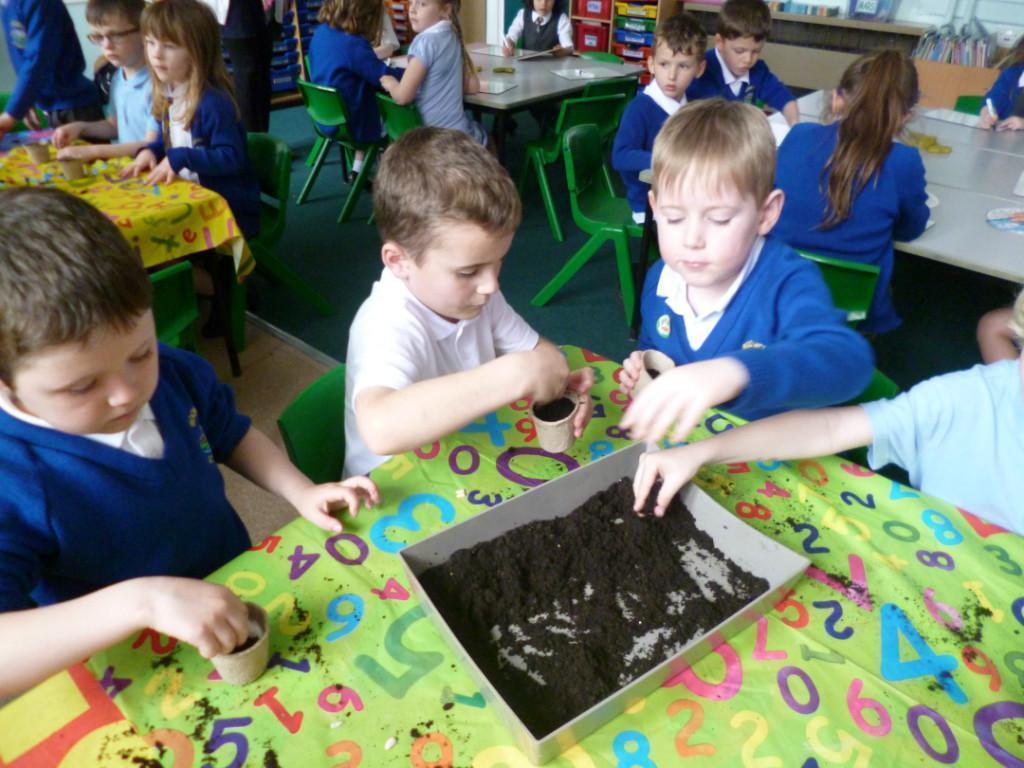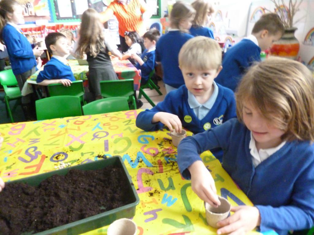 The children have been planting seeds today. They have also been learning about the conditions plants need to grow.