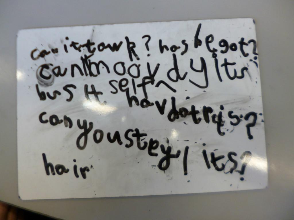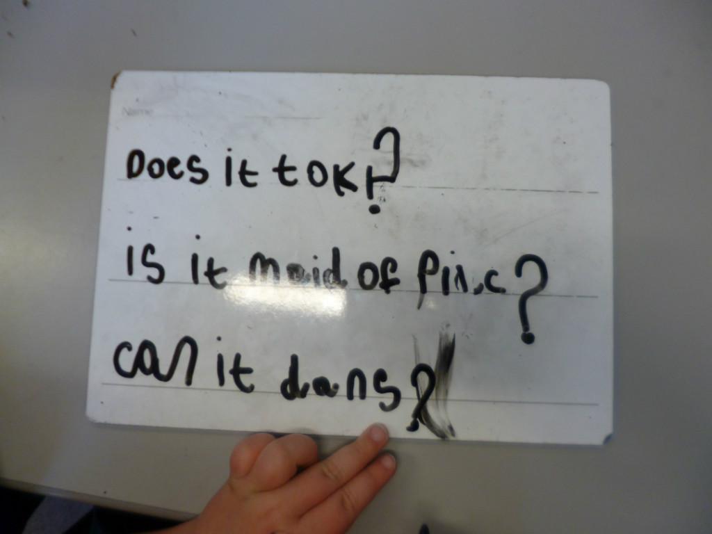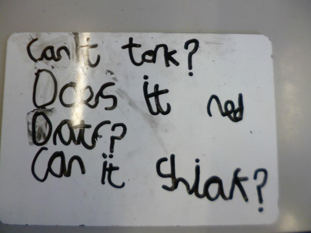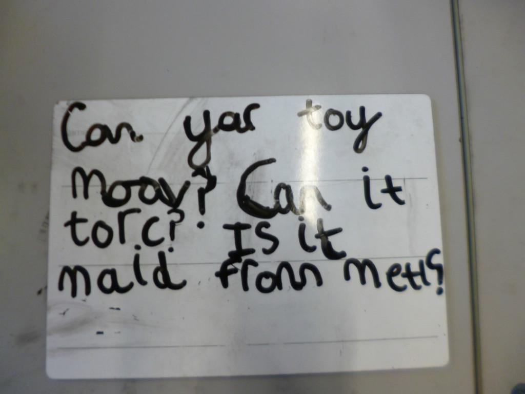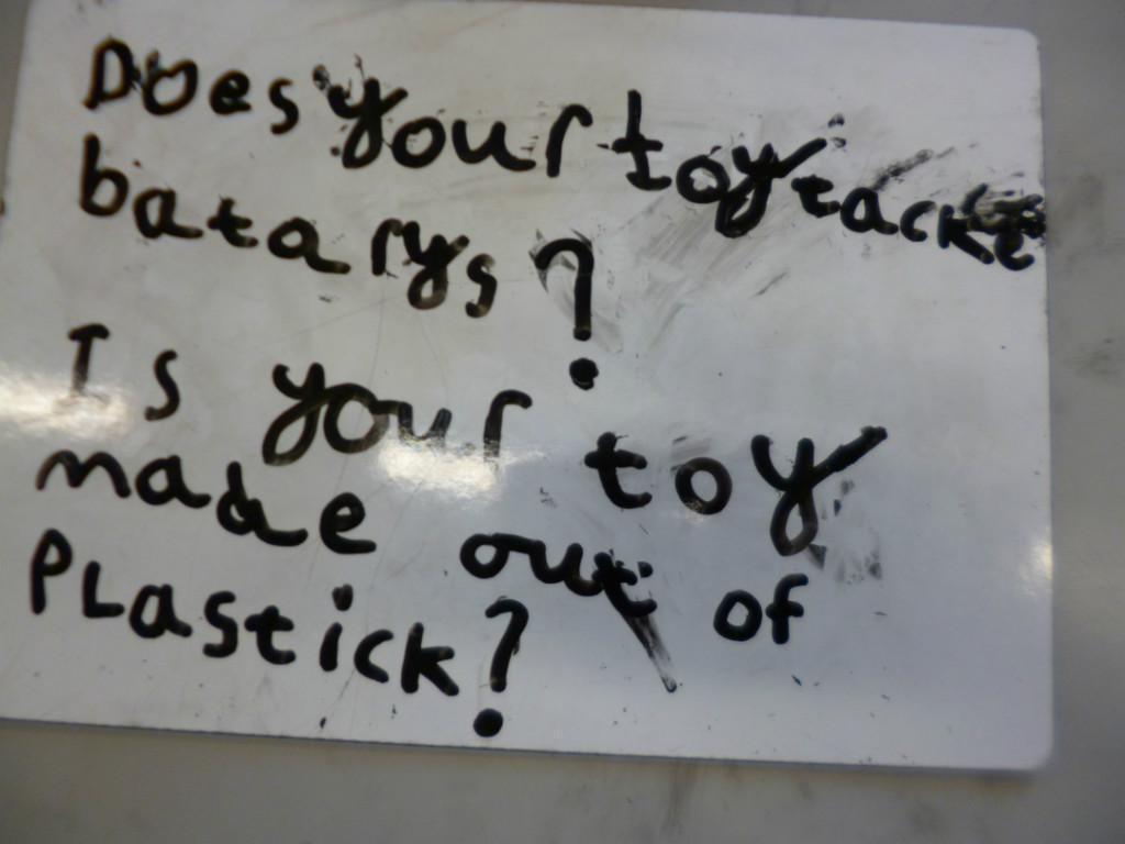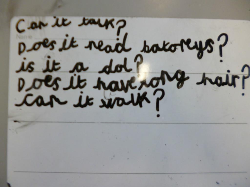 Today we have been discussing the difference between old and new toys. Mrs Forrester brought in both an old and new toy to show the children. Before they were shown the toys the children had to think of questions to ask Mrs Forrester to first work out whether her toy was an old or a new toy.  They also had to write questions to help them guess what each of the toys were.