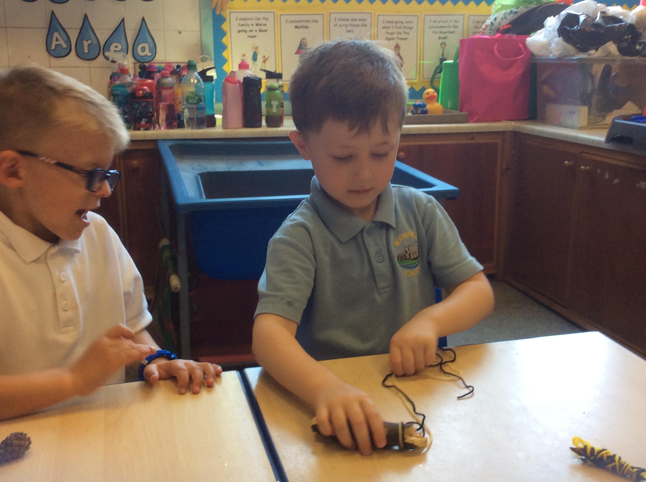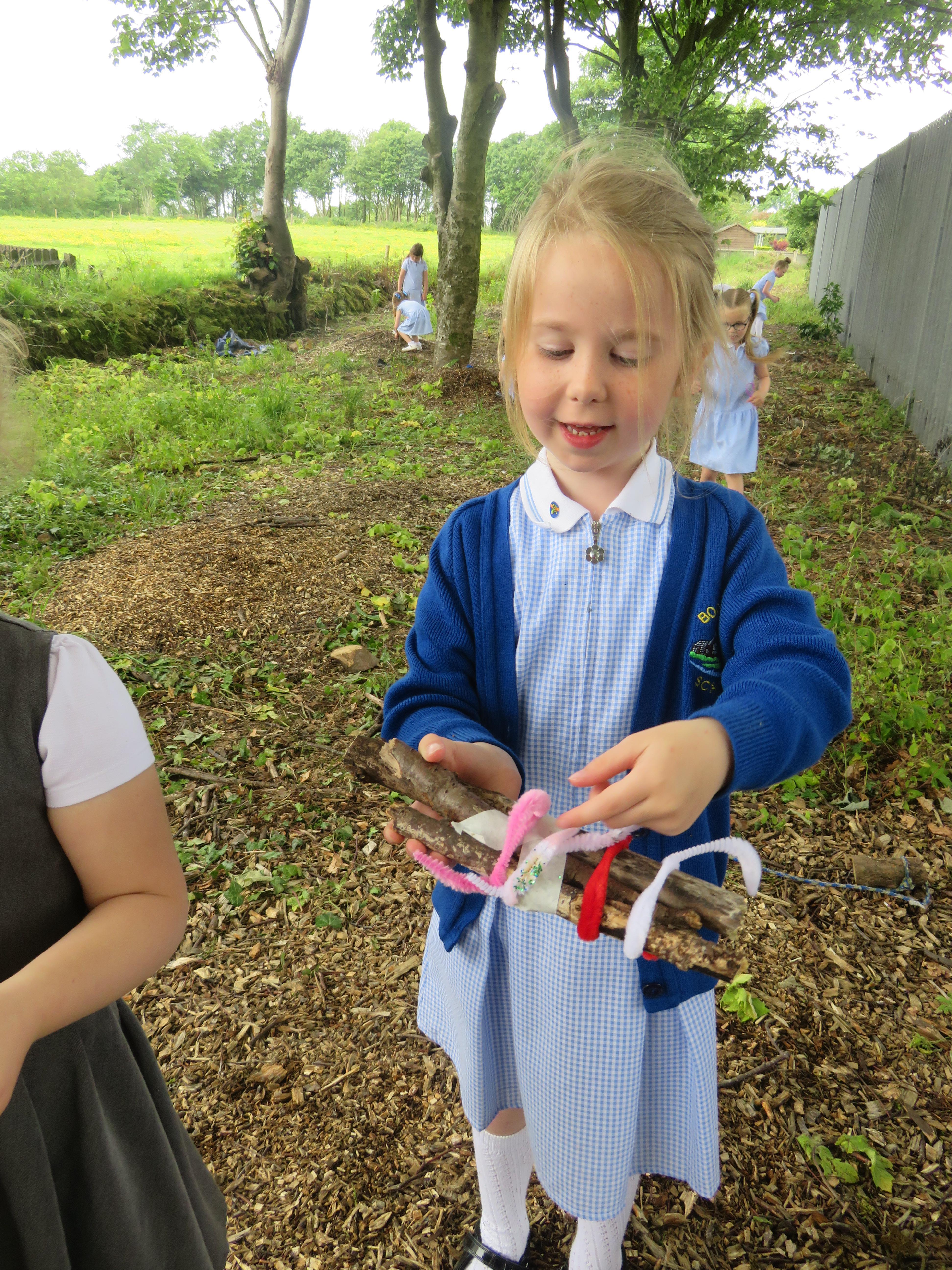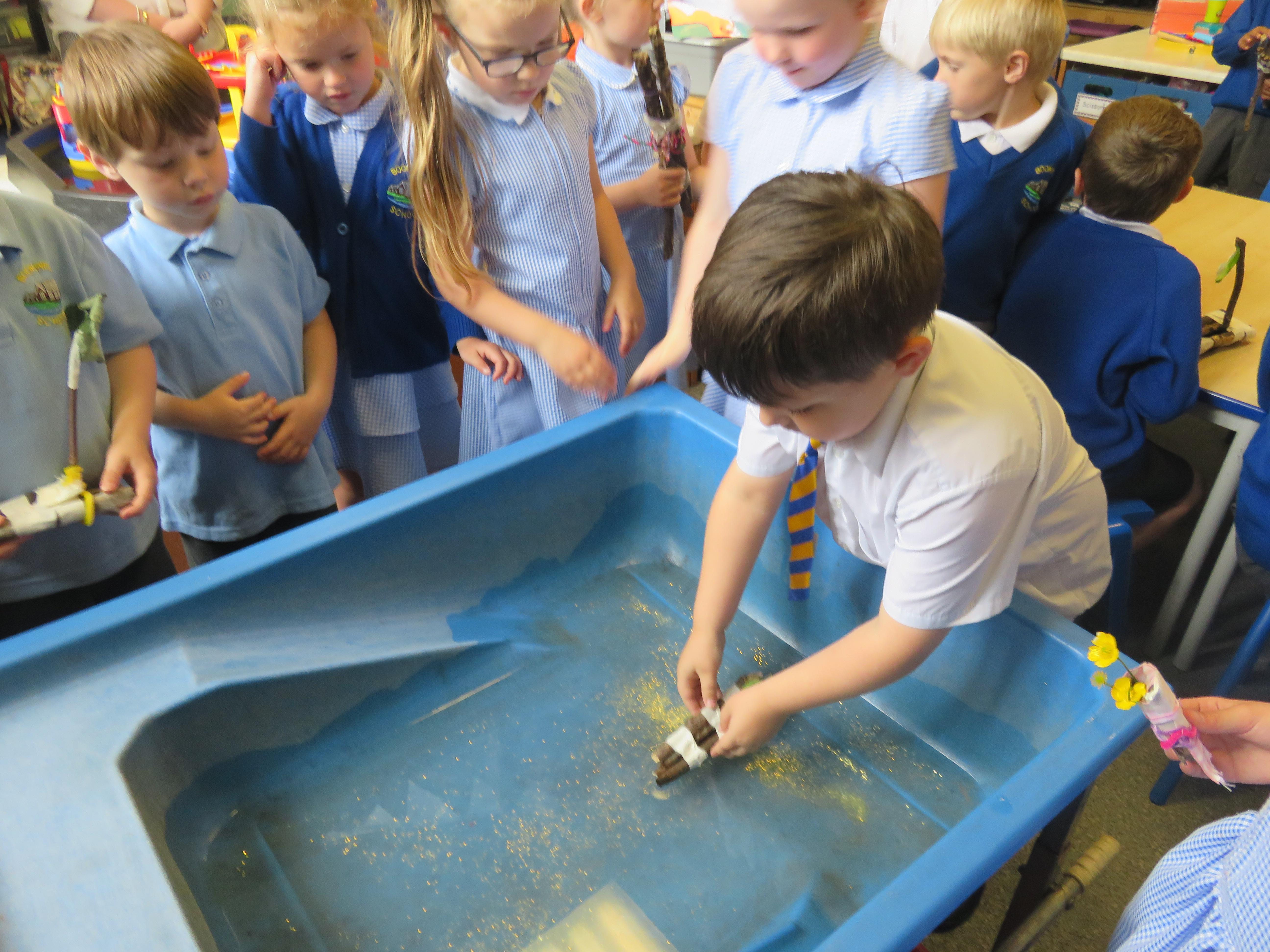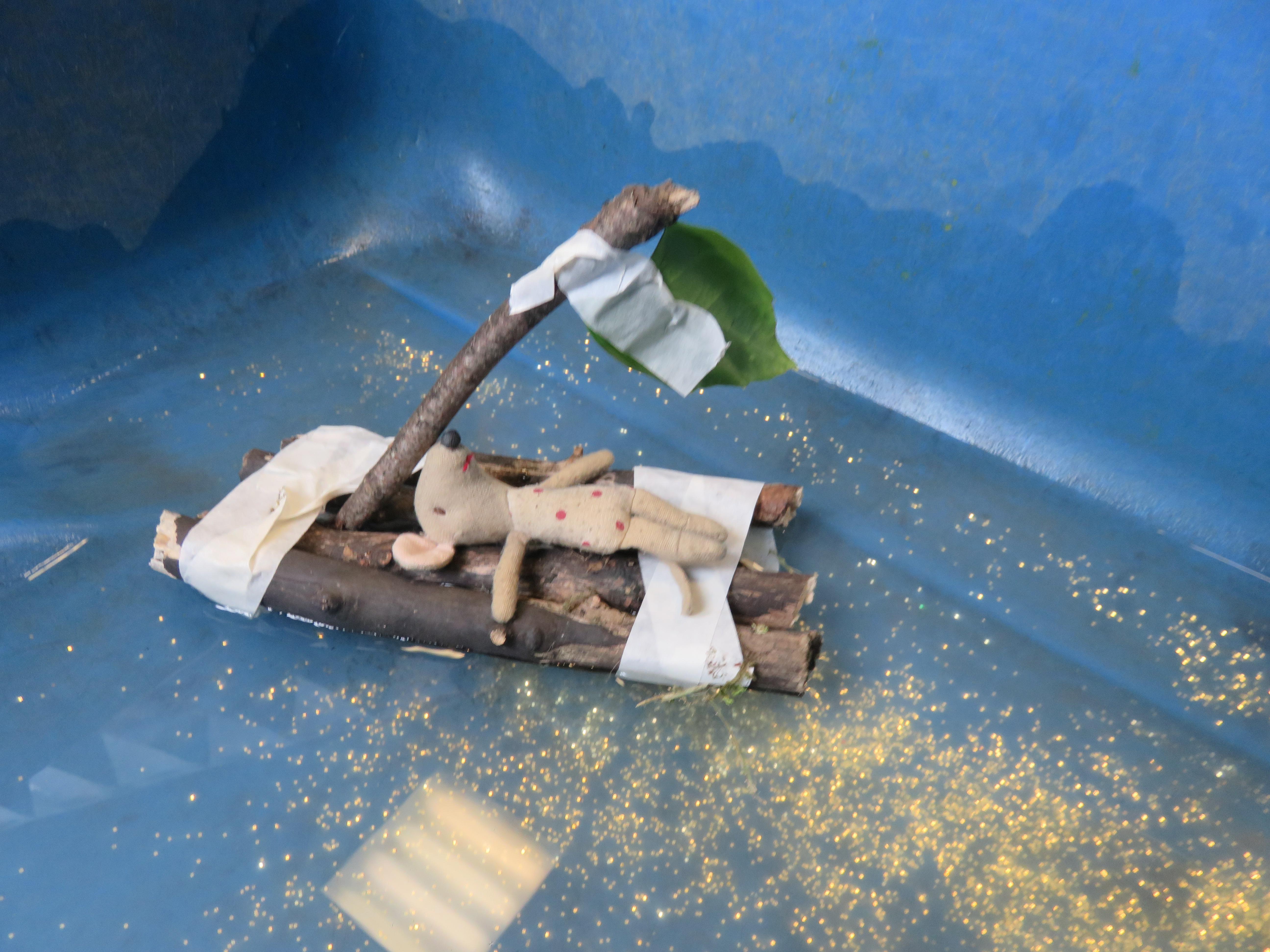 We went outside into our wooded area this week and we were given a task. The task was to build a raft for our mouse Millie to sail on. We worked in partners and used lots of different things that we could find in the woodland. We then went back into school to test our rafts. Most of the rafts were successful but some weren't as successful. Poor Millie did get a little bit wet though!!!