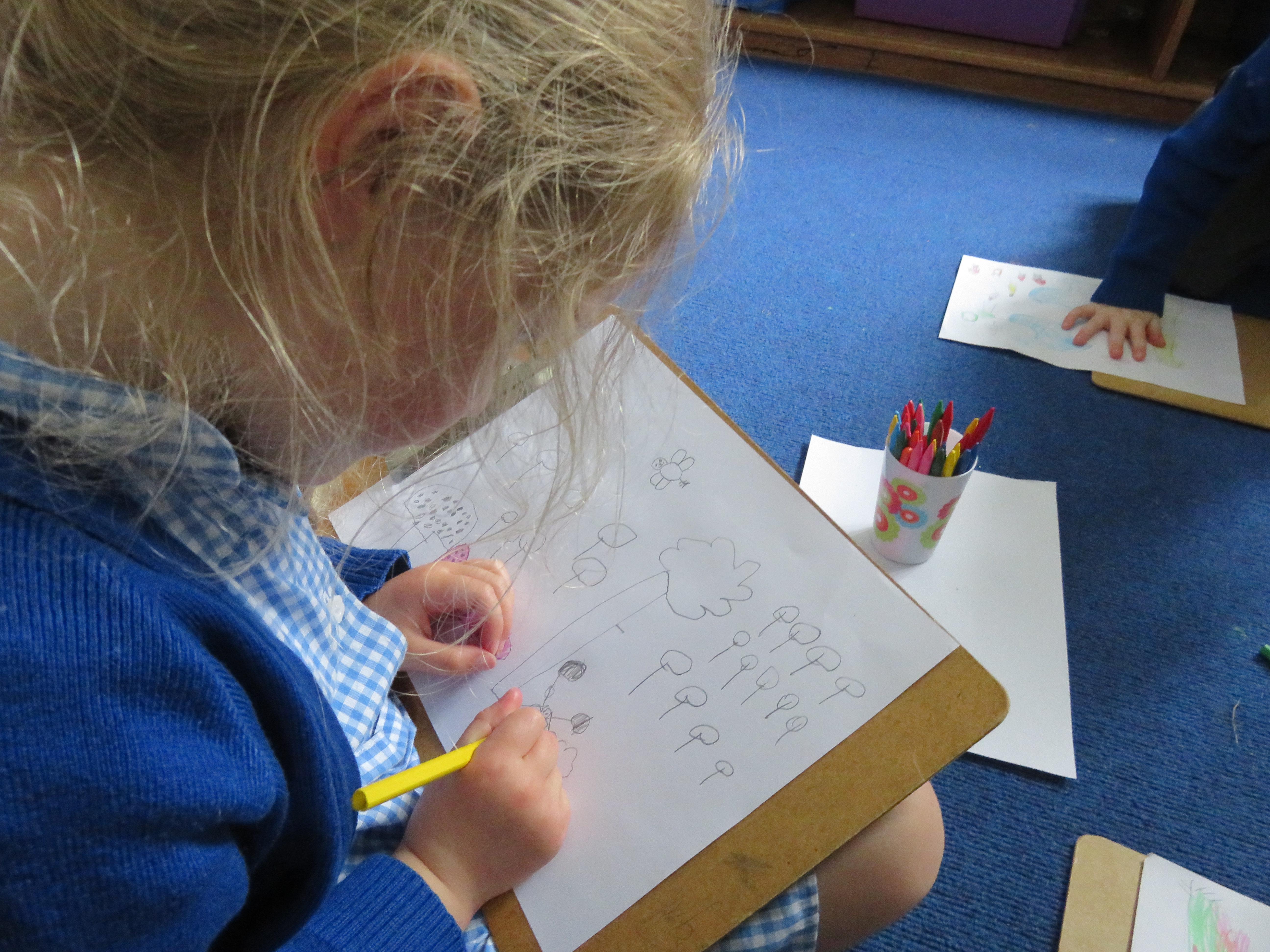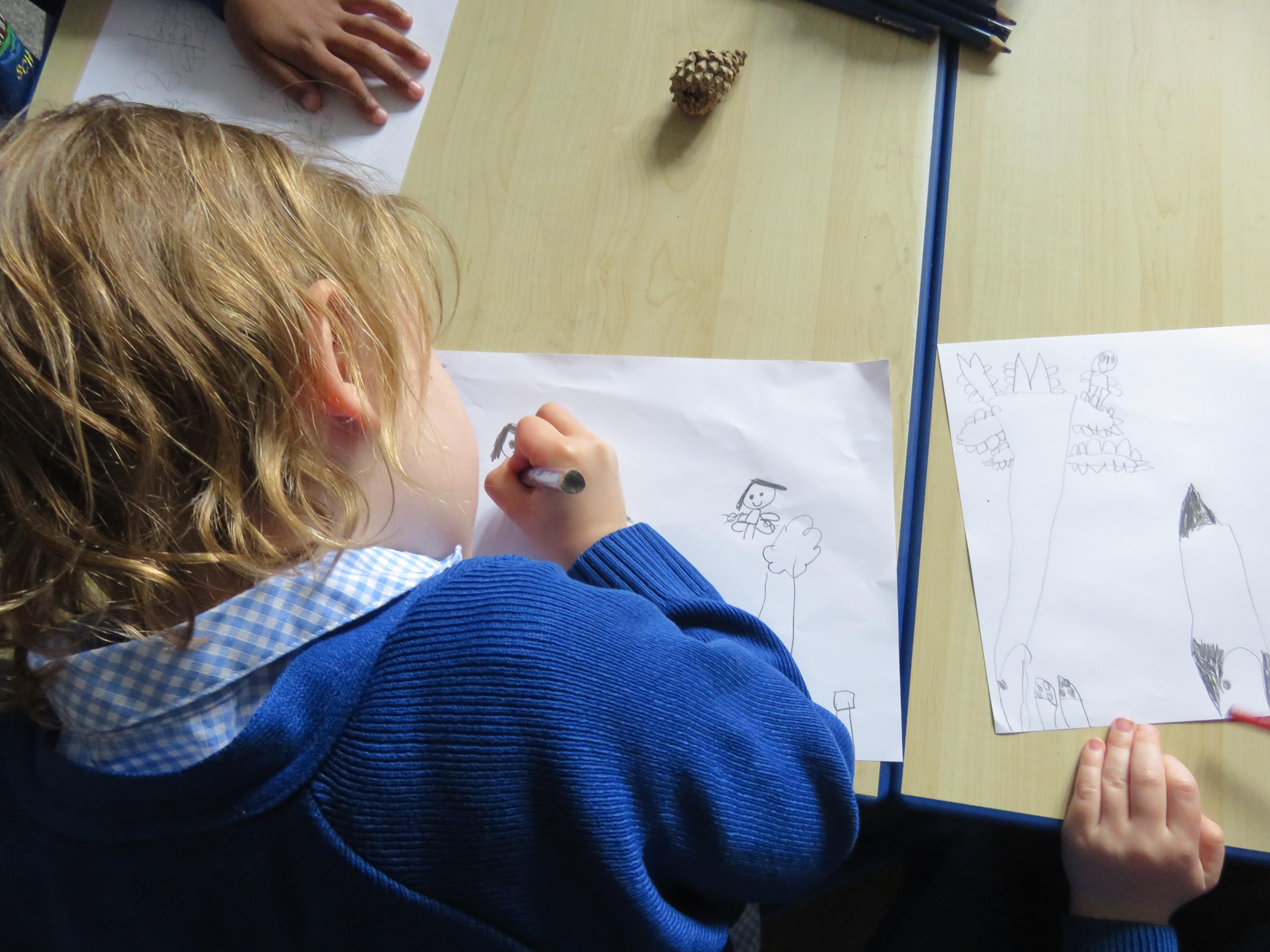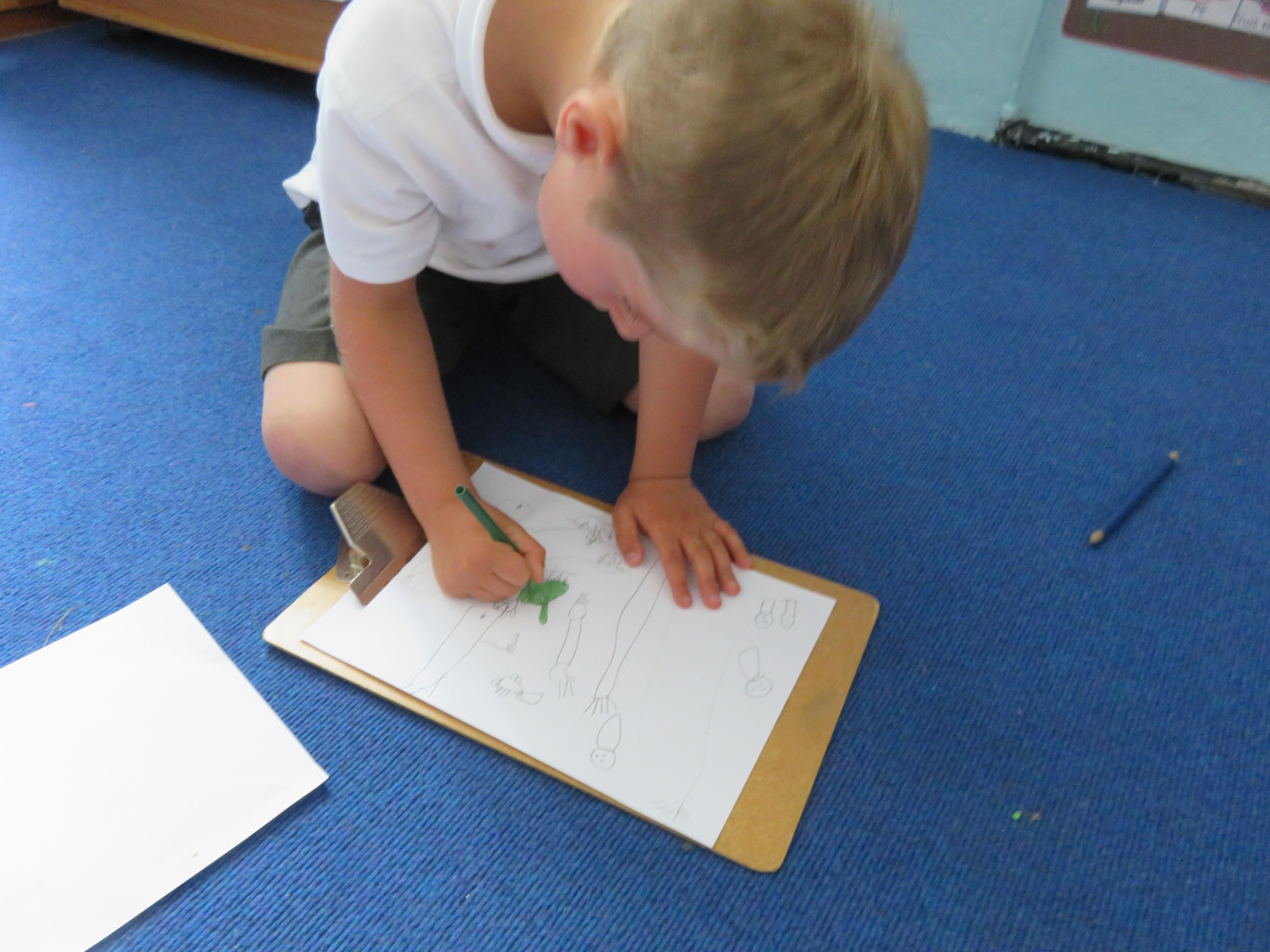We went into the wooded year earlier in the half term and we used the twigs and leaves to make our own pictures. This was great fun too!