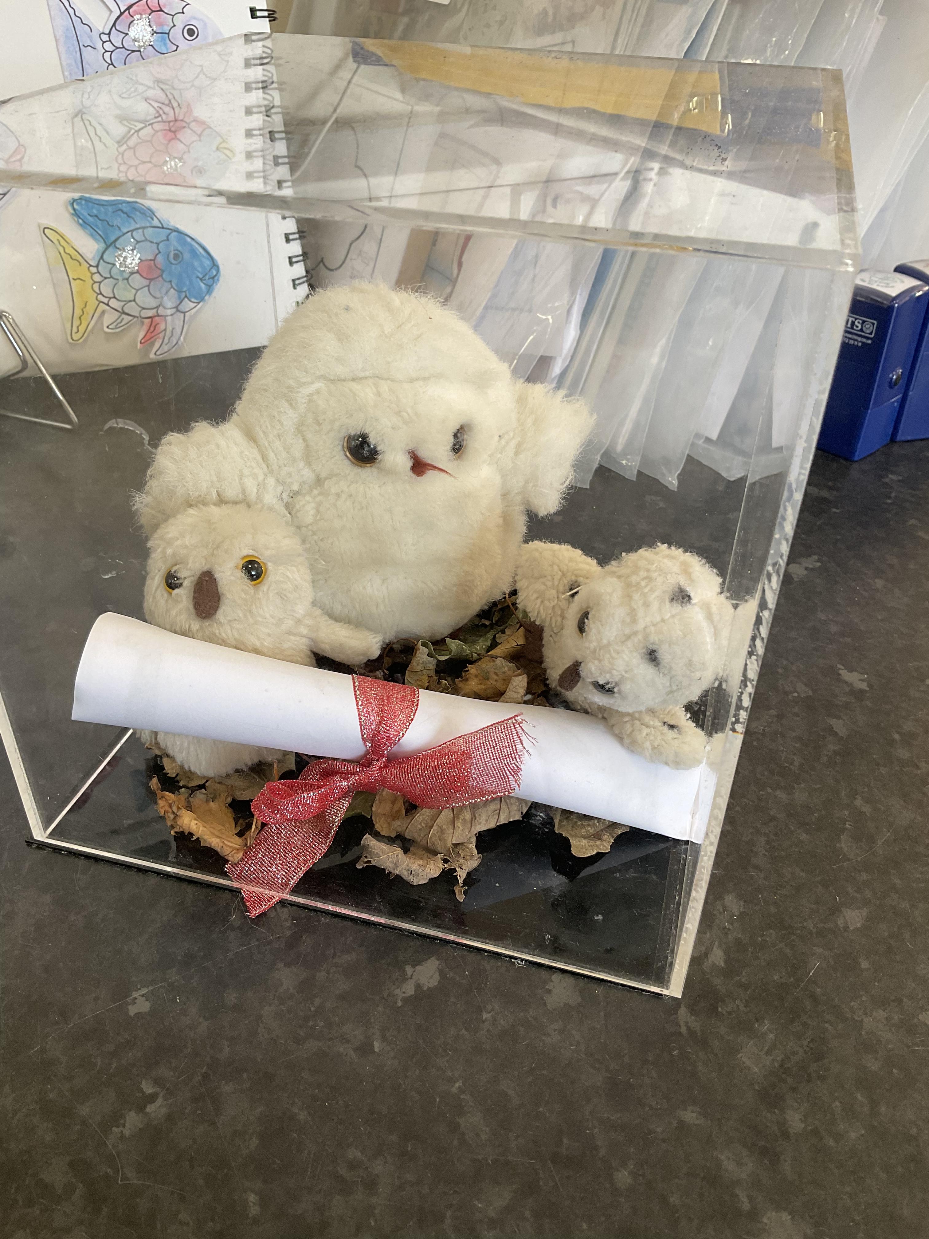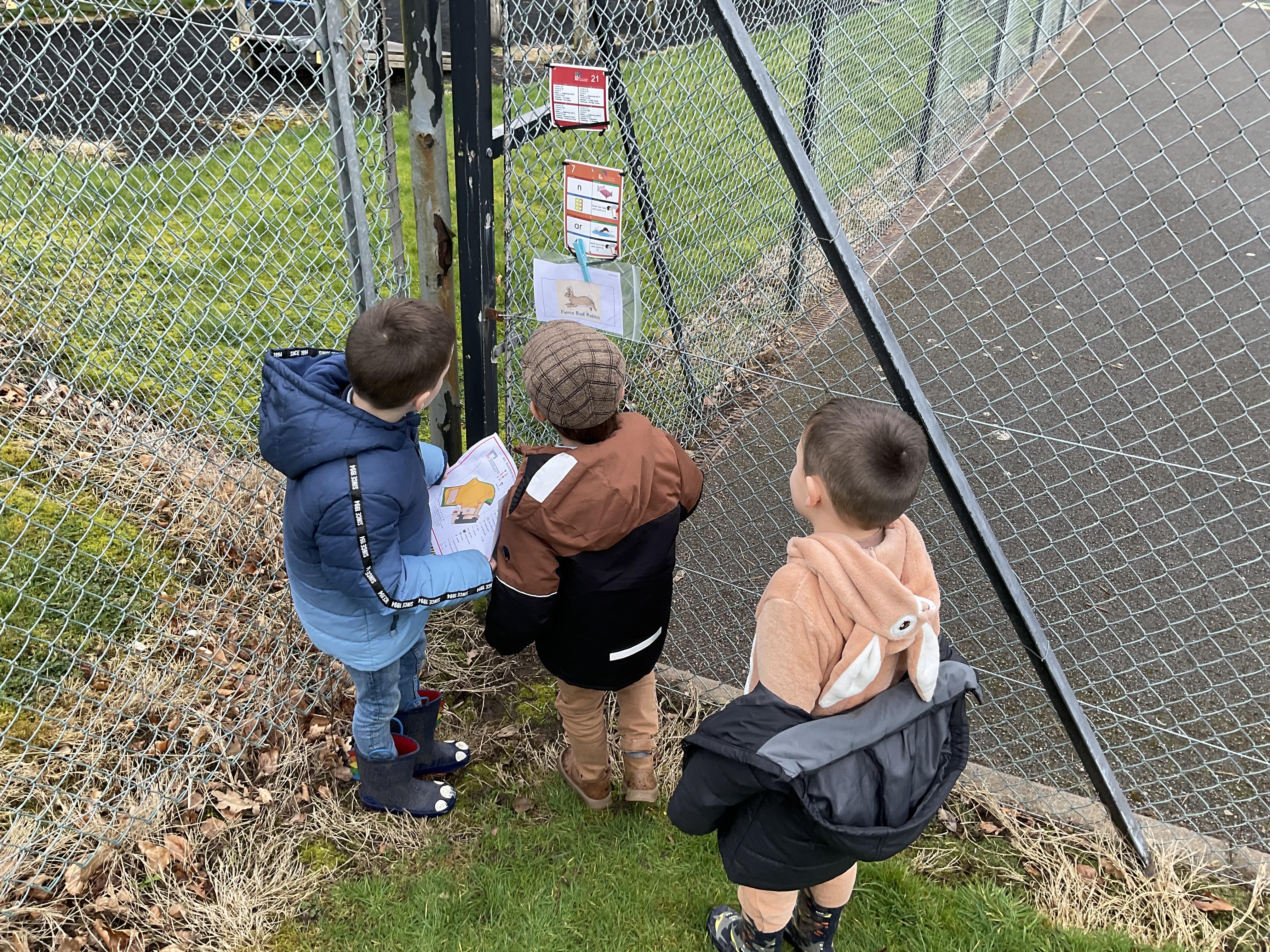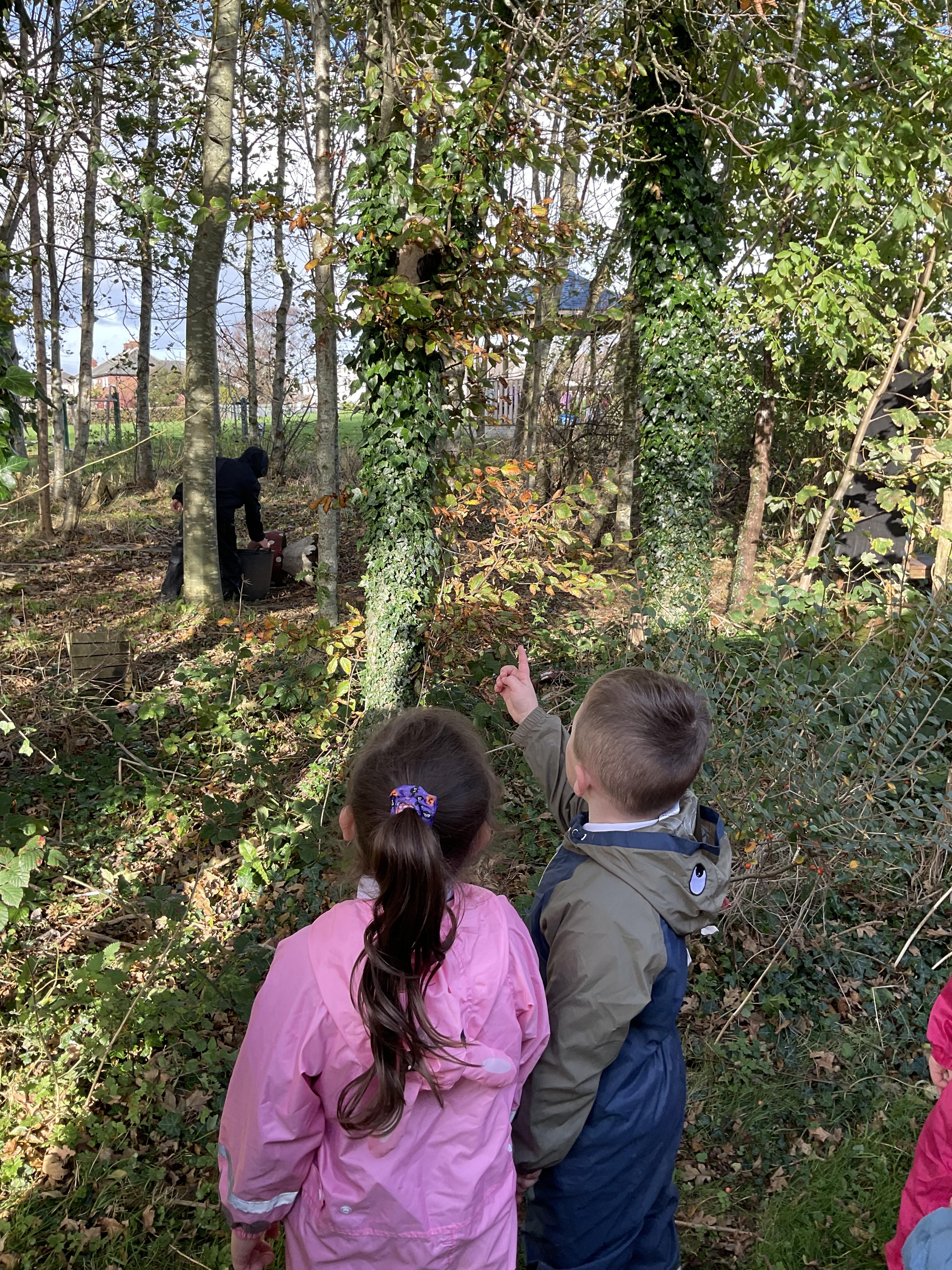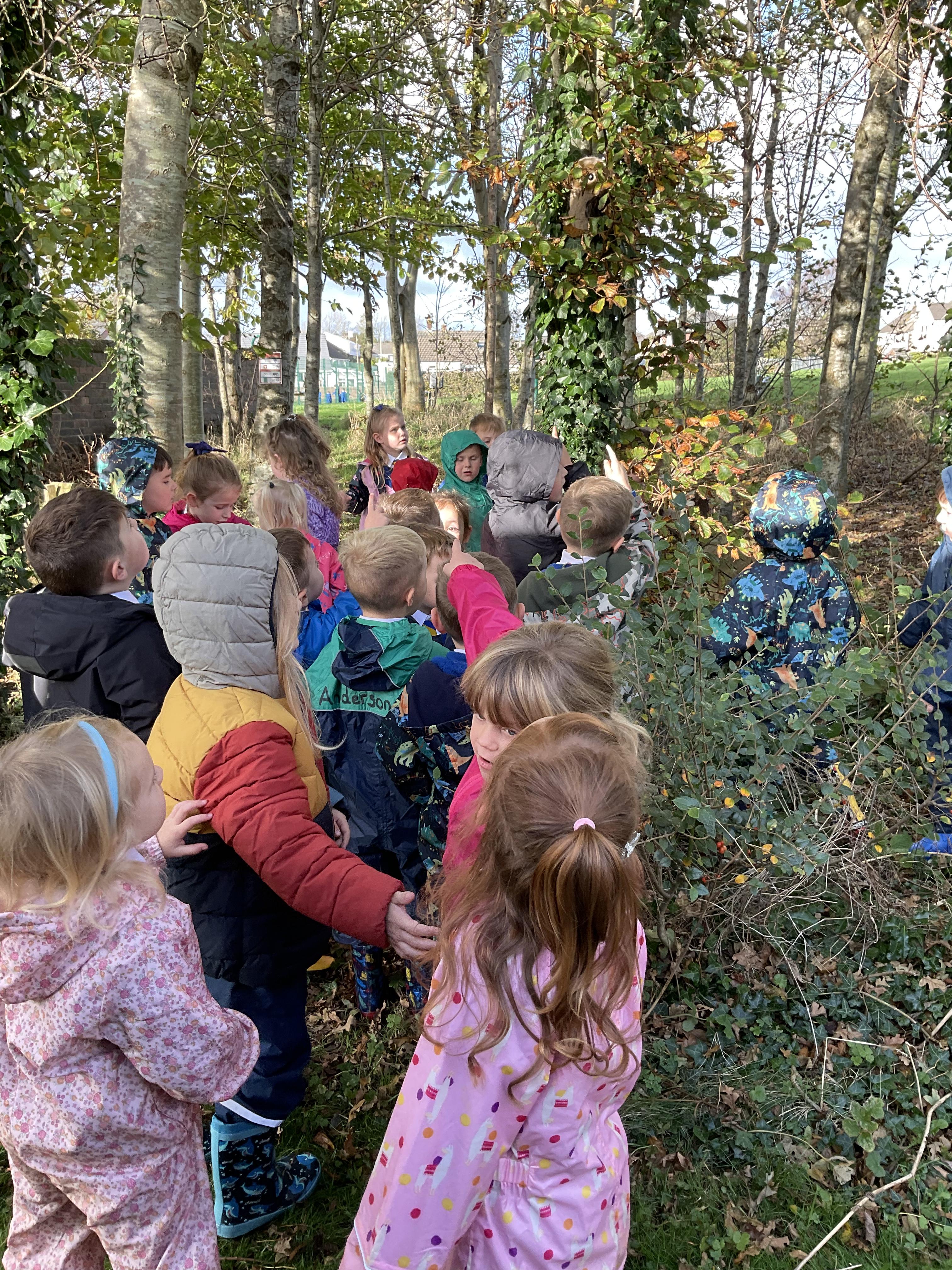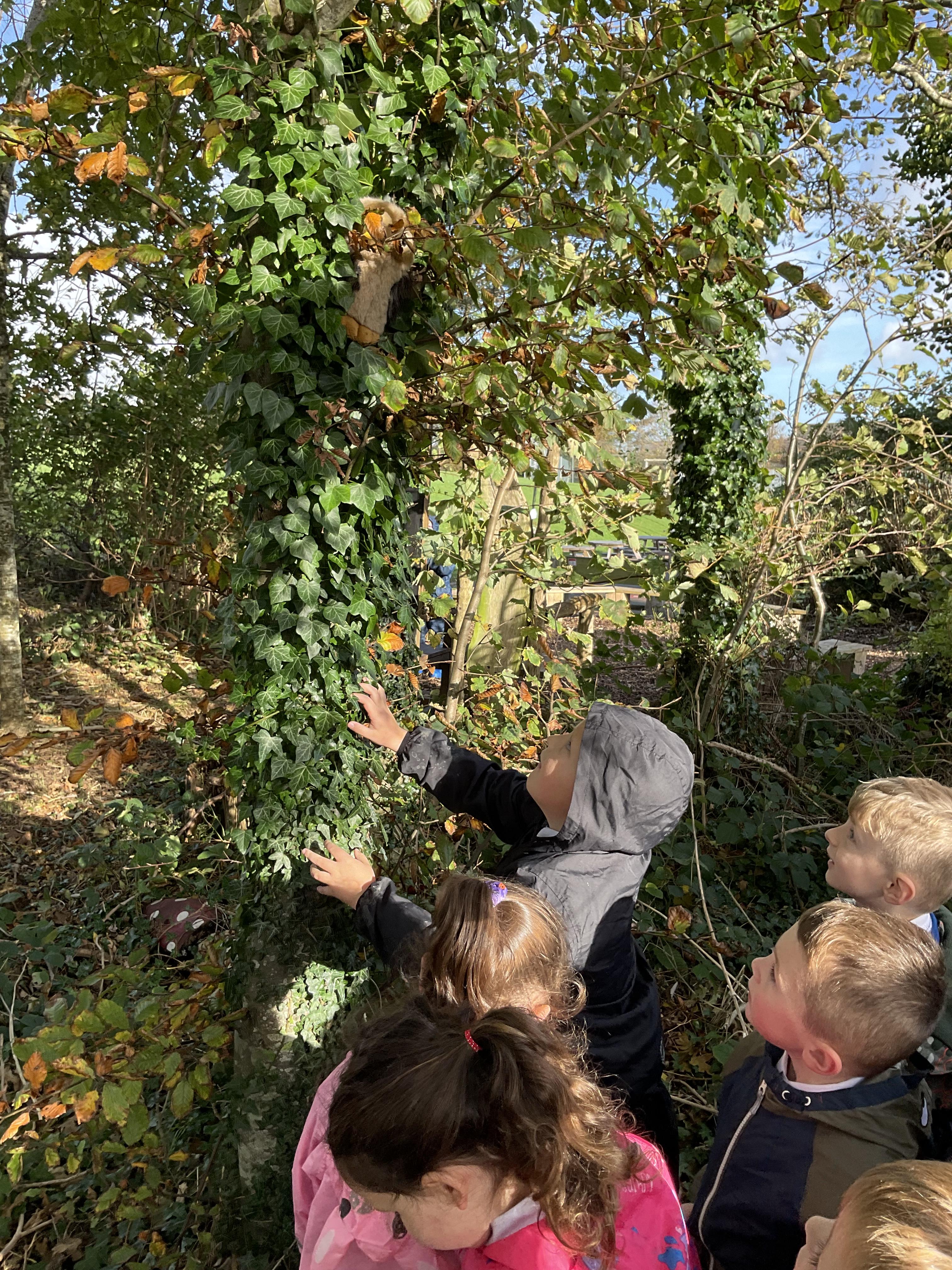 The children found a message in our curiosity cube. The message was from the Owl Babies, they needed our help to find their owl mother. Their mother didn’t return home after hunting one evening. We decided to go on an owl hunt around our school grounds. The children looked high and low and they found her up in a tree, we took her back to see the owl babies in school.