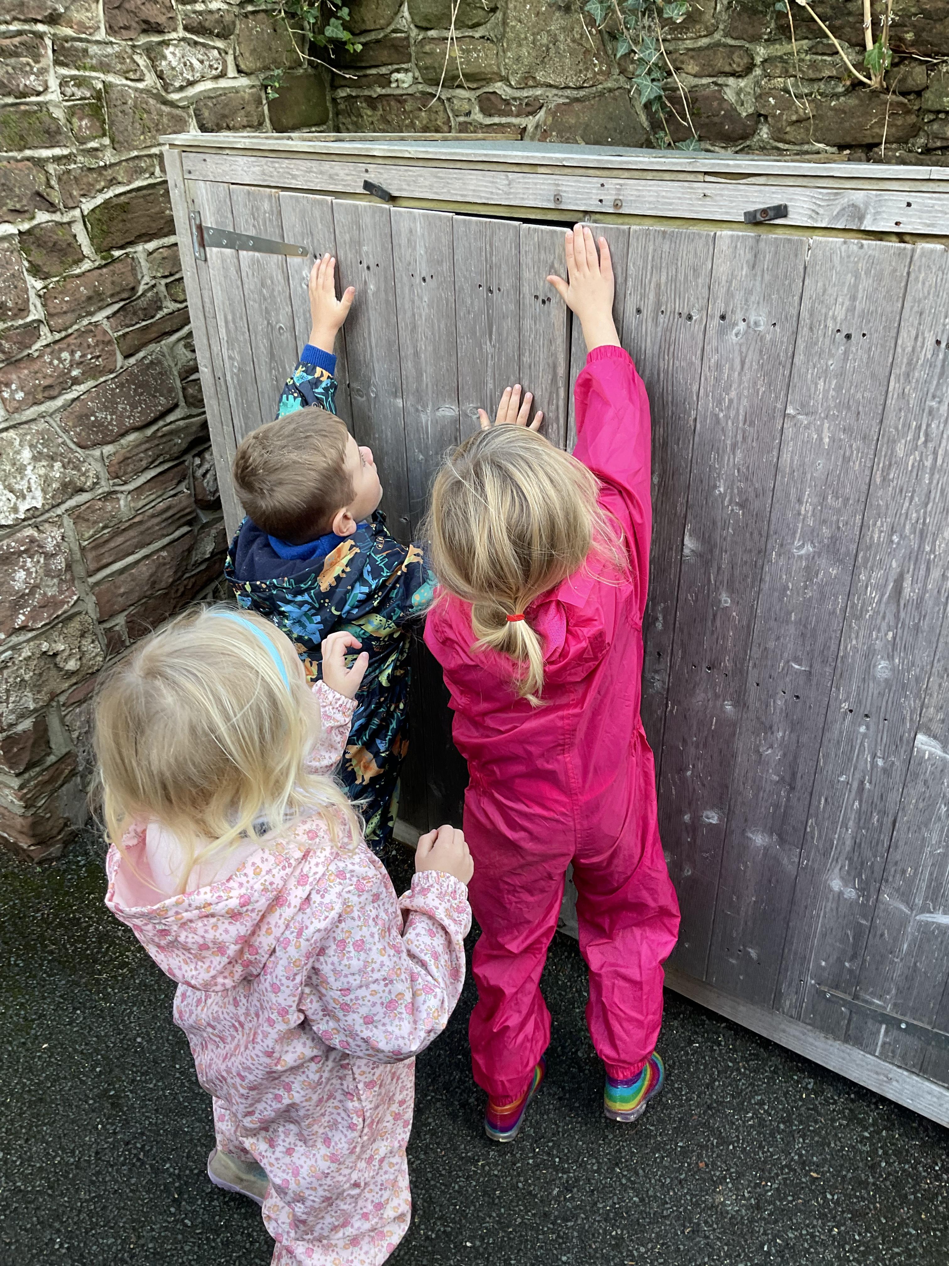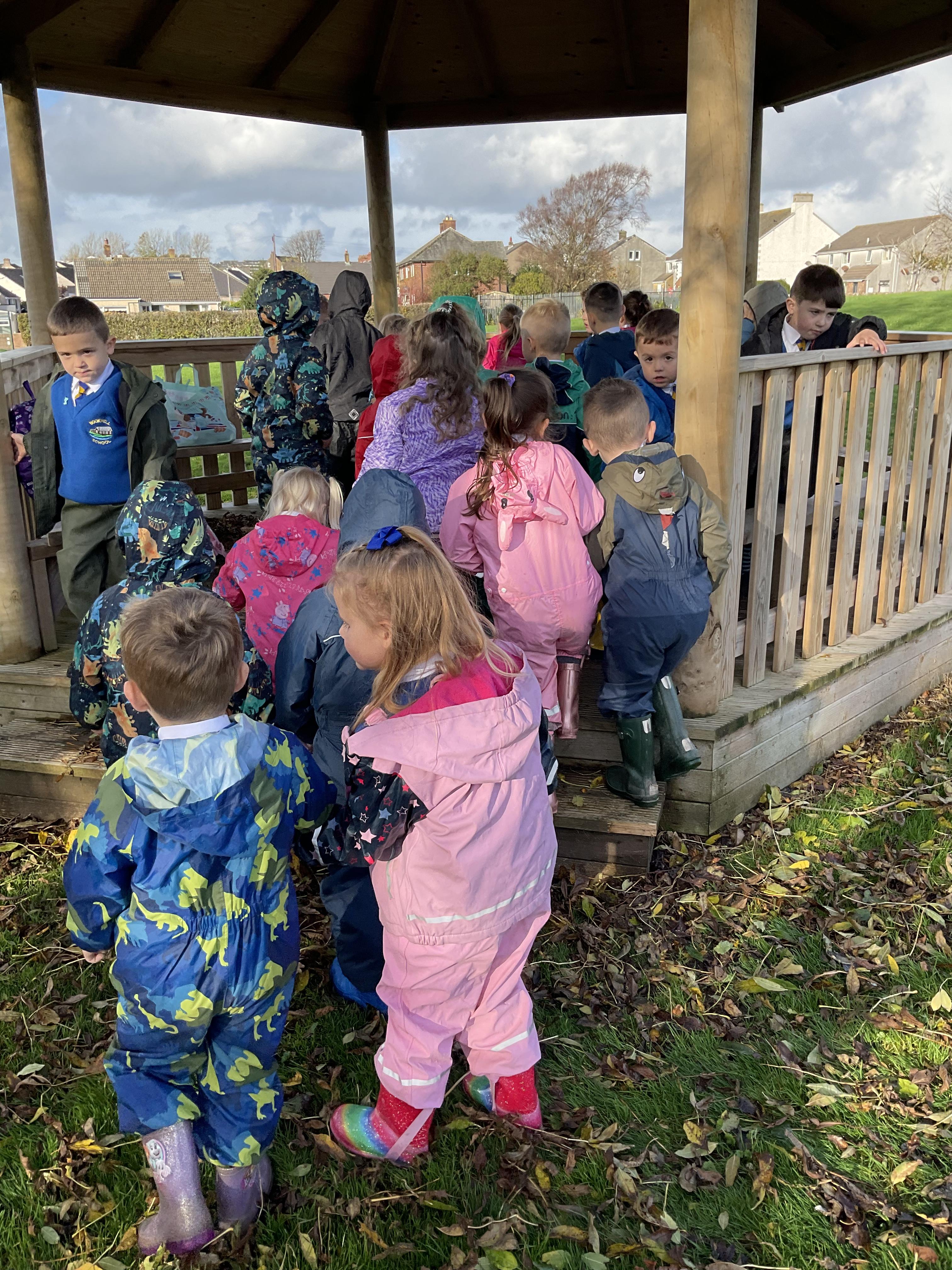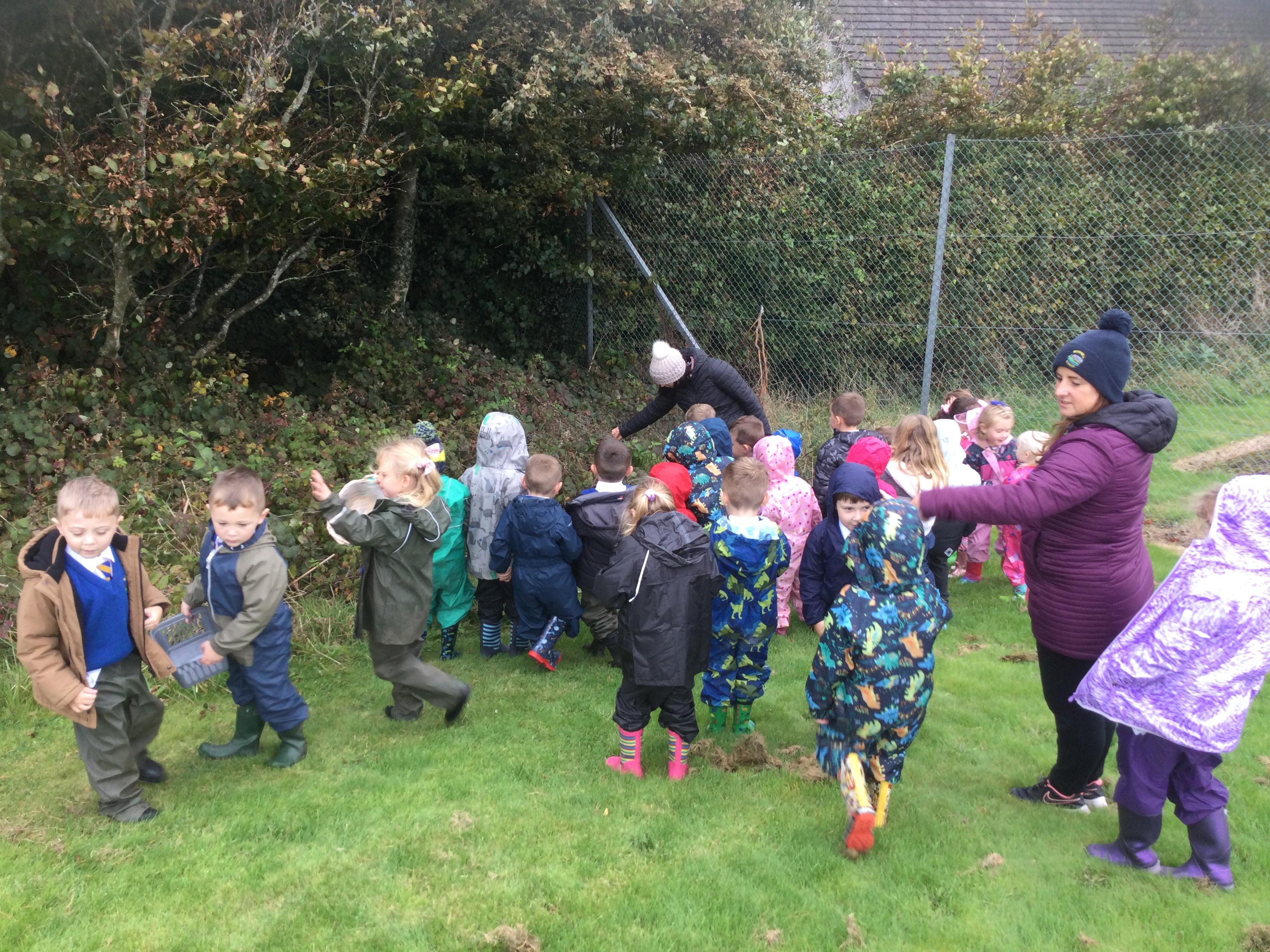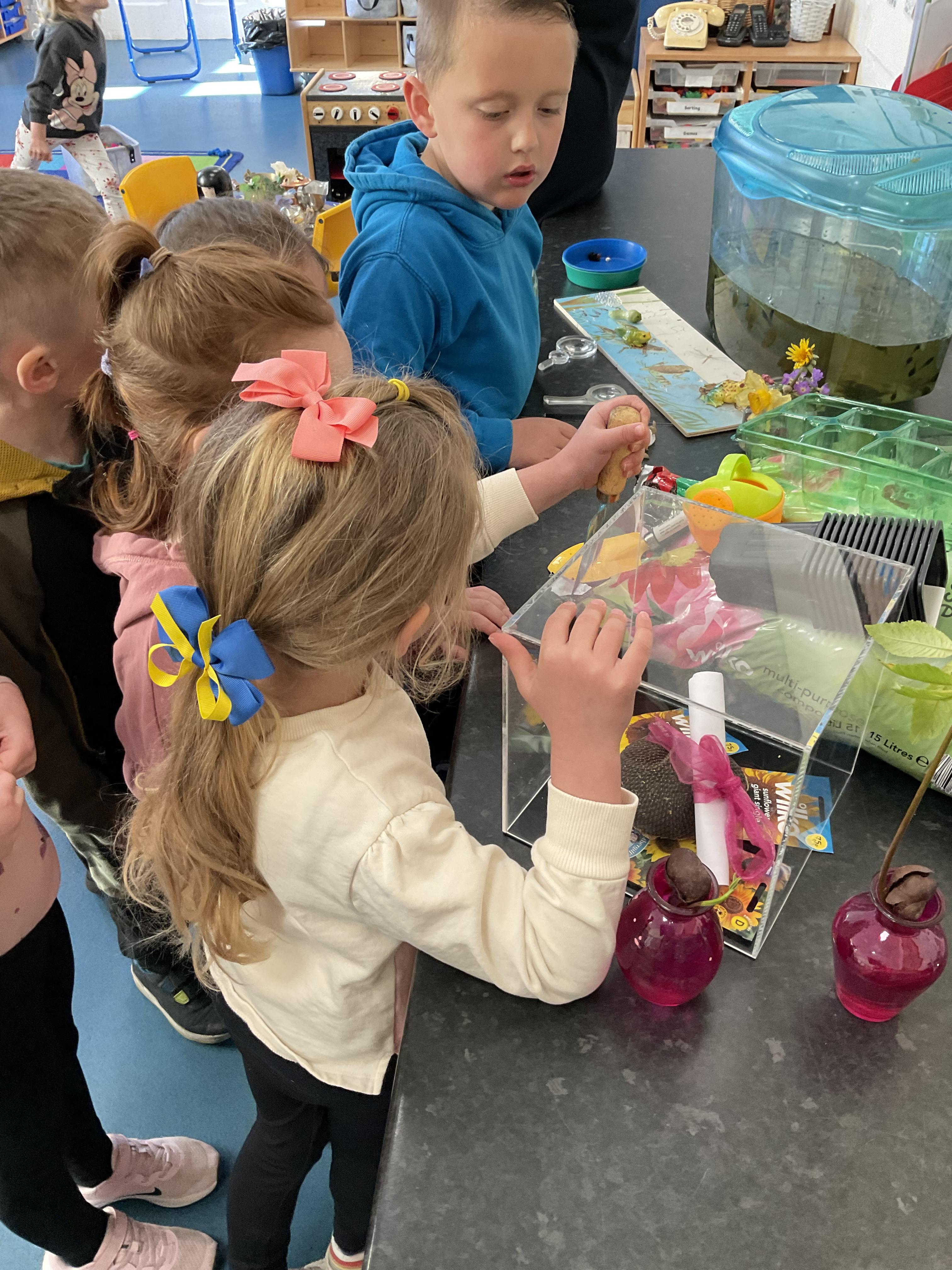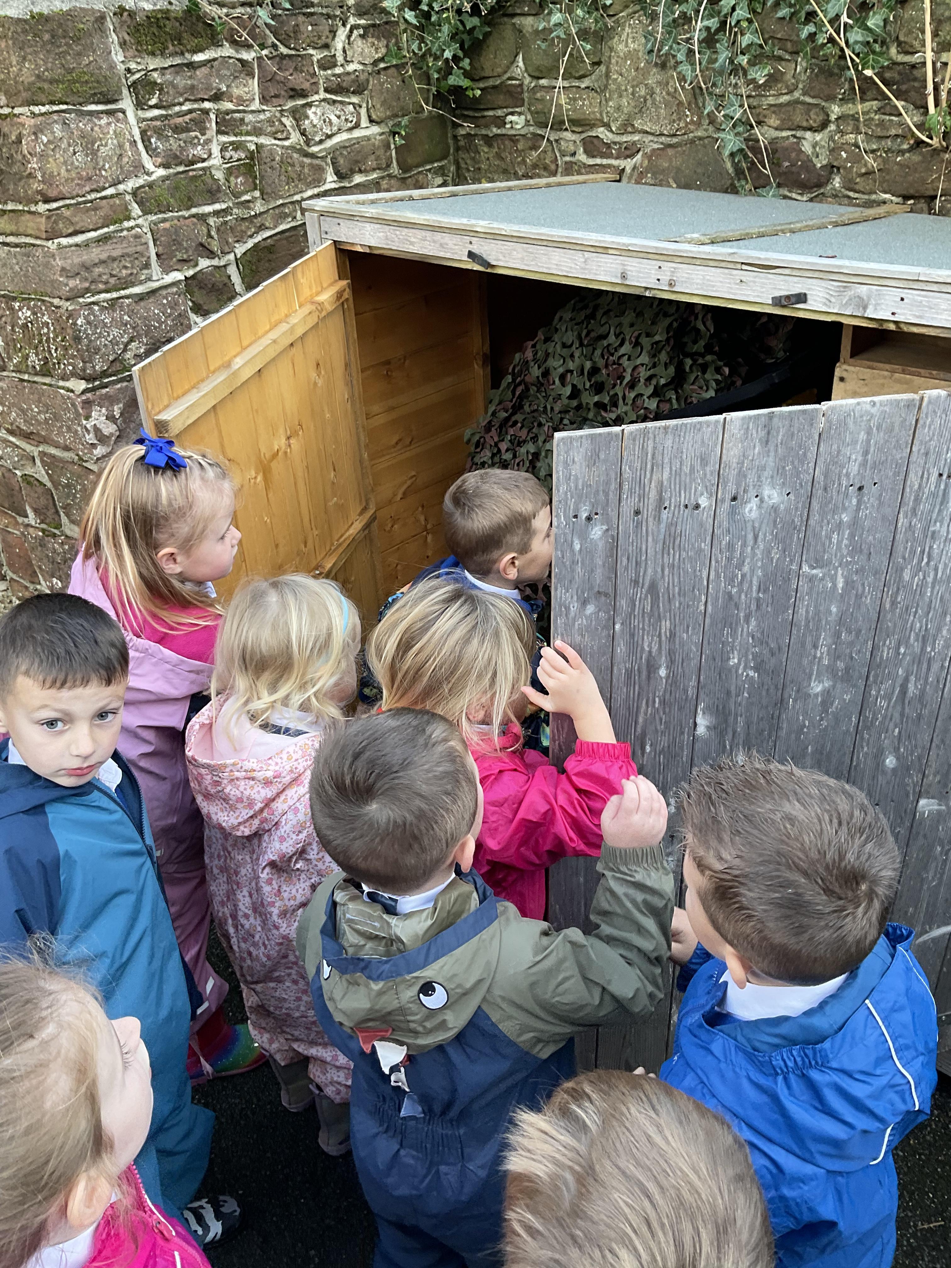 The children found a message in our curiosity cube. The message was from the Owl Babies, they needed our help to find their owl mother. Their mother didn’t return home after hunting one evening. We decided to go on an owl hunt around our school grounds. The children looked high and low and they found her up in a tree, we took her back to see the owl babies in school.