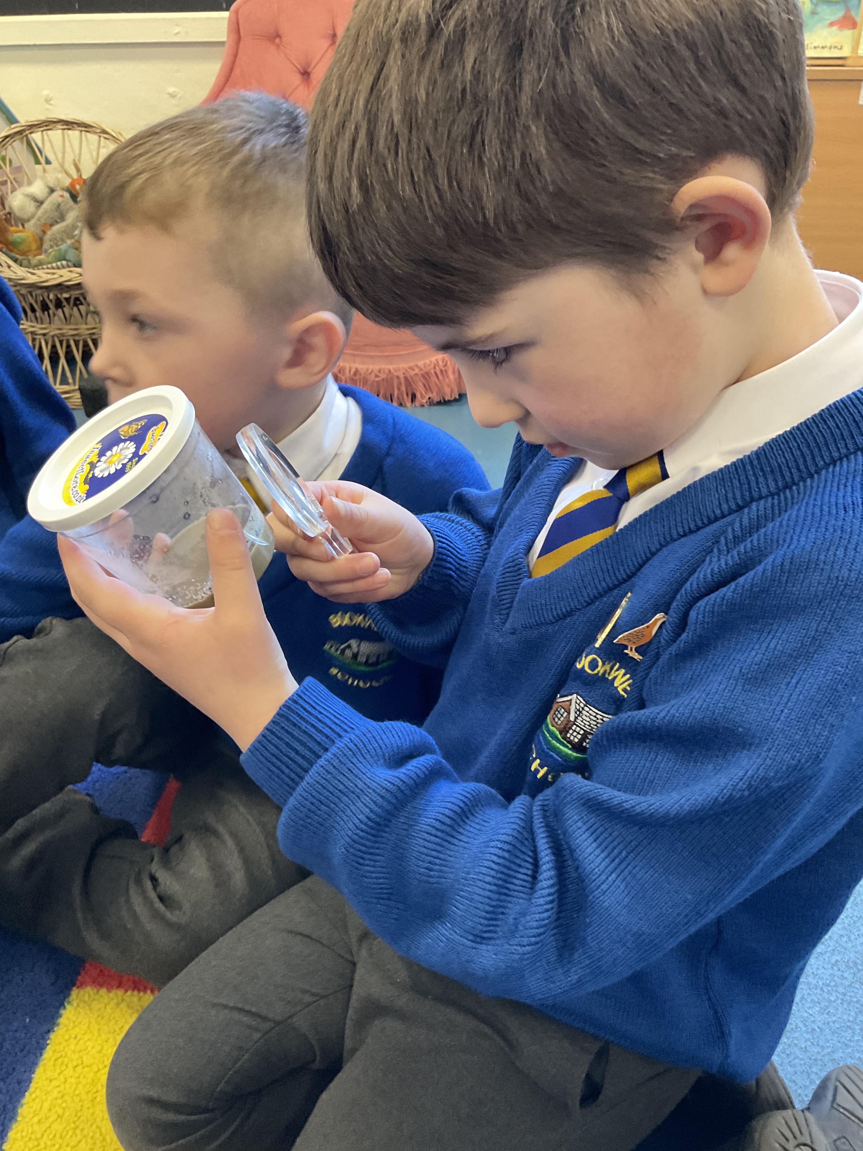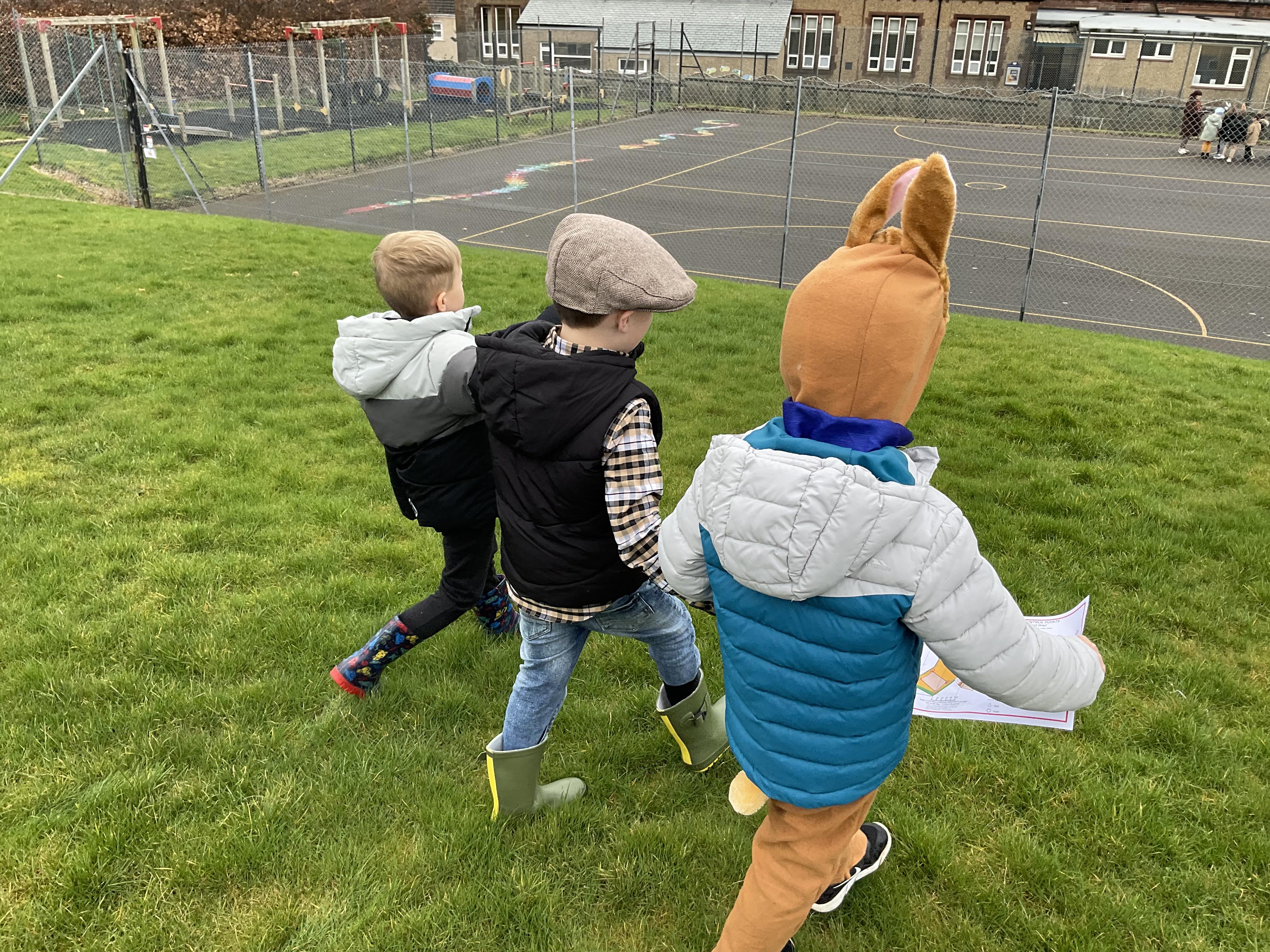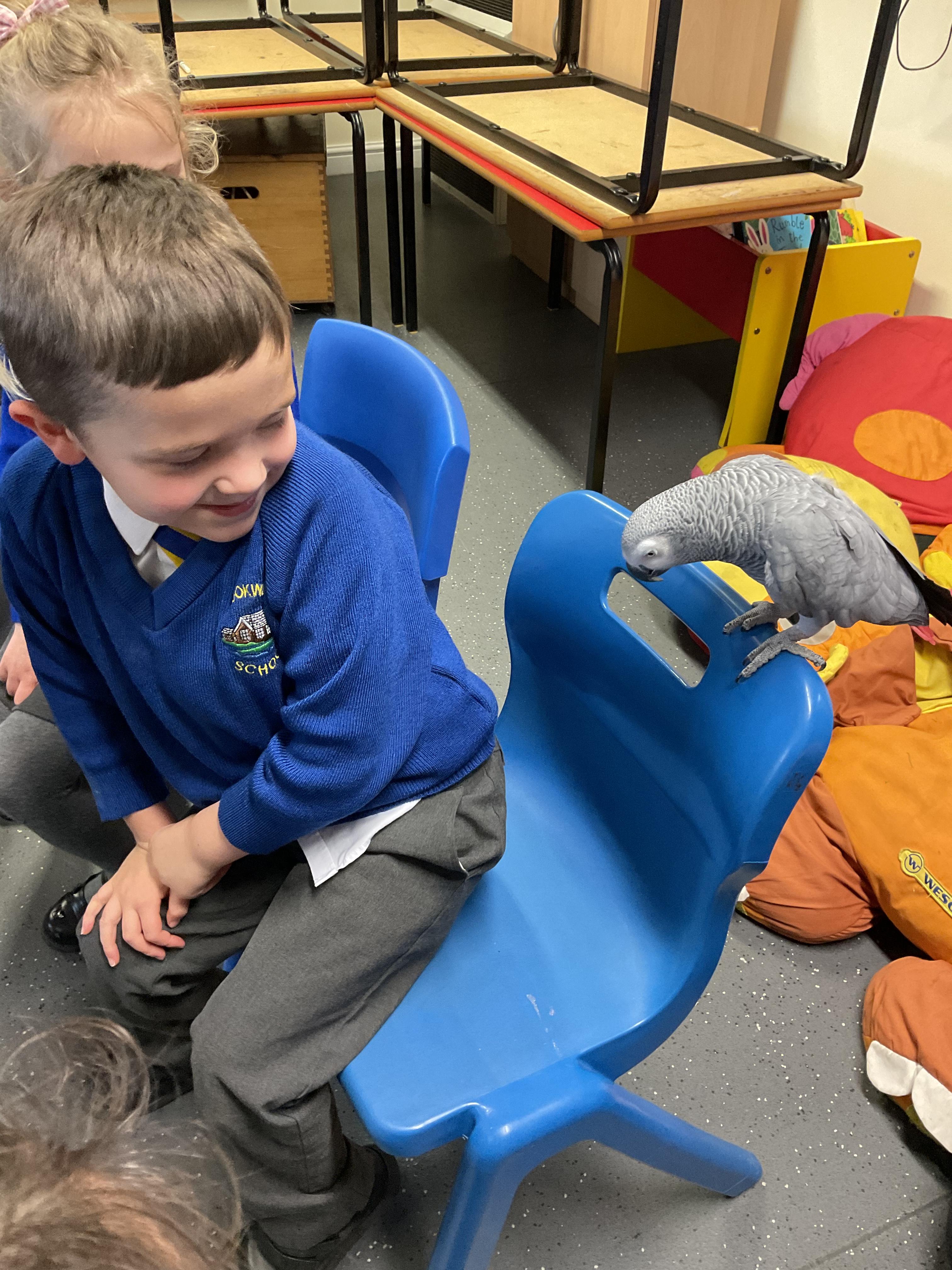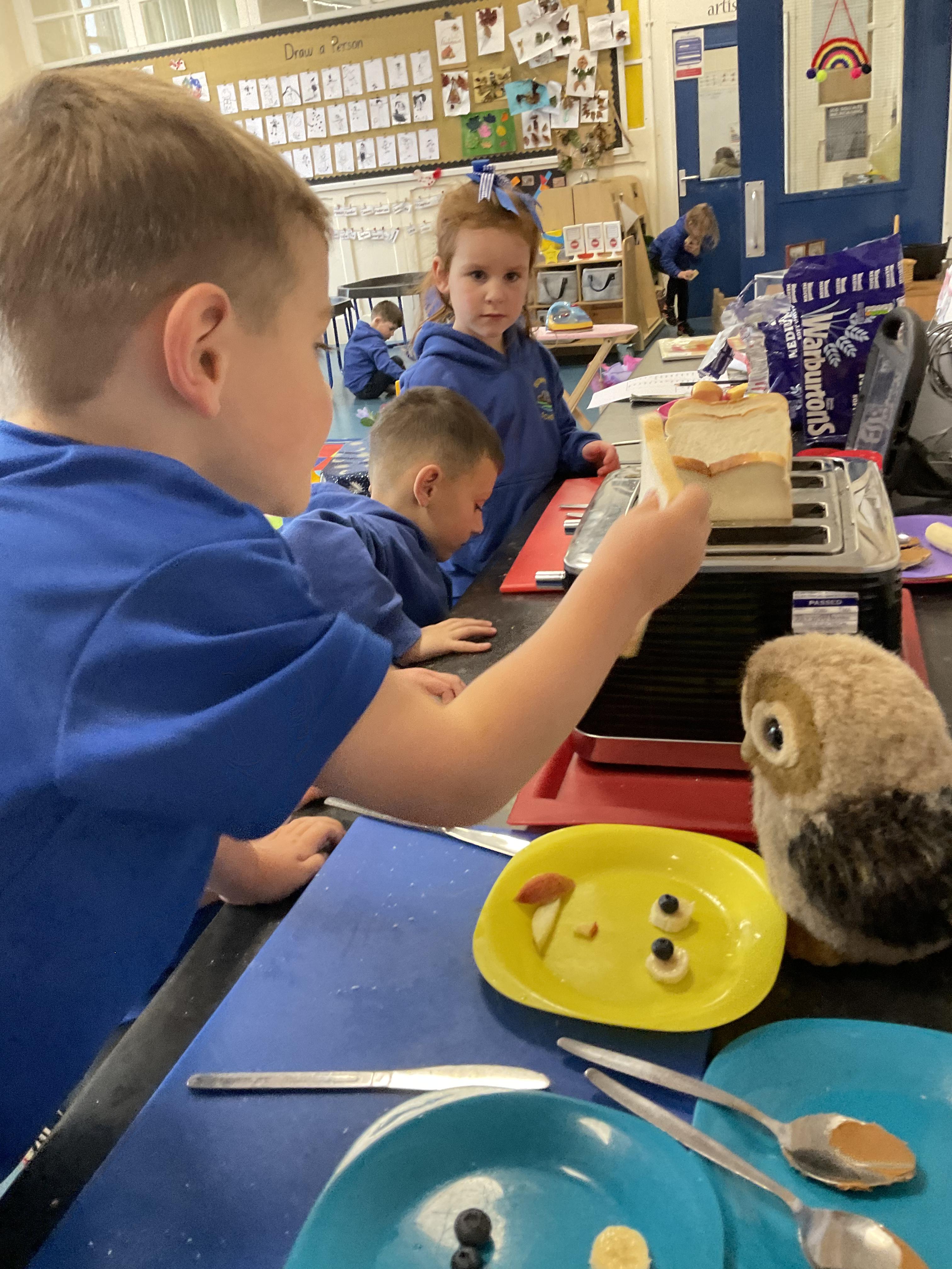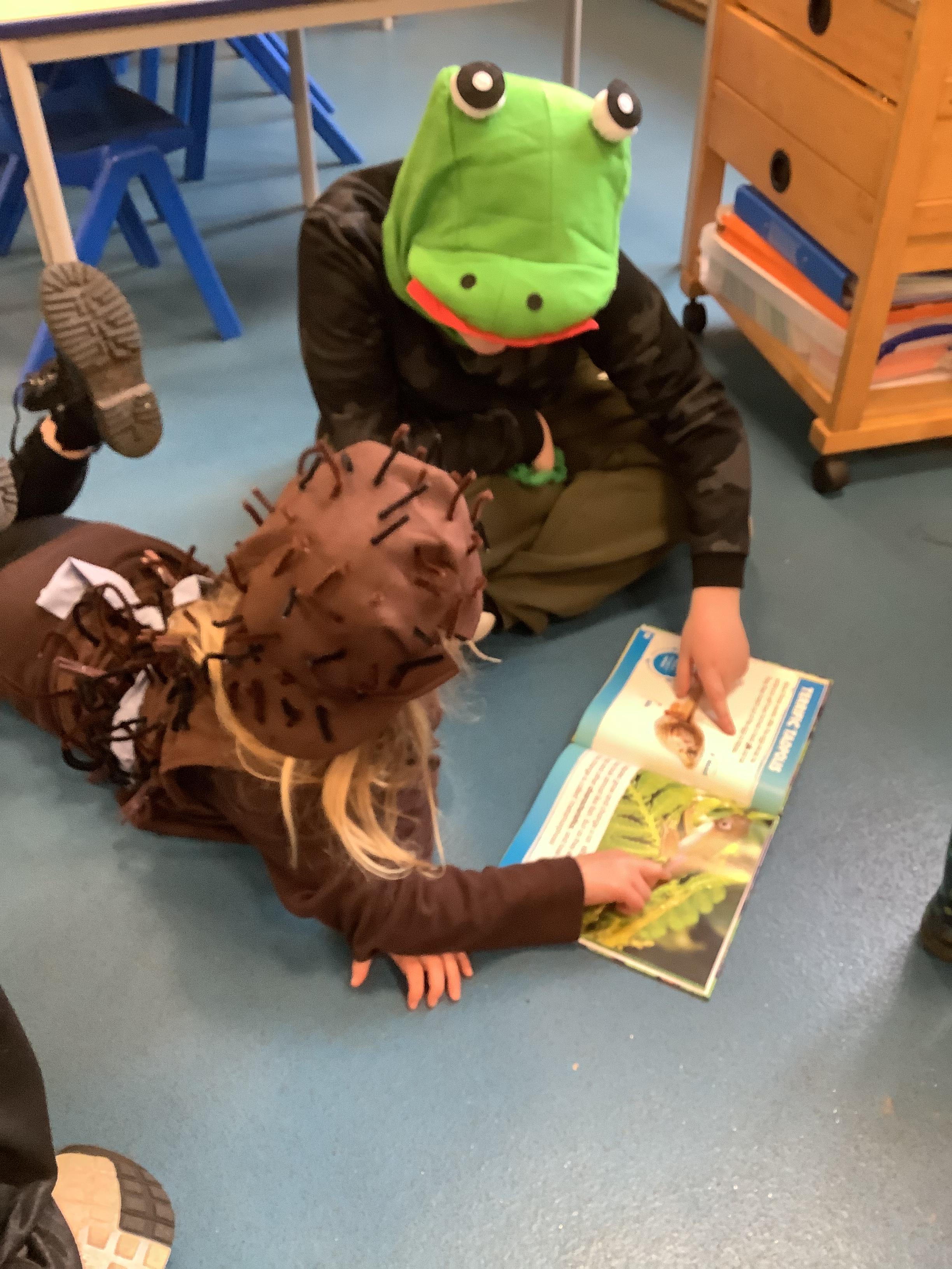 The children found a message in our curiosity cube. The message was from the Owl Babies, they needed our help to find their owl mother. Their mother didn’t return home after hunting one evening. We decided to go on an owl hunt around our school grounds. The children looked high and low and they found her up in a tree, we took her back to see the owl babies in school.