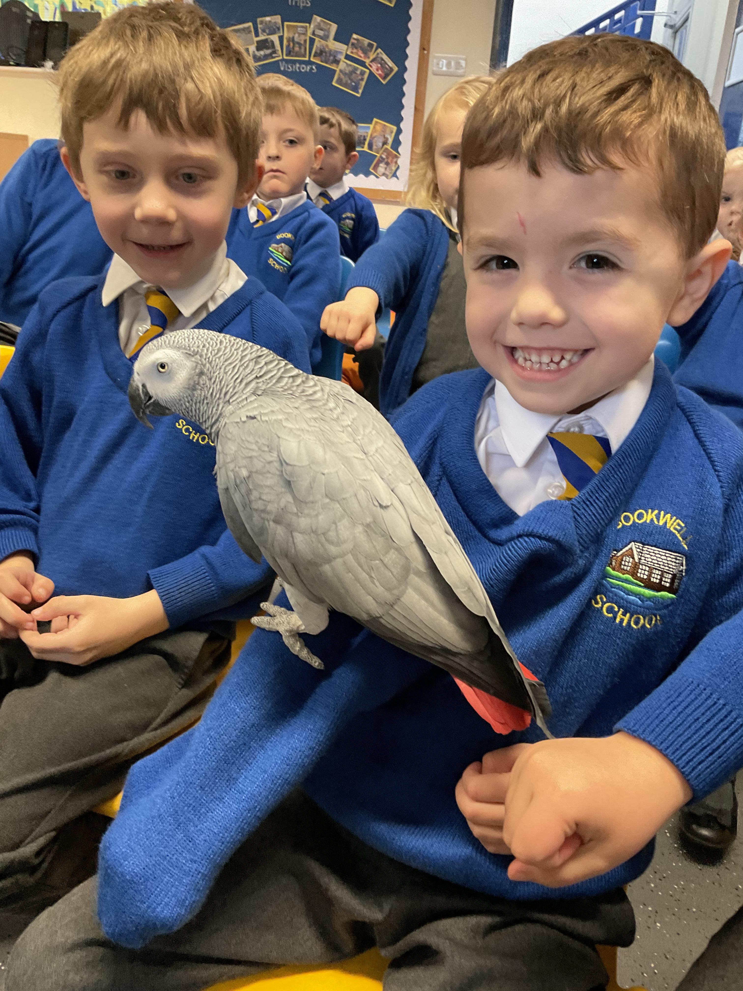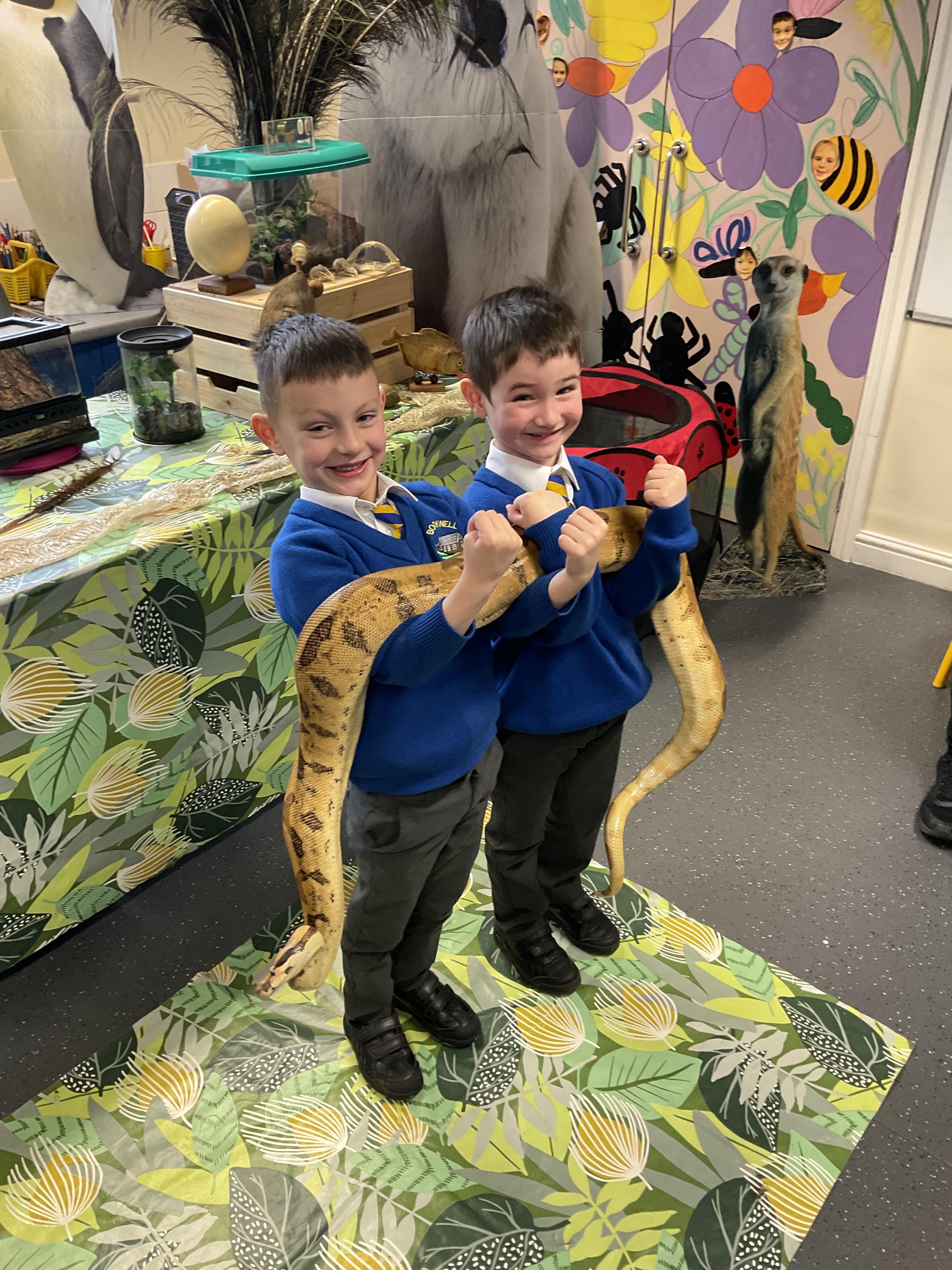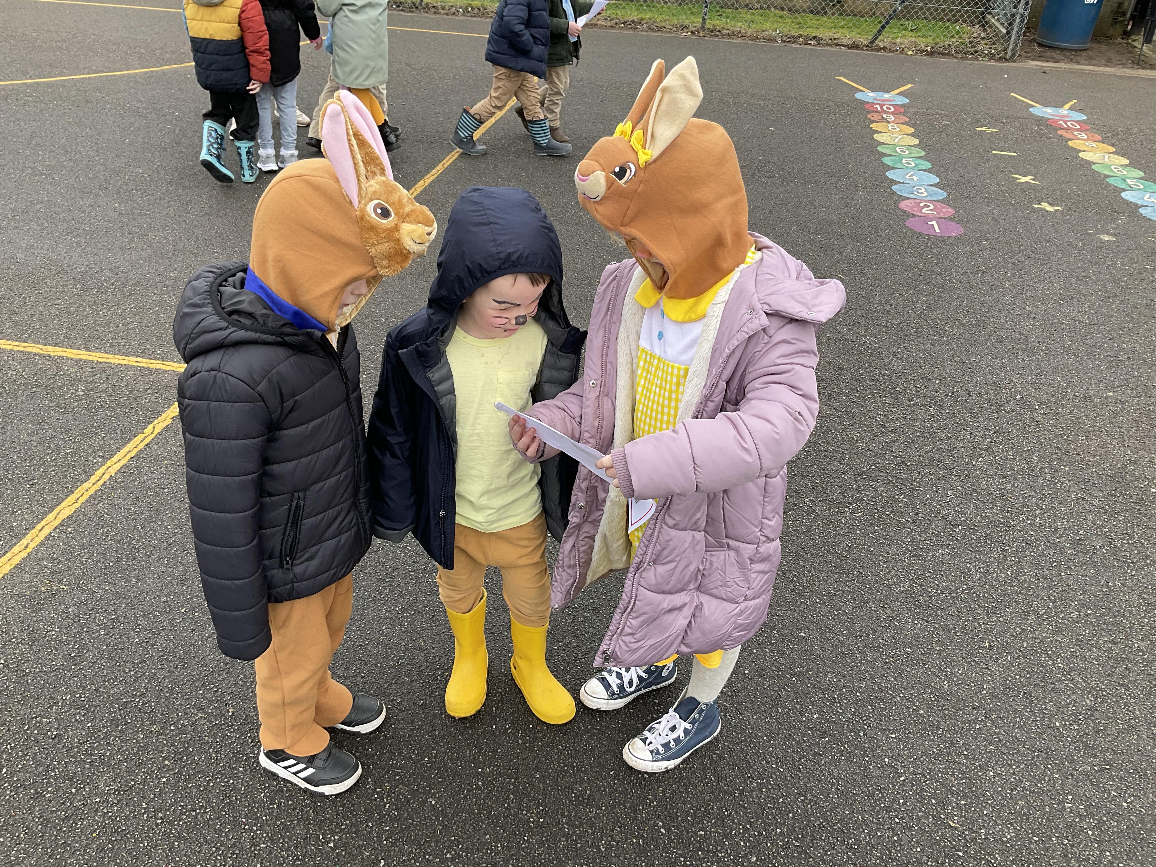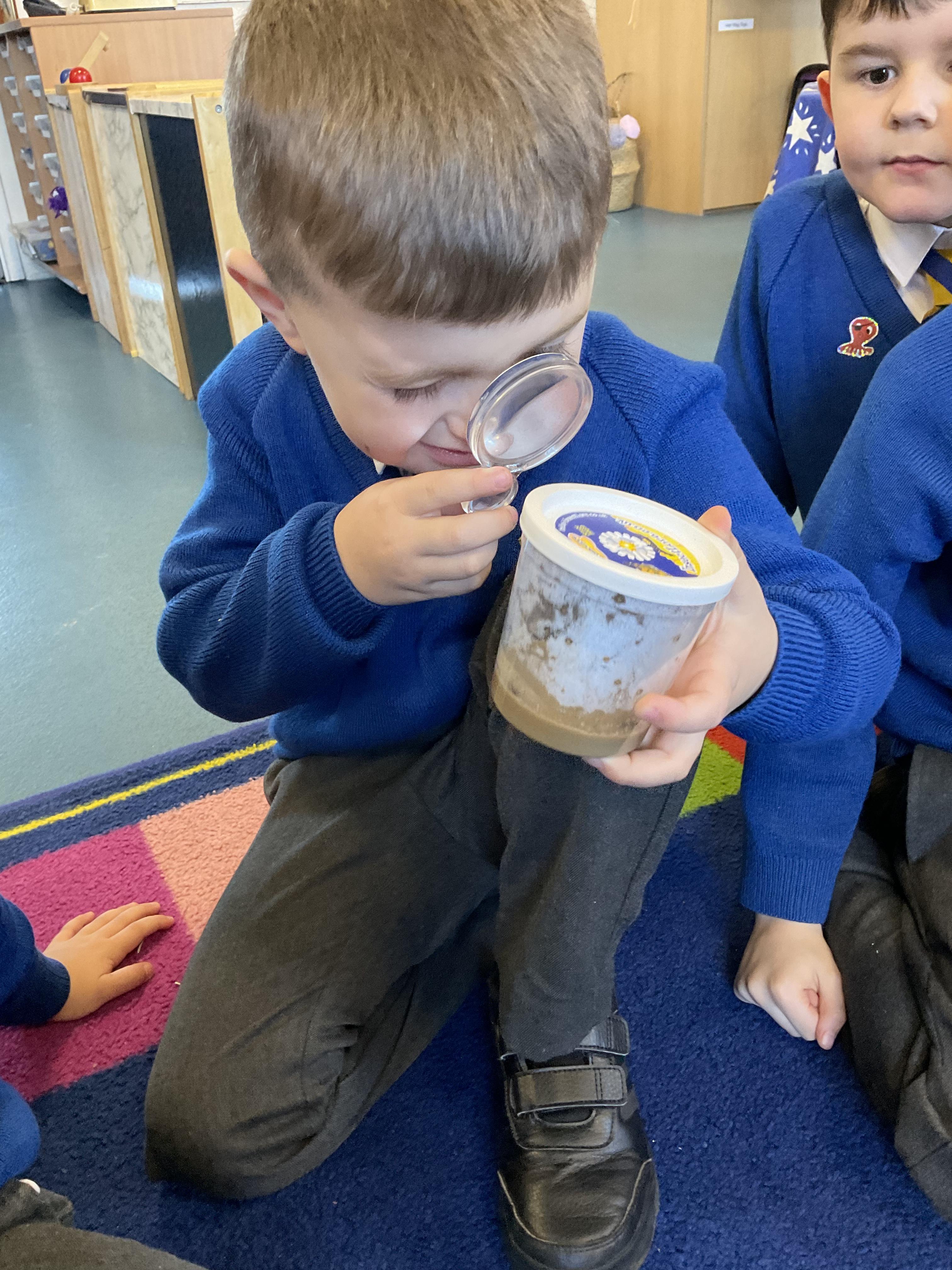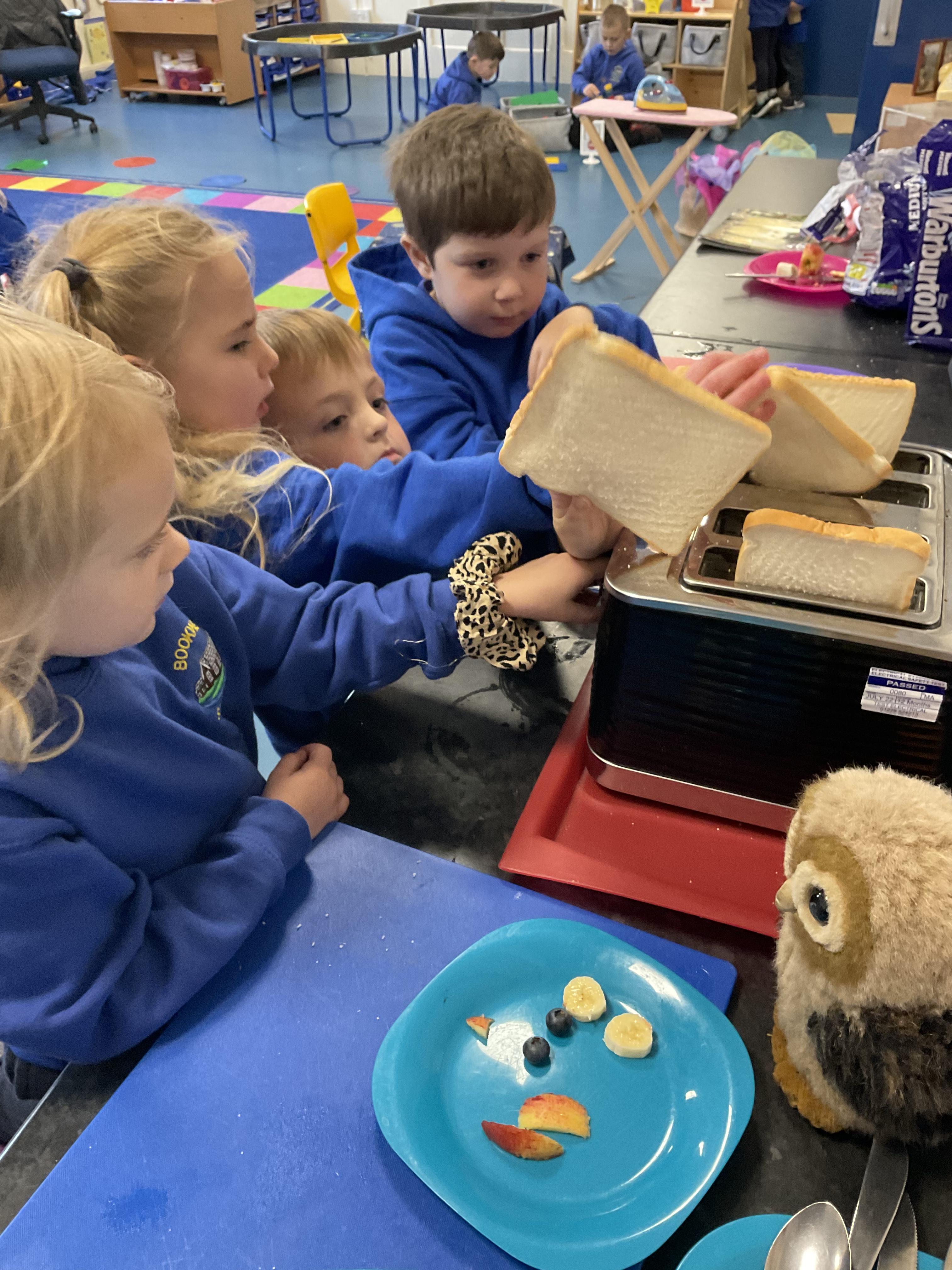 The children found a message in our curiosity cube. The message was from the Owl Babies, they needed our help to find their owl mother. Their mother didn’t return home after hunting one evening. We decided to go on an owl hunt around our school grounds. The children looked high and low and they found her up in a tree, we took her back to see the owl babies in school.