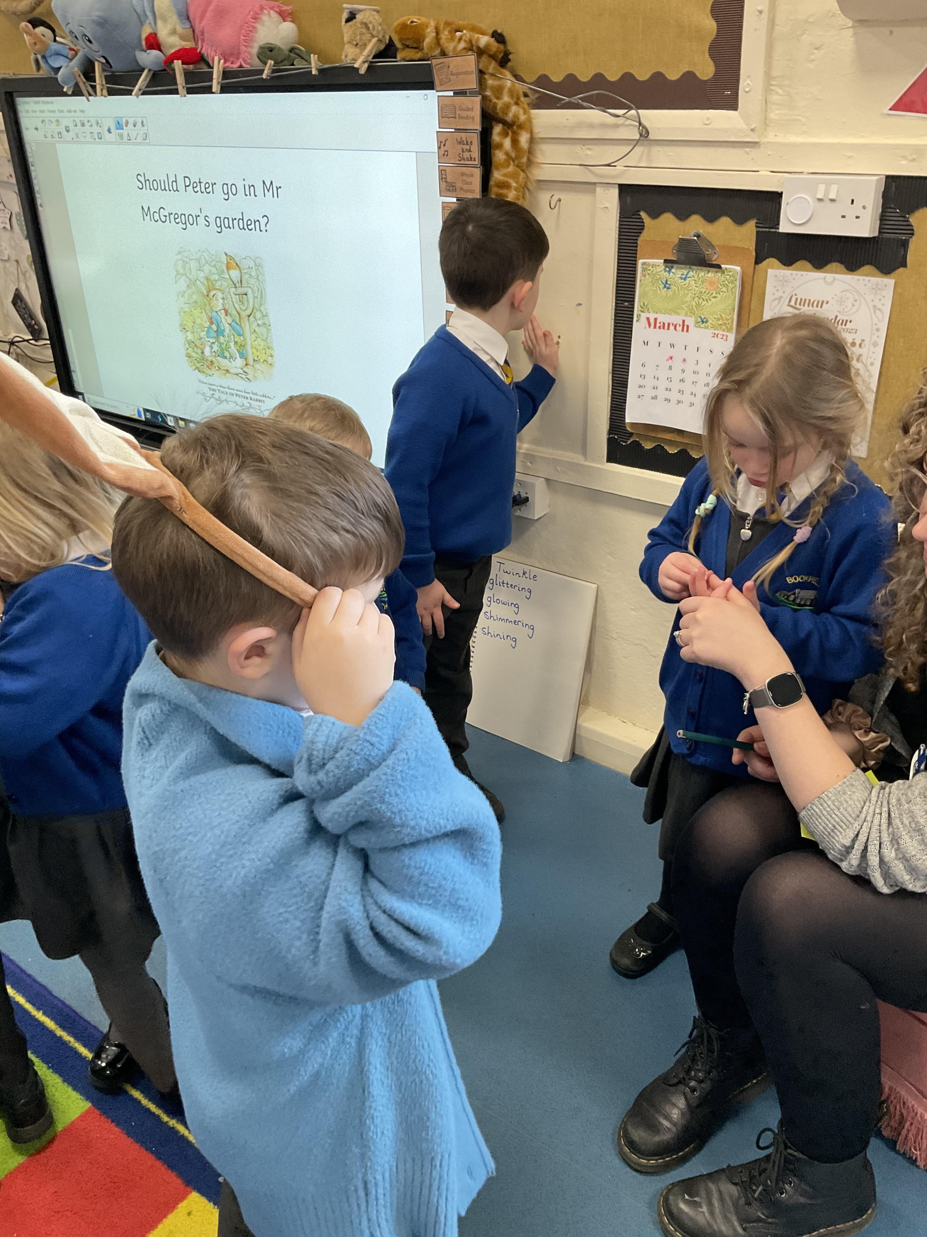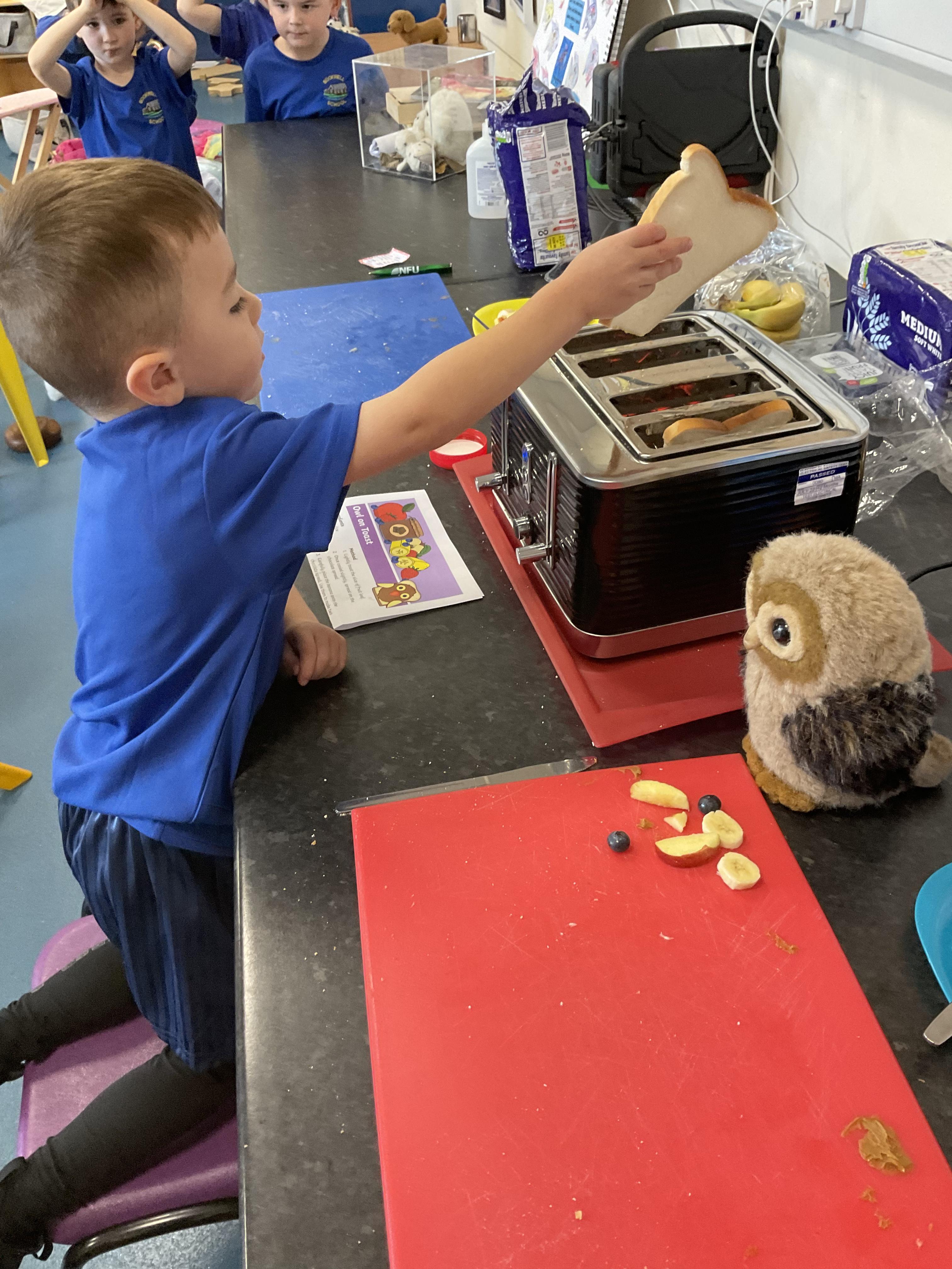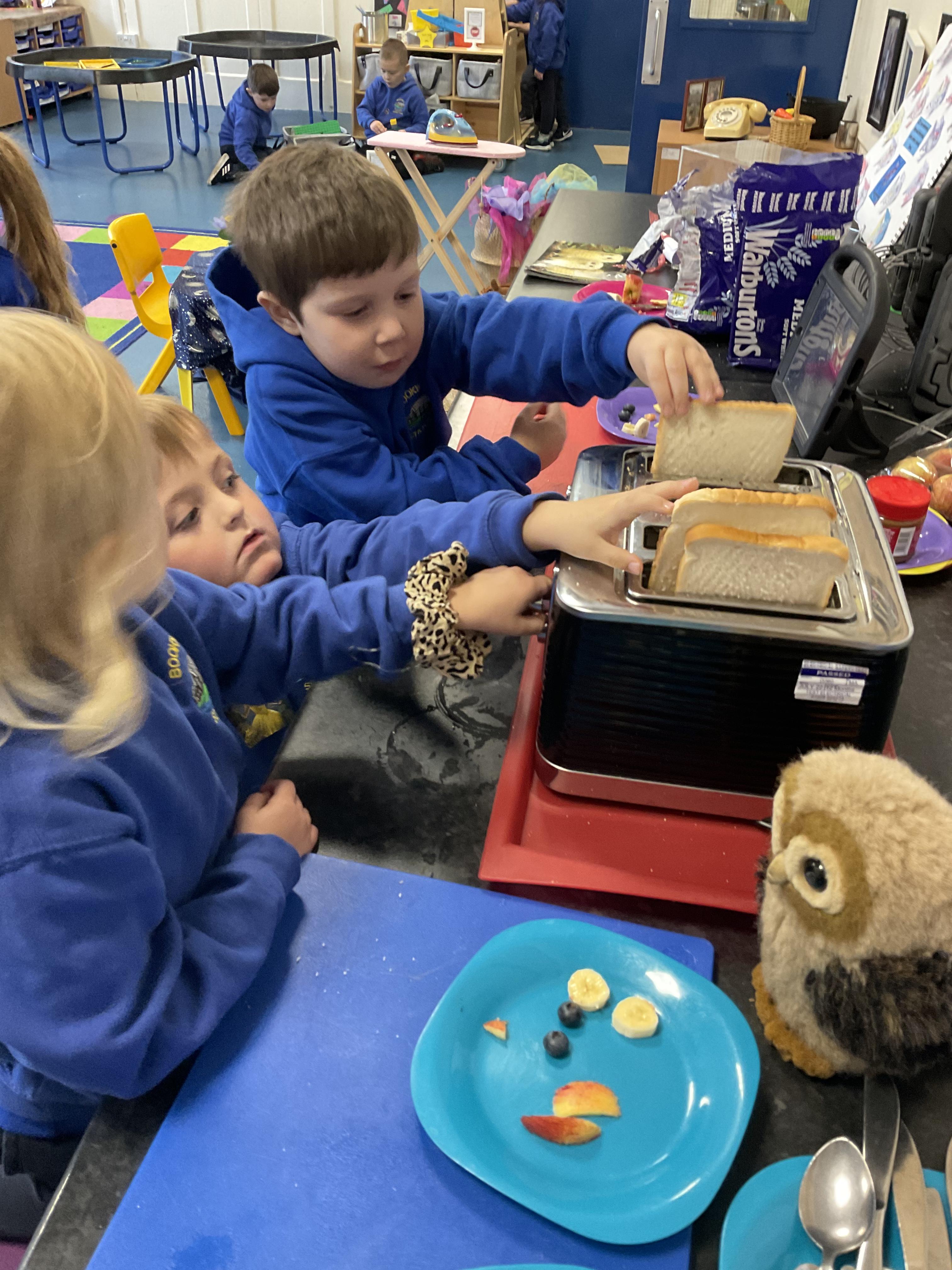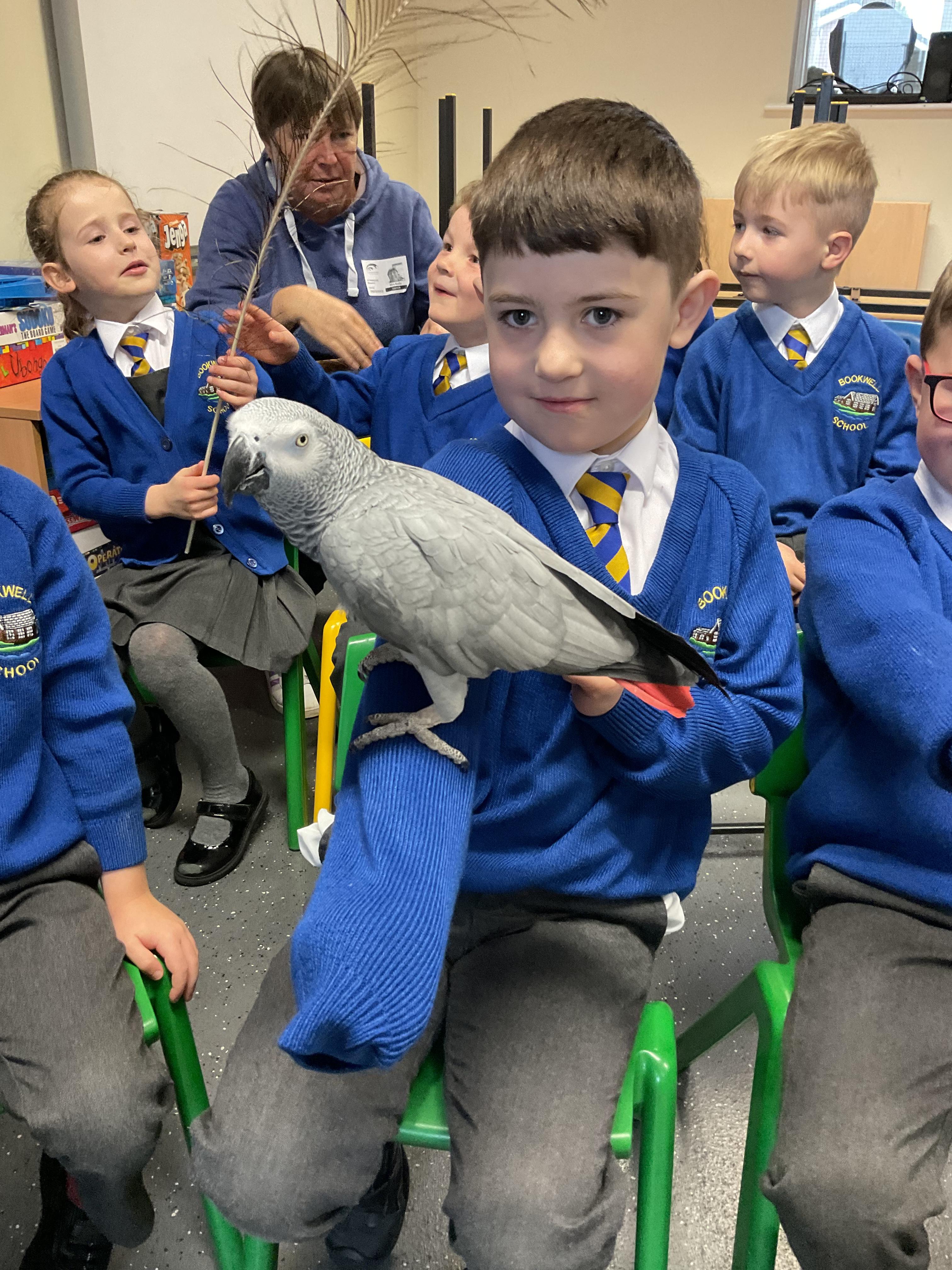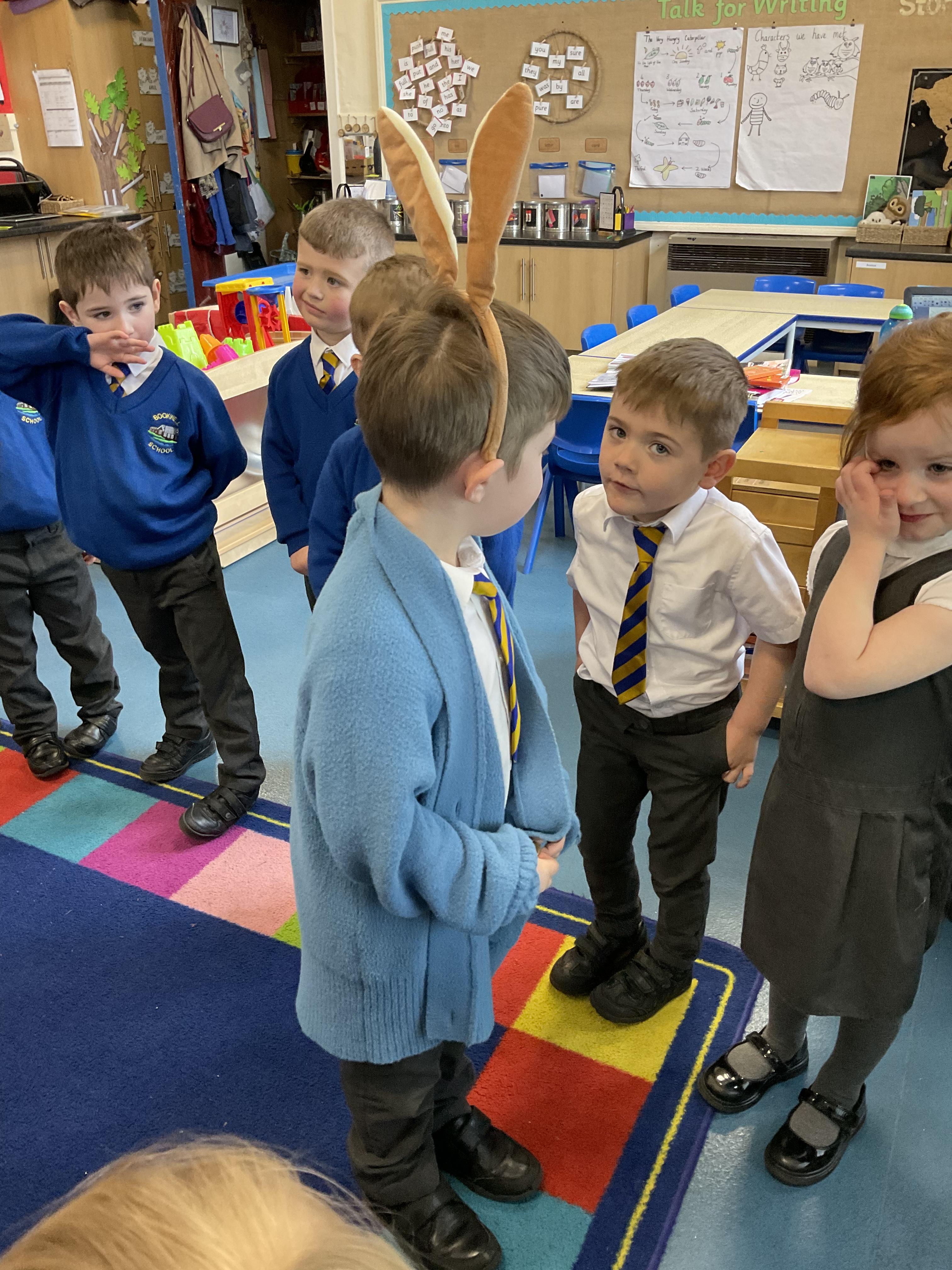The children found a message in our curiosity cube. The message was from the Owl Babies, they needed our help to find their owl mother. Their mother didn’t return home after hunting one evening. We decided to go on an owl hunt around our school grounds. The children looked high and low and they found her up in a tree, we took her back to see the owl babies in school.
