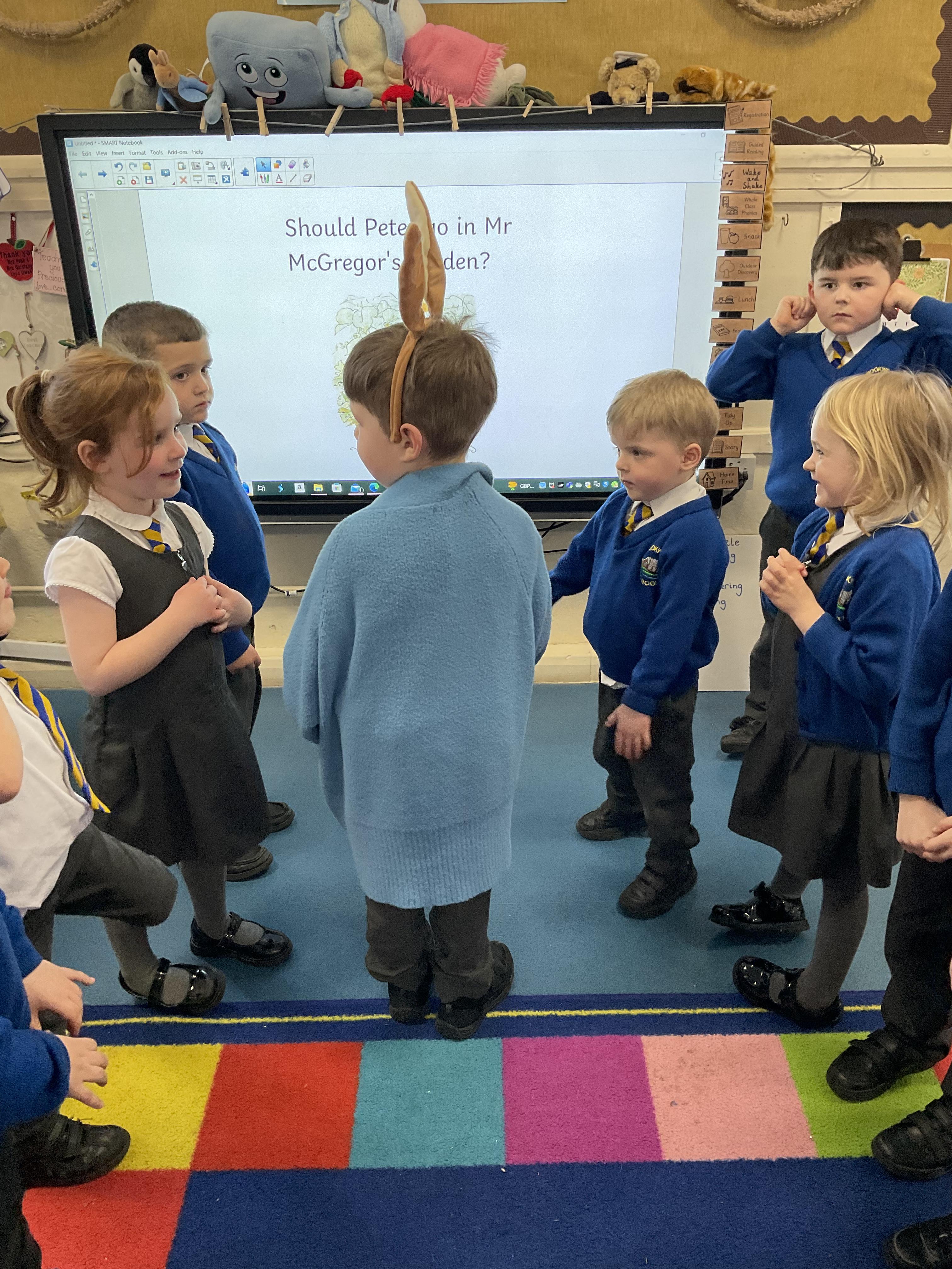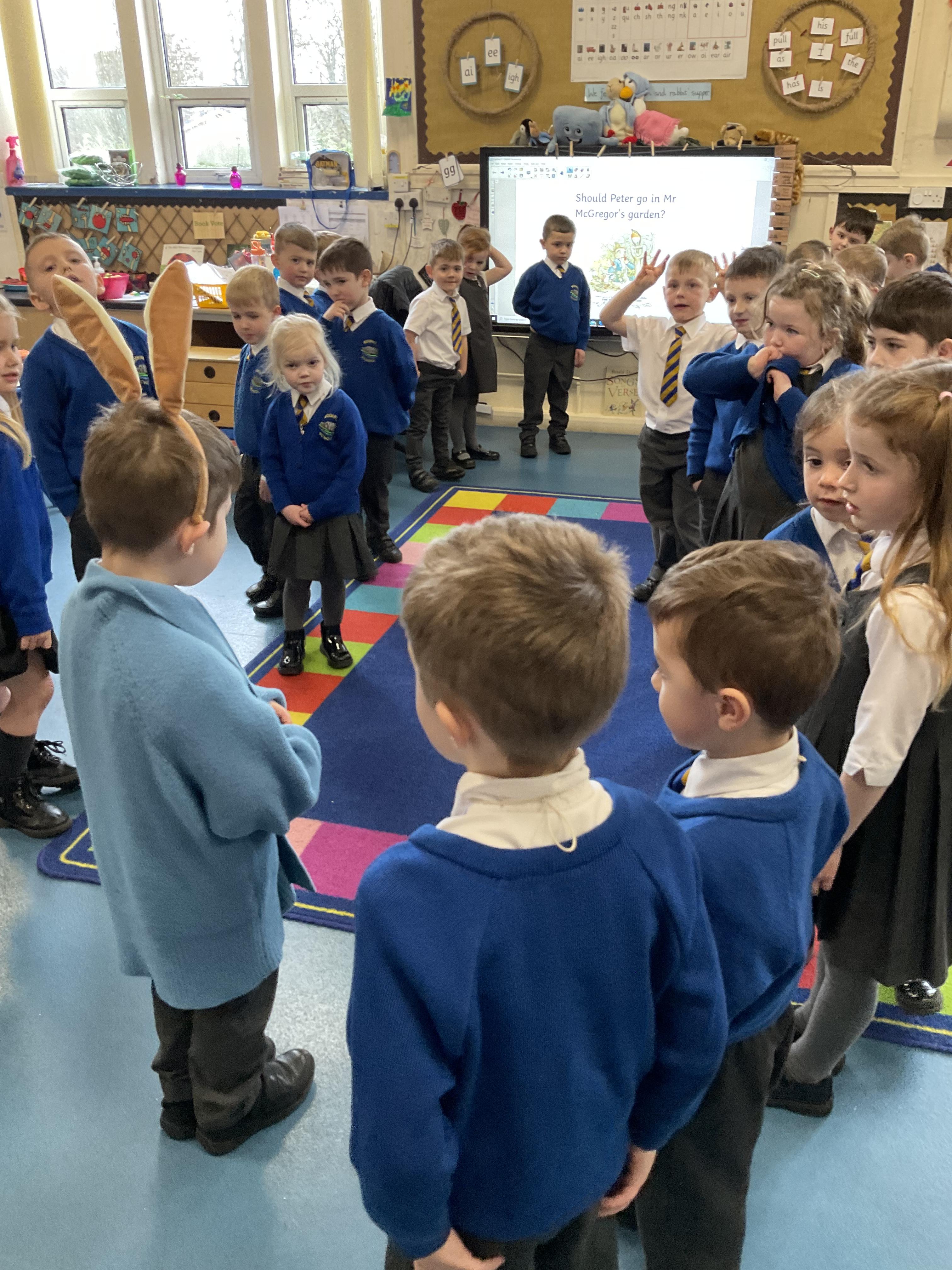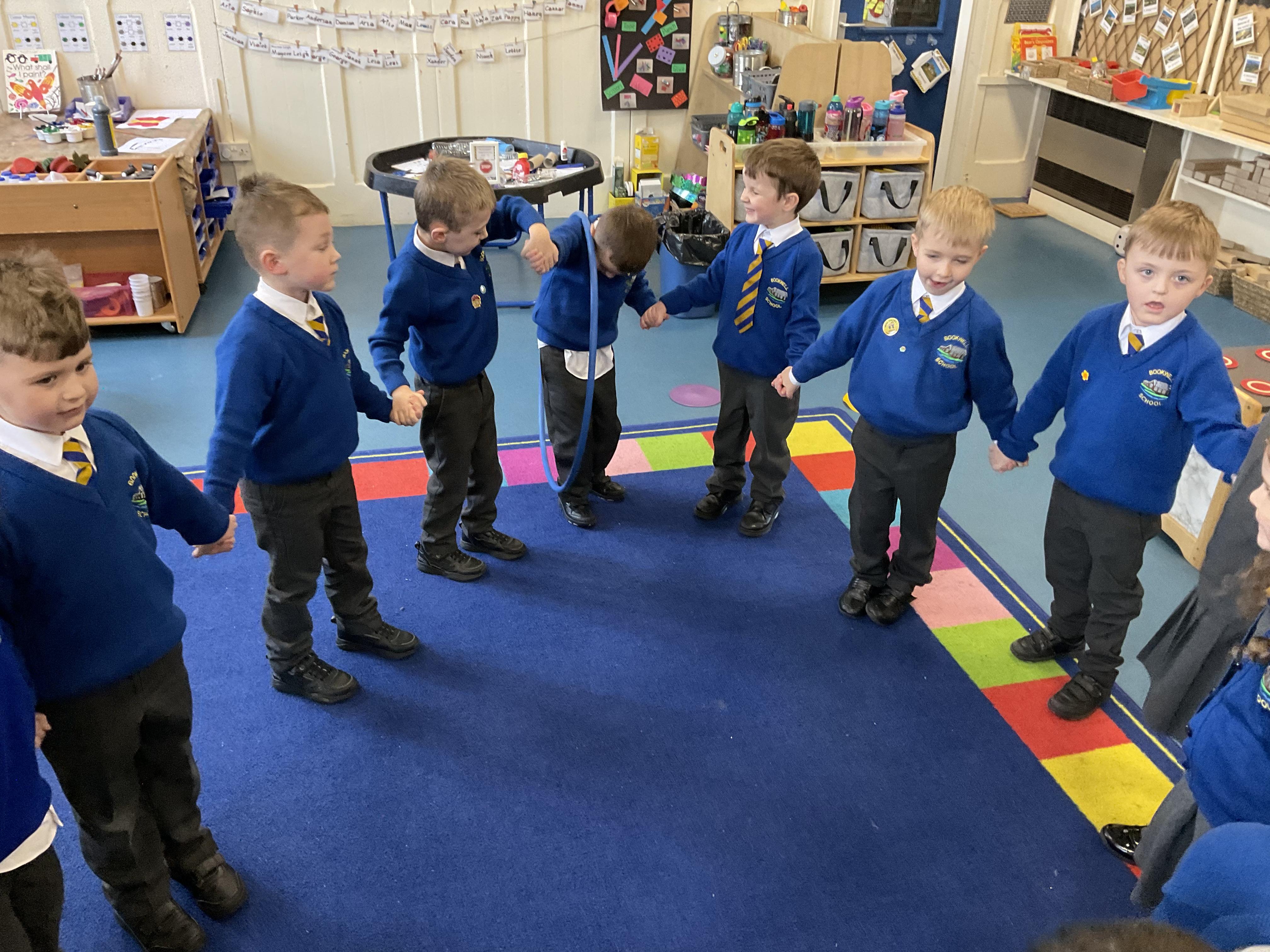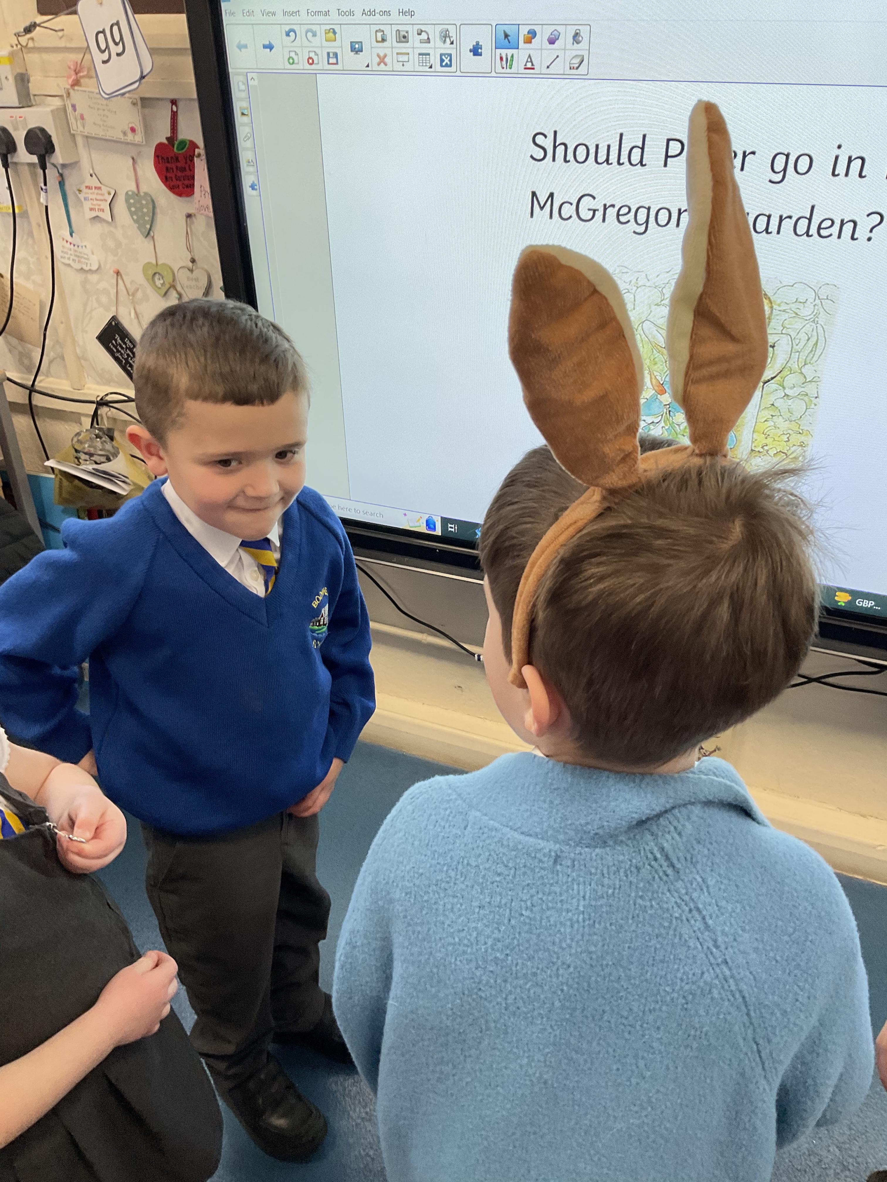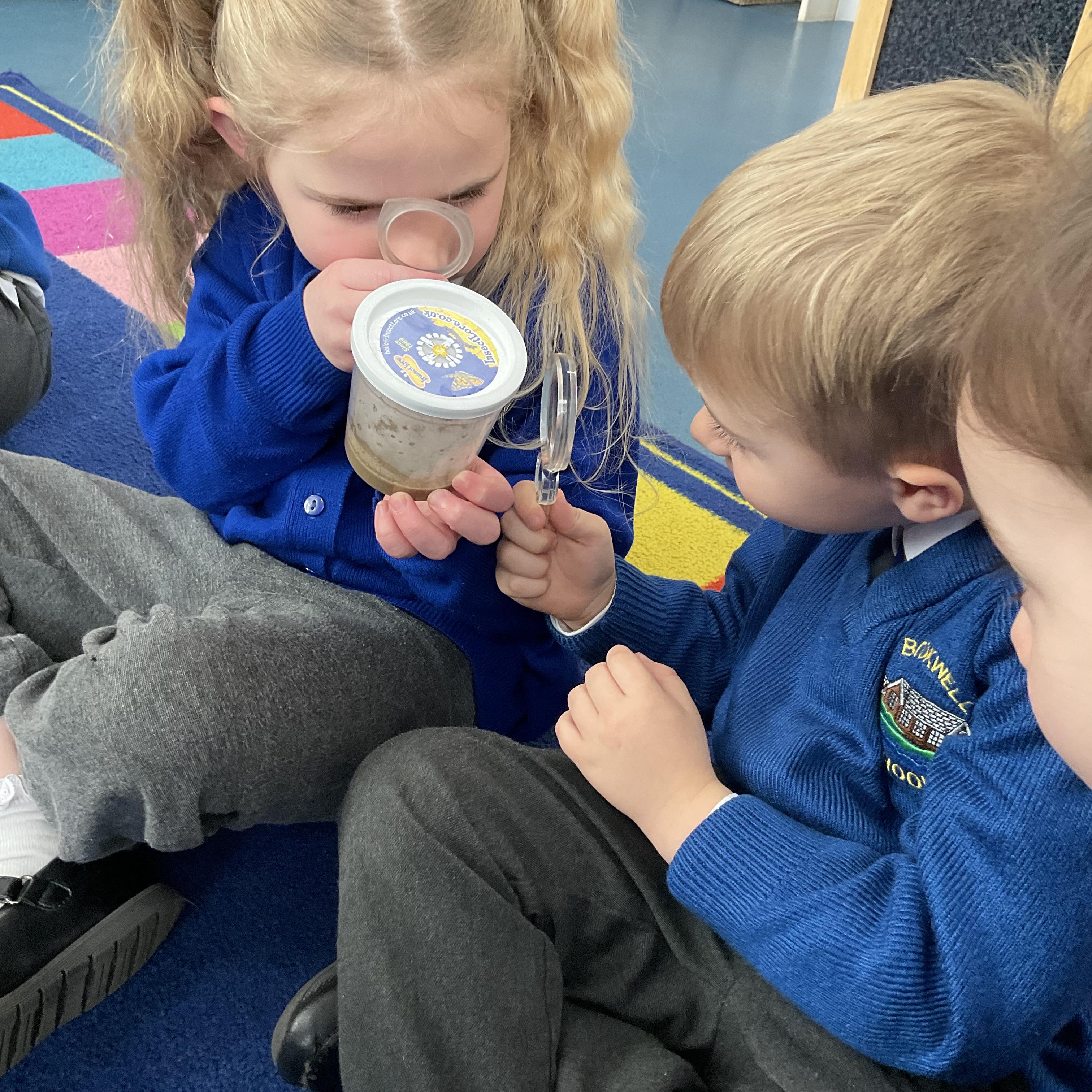 The children found a message in our curiosity cube. The message was from the Owl Babies, they needed our help to find their owl mother. Their mother didn’t return home after hunting one evening. We decided to go on an owl hunt around our school grounds. The children looked high and low and they found her up in a tree, we took her back to see the owl babies in school.