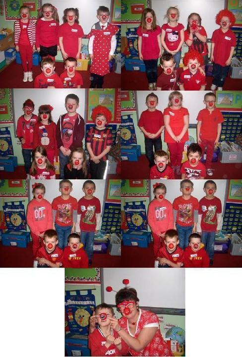 We all dressed up in red clothes and brought money in to help Comic Relief on Red Nose Day.