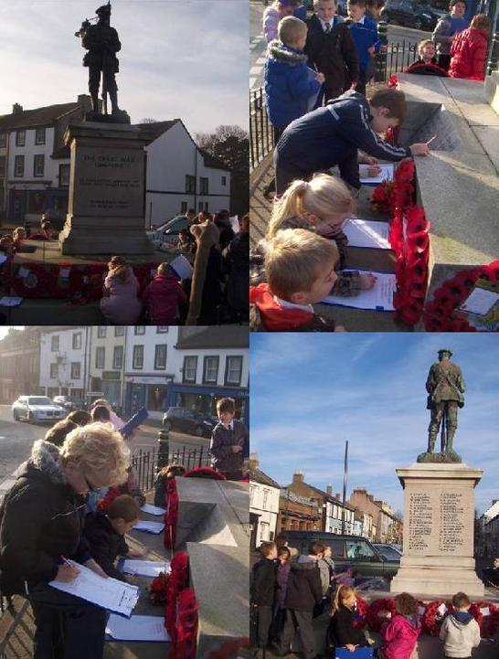 Year 2 had a close look at the war memorial in Egremont after the poppy wreaths had been placed there. We drew the soldier and and wrote down any family names we recognised.