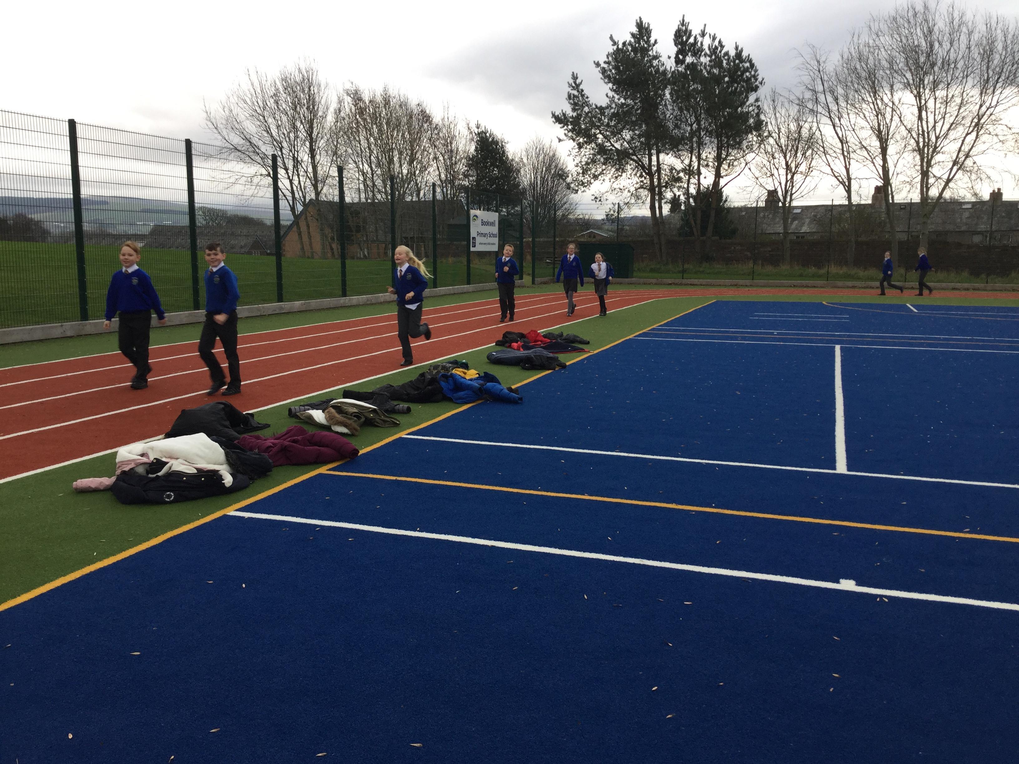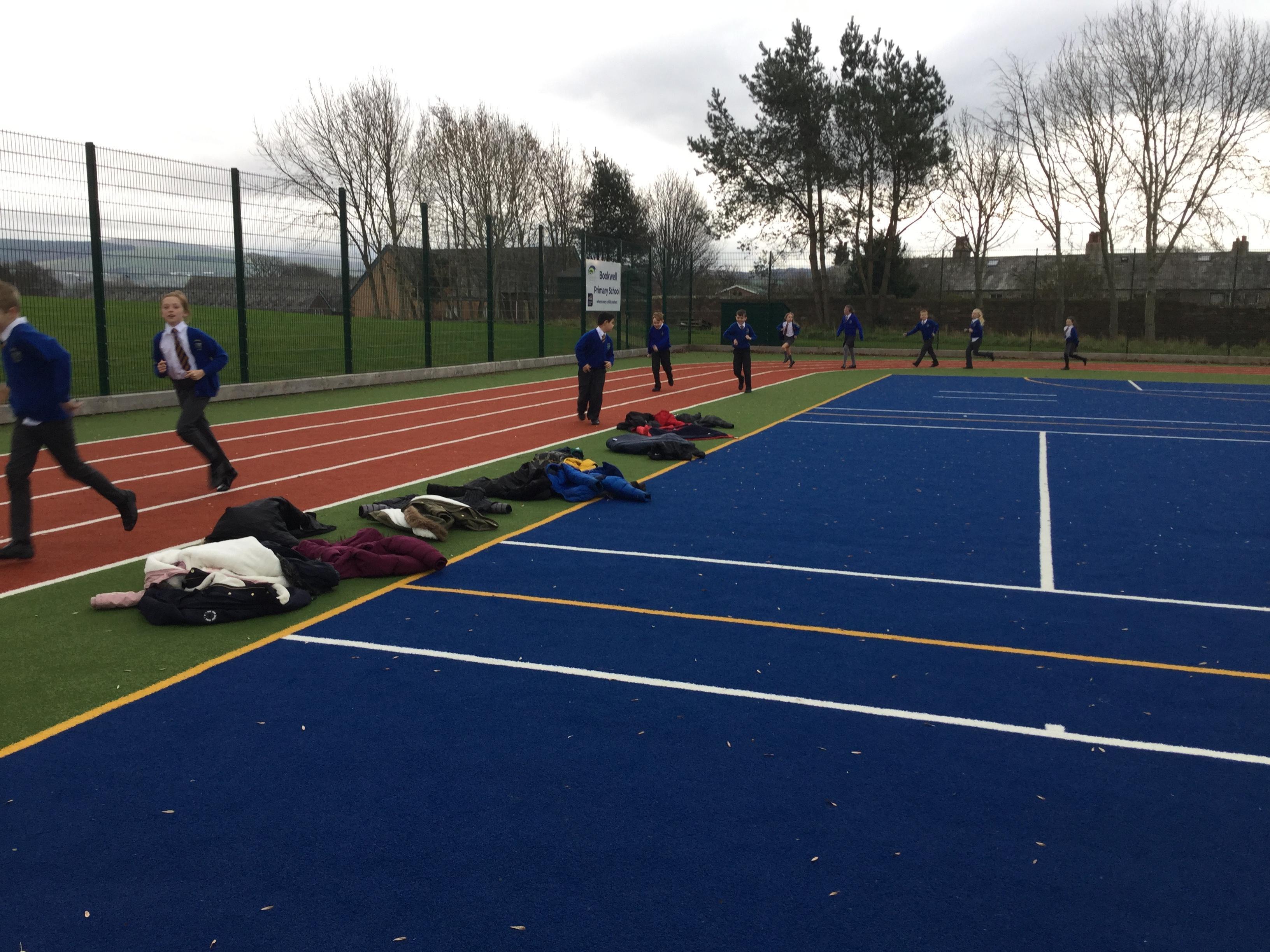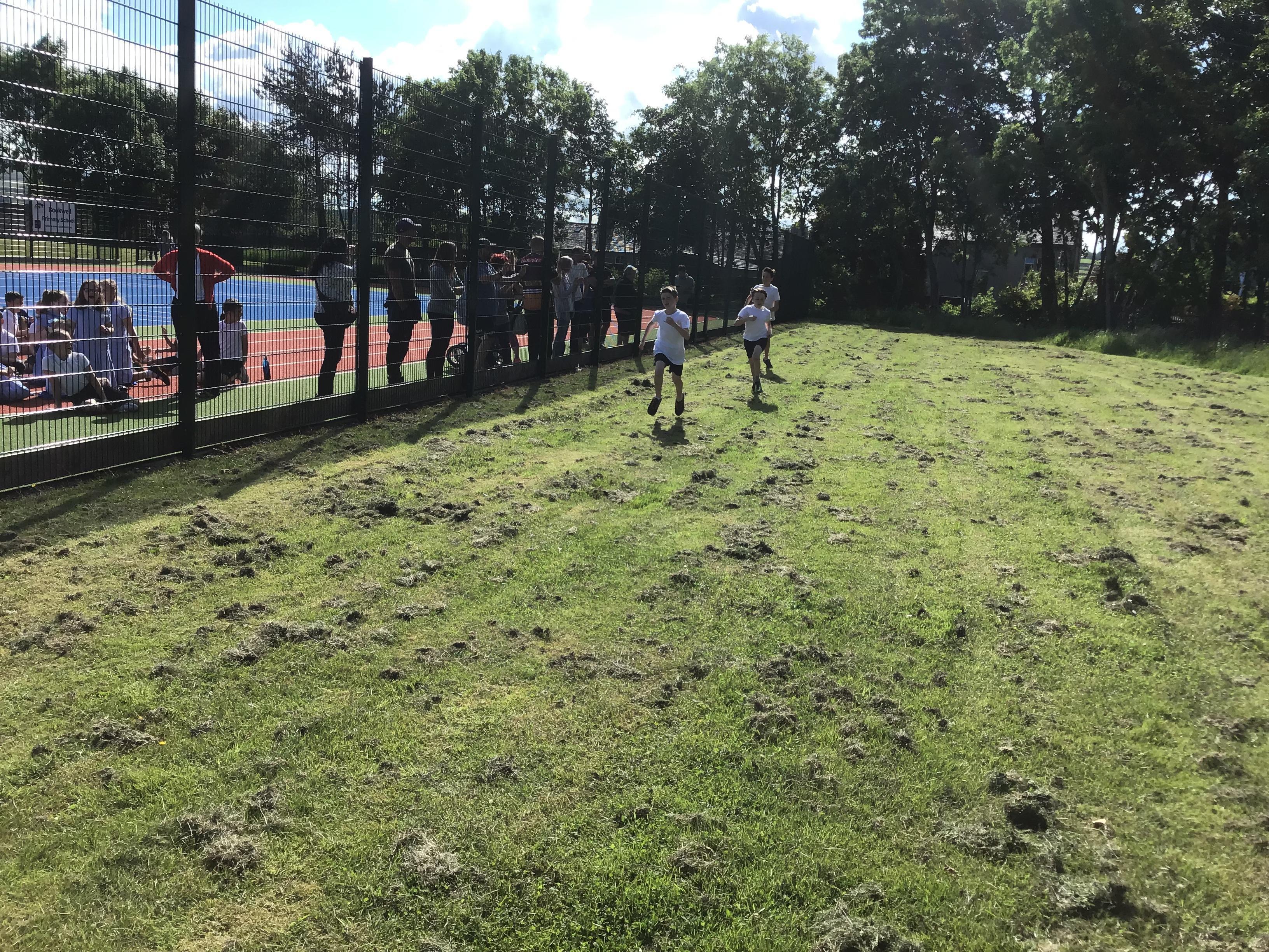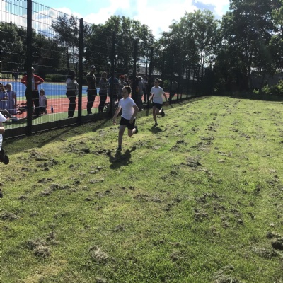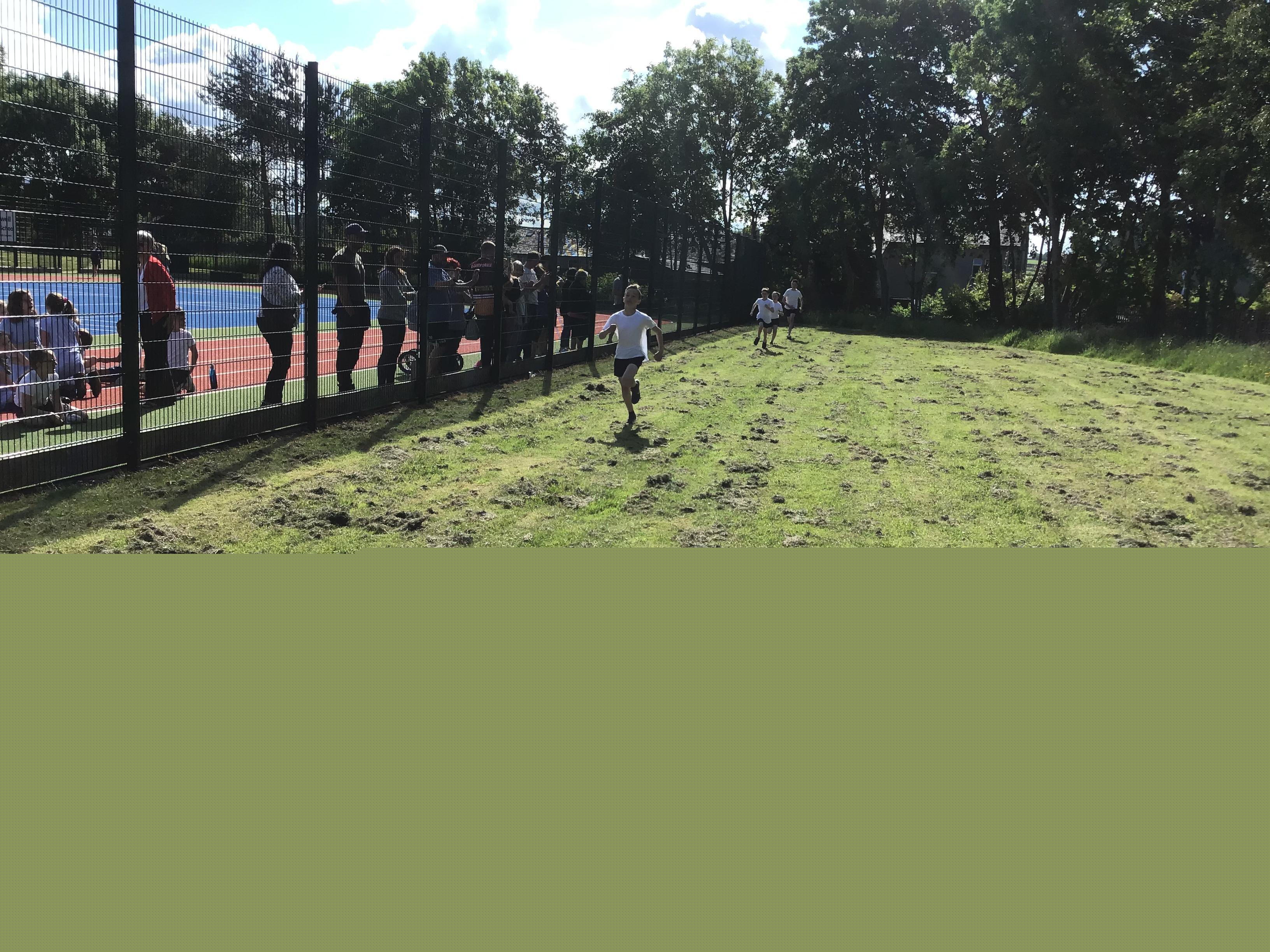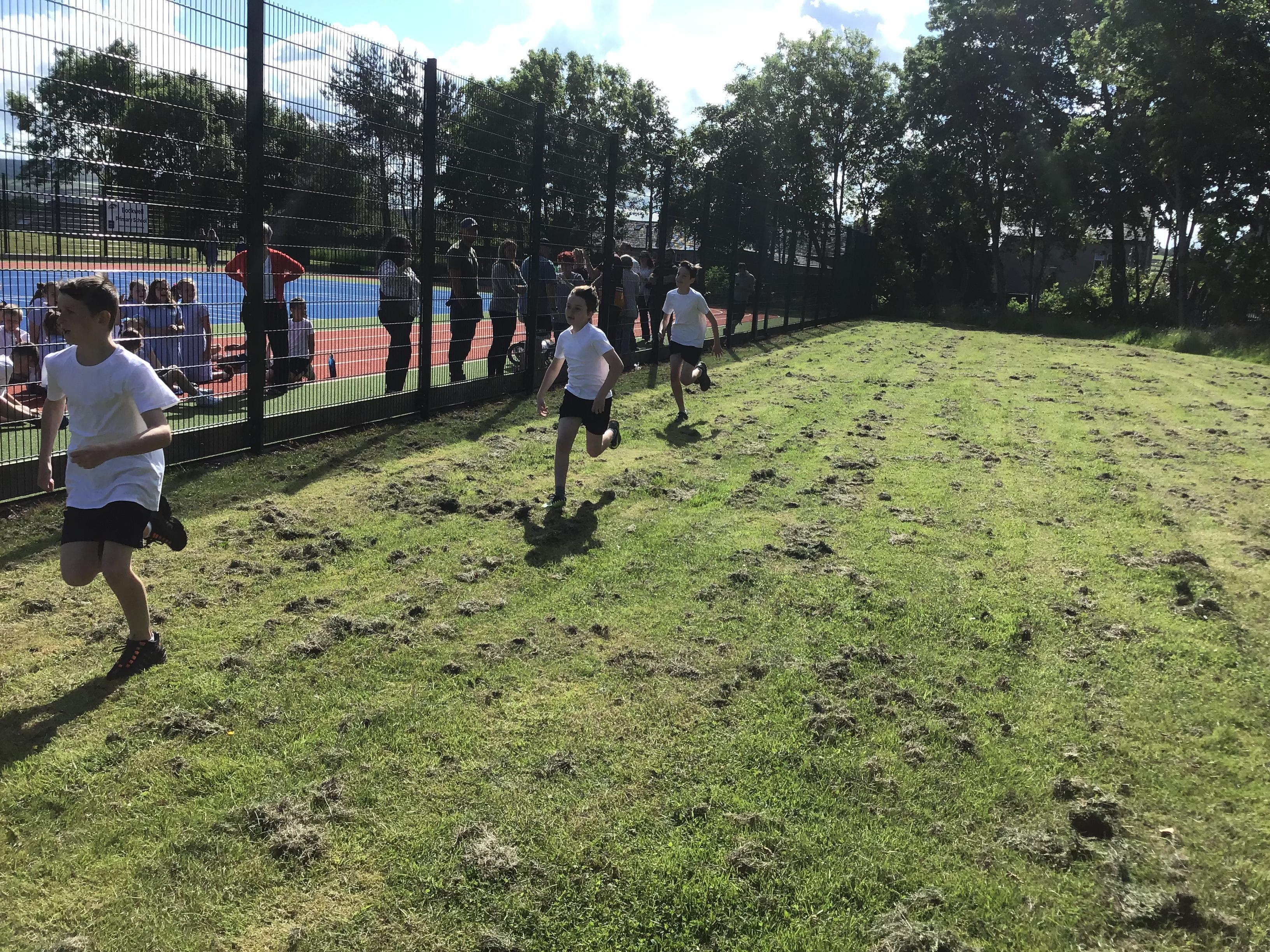 Key Stage 2 sports day started with the long distance event where all runners showed determination to cross the finish line and get points for their team.