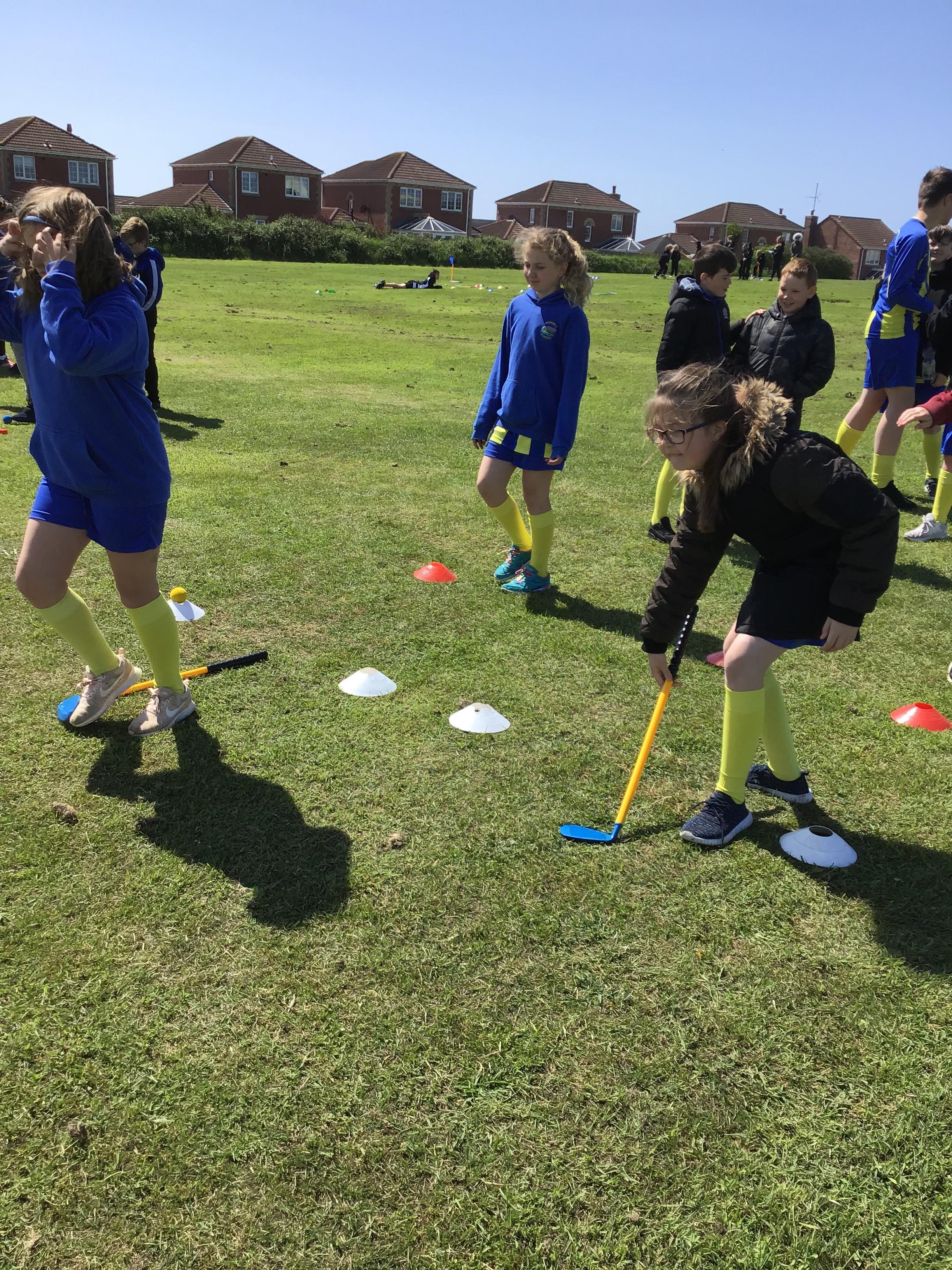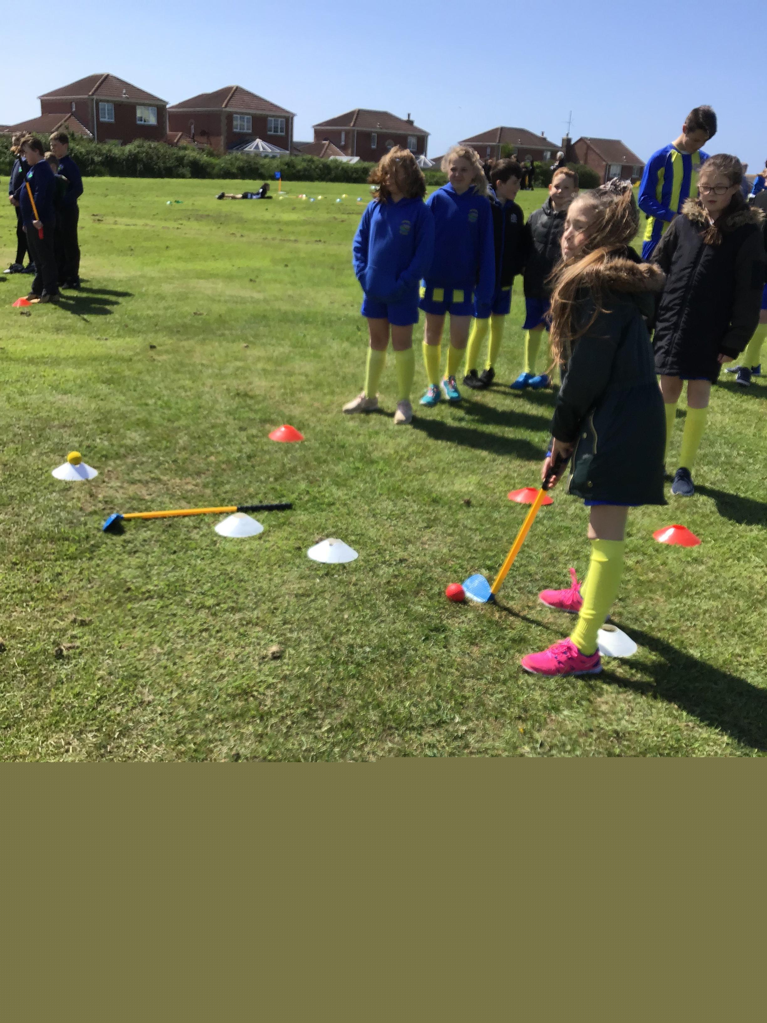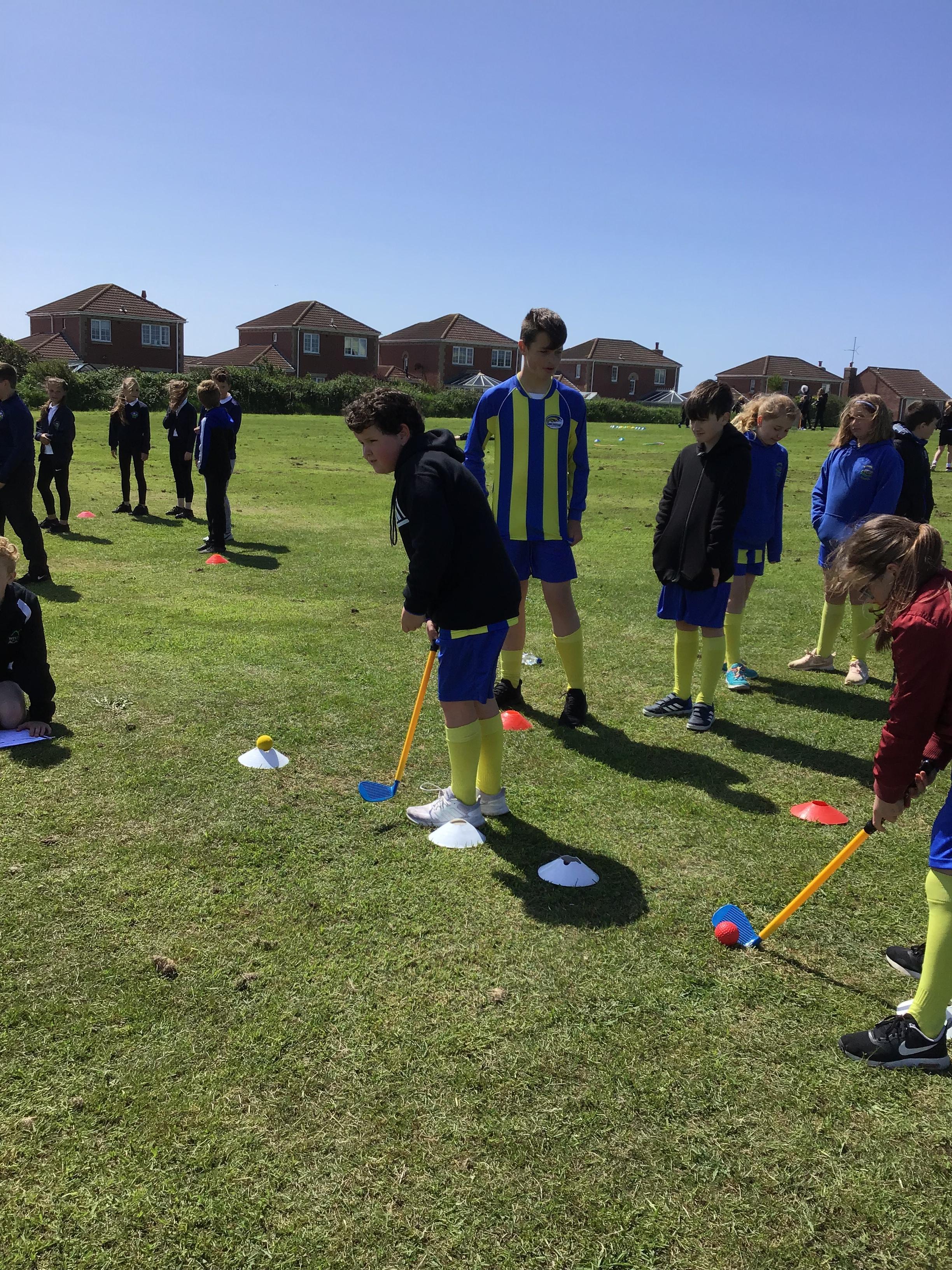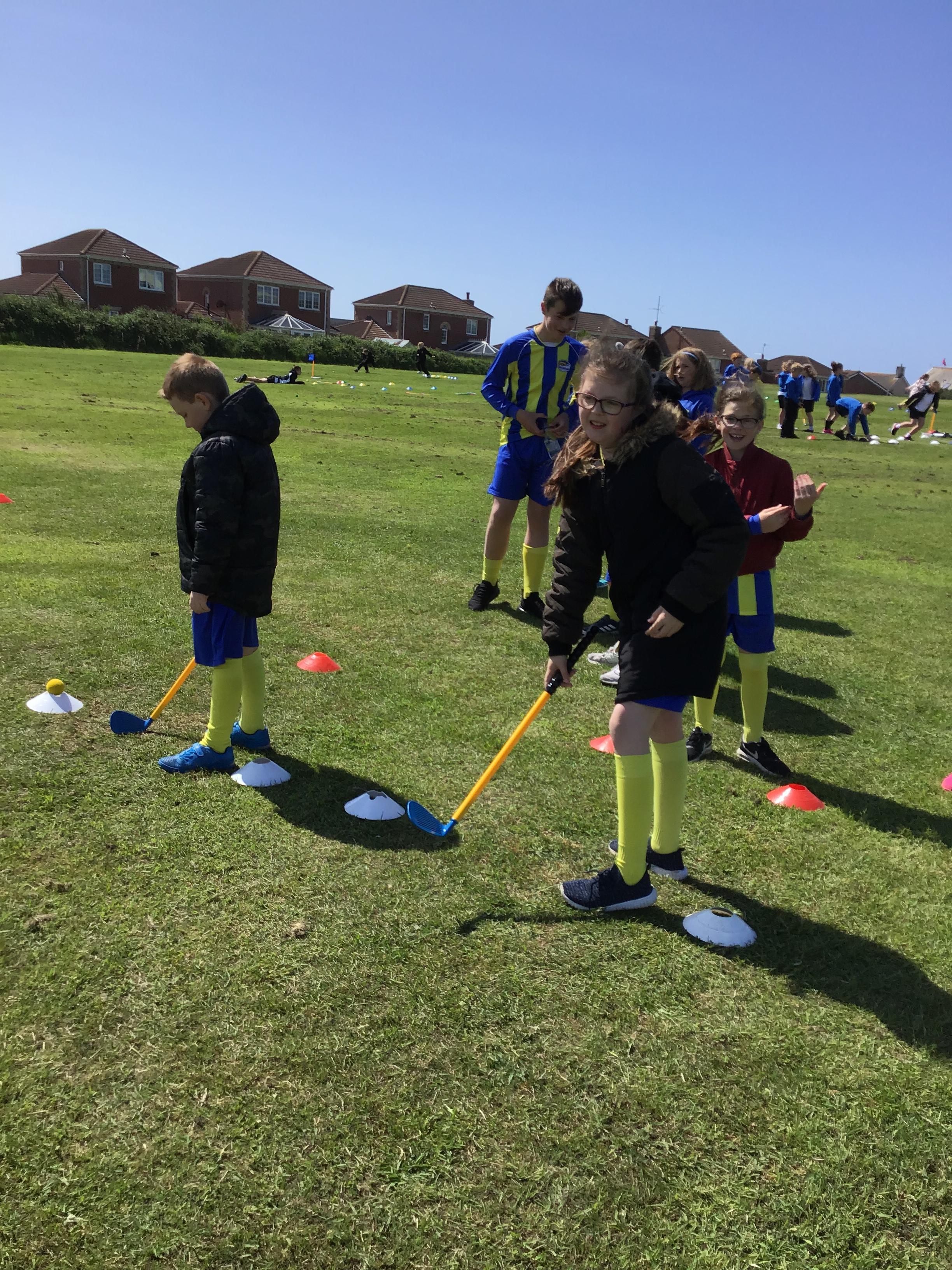 In our last session on hockey we had an intra-school competition in sports teamsWhile two teams battled it out on the pitch the rest of the class completed hockey skills challenges keeping their score which contributed to the teams overall score.  Well done to yellow team who won overall.  The next one will be tri-golf in spring term.