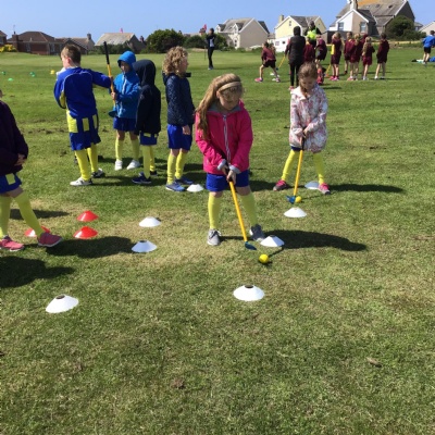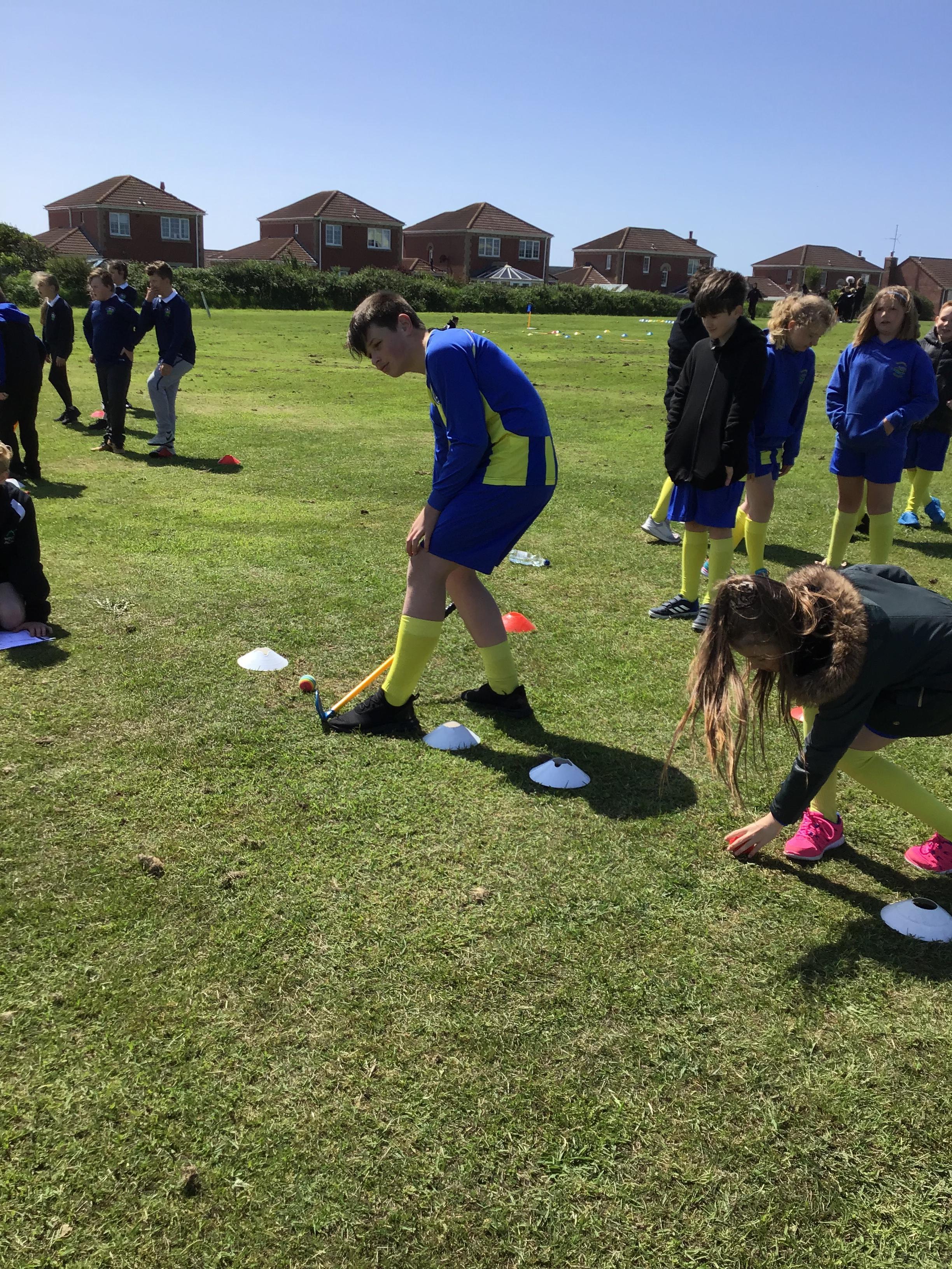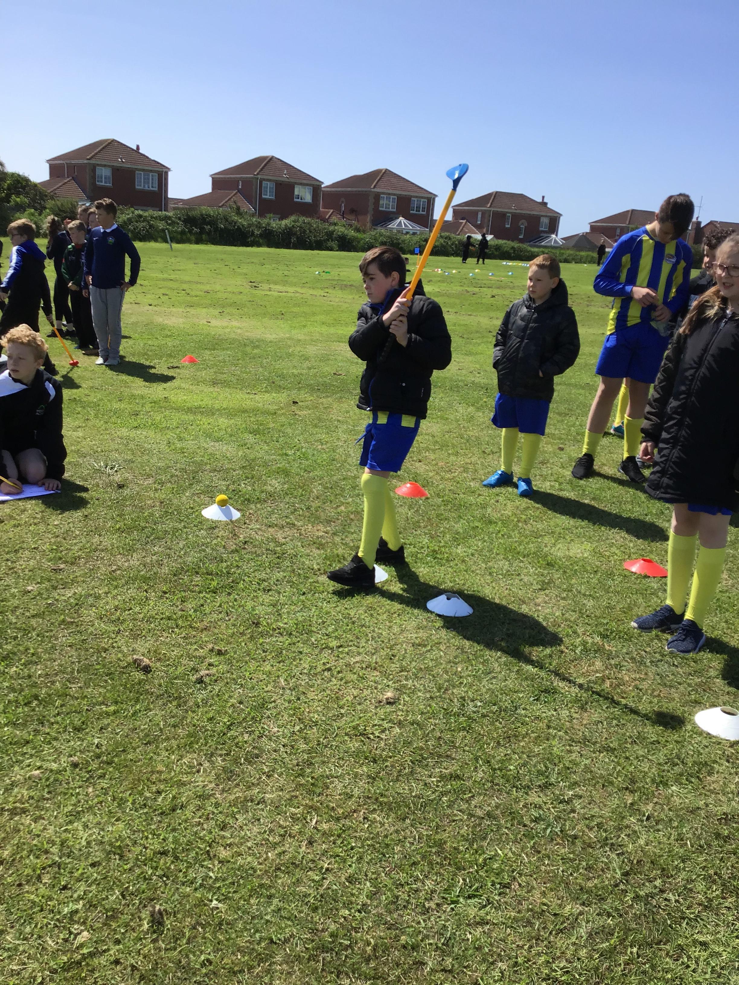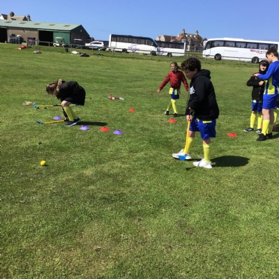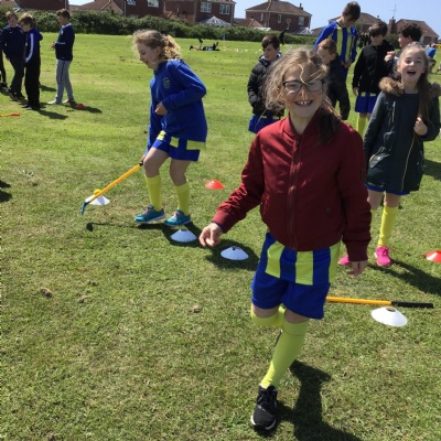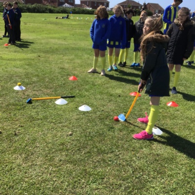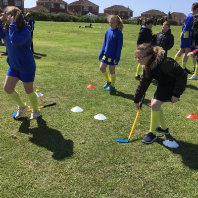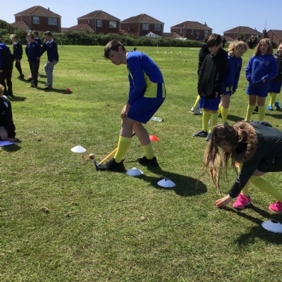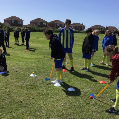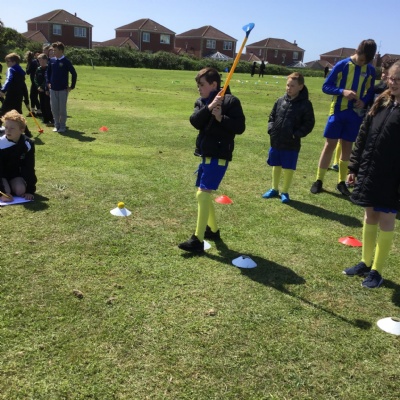 In our last session on hockey we had an intra-school competition in sports teamsWhile two teams battled it out on the pitch the rest of the class completed hockey skills challenges keeping their score which contributed to the teams overall score.  Well done to yellow team who won overall.  The next one will be tri-golf in spring term.