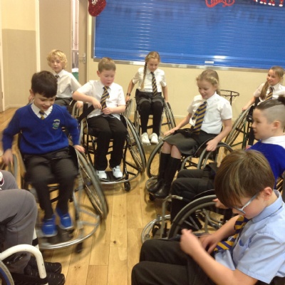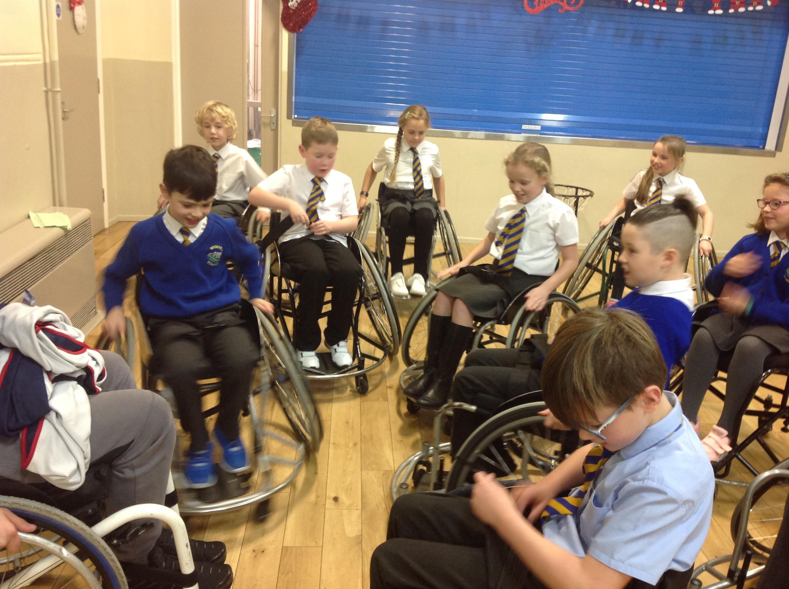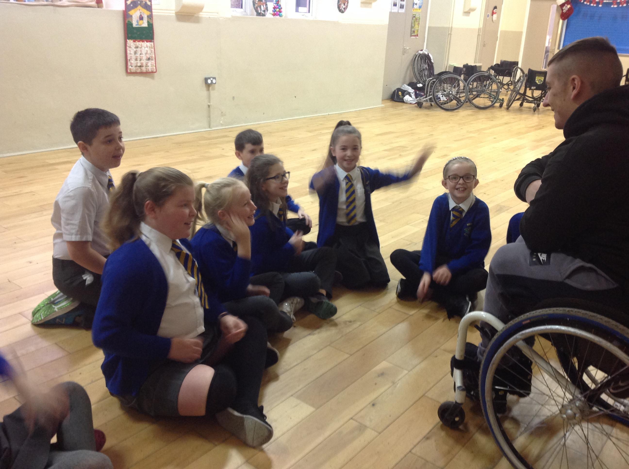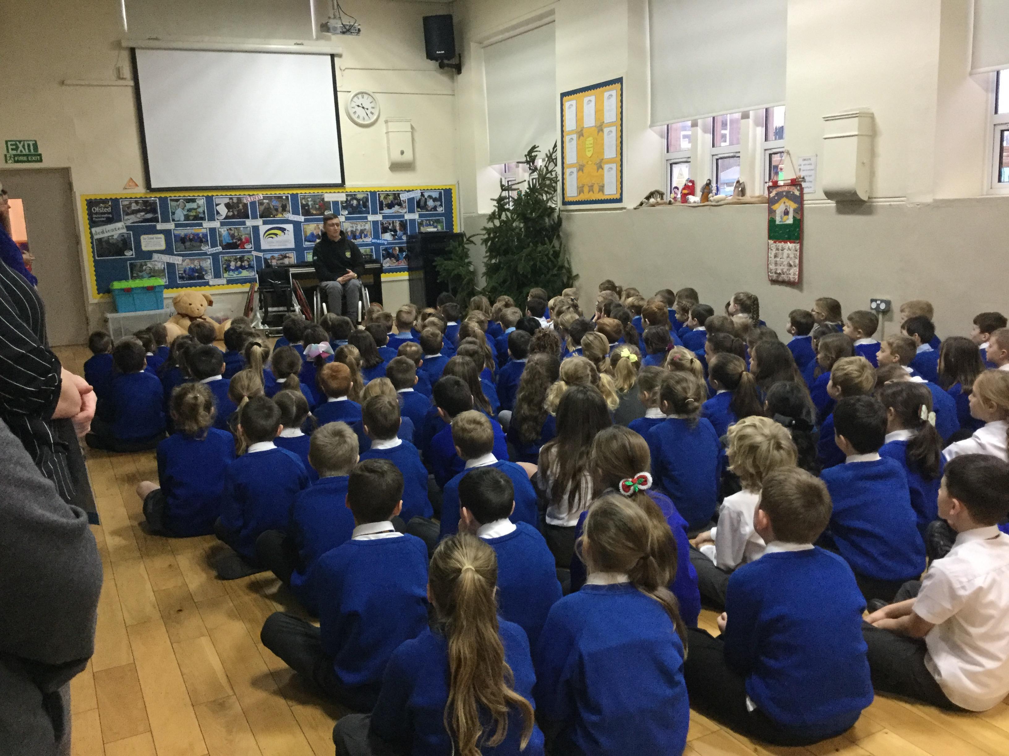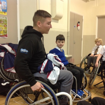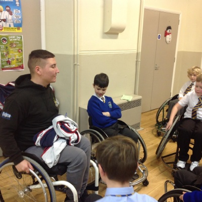 Nat revisited our school on Monday the 3rd June, this time to visit the children in Key Stage 1.  The children all had a fantastic time learning new PE skills in a wheelchair.  They are totally amazed by the dedication and perseverance Nat has shown to become so good at his sport.