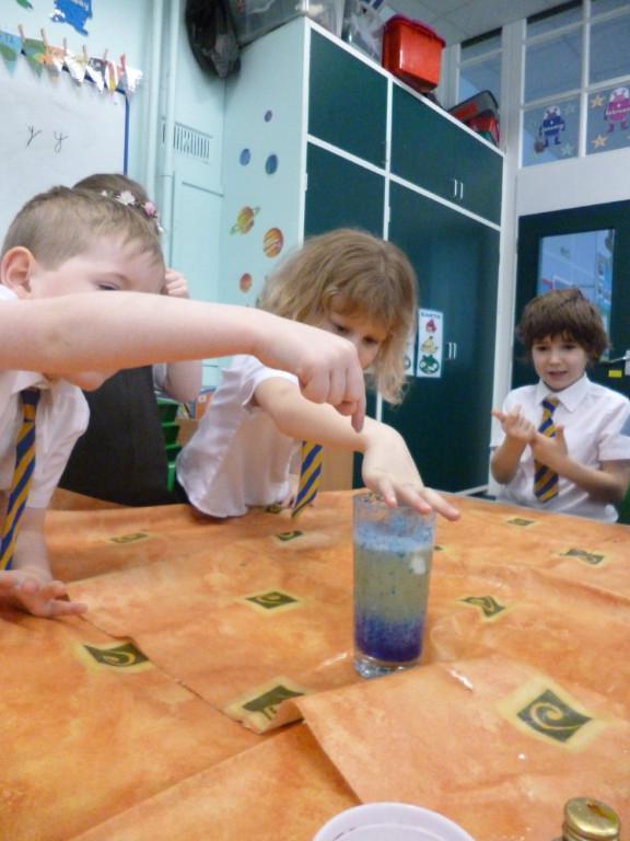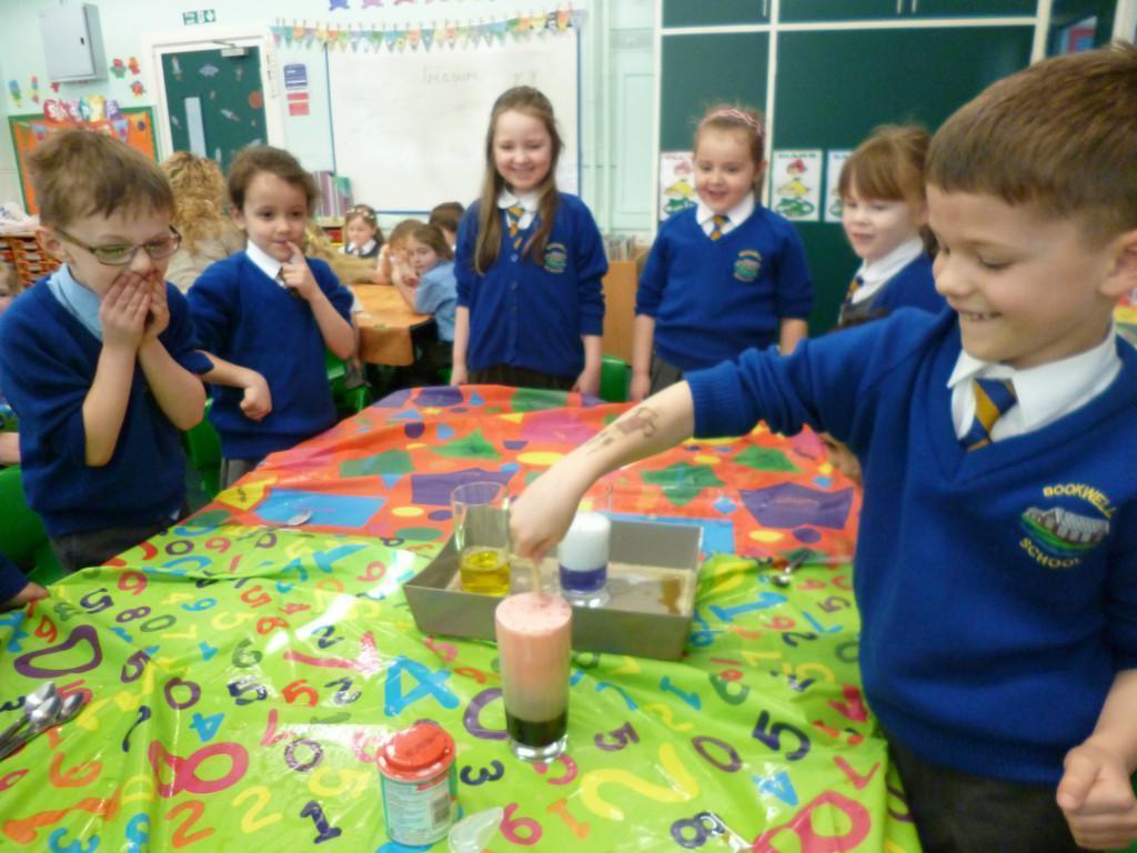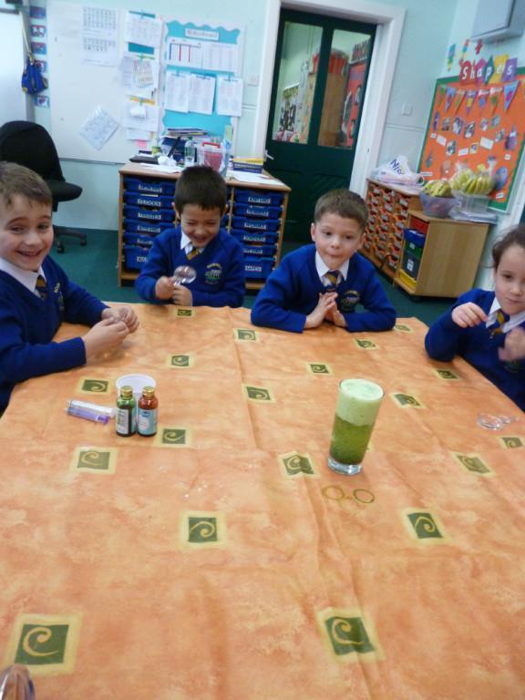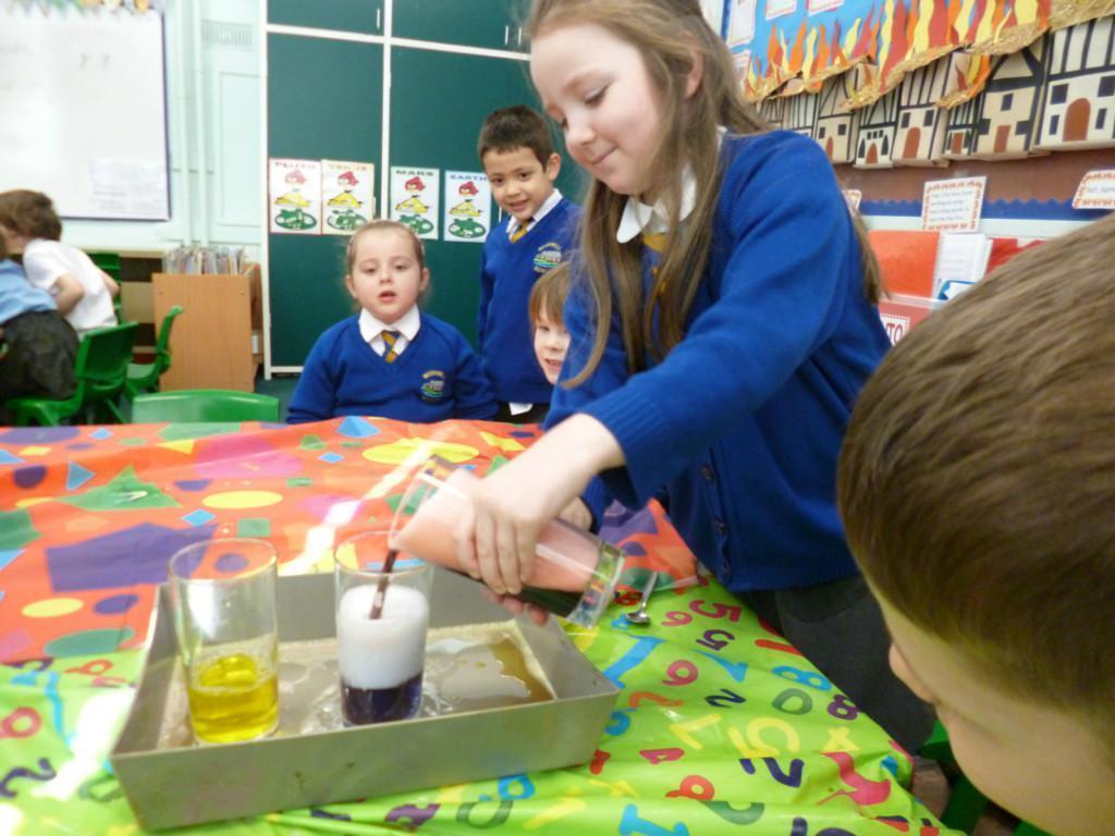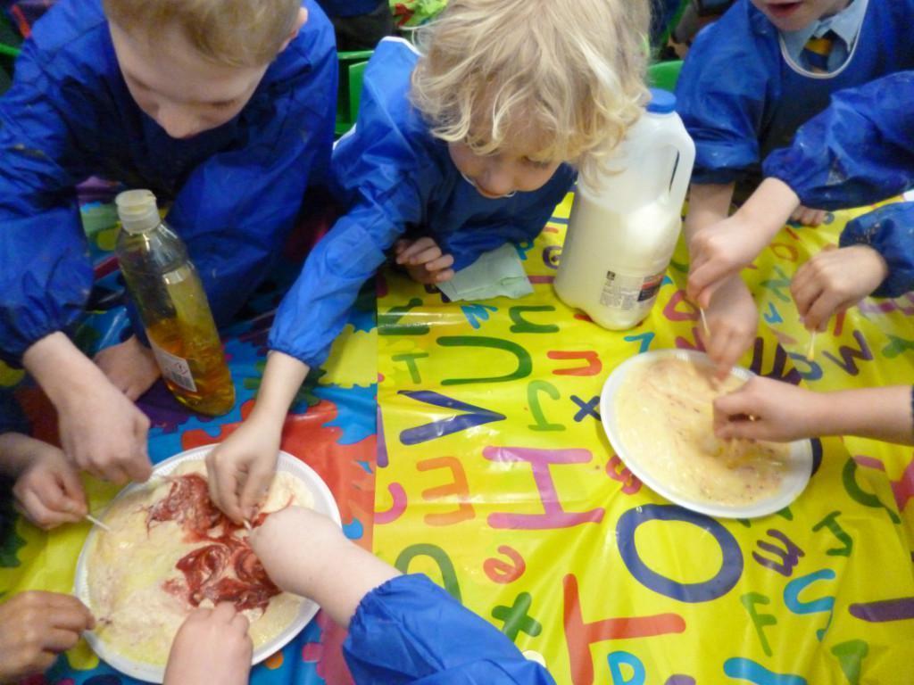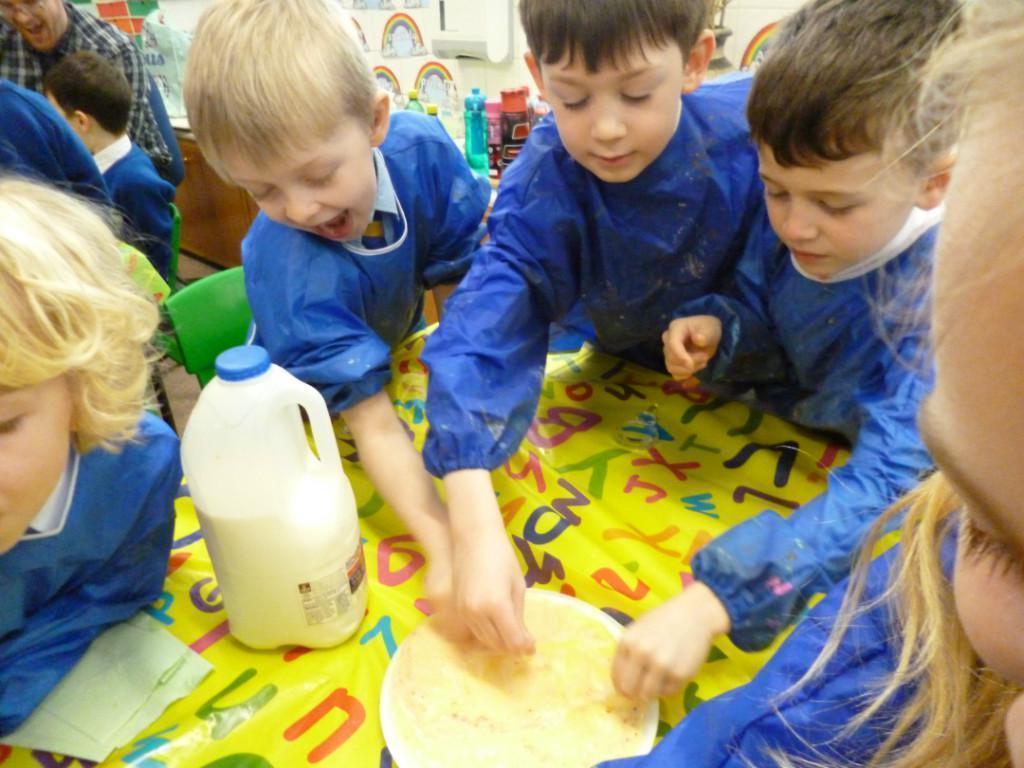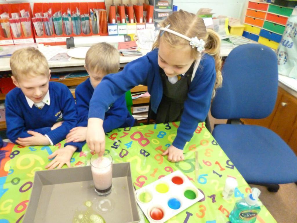 Today the children were observing lots of different chemical reactions. It was very fun and messy too!