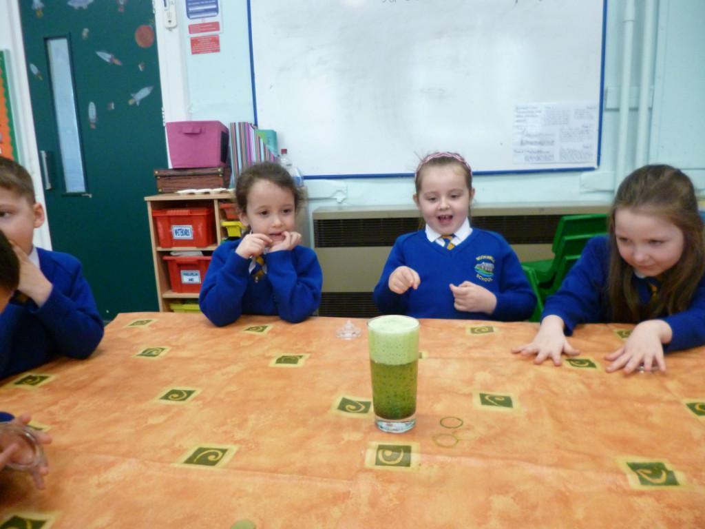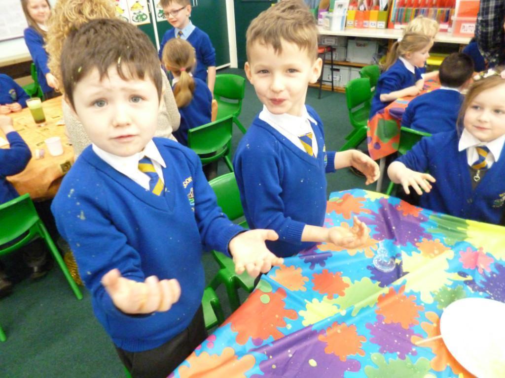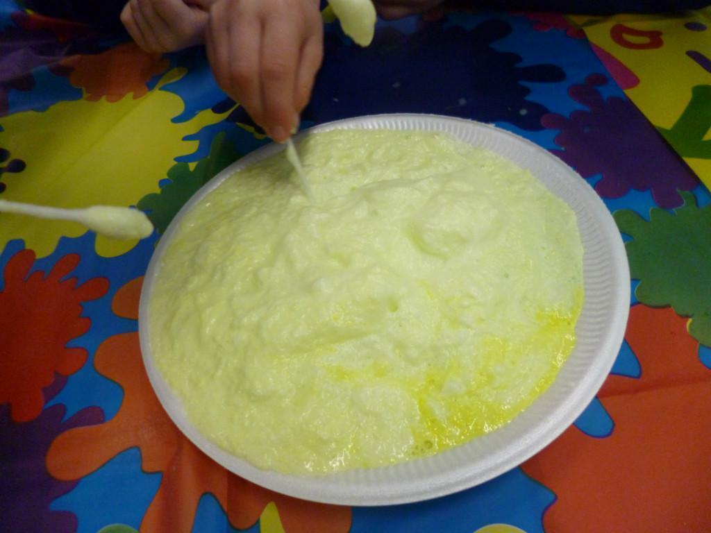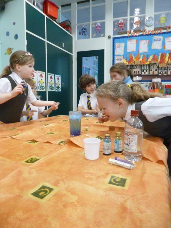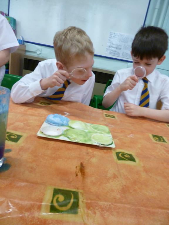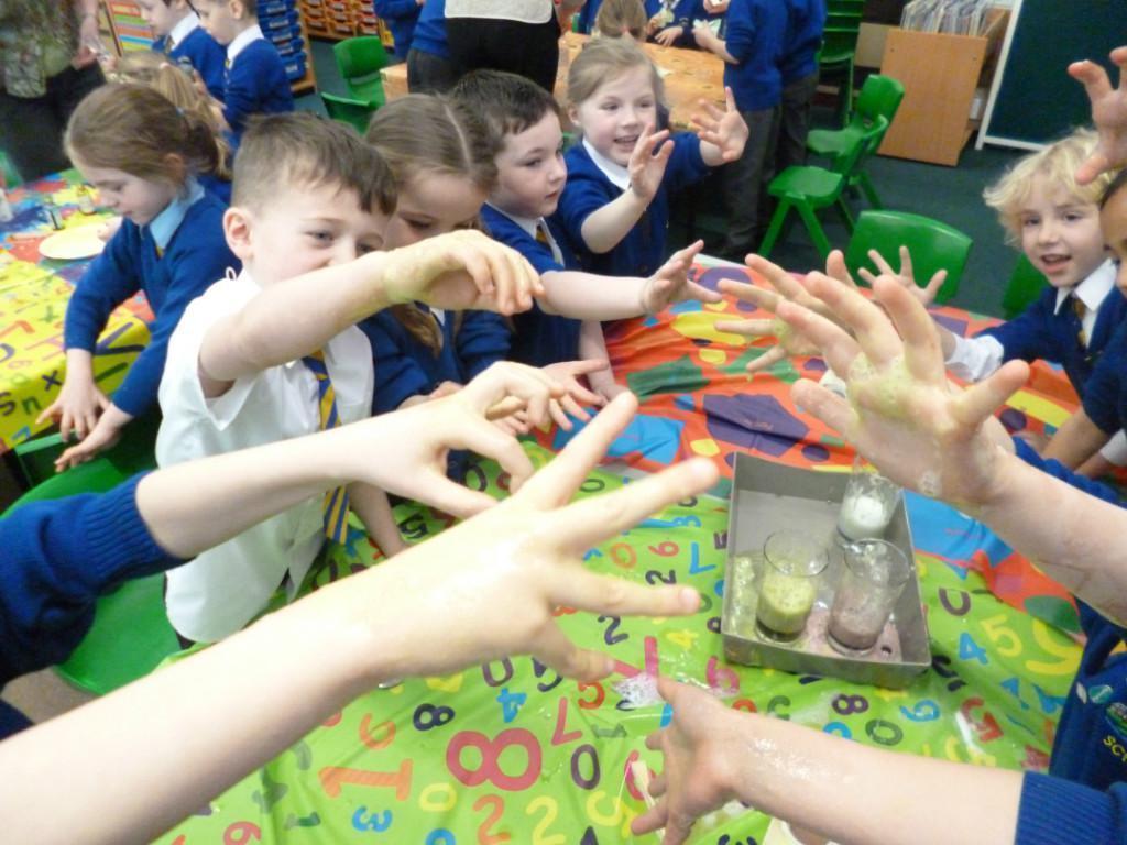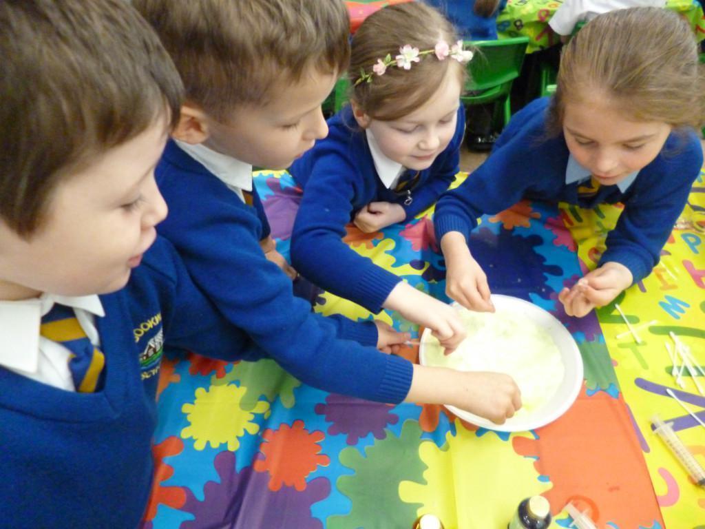 Today the children were observing lots of different chemical reactions. It was very fun and messy too!