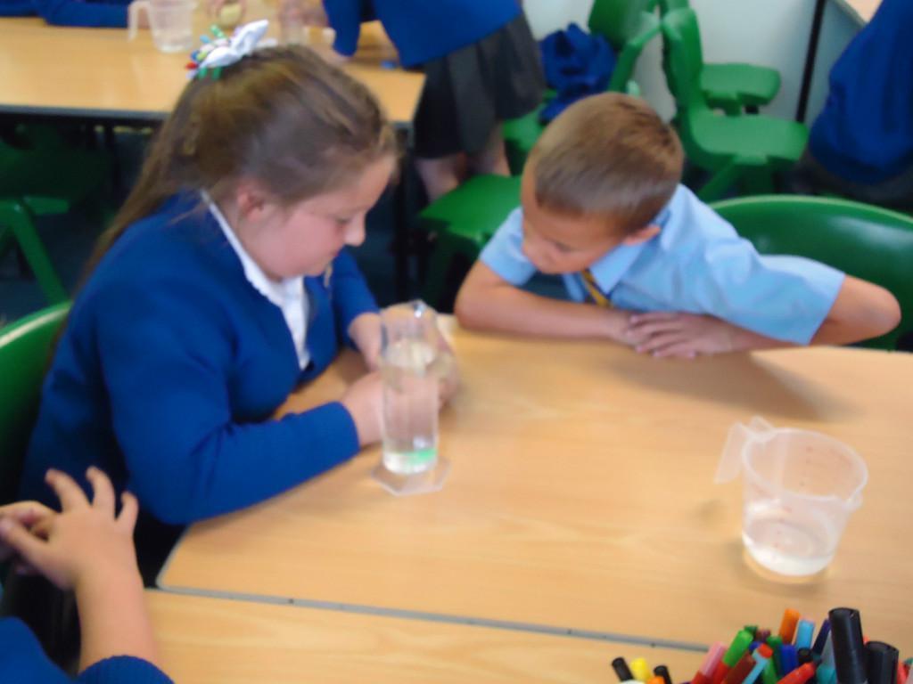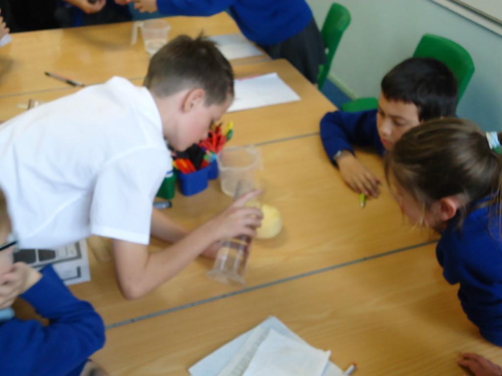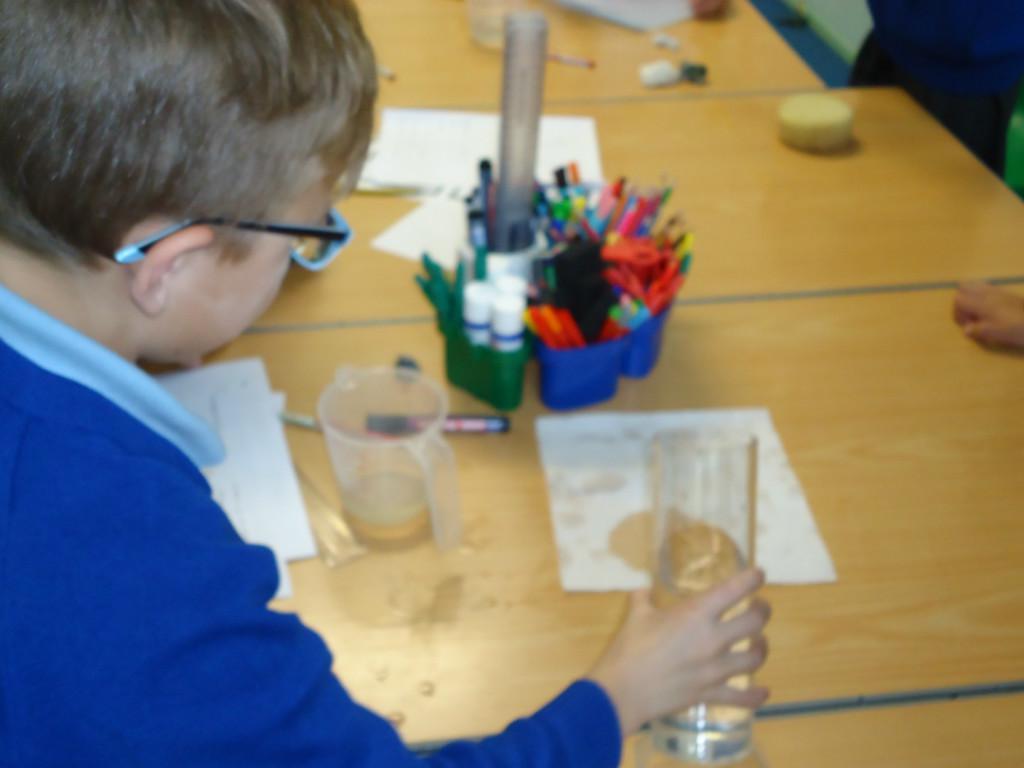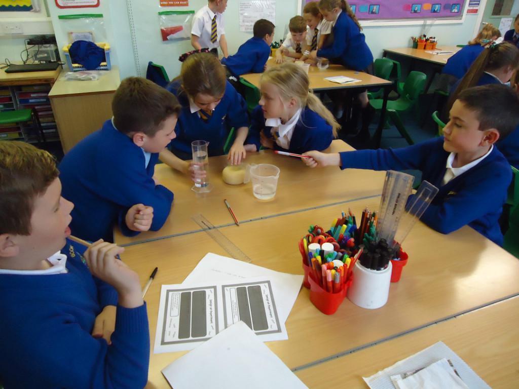 As part of our Materials topic in Science, the children completed an experiment on how absorbent certain materials are.  The children tested Sponge, Kitchen cloth and Kitchen roll.  The children found out that the sponge absorbed the most water.  The children really enjoyed this experiment.