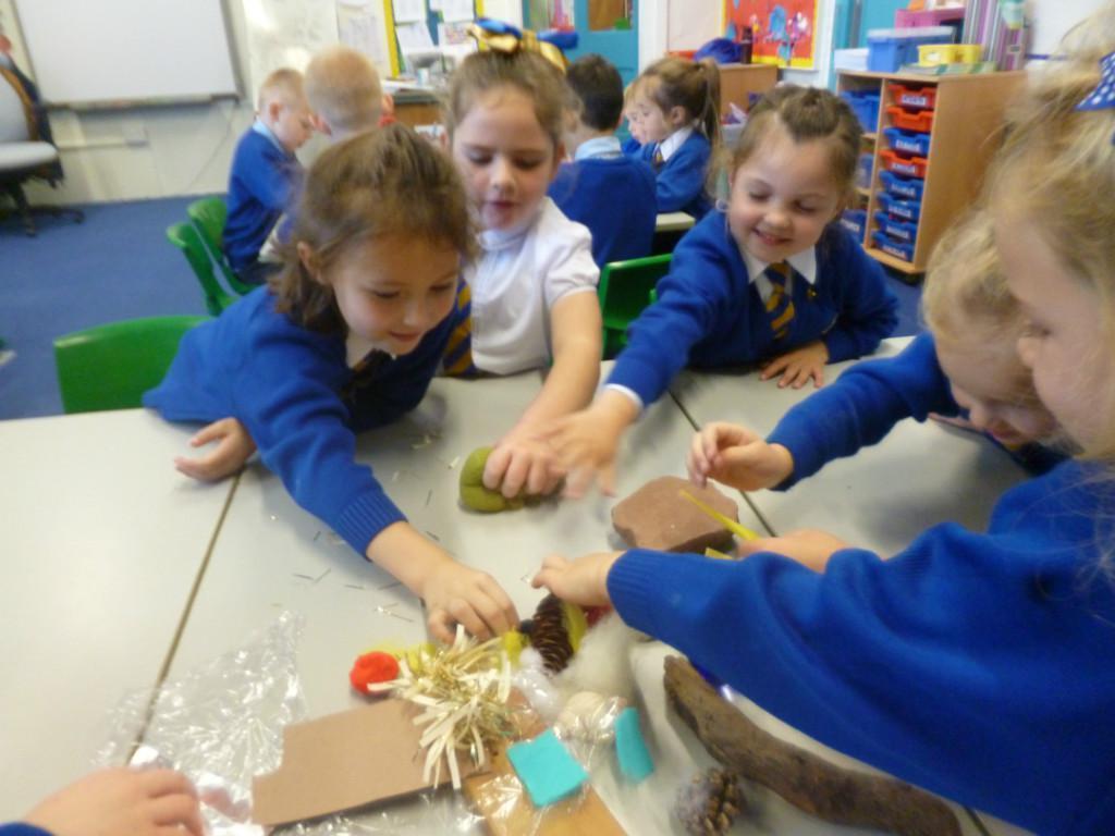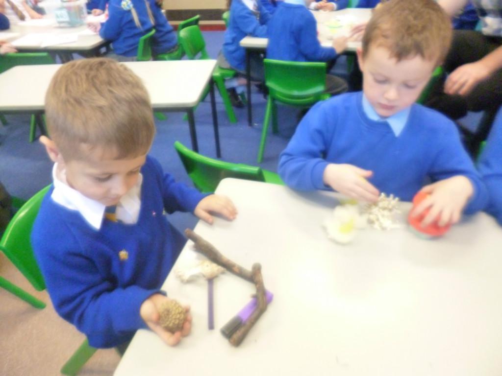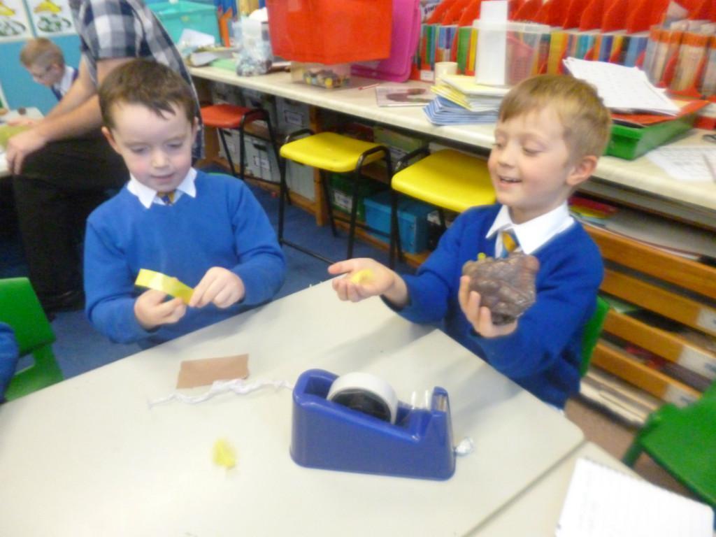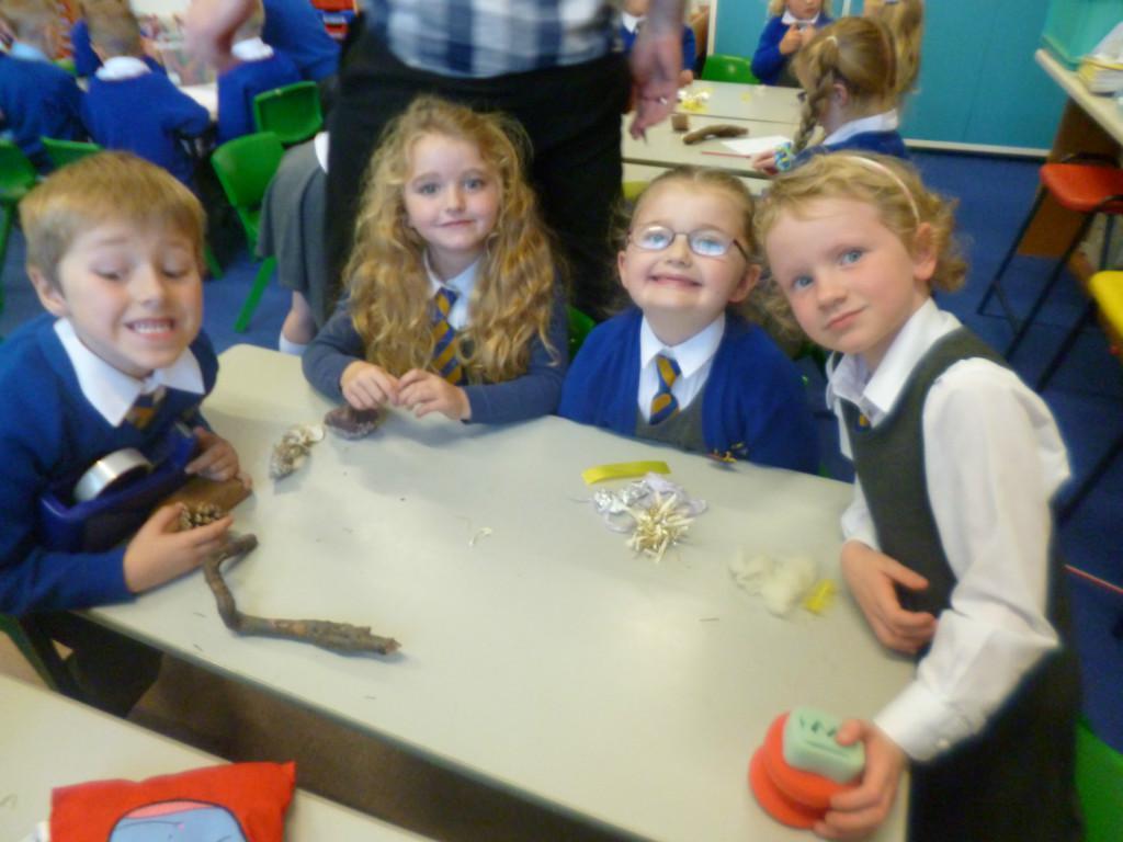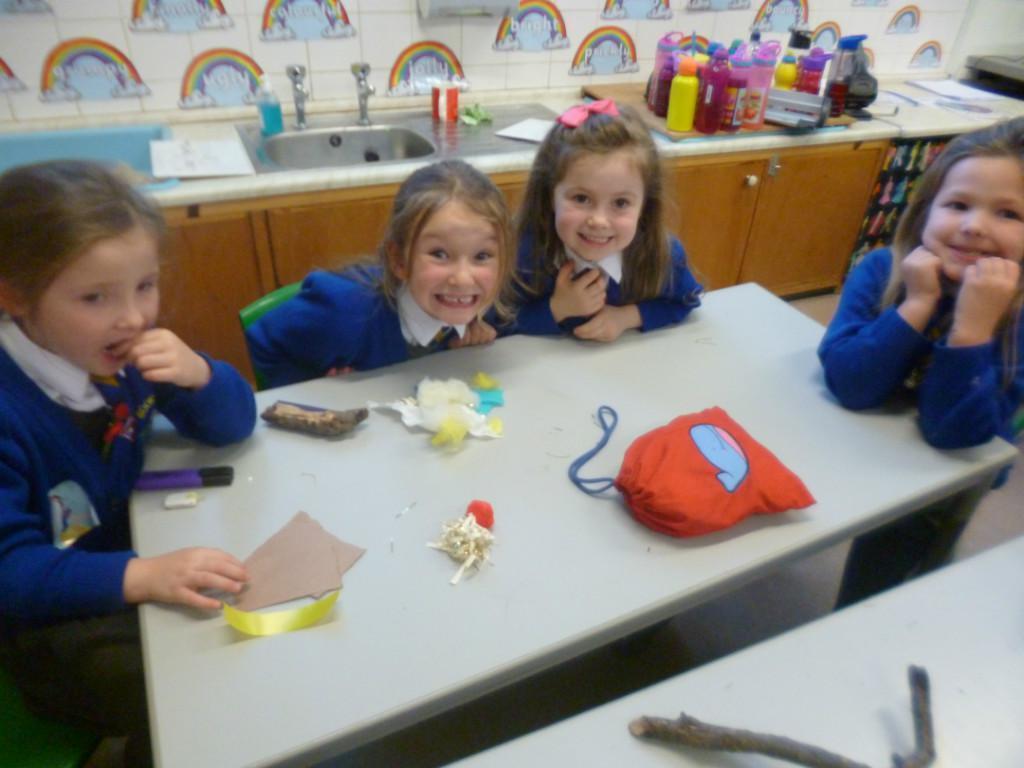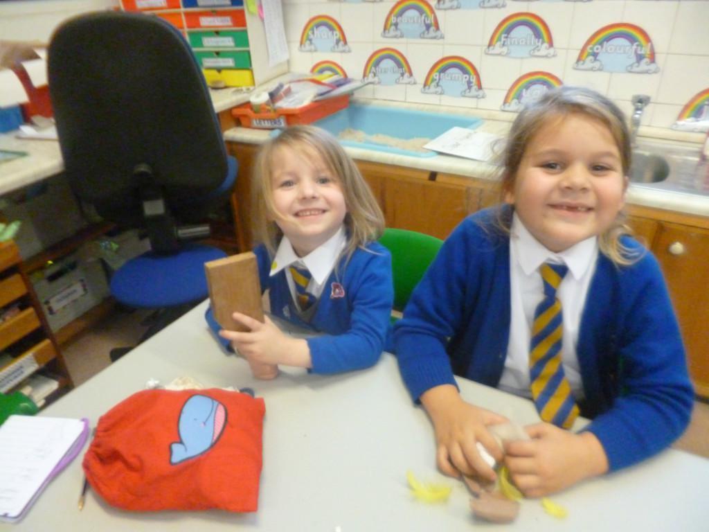 To finish off our Senses topic in science the children have been testing their sense of touch. First they had to guess the object that was in the box by touch alone. Then they had to think of words to describe the different materials on their tables. After this the children had to sort the materials into different groups according to how the materials felt - rough, smooth, hard, fluffy etc. The children chose their own groups to sort the materials into.