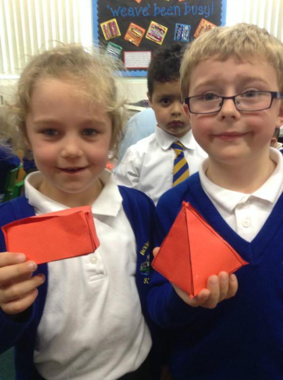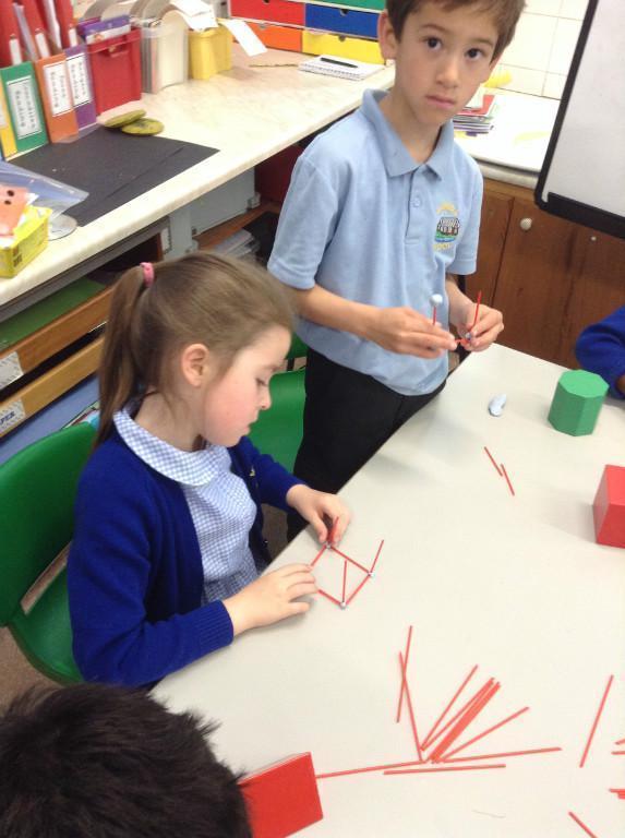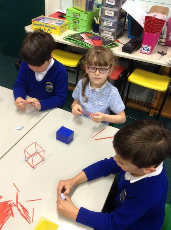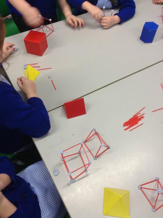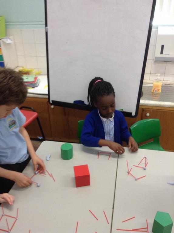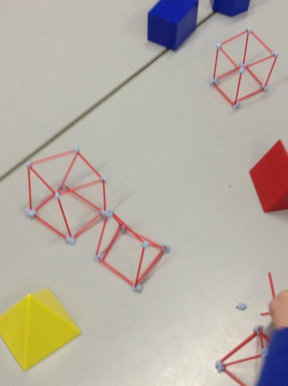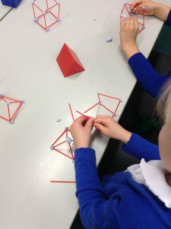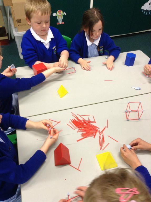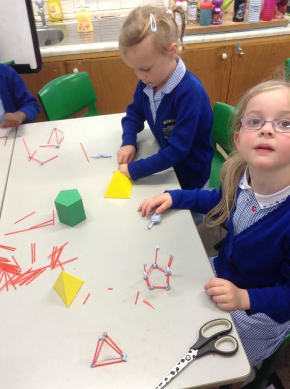 In Maths this week we have been doing lots of shape work. The children have been learning the properties of 3D shapes and sorting them using a Venn diagram. They made 'Right Angle Munchers' and explored 2D shapes to see which ones had right angles, and then looked for them in the classroom. Then we got creative and made 3D shapes using nets and straws. We had great fun!