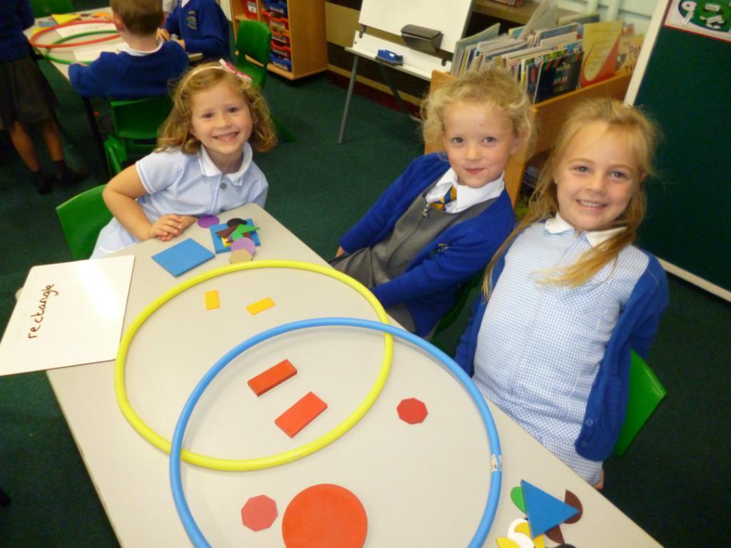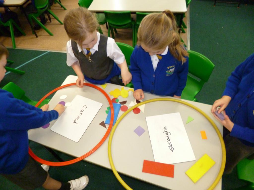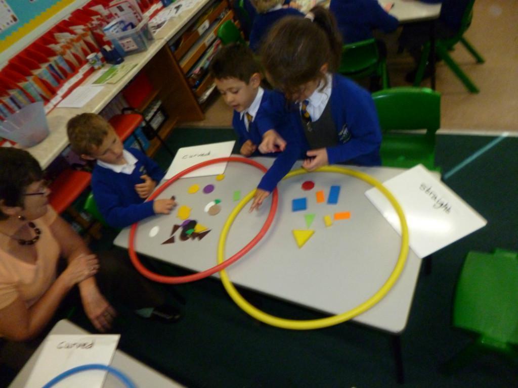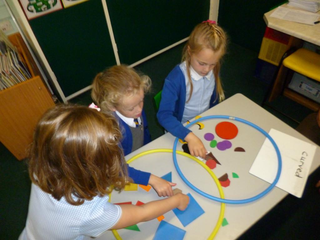 We have been learning about 2D shapes in class and started our work by investigating which shapes were in our class. Once we recognised the 2D shapes we then used Venn diagrams to sort the 2D shapes to set criteria, such as straight lines and curved lines.