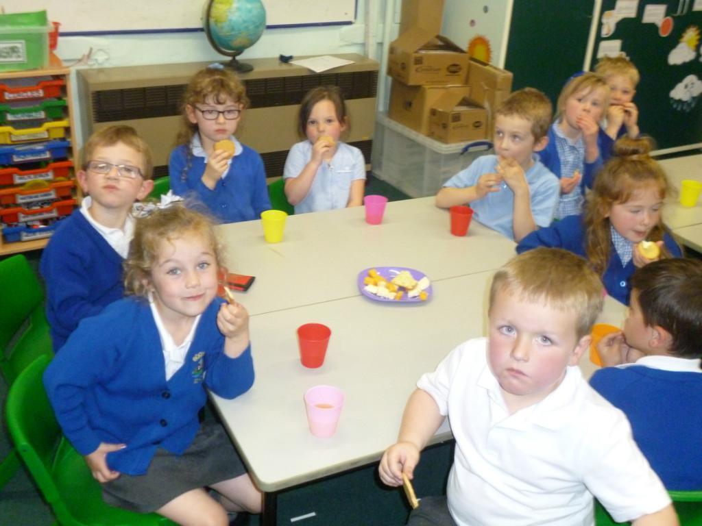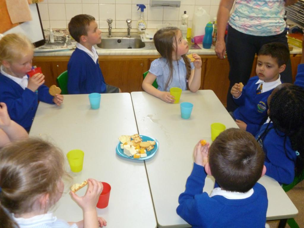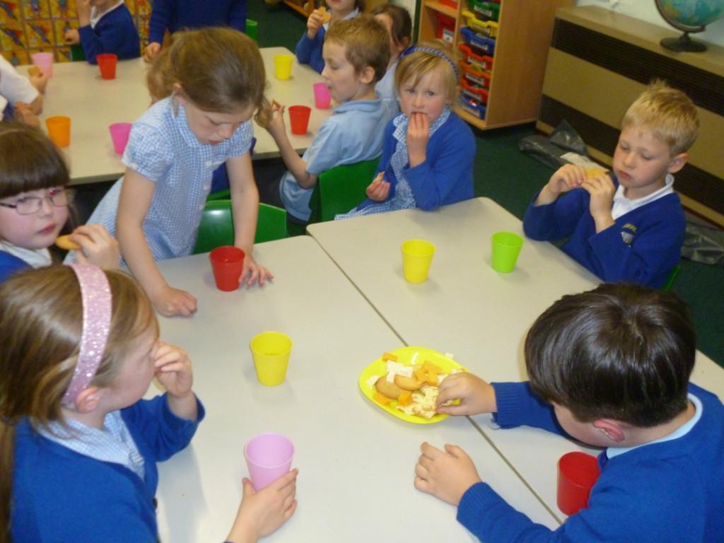 While the building work is going we've moved snack shop into our classrooms.  It is still a super way of teaching the children real life maths skills like weighing, sharing, and counting money, plus it's nice to have a sociable time together!