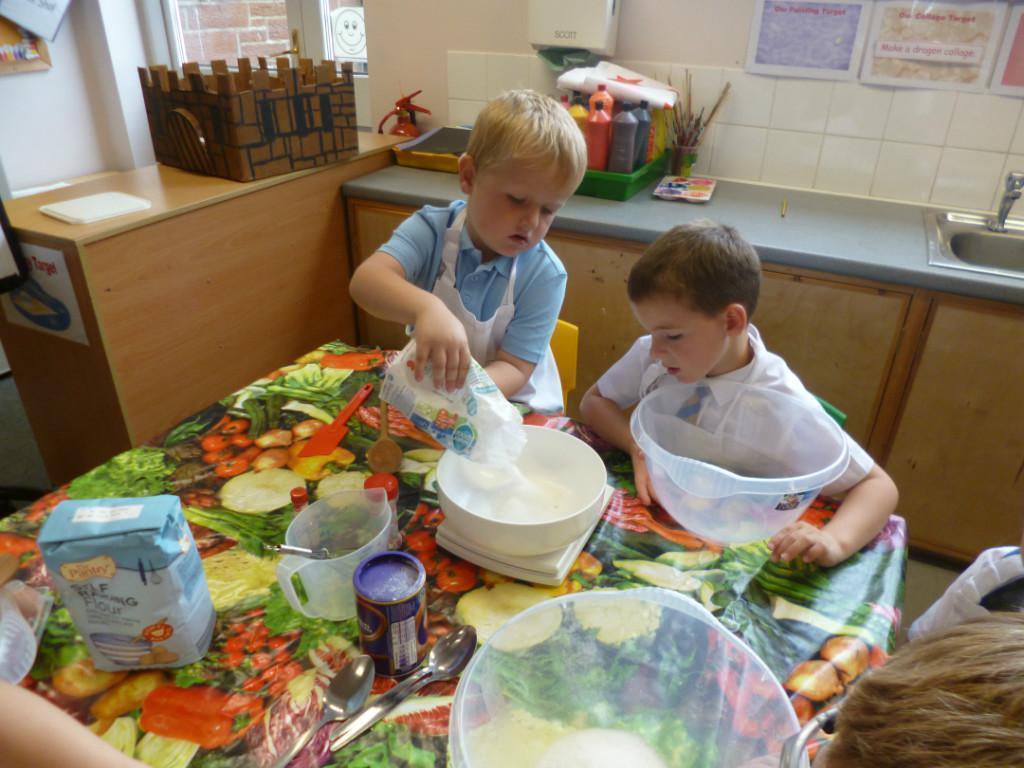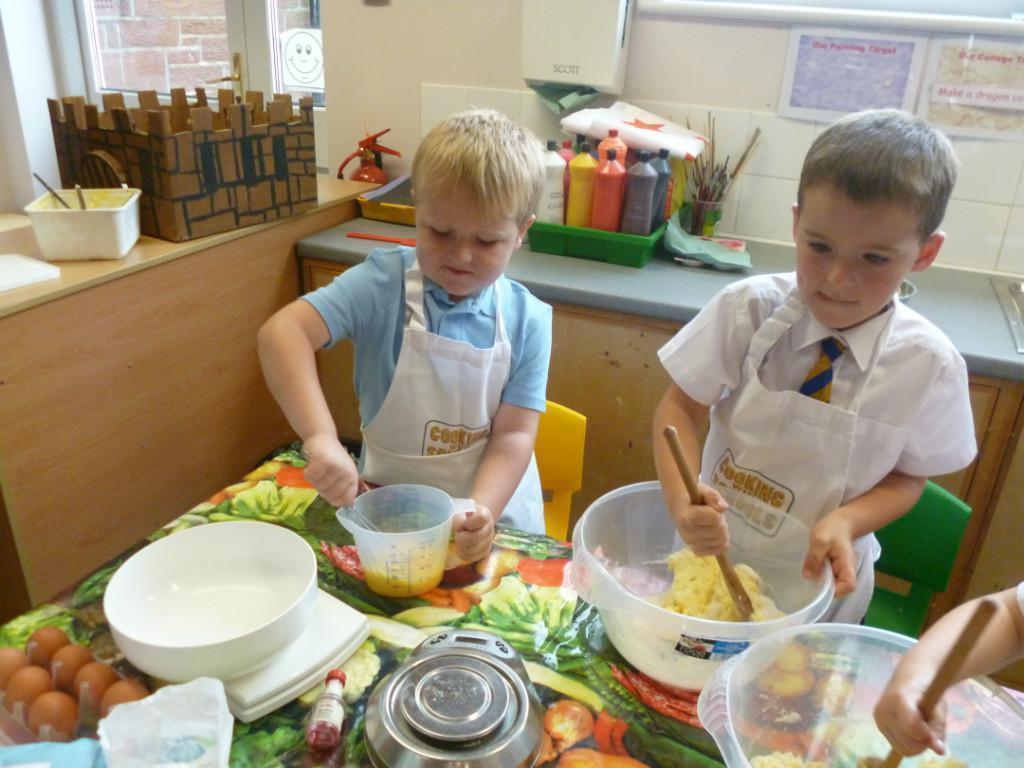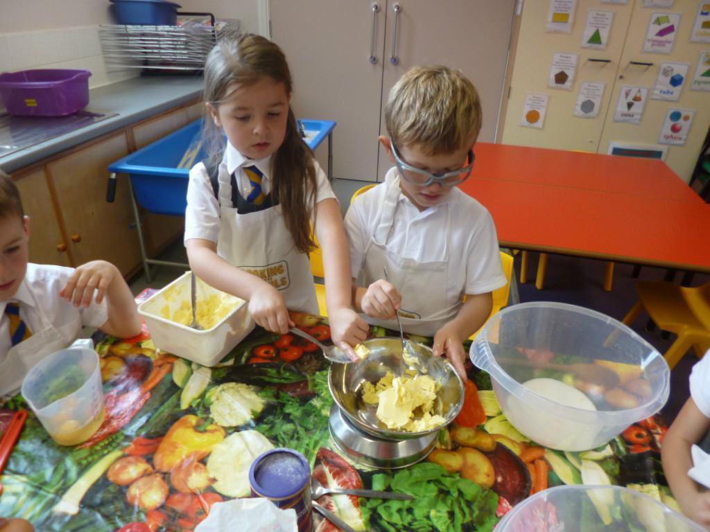 It was Year 1's turn to bake for snack shop this week.  The 6 lucky bakers had a lovely afternoon with Mrs Forrester, mixing, weighing and tasting!  Of course they had washing up to do as well, and left the Rainbow room spotless. Well done team!