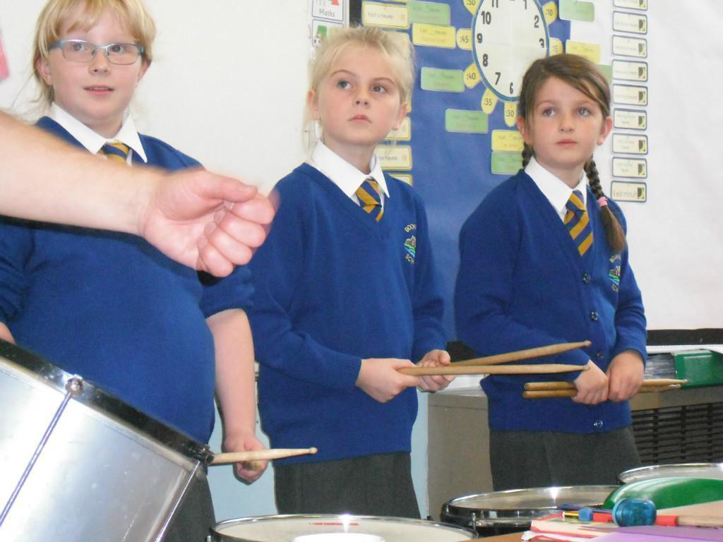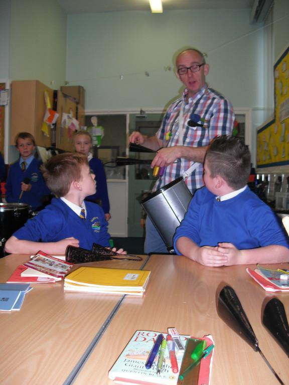 We had a visitor into school from Stix percussion called Andy to teach the children some drumming skills.  The children got to practise samba beats on different percussion instruments.  It was really good and the children really enjoyed it!