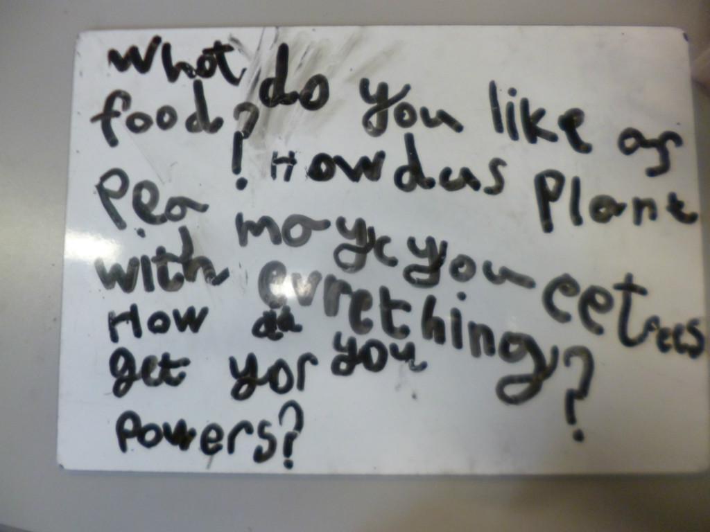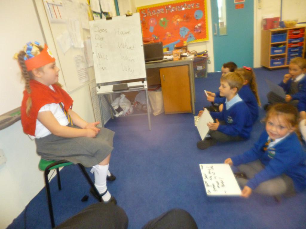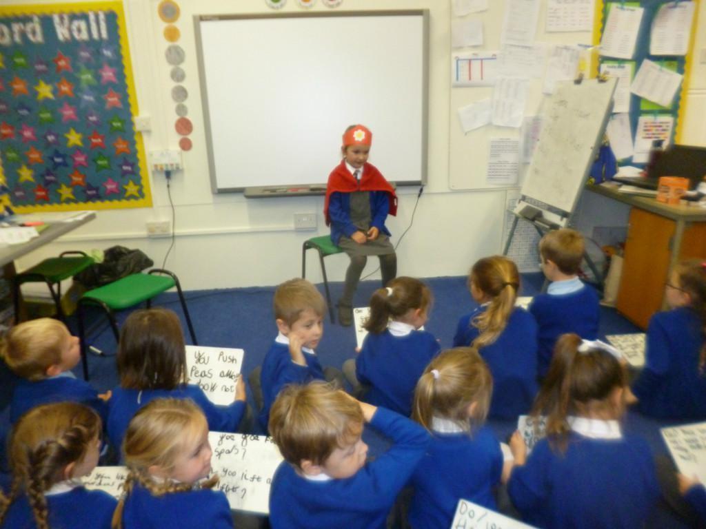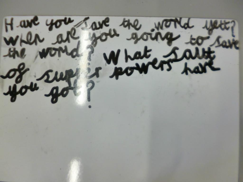 Today we started reading 'Super Daisy And the Peril of Planet Pea'. The children had to work in pairs to think of questions that they would like to ask Daisy. Then some of the children sat on our hot seat and tried to answer the questions in role as Super Daisy.