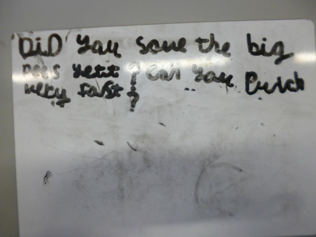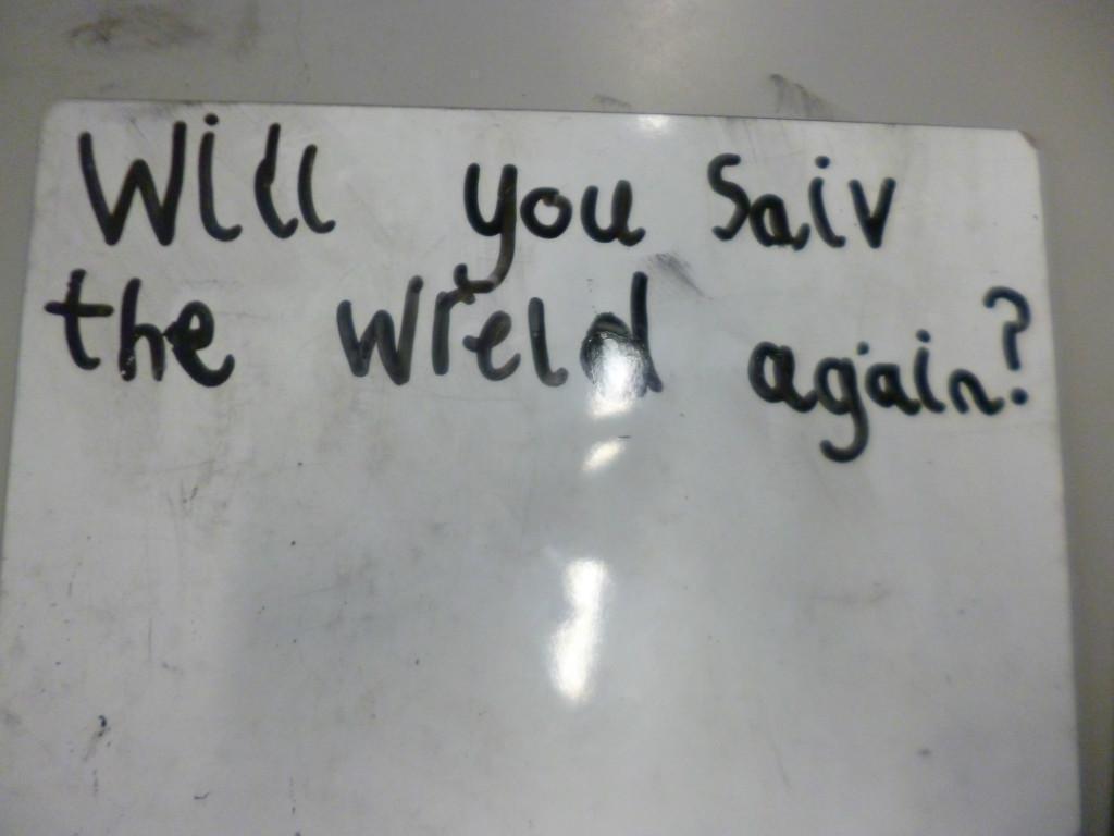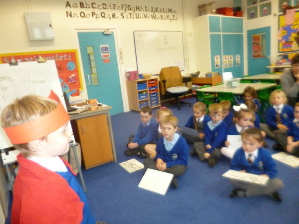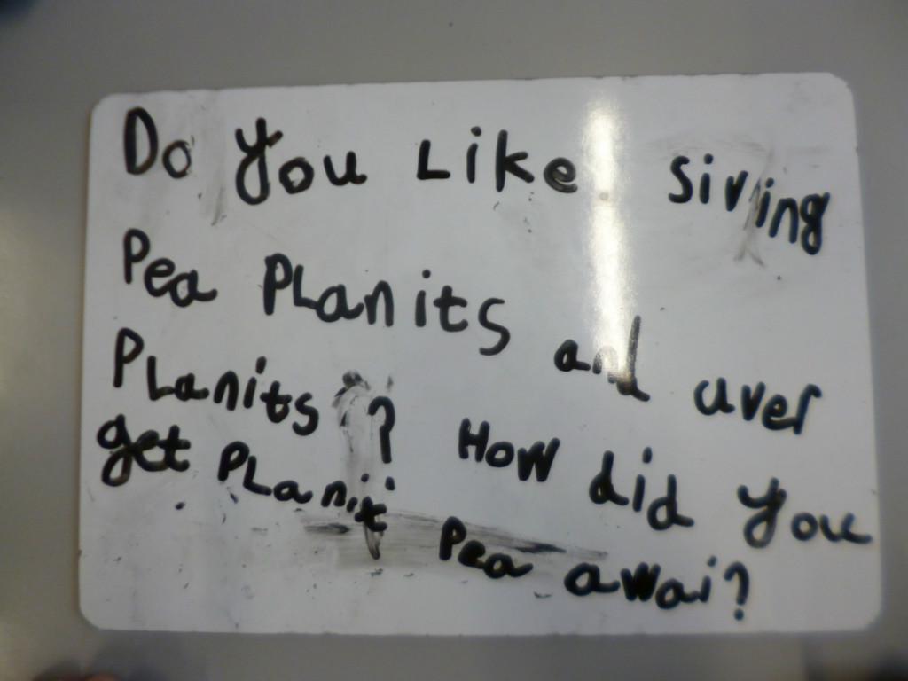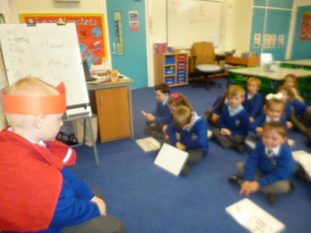 Today we started reading 'Super Daisy And the Peril of Planet Pea'. The children had to work in pairs to think of questions that they would like to ask Daisy. Then some of the children sat on our hot seat and tried to answer the questions in role as Super Daisy.