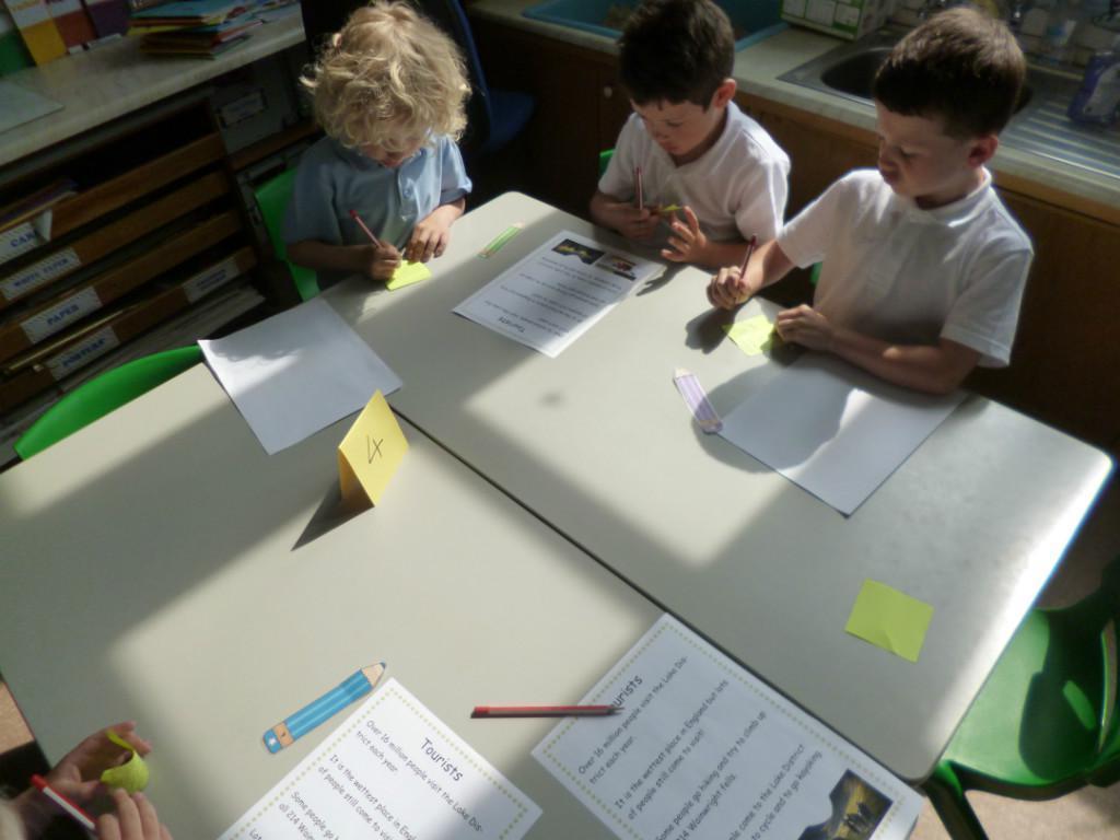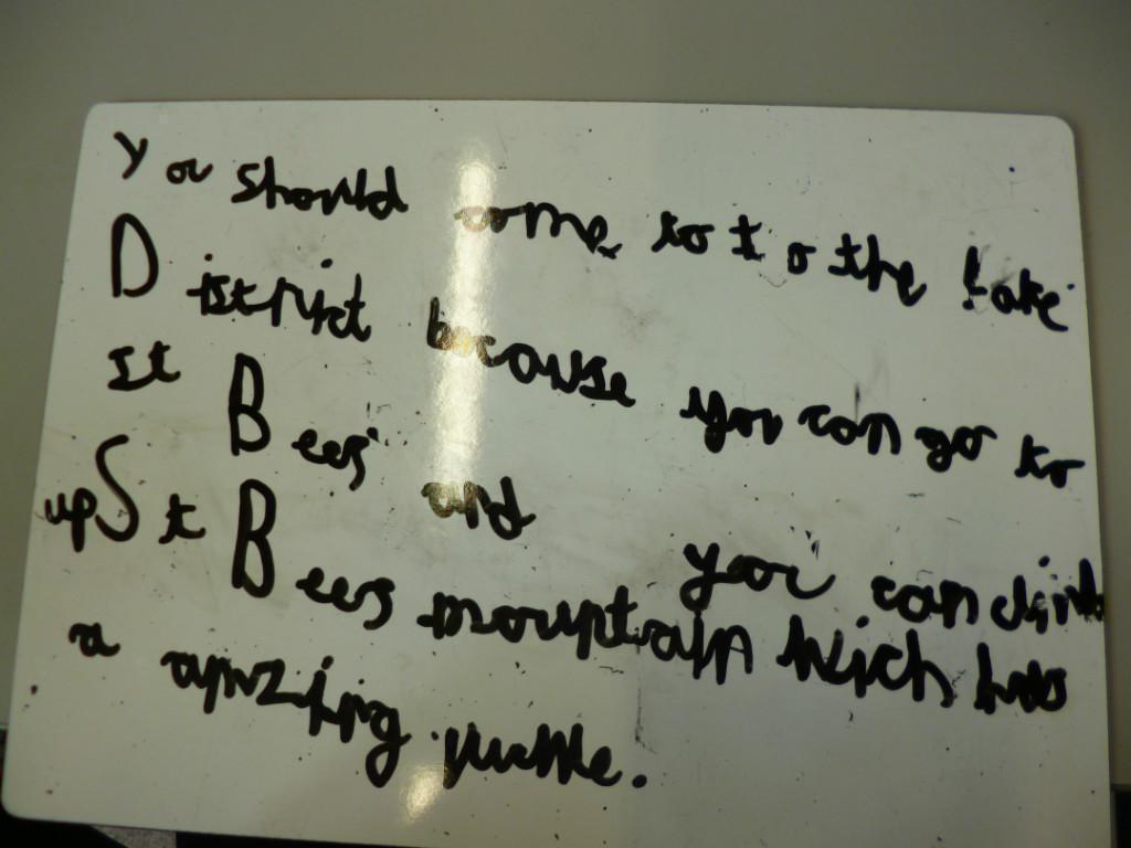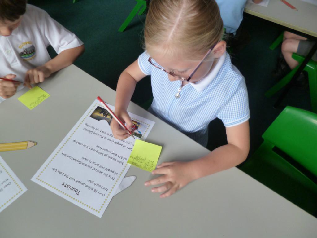 The children have done a jigsaw activity to learn lots of different facts about the Lake District this term. They have been learning facts about the Lake District's mountains and lakes as well as learning the reasons why people visit the Lake District. Then they had to write down reasons why people should come to visit the Lake District.