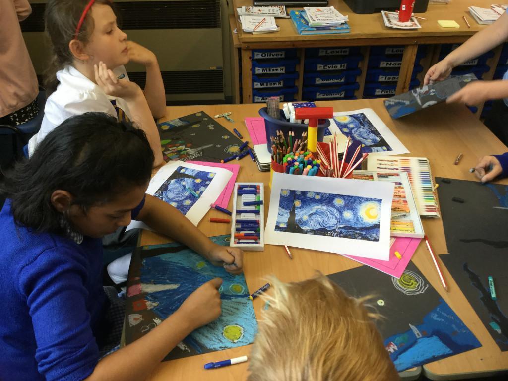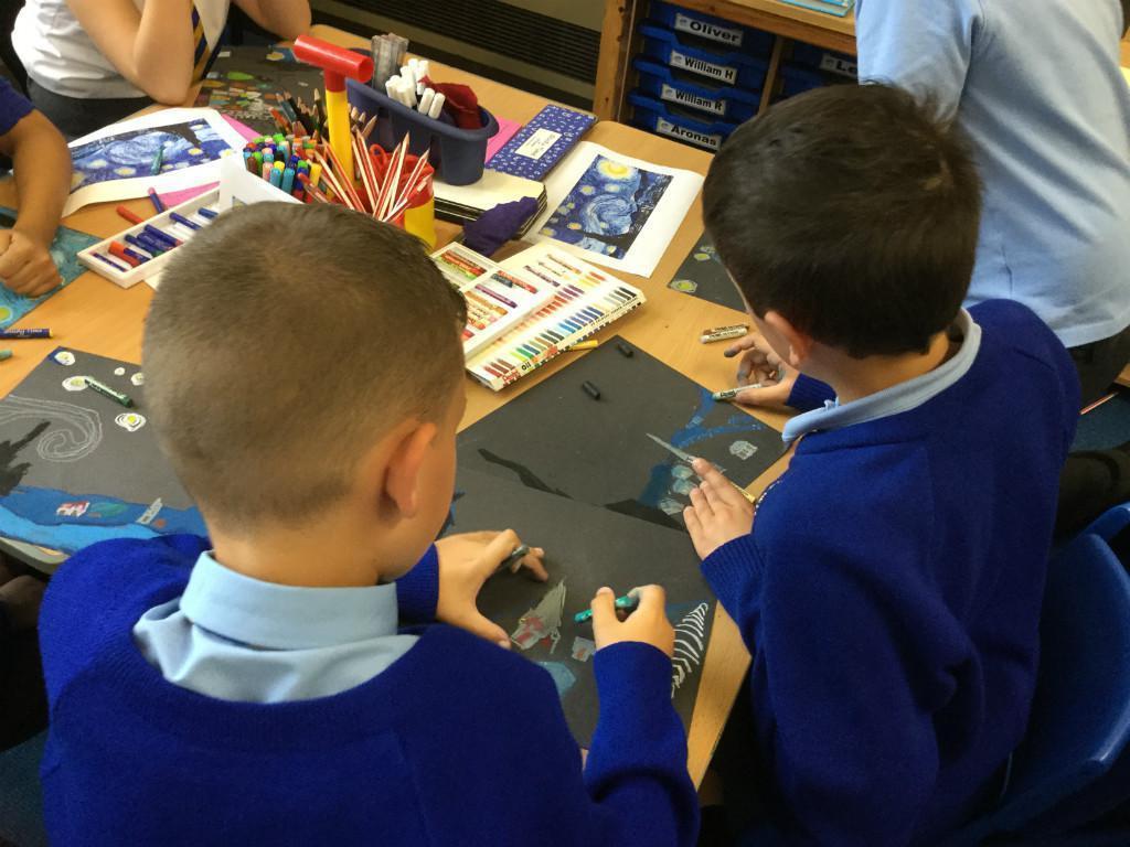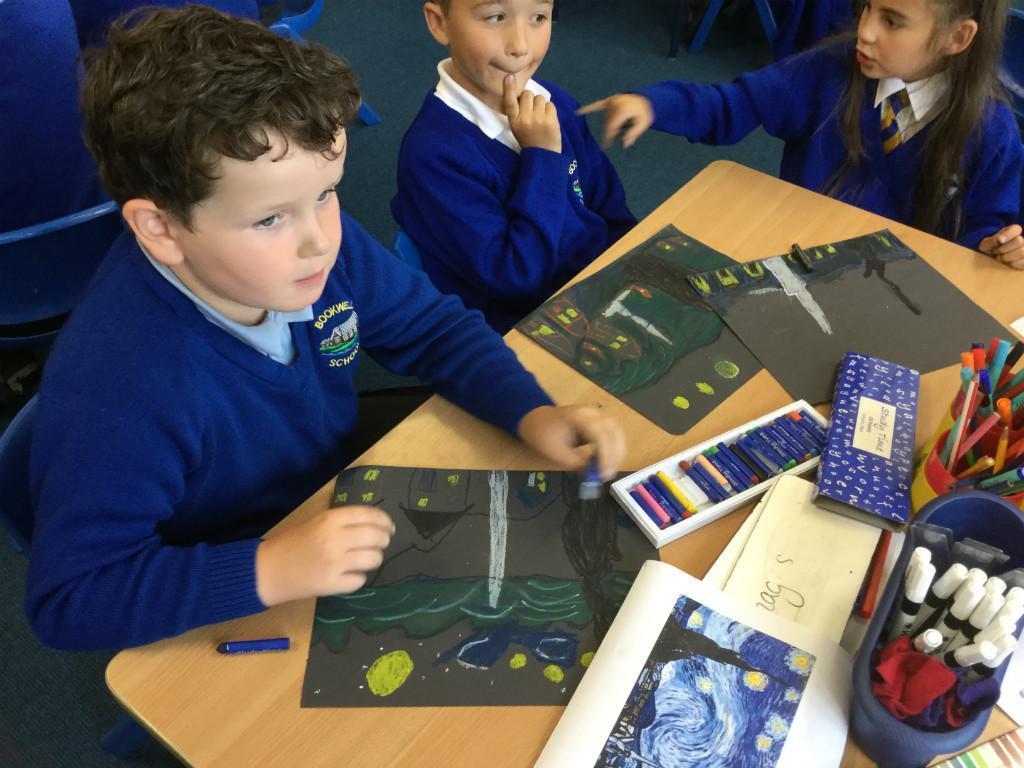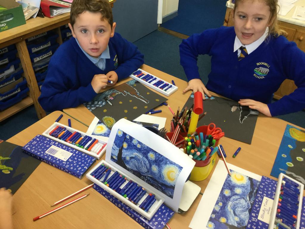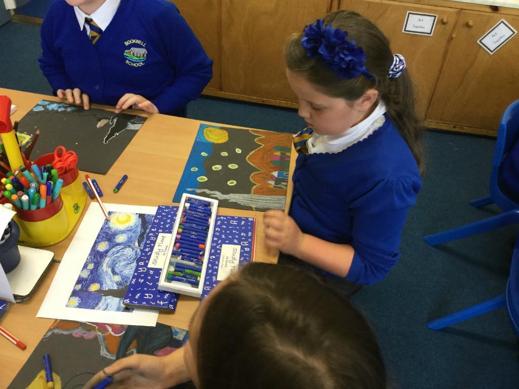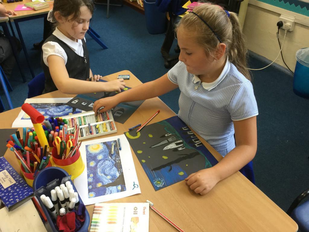 Year 4 have been learning about the artist Vincent Van Gogh. Each junior class had a focus work to look at and ours was 'Starry Night'. The children used oil pastels to recreate his work in their own style. They worked hard and produced work of superb quality. Well done Year 4!