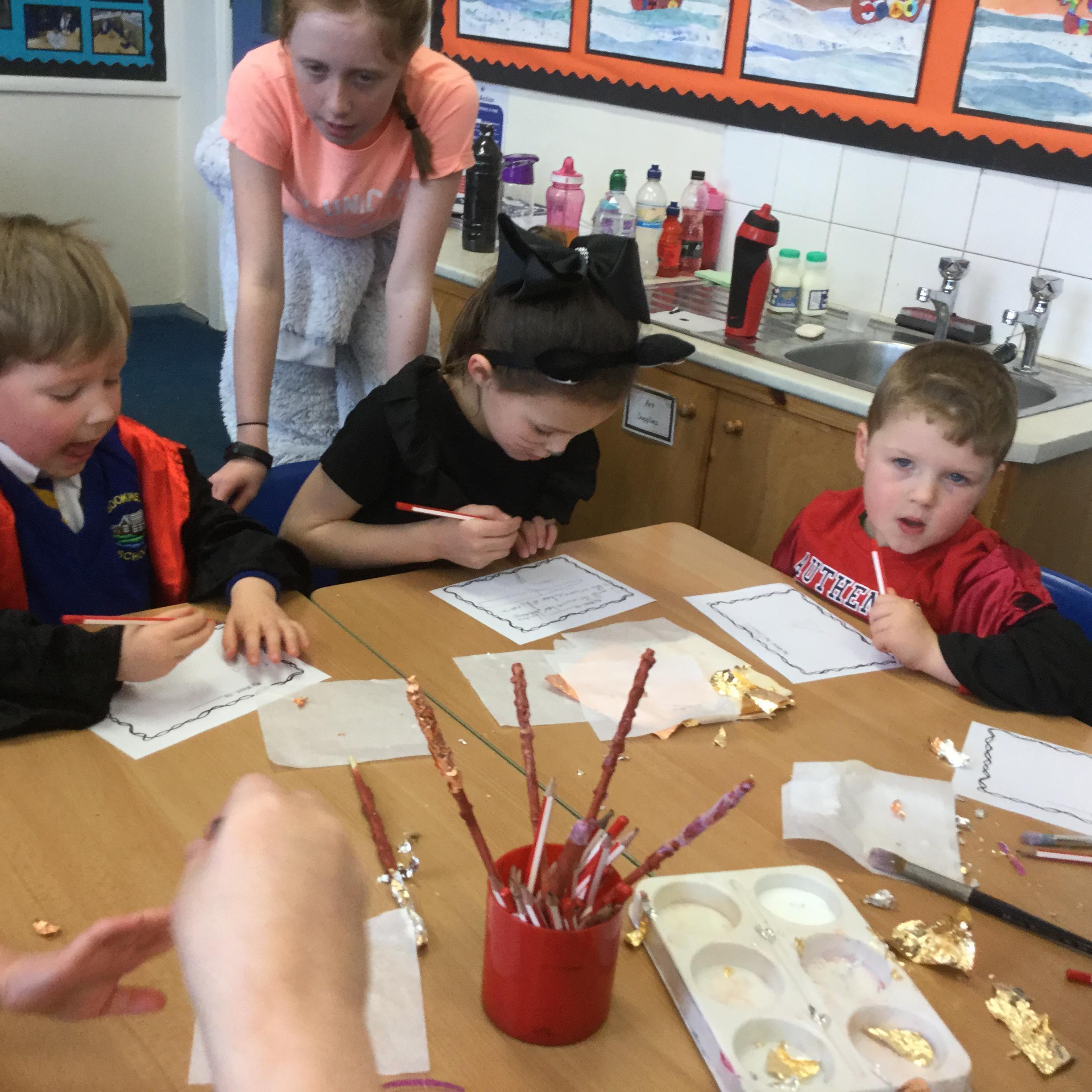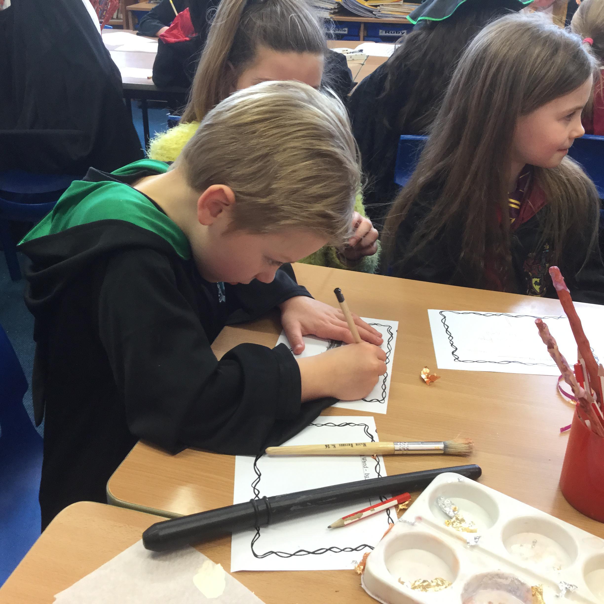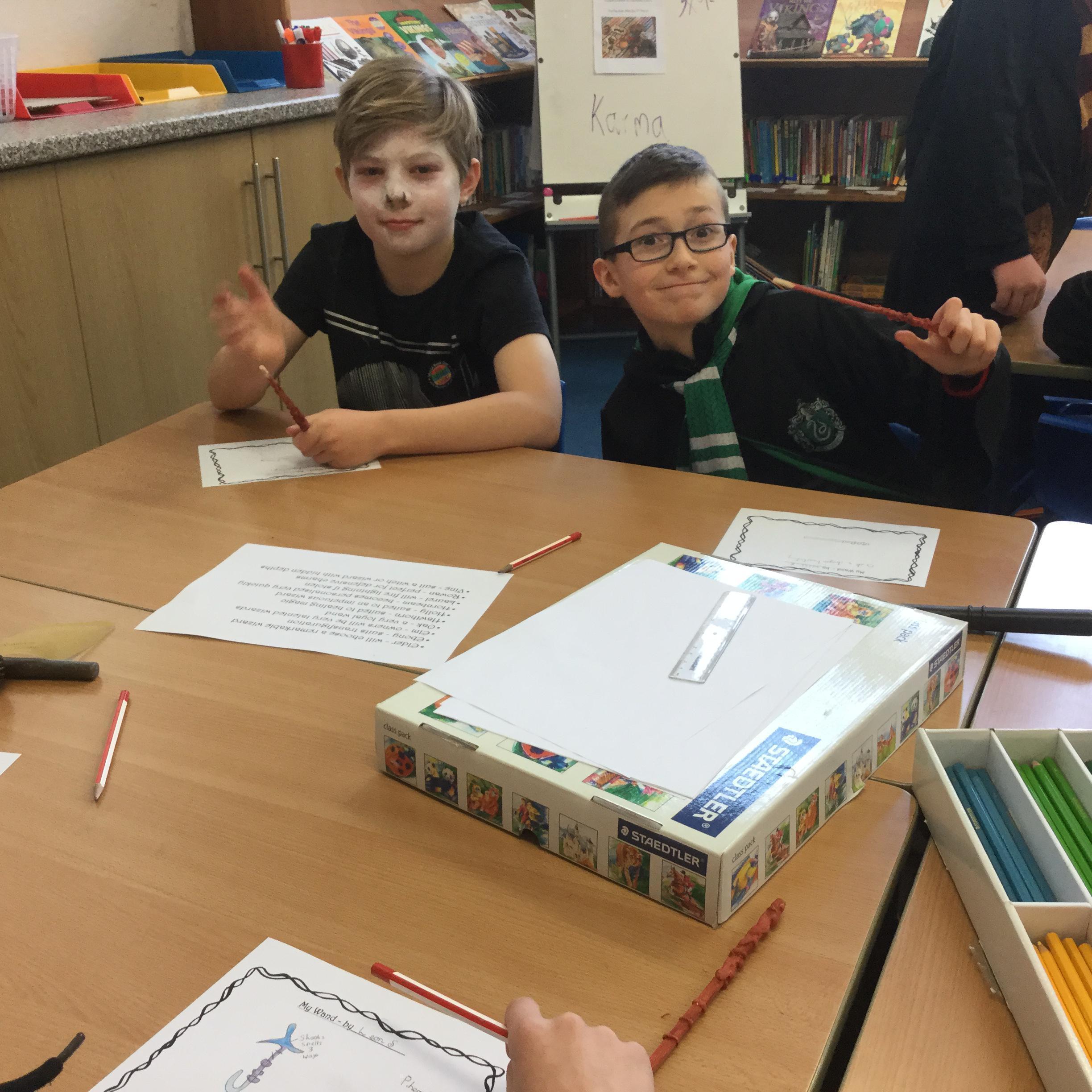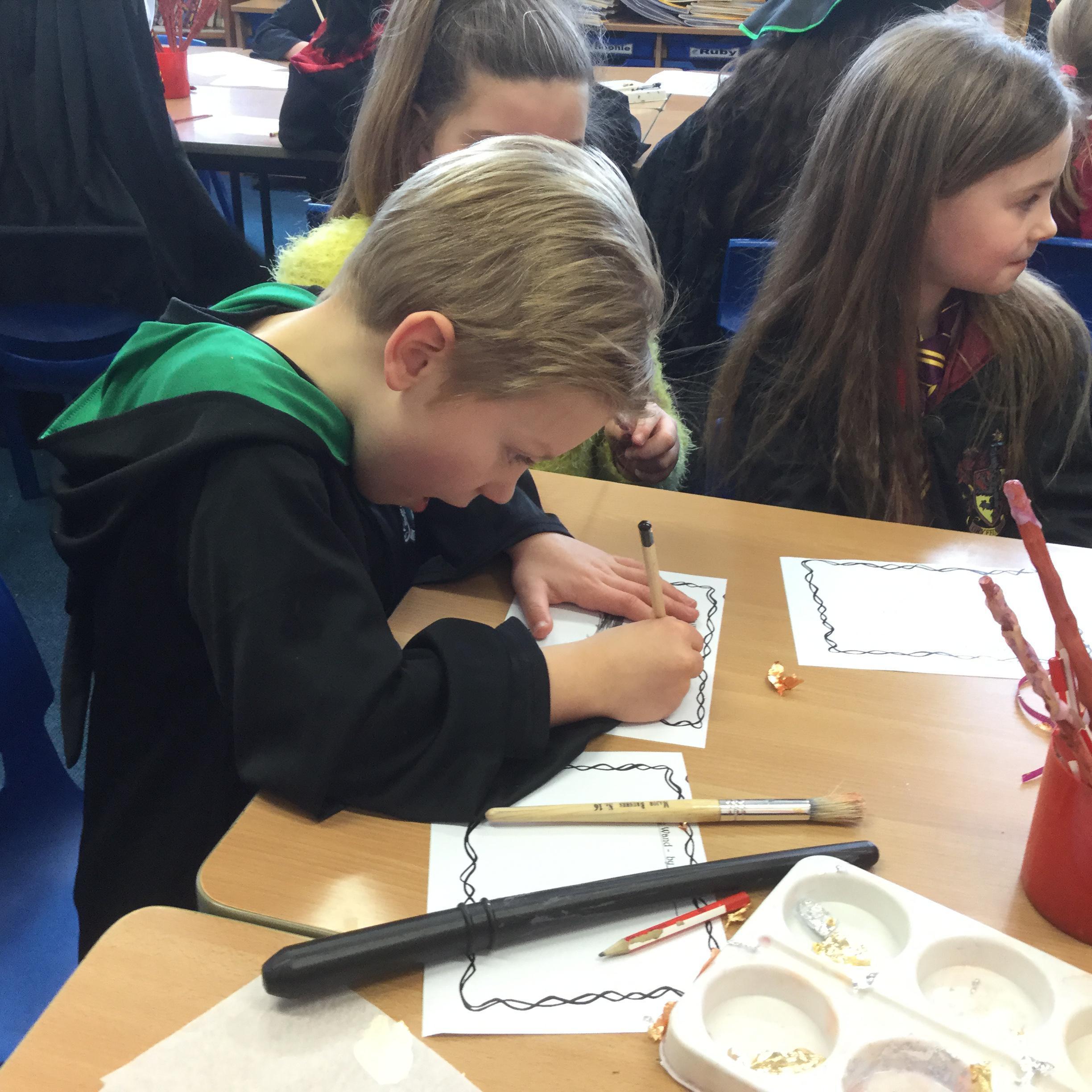 The children who came to Year 4 learned about wand making. They discovered how the wood they were made from and the core that was inside were special to each wizard and then designed their own wand. We decorated them with real gold and silver, paint, glitter, beads etc and made them look like Ollivander had made them himself!