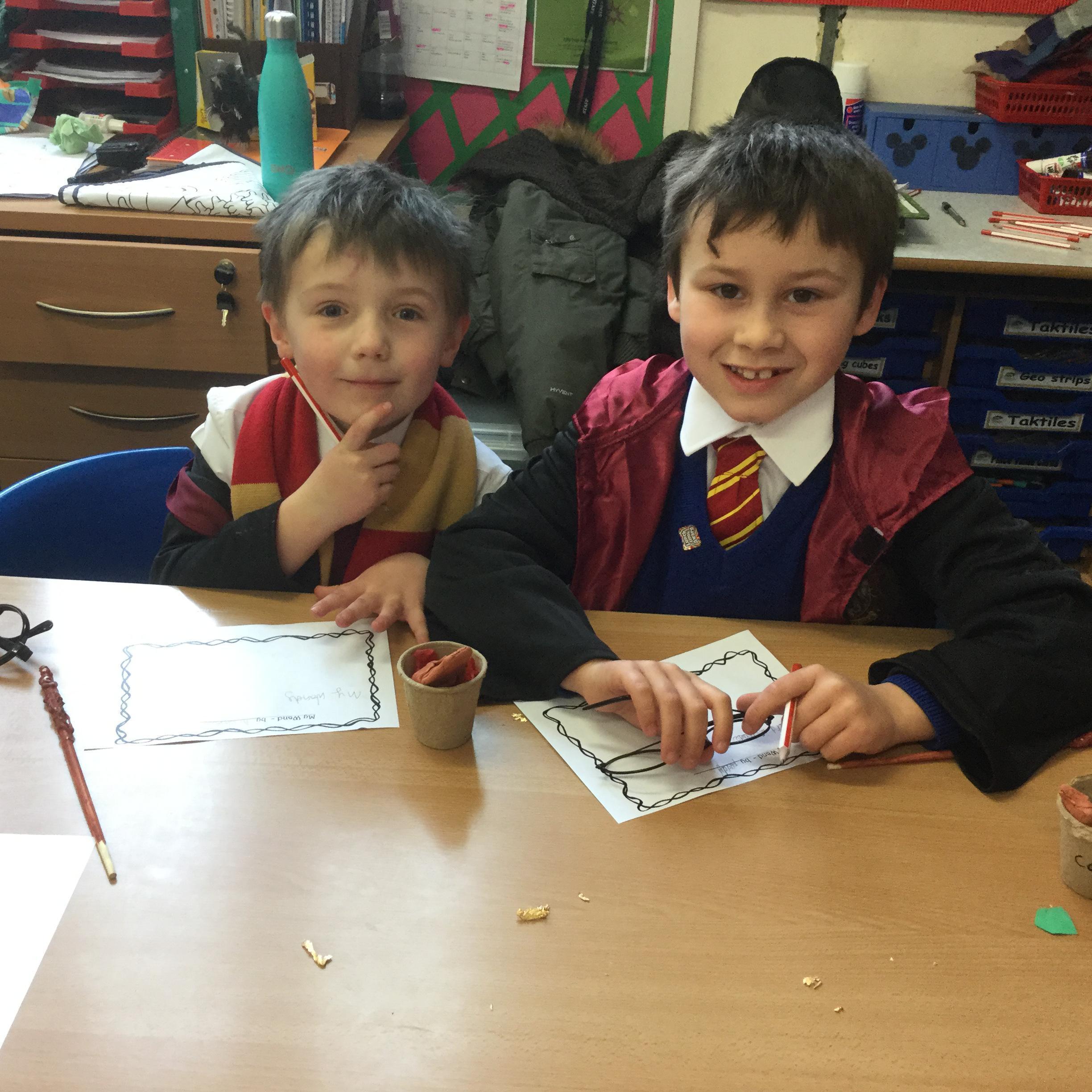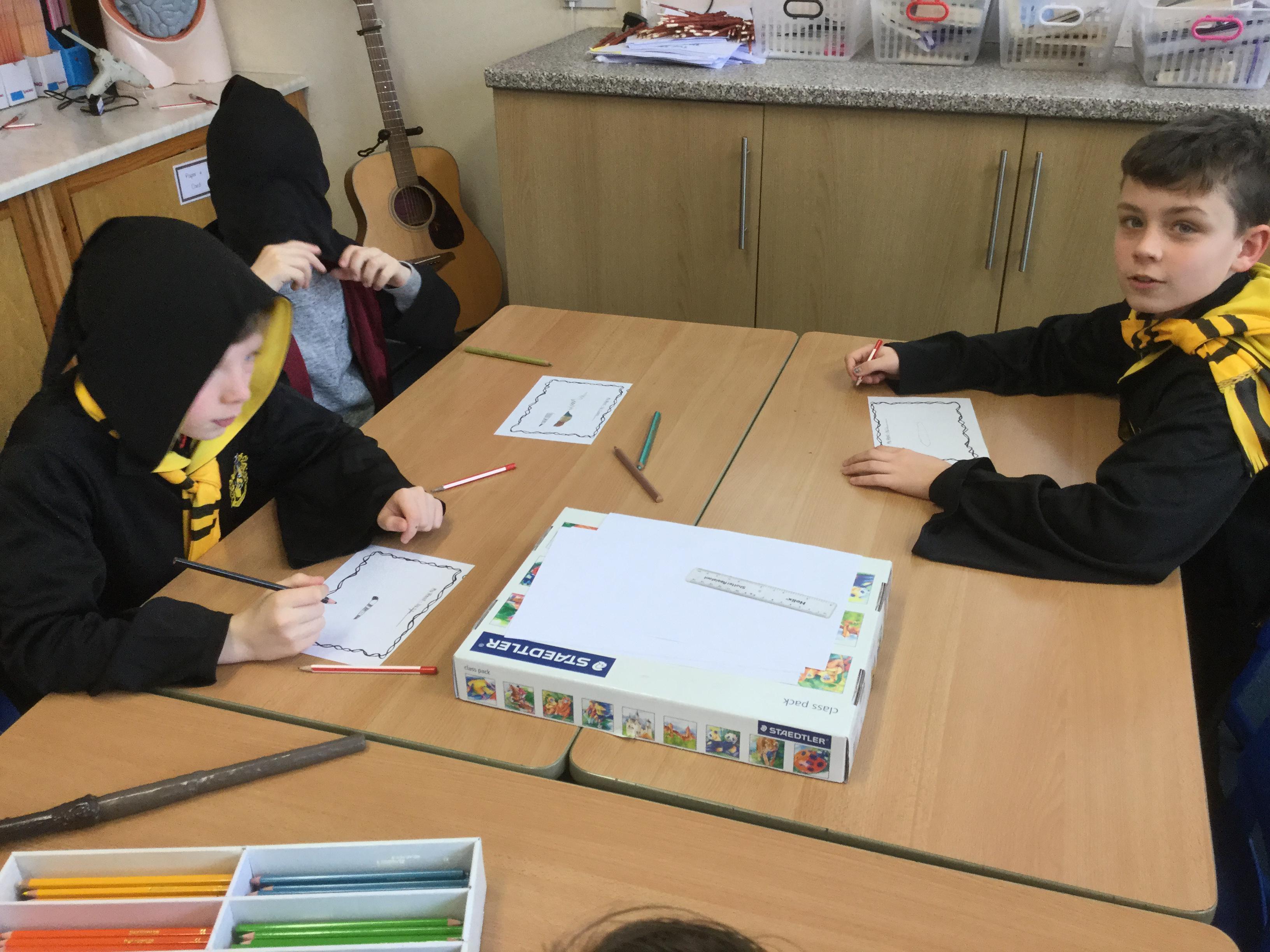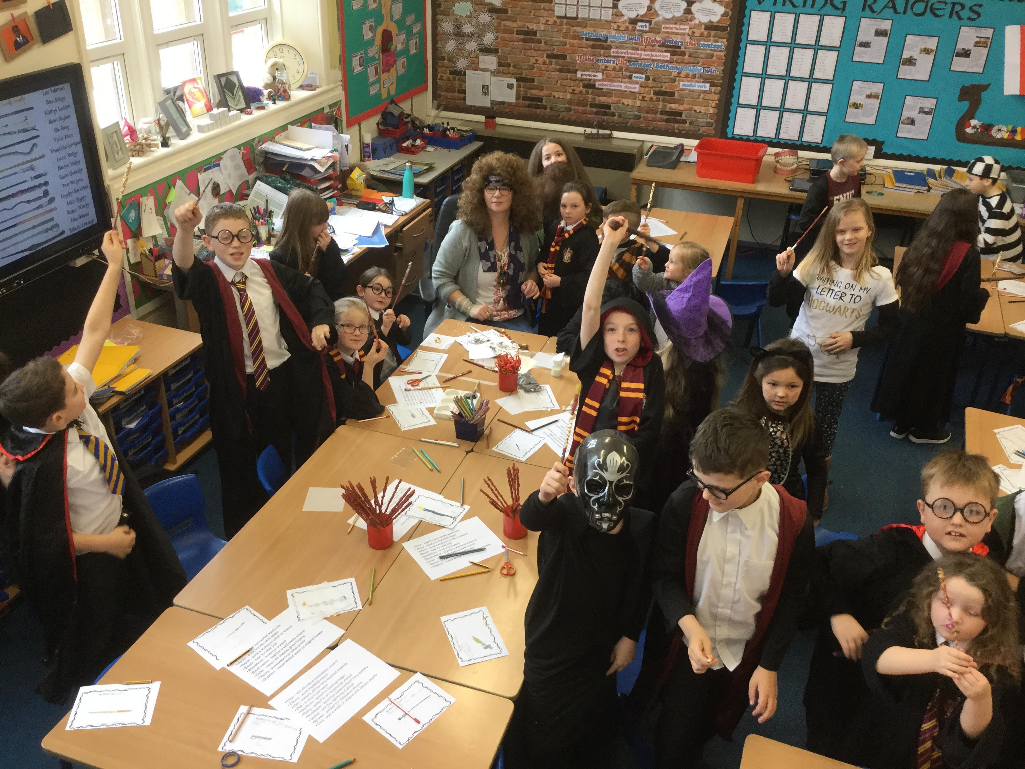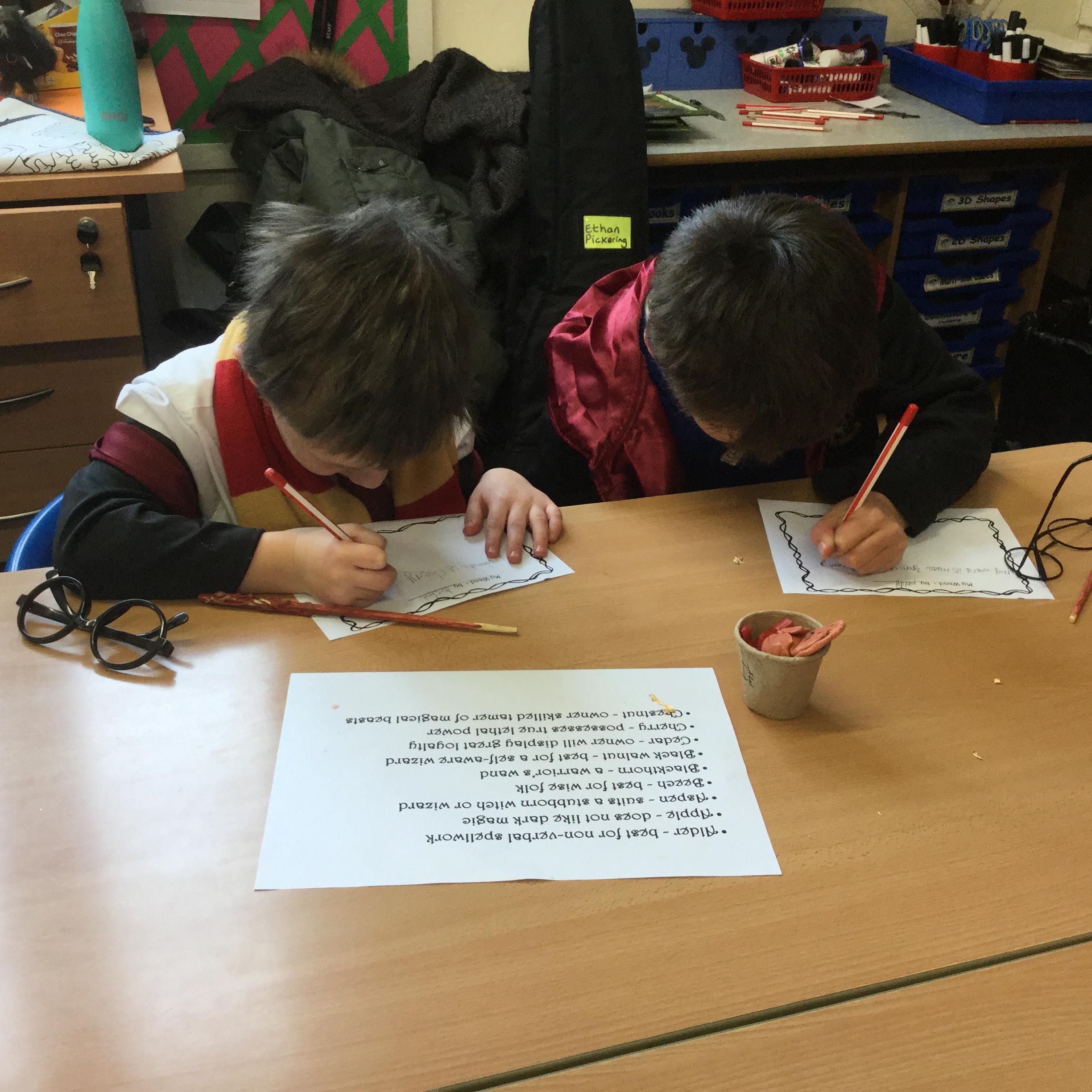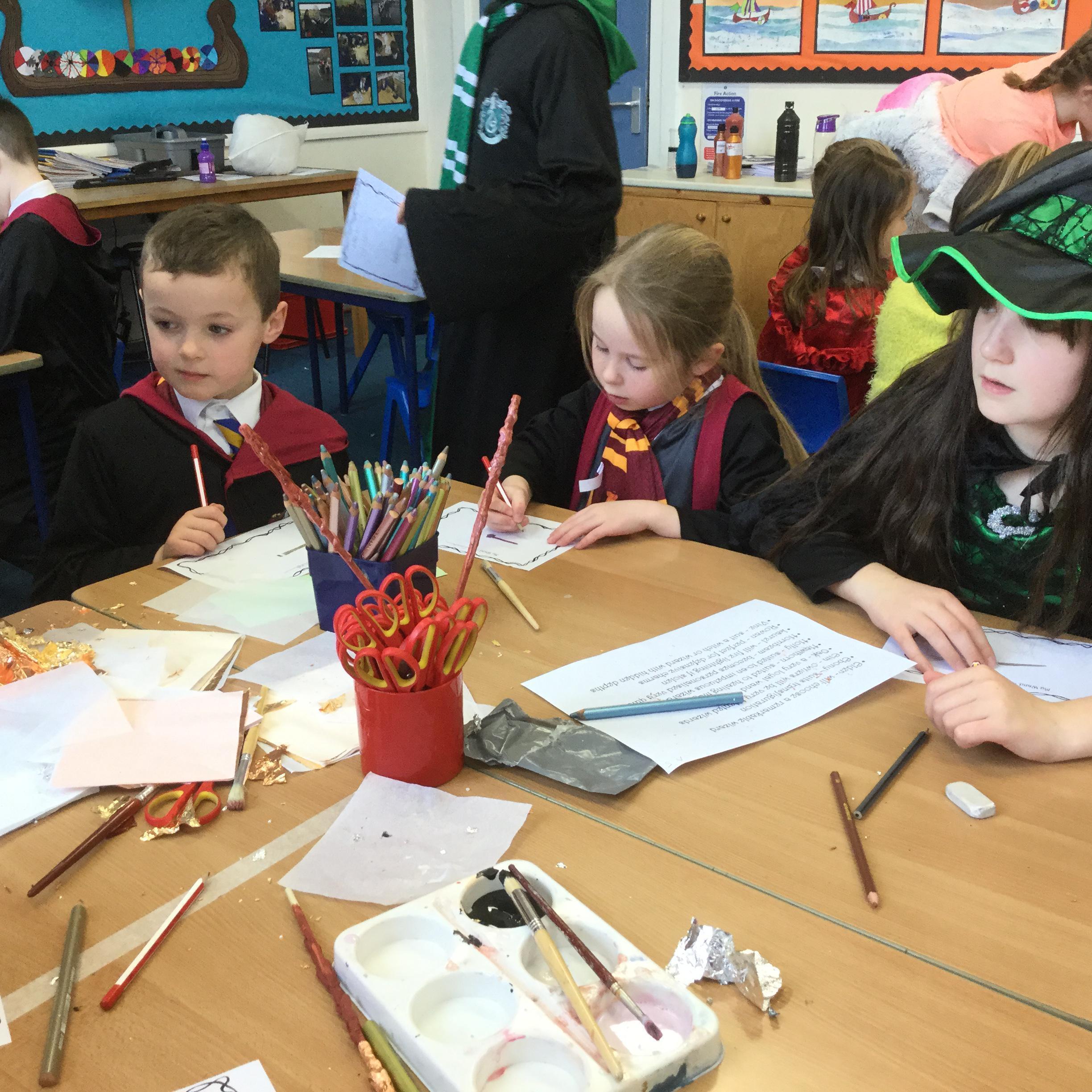 The children who came to Year 4 learned about wand making. They discovered how the wood they were made from and the core that was inside were special to each wizard and then designed their own wand. We decorated them with real gold and silver, paint, glitter, beads etc and made them look like Ollivander had made them himself!