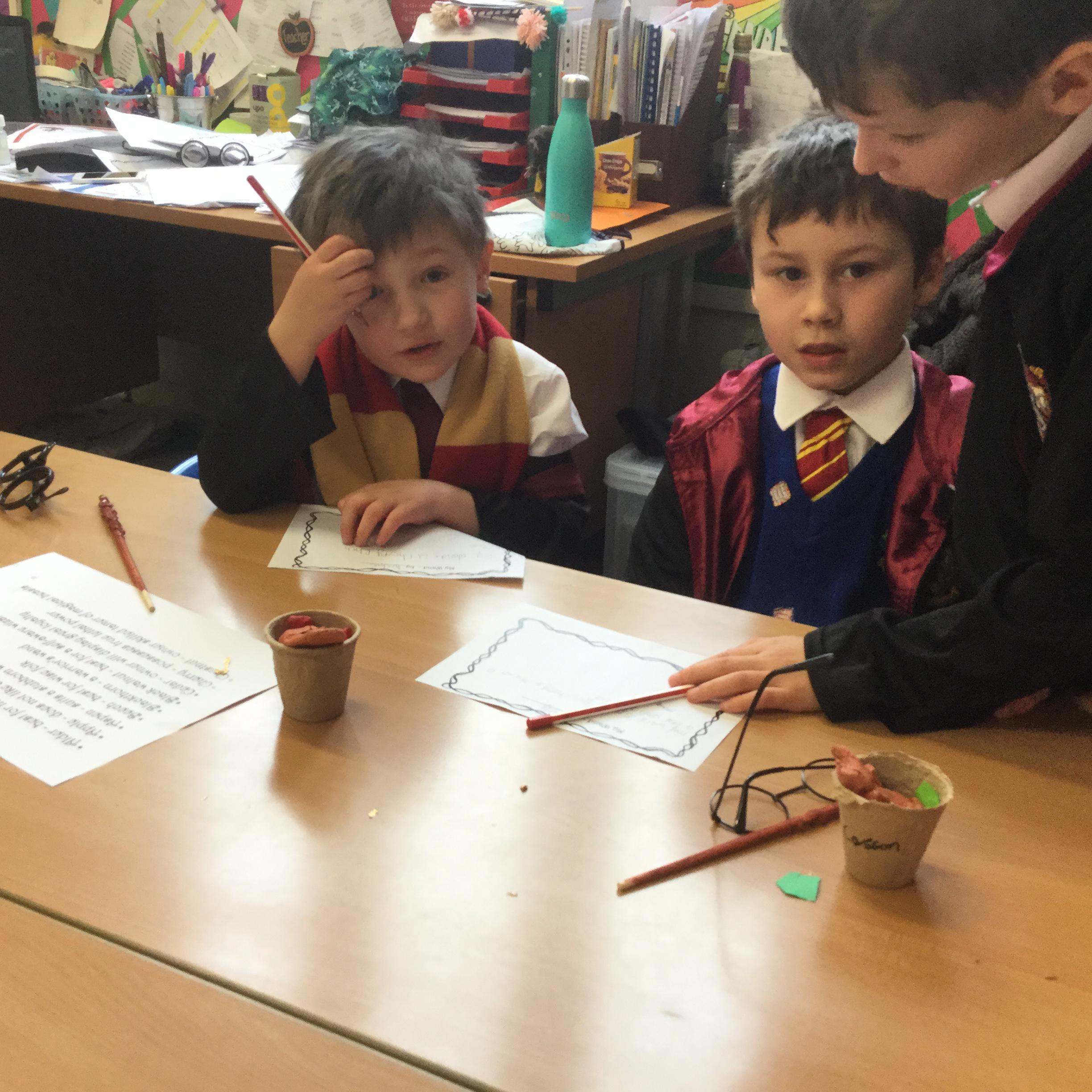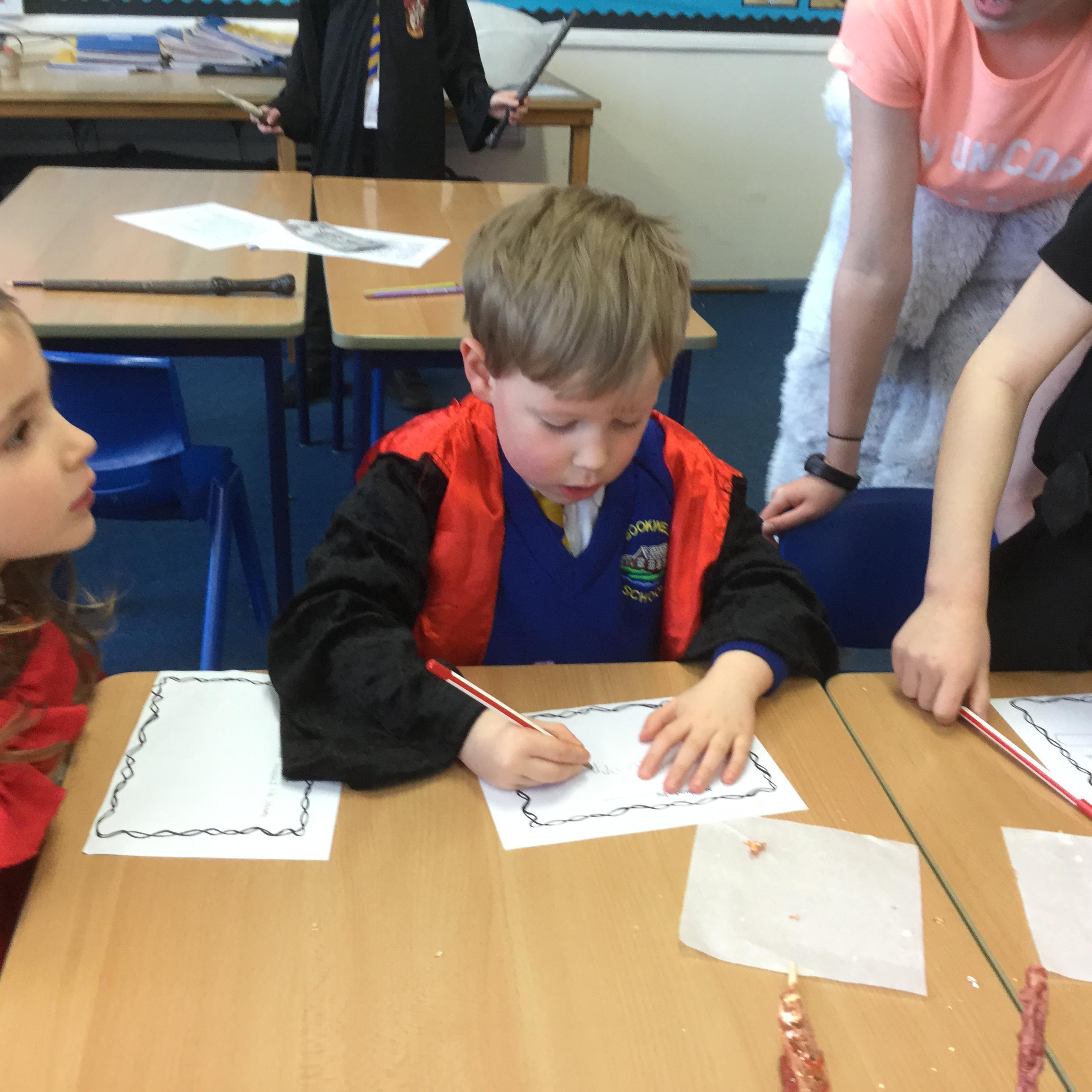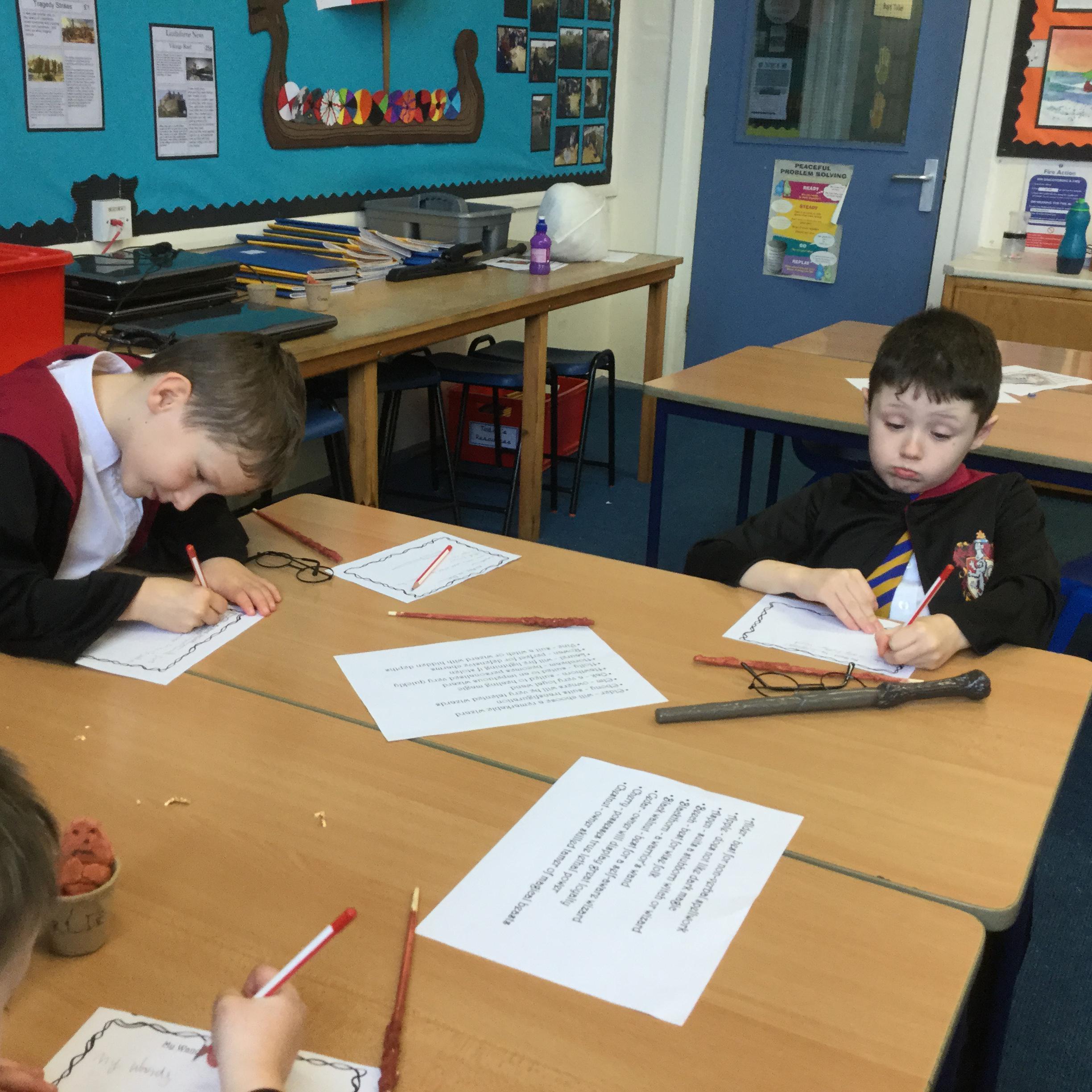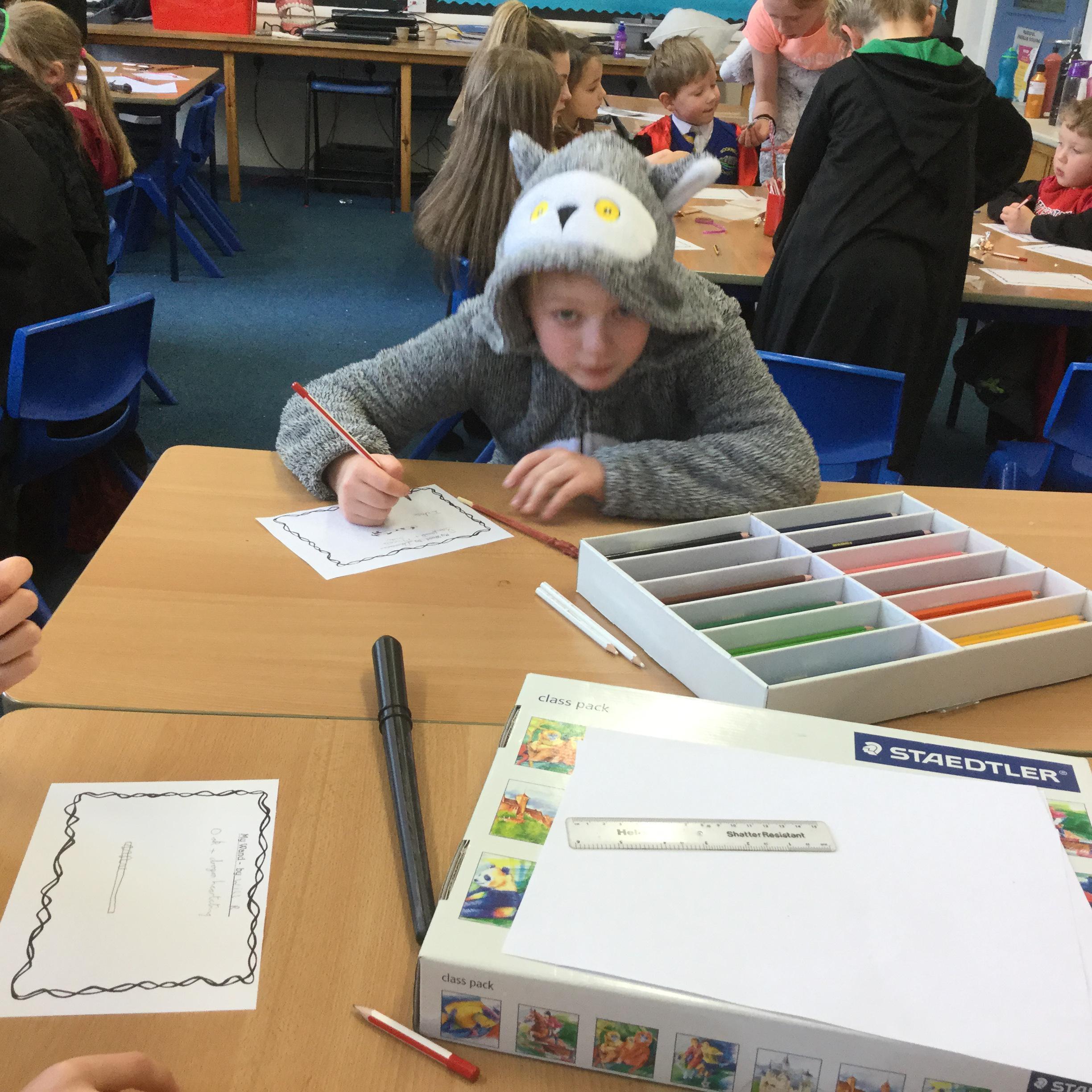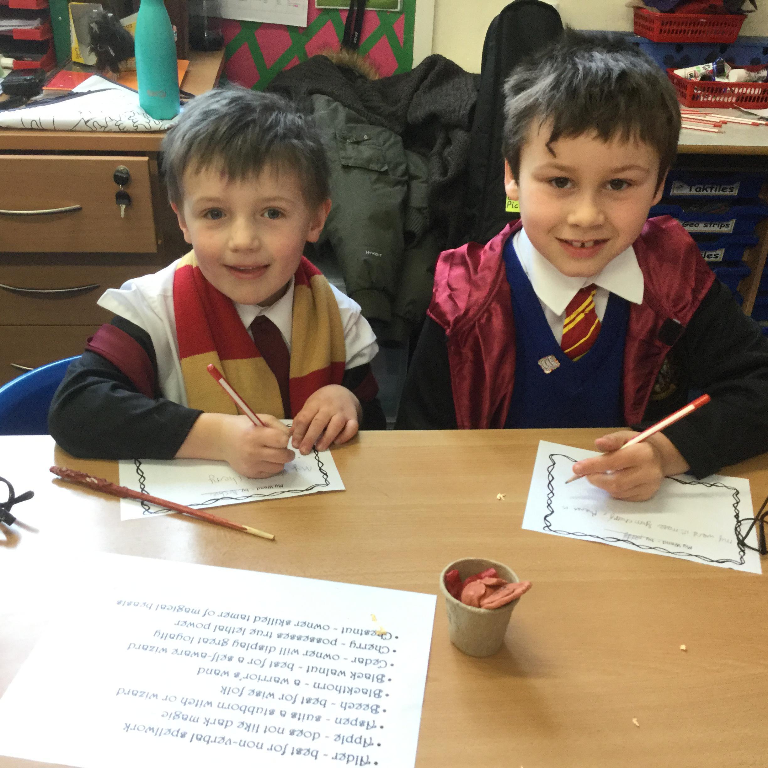 The children who came to Year 4 learned about wand making. They discovered how the wood they were made from and the core that was inside were special to each wizard and then designed their own wand. We decorated them with real gold and silver, paint, glitter, beads etc and made them look like Ollivander had made them himself!