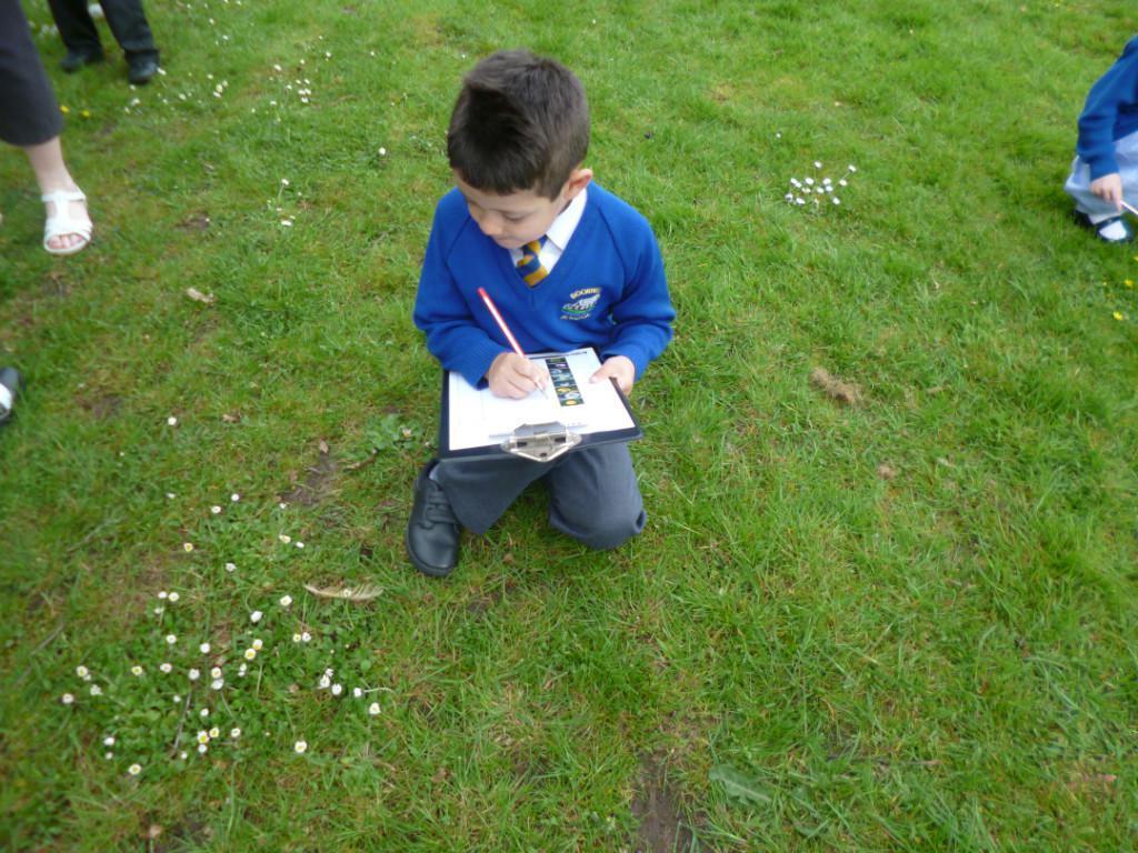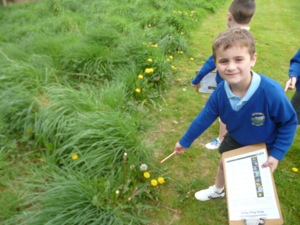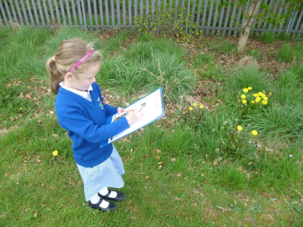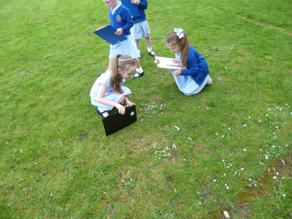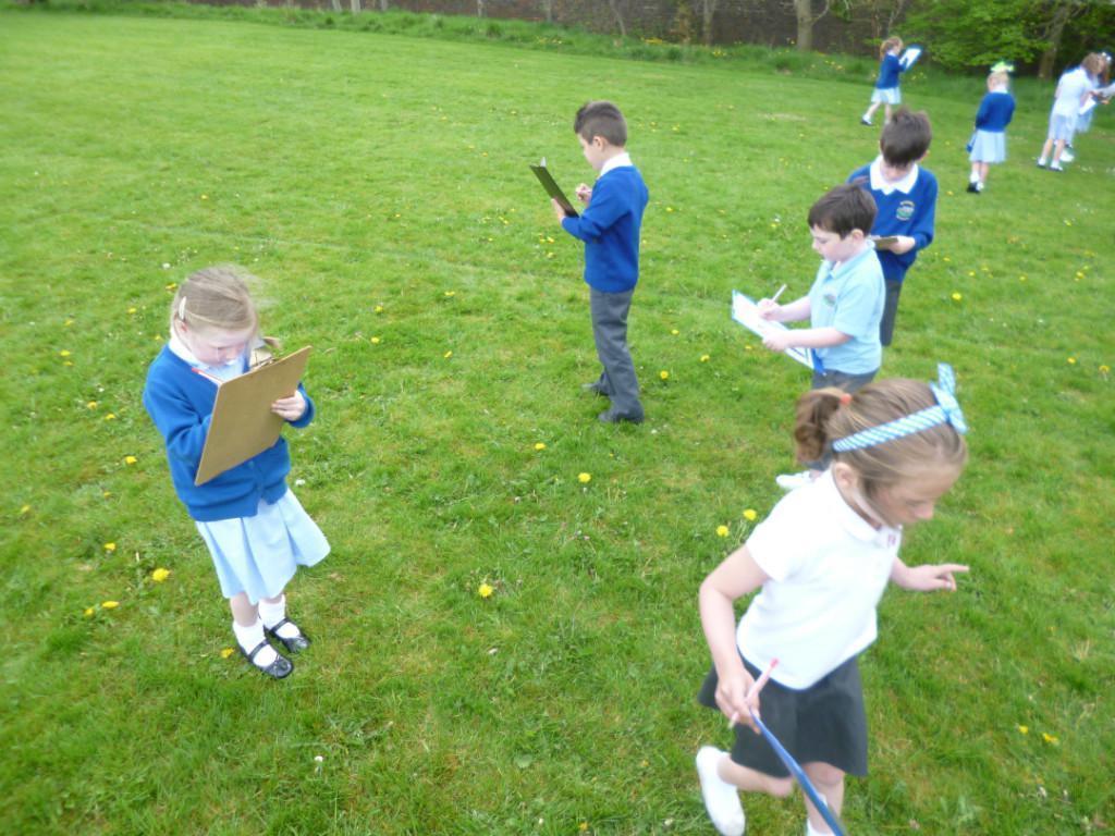 The children went on a wild plant hunt around the school field, recording their observations on a tally chart. They worked out that the most common wild plant on our school field was the daisy.