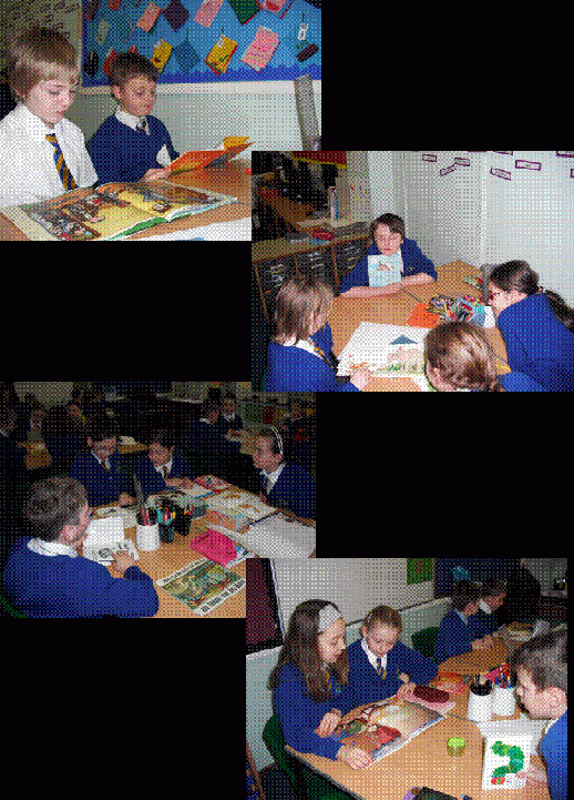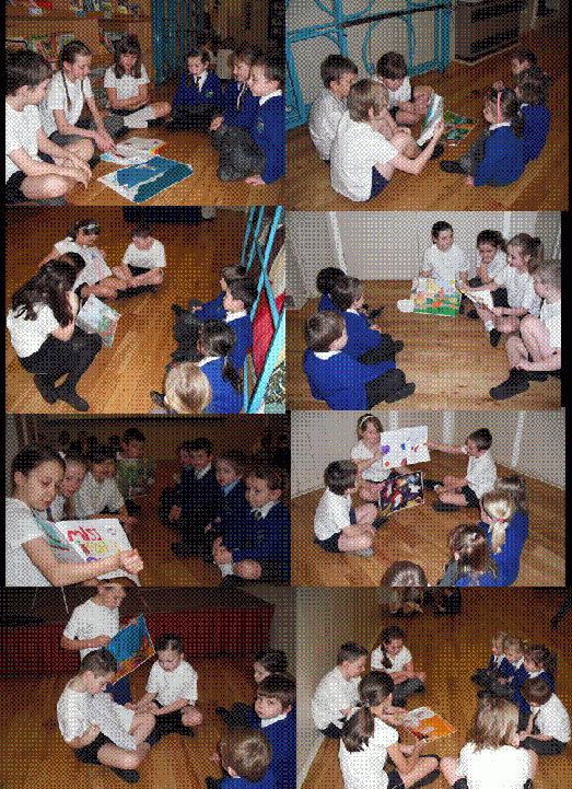 Mrs Fawcett then asked us, as a group, to create a story using our favourite characters and a setting she provided.  When we had finished we shared our new stories with Reception class.