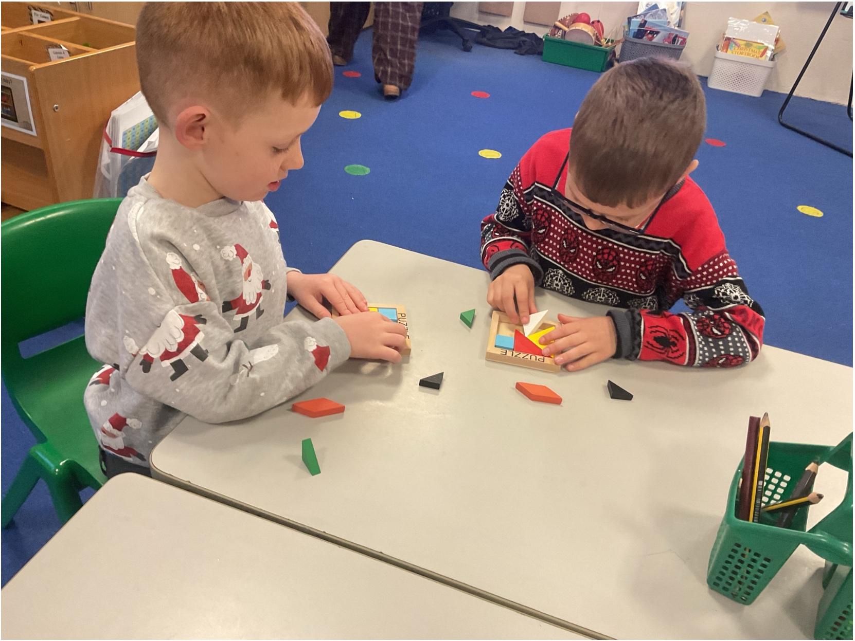 Exploring tangrams in maths.